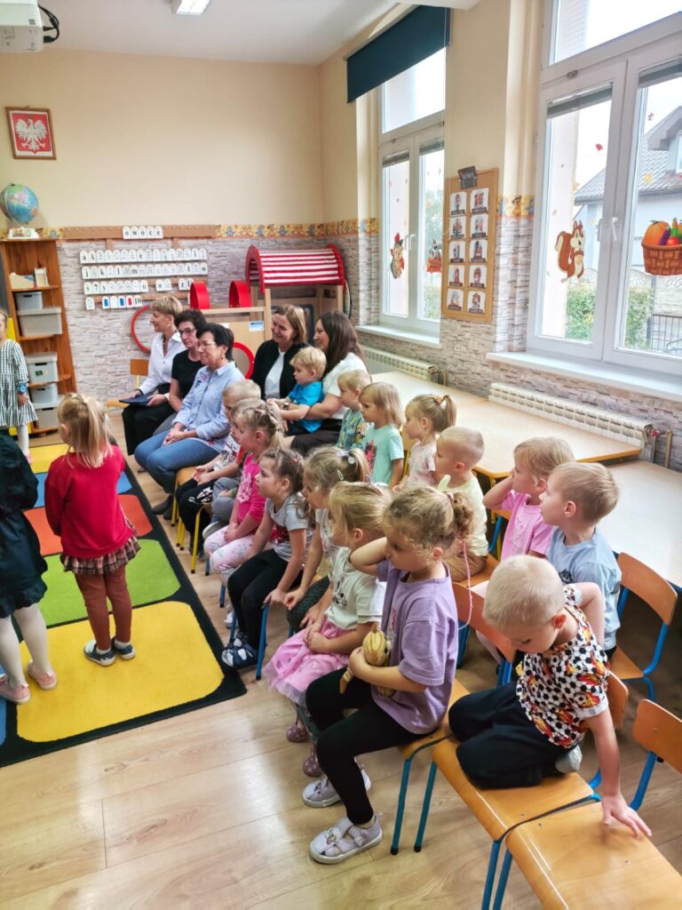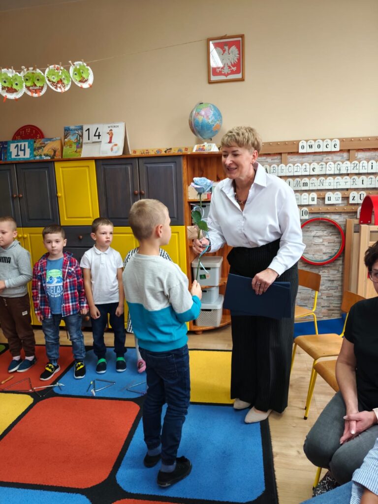 Z tej okazji nasze starszaki przygotowały piękną piosenkę, którą zaśpiewały z ogromnym zapałem i radością, wywołując uśmiechy na twarzach wszystkich obecnych.