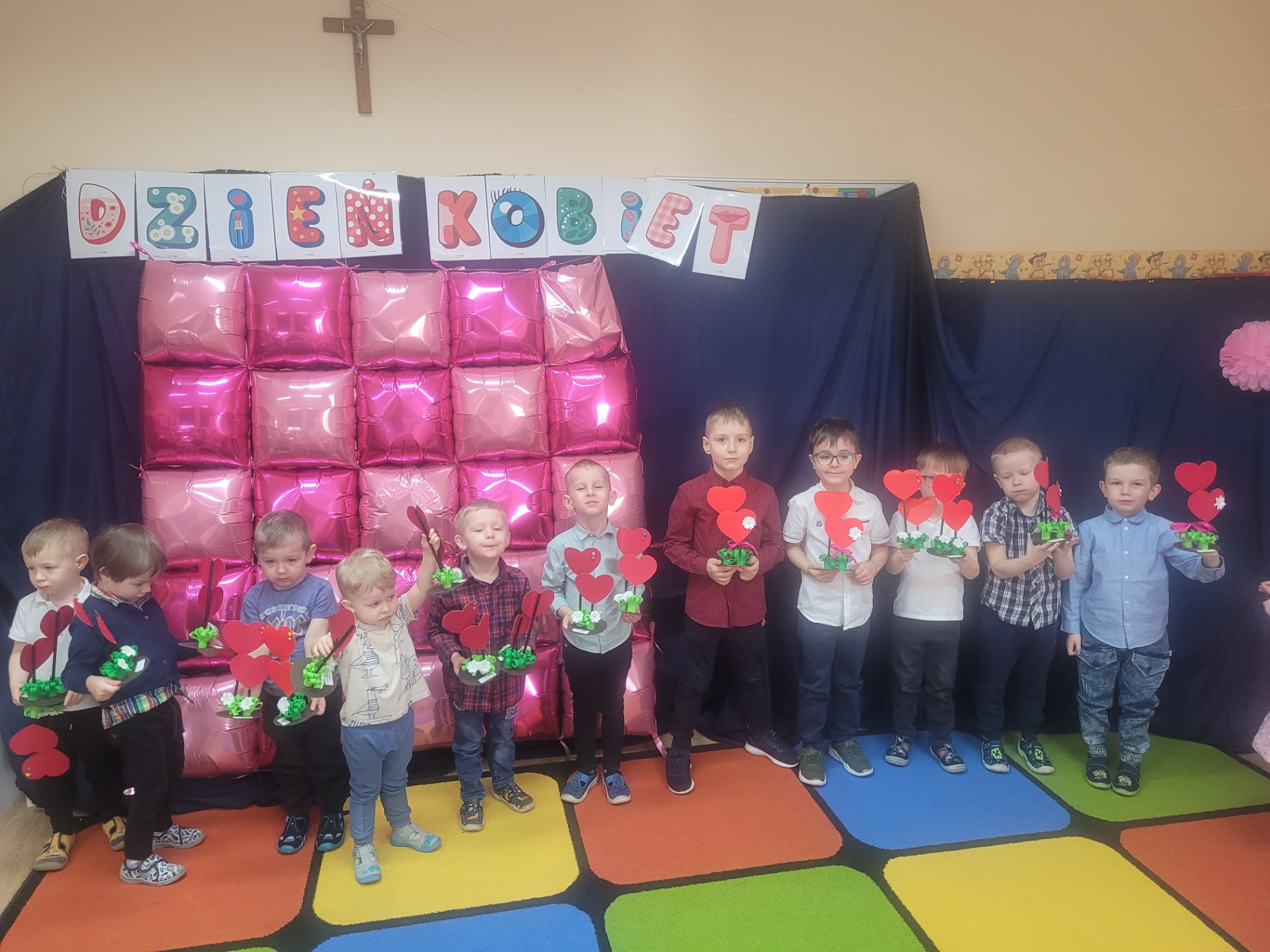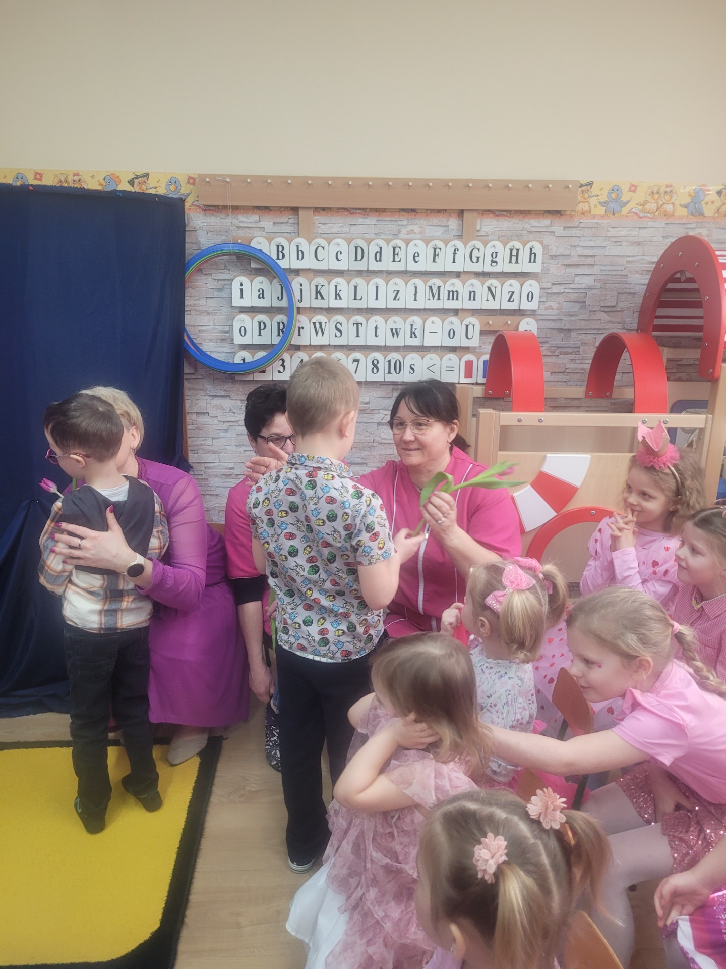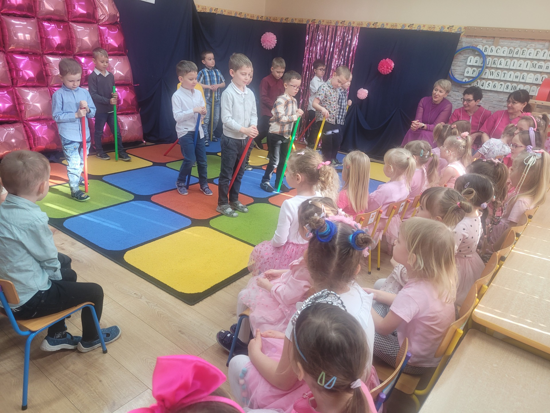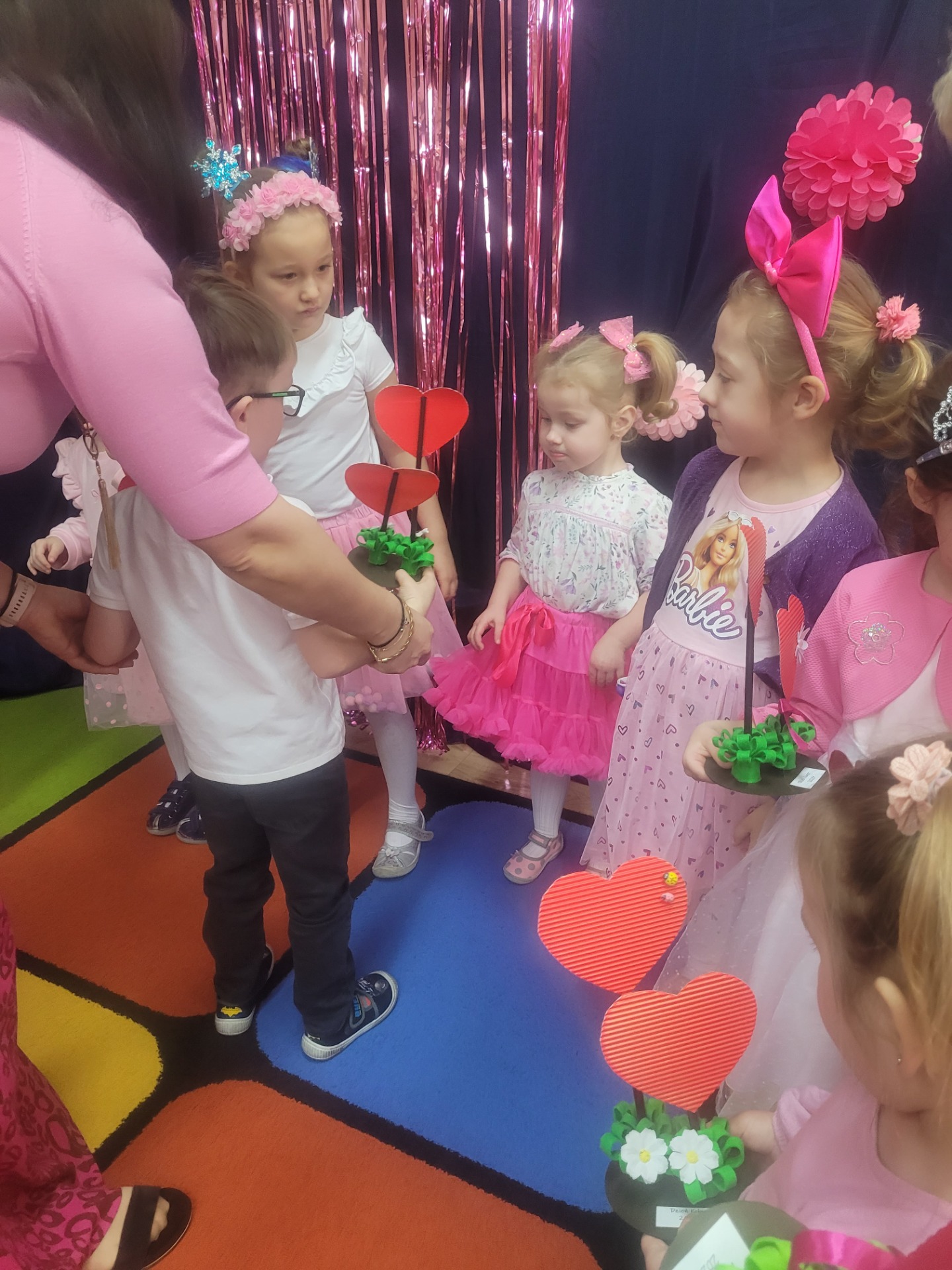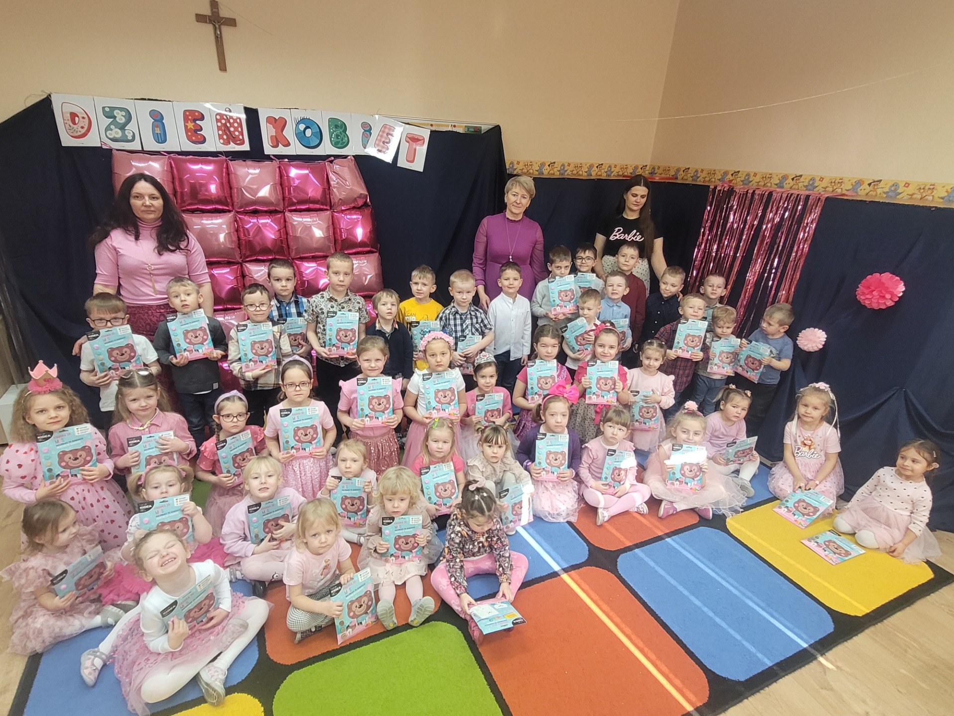 Dziewczynki przeniosły się do świata pełnego różu, uśmiechów i pozytywnej energii, a chłopcy stanęli na wysokości zadania i zadbali o to, by każda mała i duża dama czuła się wyjątkowo. Były serdeczne życzenia, uśmiechy oraz piękne upominki, które chłopcy wręczyli wszystkim dziewczynkom oraz paniom. To był dzień pełen radości, zabawy i wspólnego świętowania!