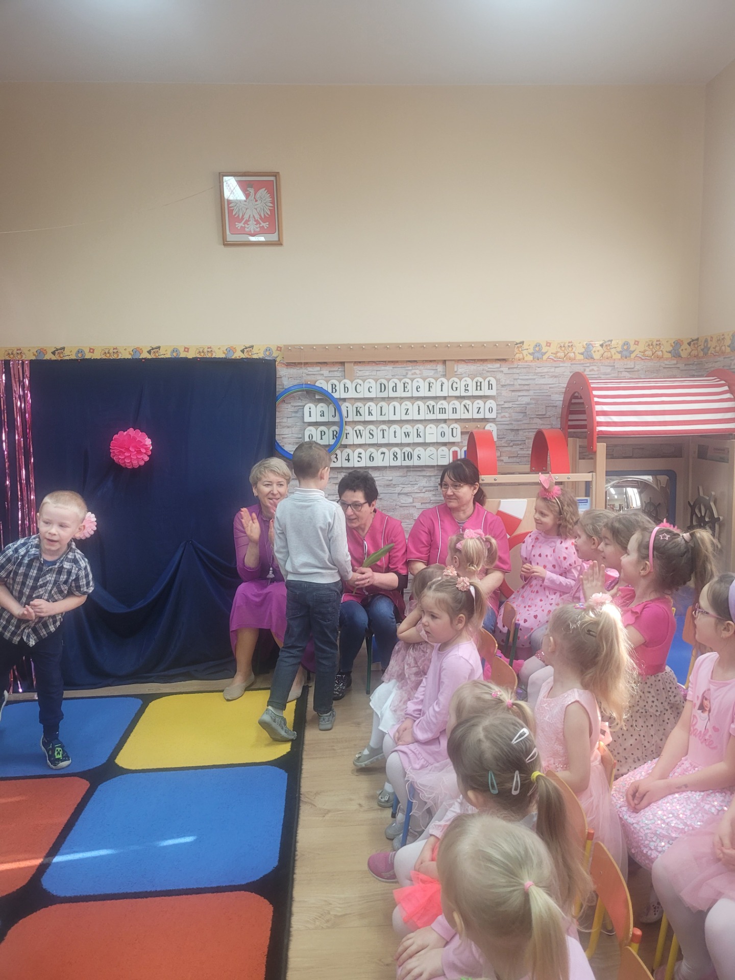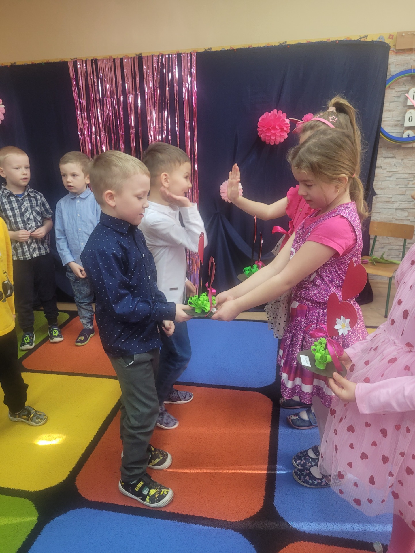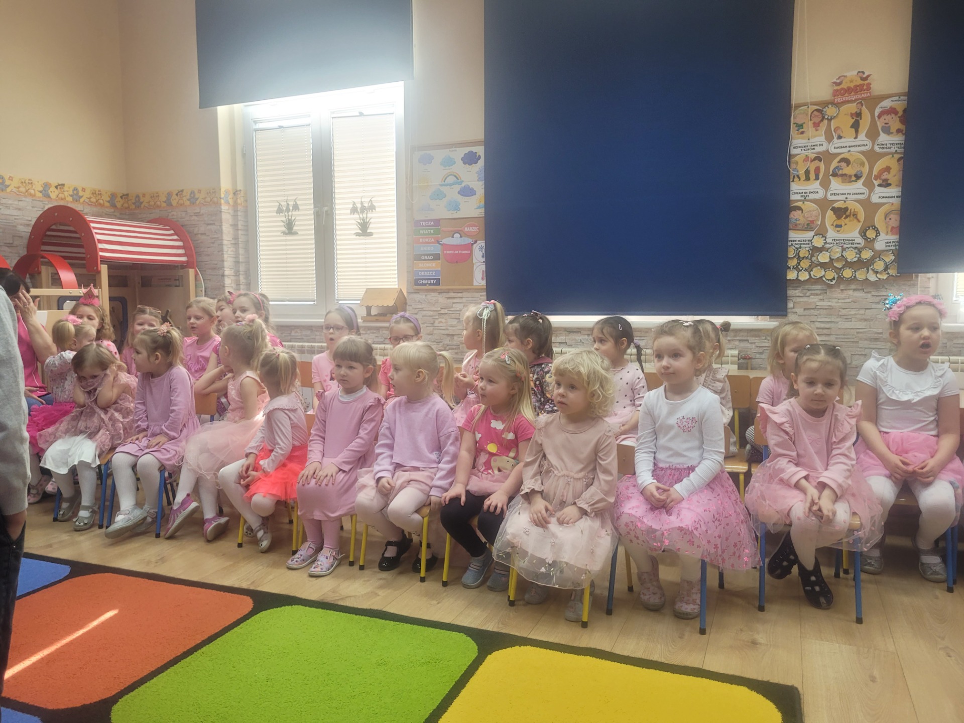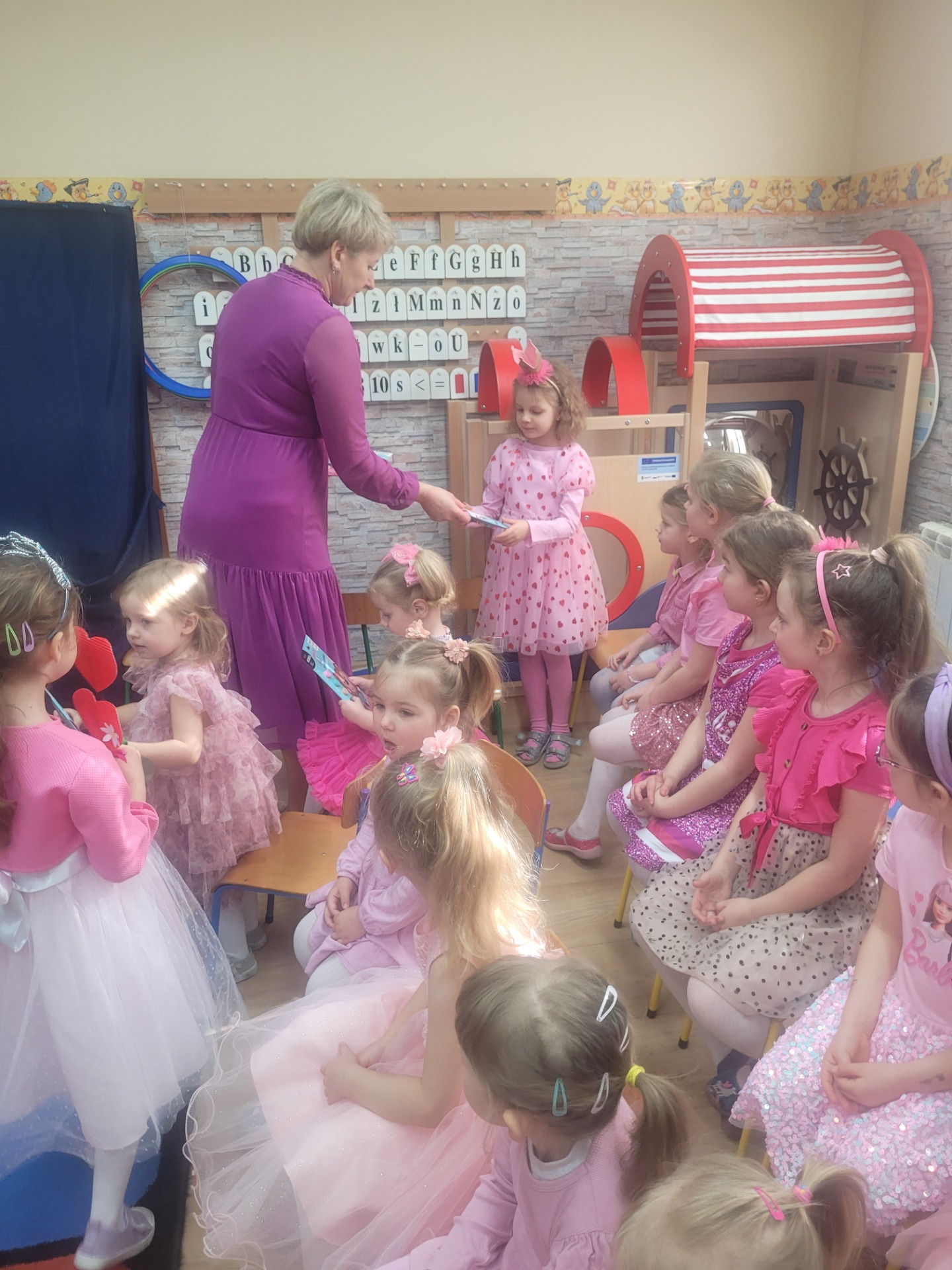 Dziewczynki przeniosły się do świata pełnego różu, uśmiechów i pozytywnej energii, a chłopcy stanęli na wysokości zadania i zadbali o to, by każda mała i duża dama czuła się wyjątkowo. Były serdeczne życzenia, uśmiechy oraz piękne upominki, które chłopcy wręczyli wszystkim dziewczynkom oraz paniom. To był dzień pełen radości, zabawy i wspólnego świętowania!
