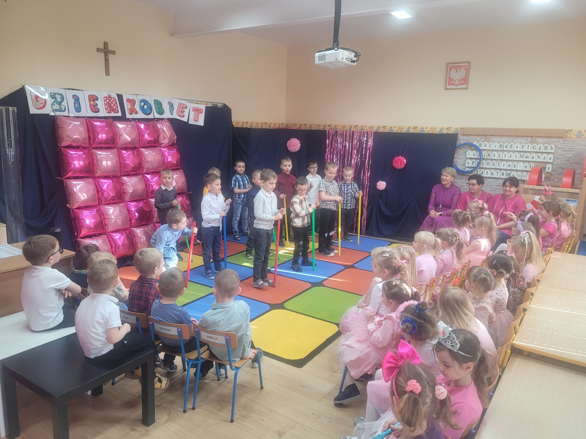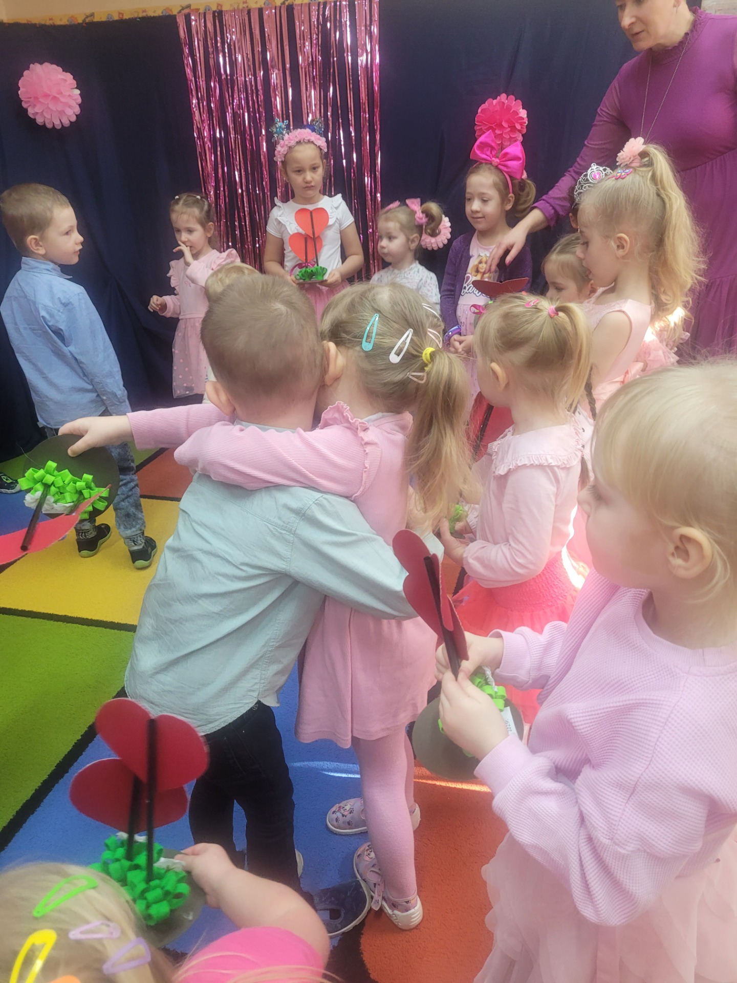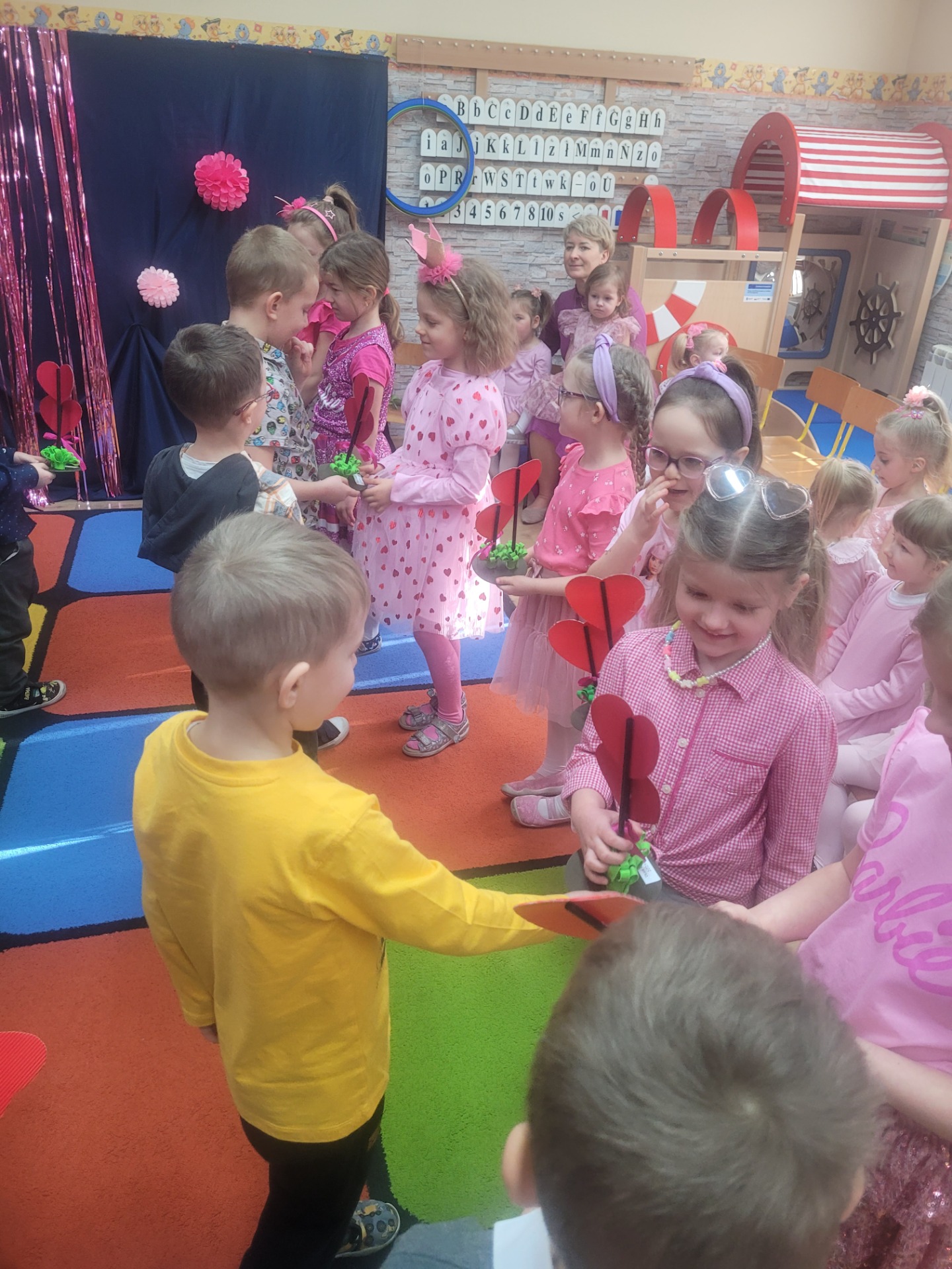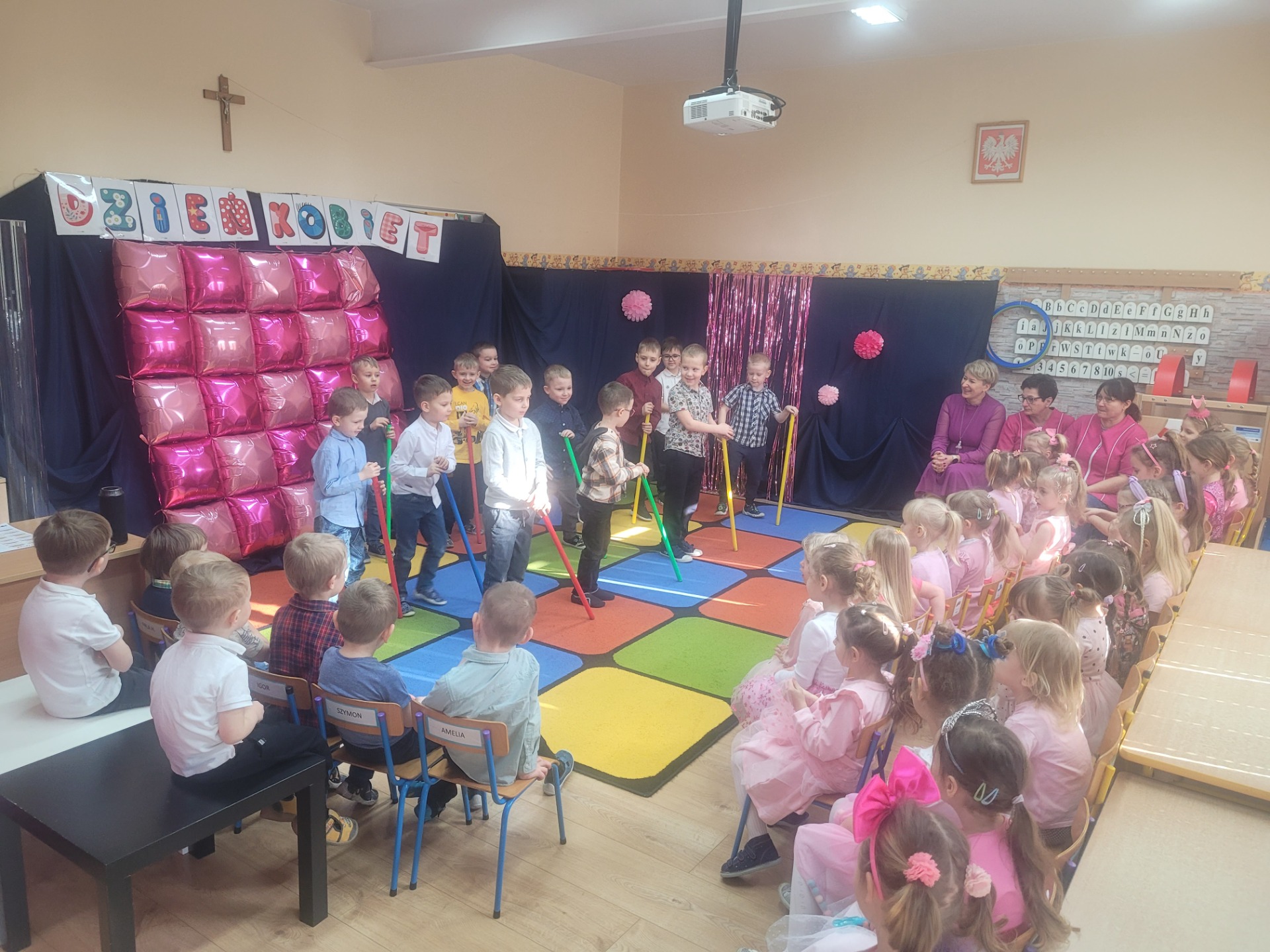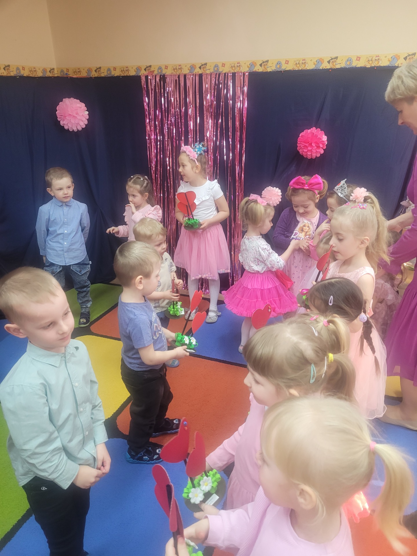 Dziewczynki przeniosły się do świata pełnego różu, uśmiechów i pozytywnej energii, a chłopcy stanęli na wysokości zadania i zadbali o to, by każda mała i duża dama czuła się wyjątkowo. Były serdeczne życzenia, uśmiechy oraz piękne upominki, które chłopcy wręczyli wszystkim dziewczynkom oraz paniom. To był dzień pełen radości, zabawy i wspólnego świętowania!