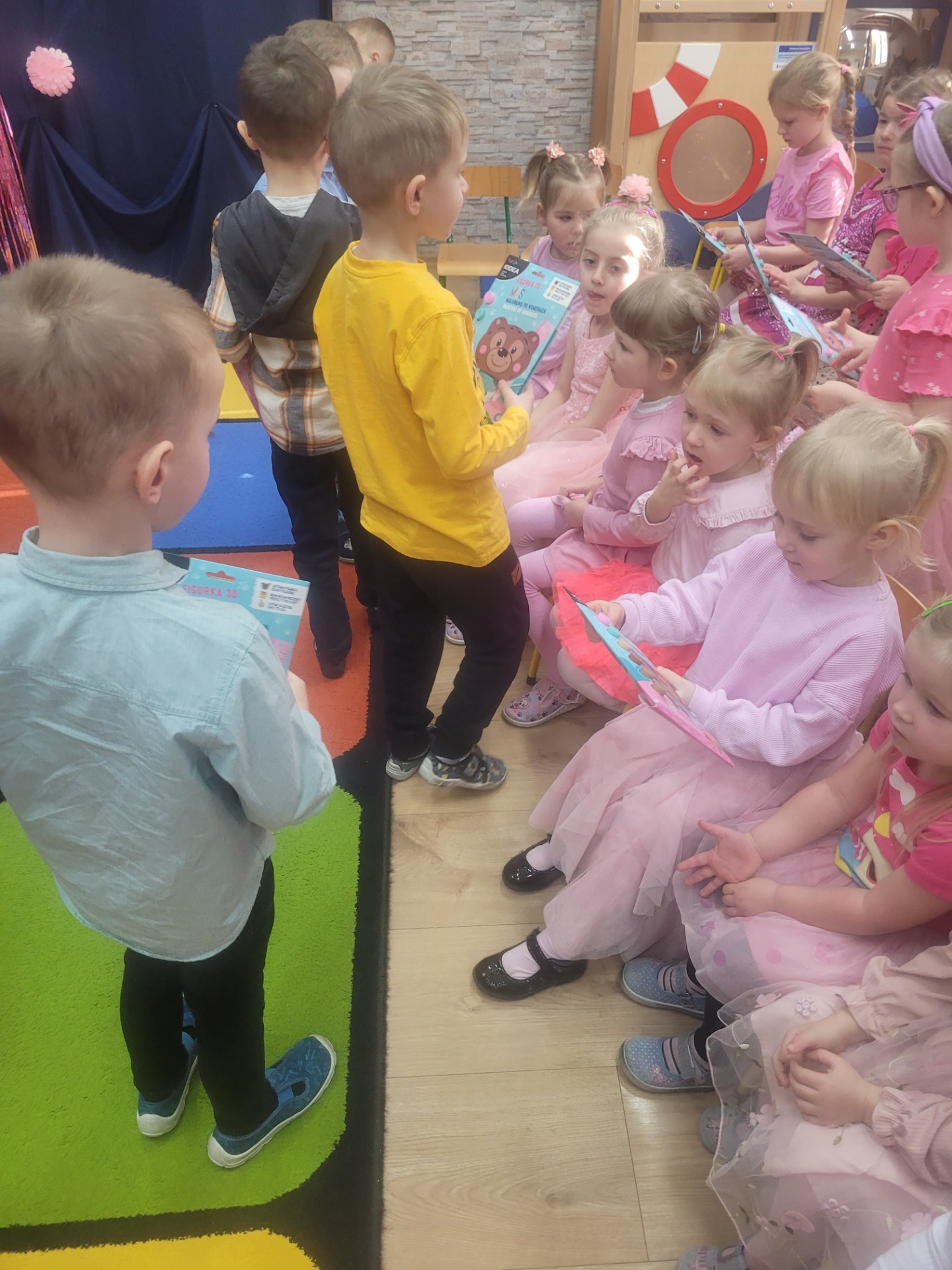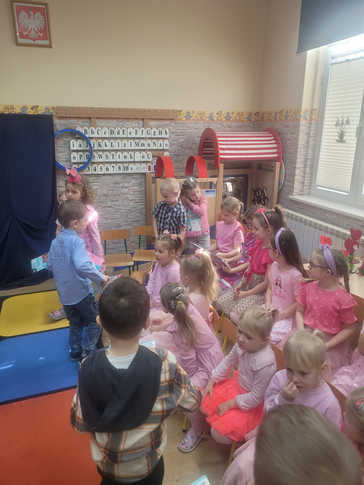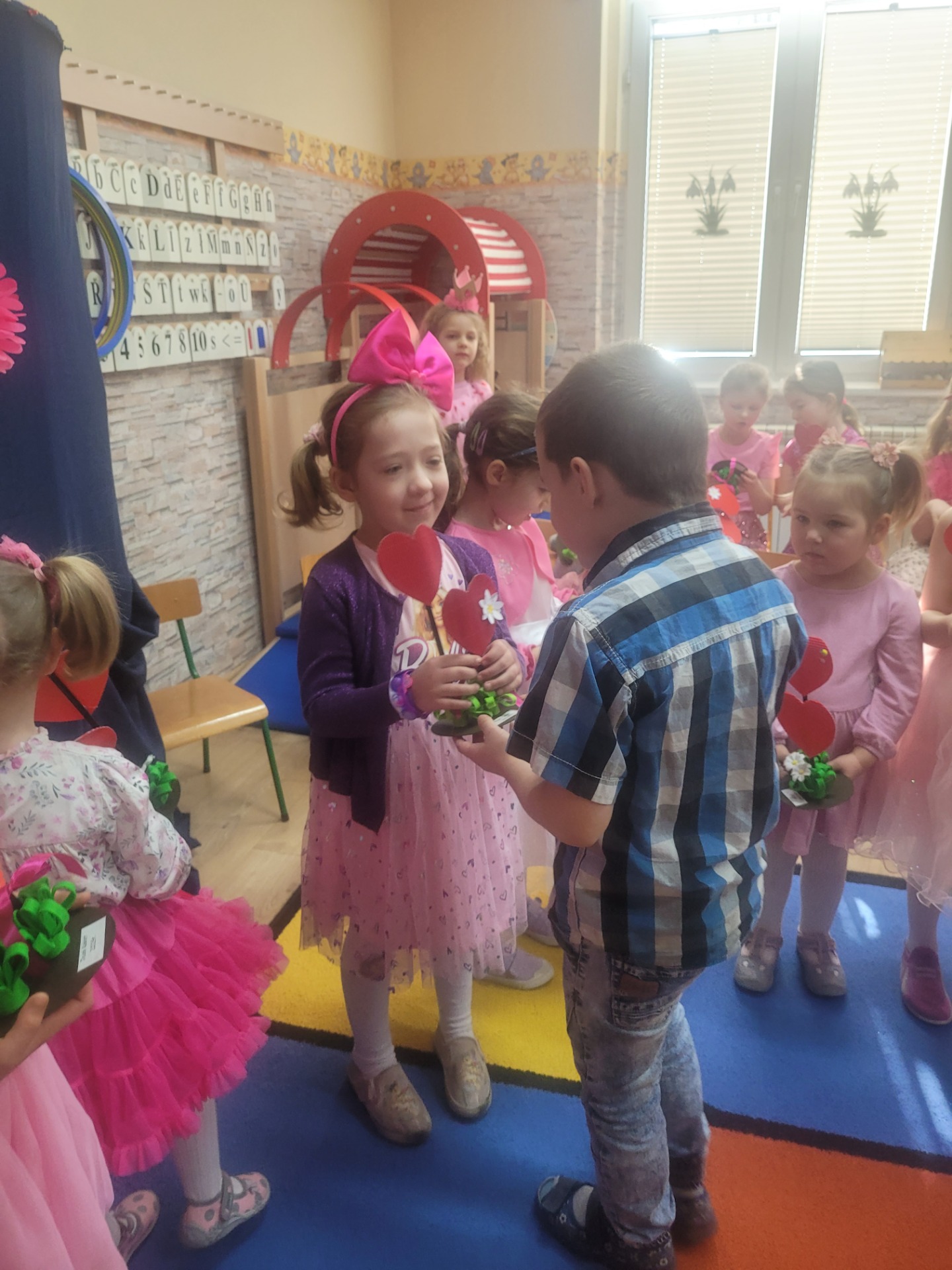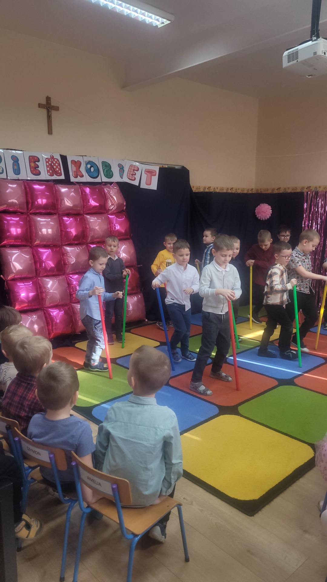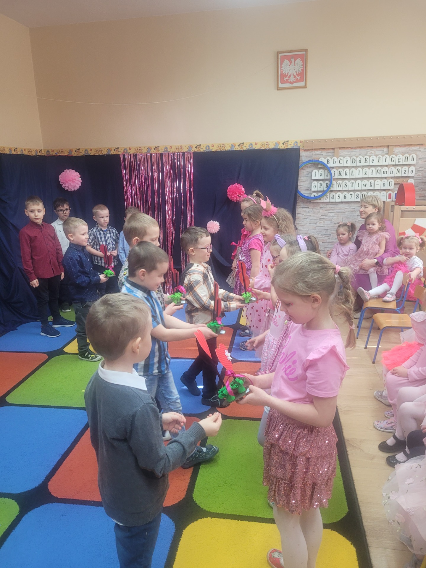 Dziewczynki przeniosły się do świata pełnego różu, uśmiechów i pozytywnej energii, a chłopcy stanęli na wysokości zadania i zadbali o to, by każda mała i duża dama czuła się wyjątkowo. Były serdeczne życzenia, uśmiechy oraz piękne upominki, które chłopcy wręczyli wszystkim dziewczynkom oraz paniom. To był dzień pełen radości, zabawy i wspólnego świętowania!