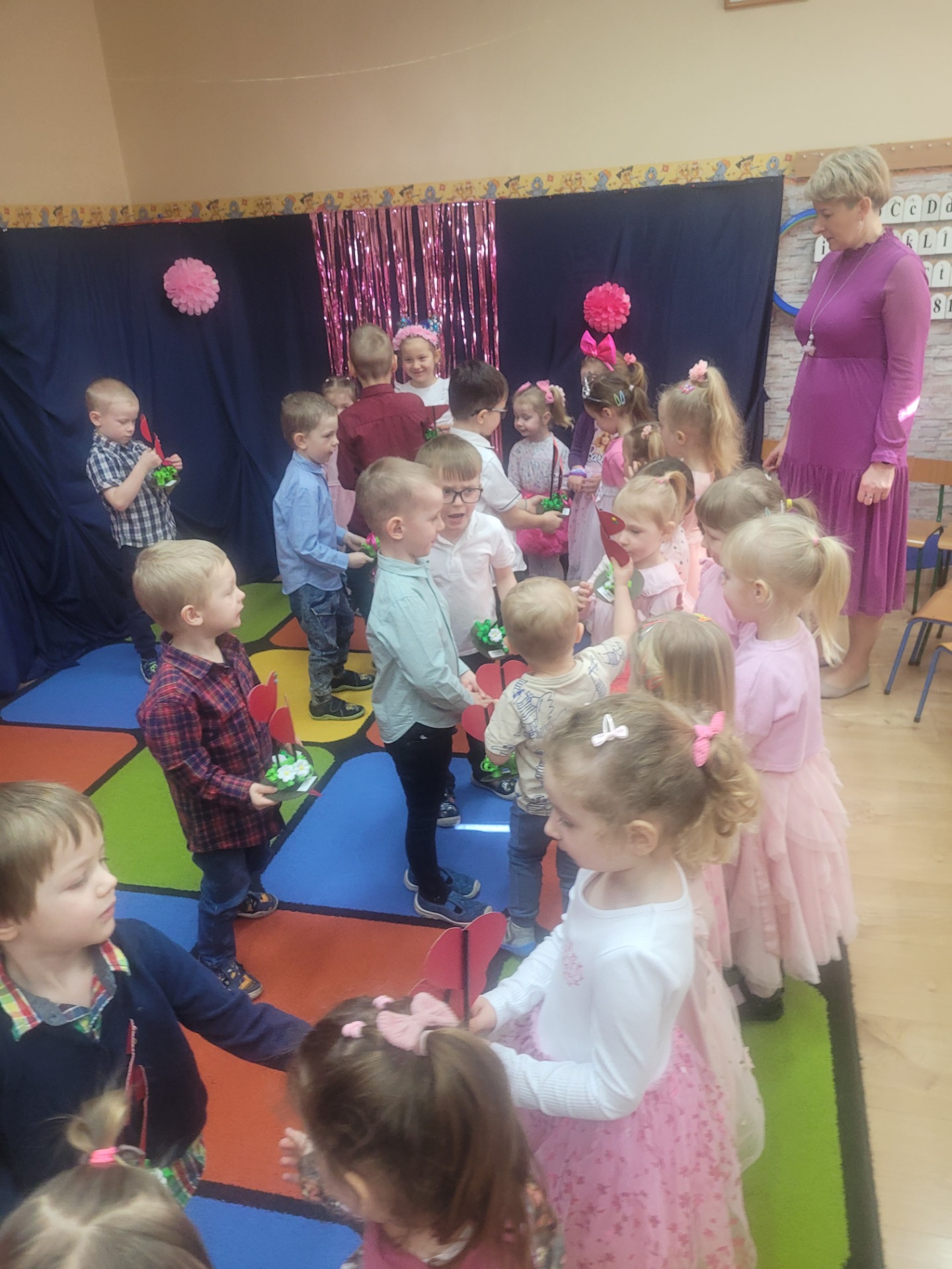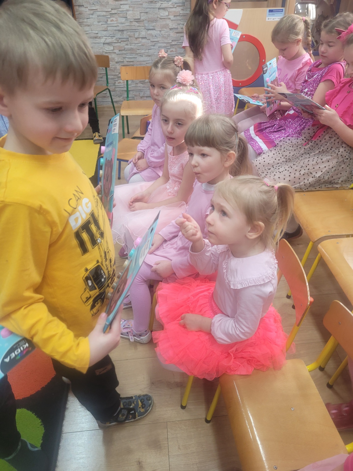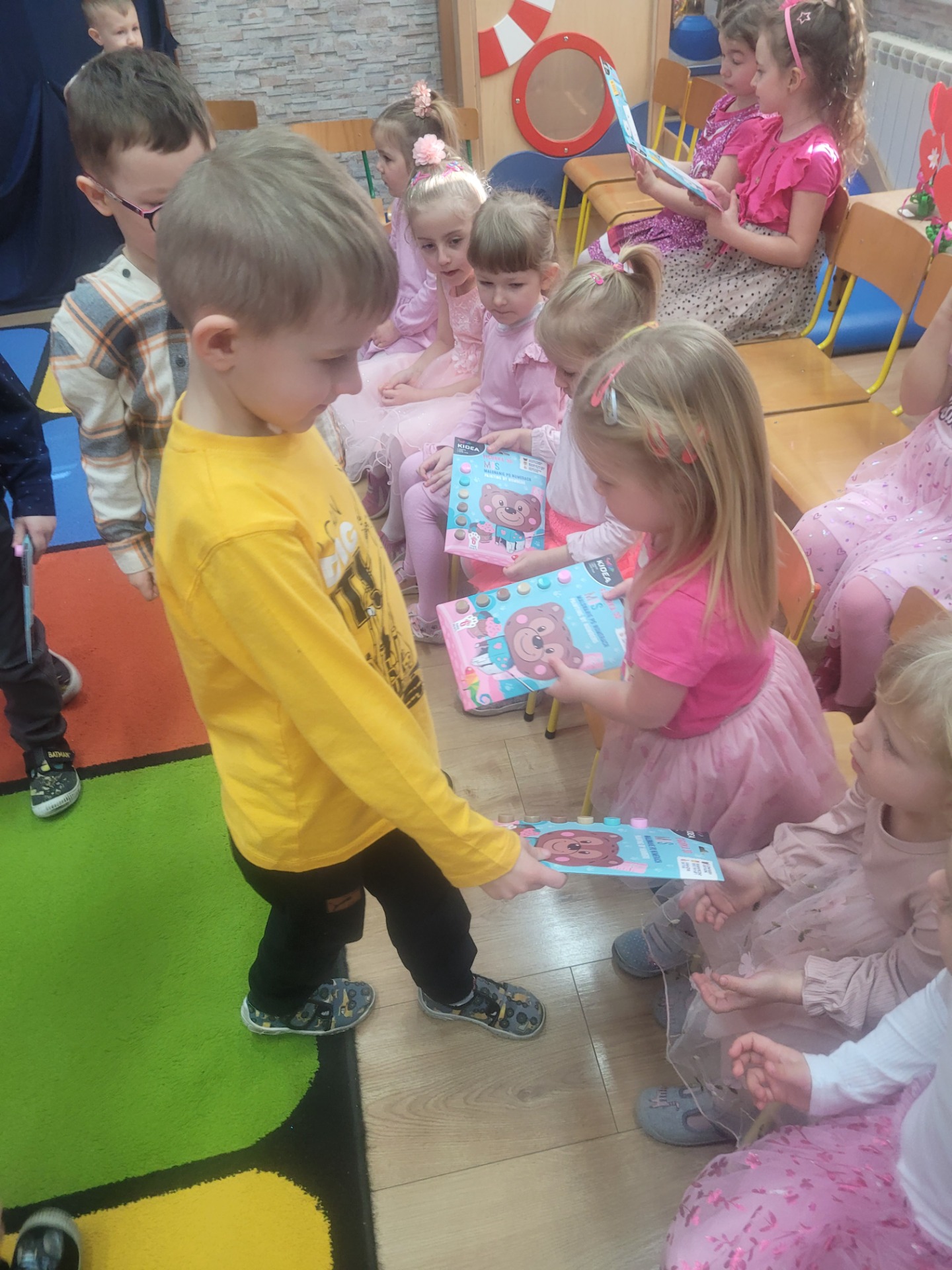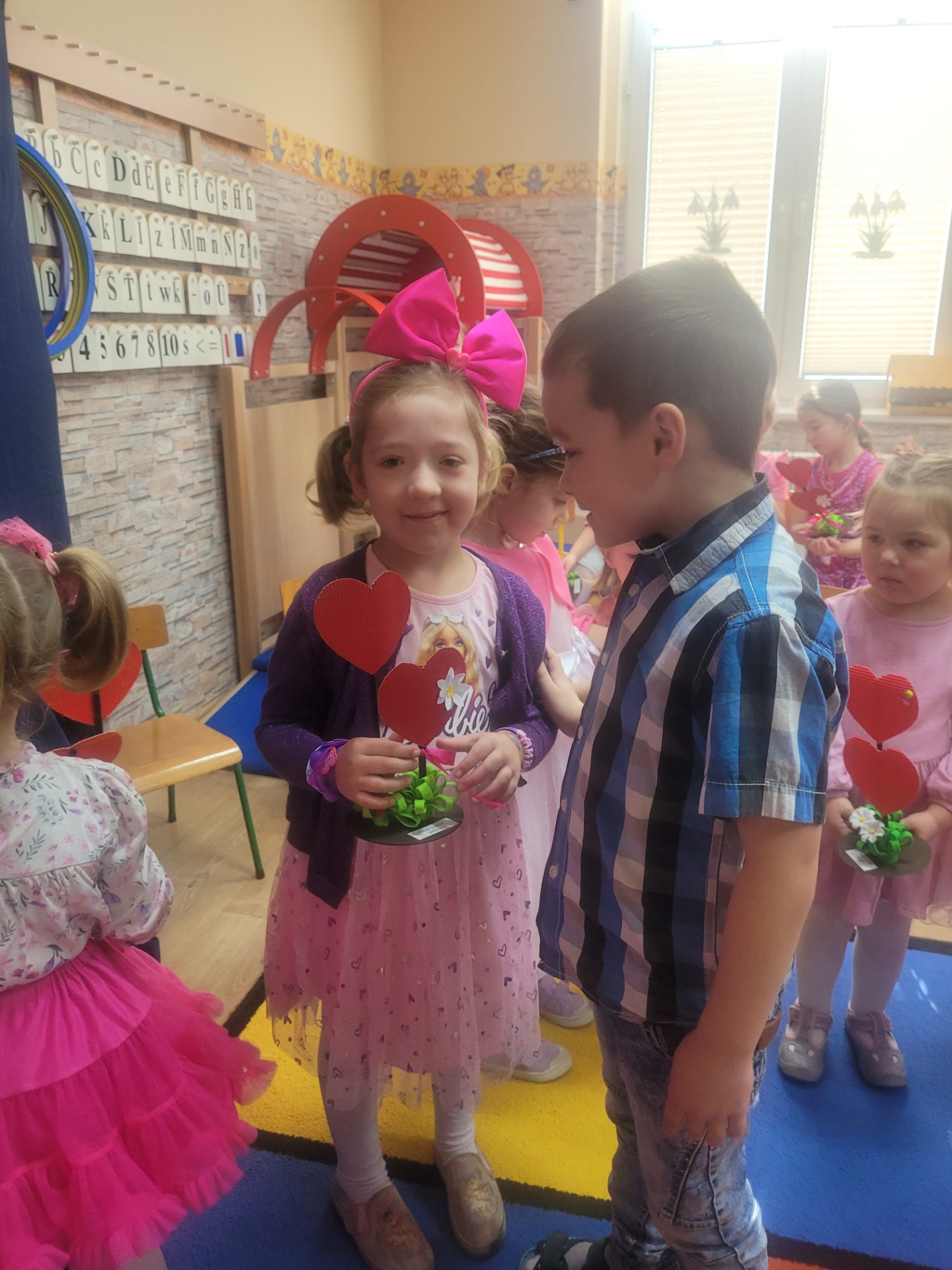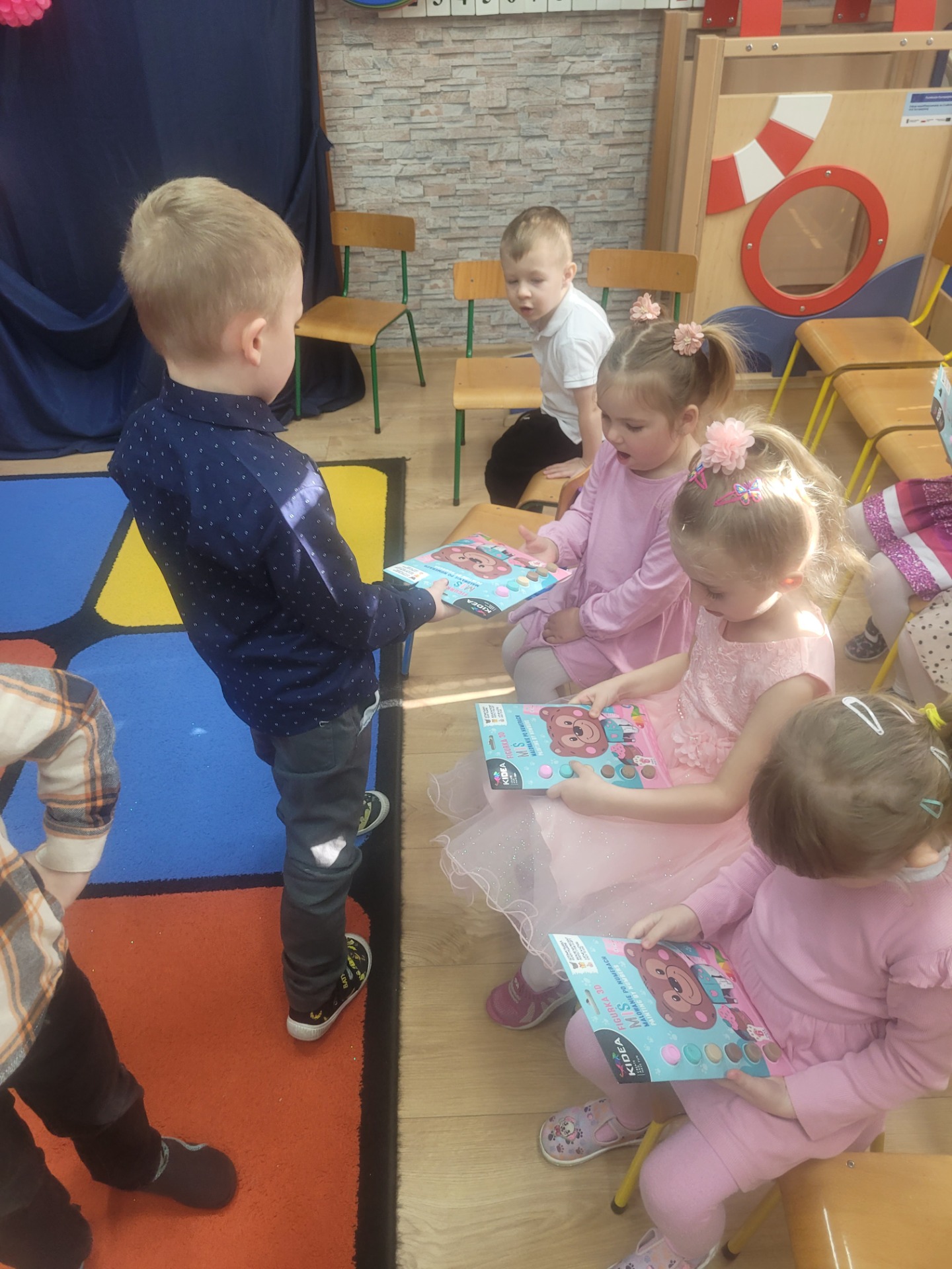 Dziewczynki przeniosły się do świata pełnego różu, uśmiechów i pozytywnej energii, a chłopcy stanęli na wysokości zadania i zadbali o to, by każda mała i duża dama czuła się wyjątkowo. Były serdeczne życzenia, uśmiechy oraz piękne upominki, które chłopcy wręczyli wszystkim dziewczynkom oraz paniom. To był dzień pełen radości, zabawy i wspólnego świętowania!
