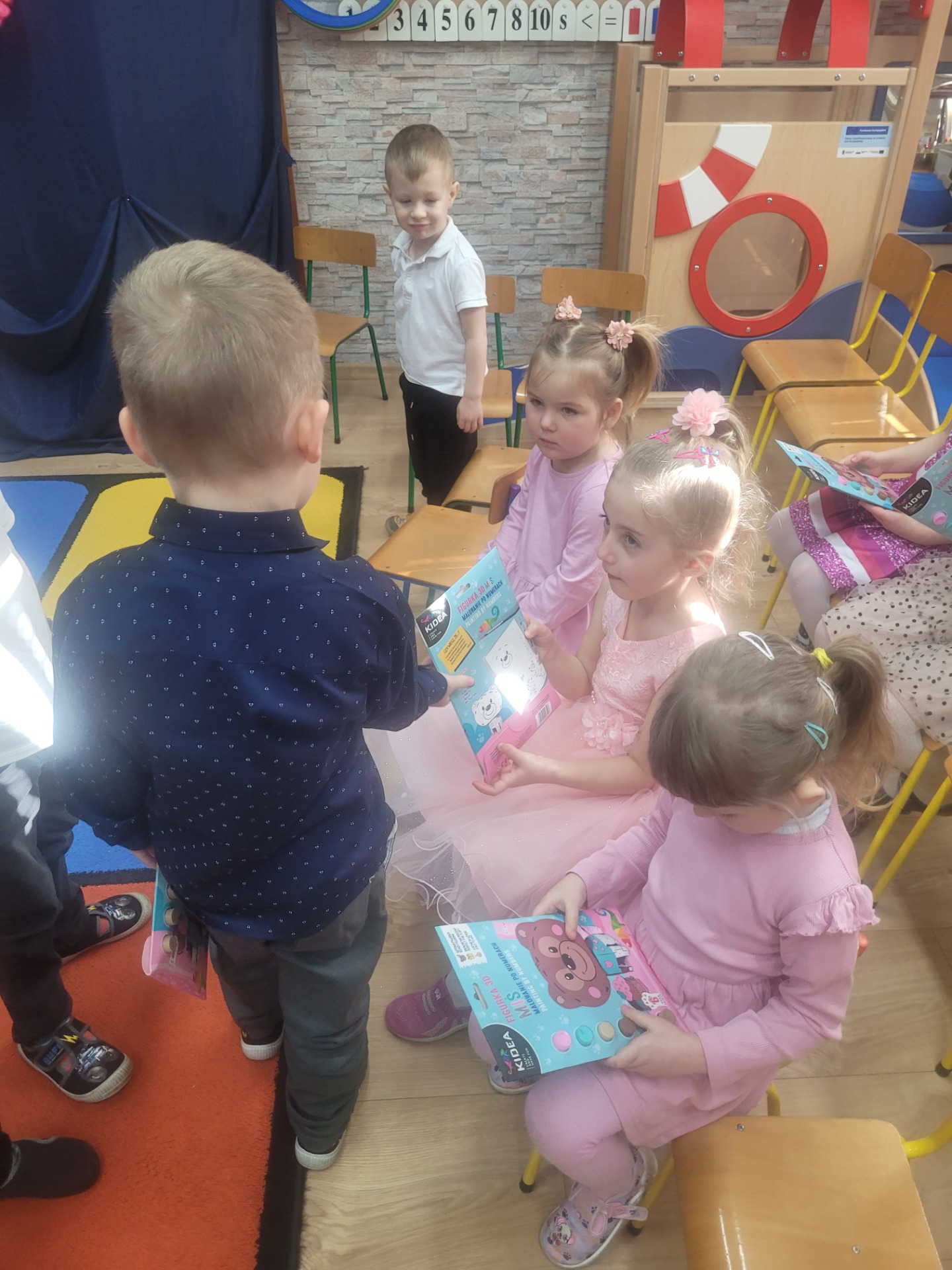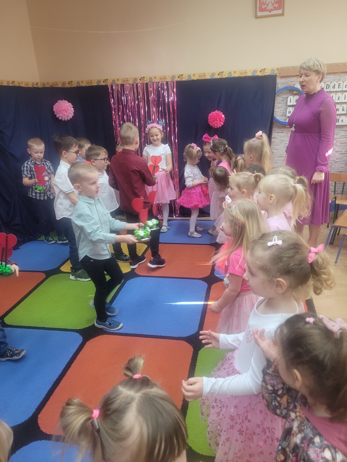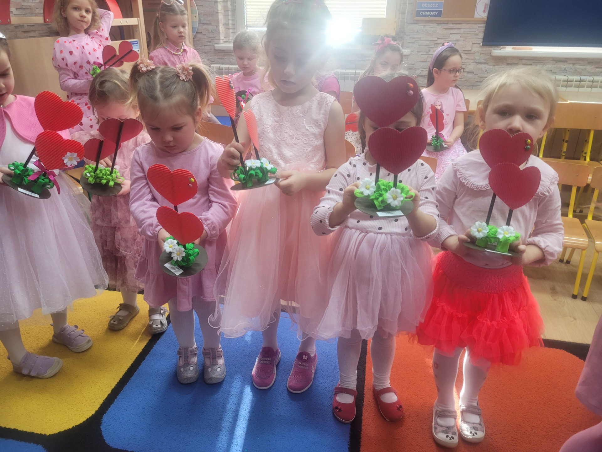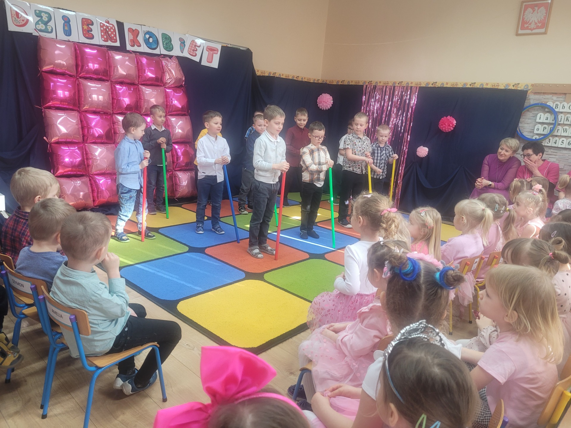 Dziewczynki przeniosły się do świata pełnego różu, uśmiechów i pozytywnej energii, a chłopcy stanęli na wysokości zadania i zadbali o to, by każda mała i duża dama czuła się wyjątkowo. Były serdeczne życzenia, uśmiechy oraz piękne upominki, które chłopcy wręczyli wszystkim dziewczynkom oraz paniom. To był dzień pełen radości, zabawy i wspólnego świętowania!