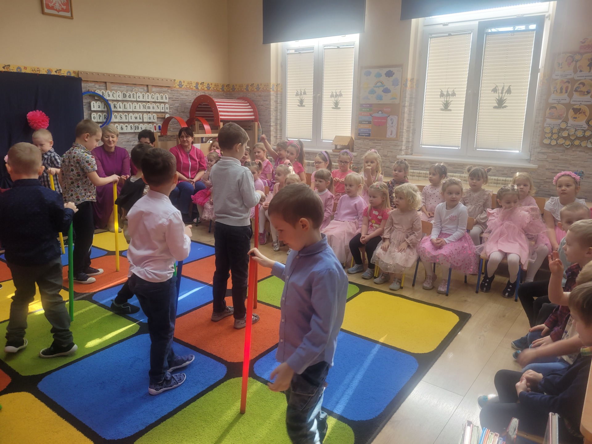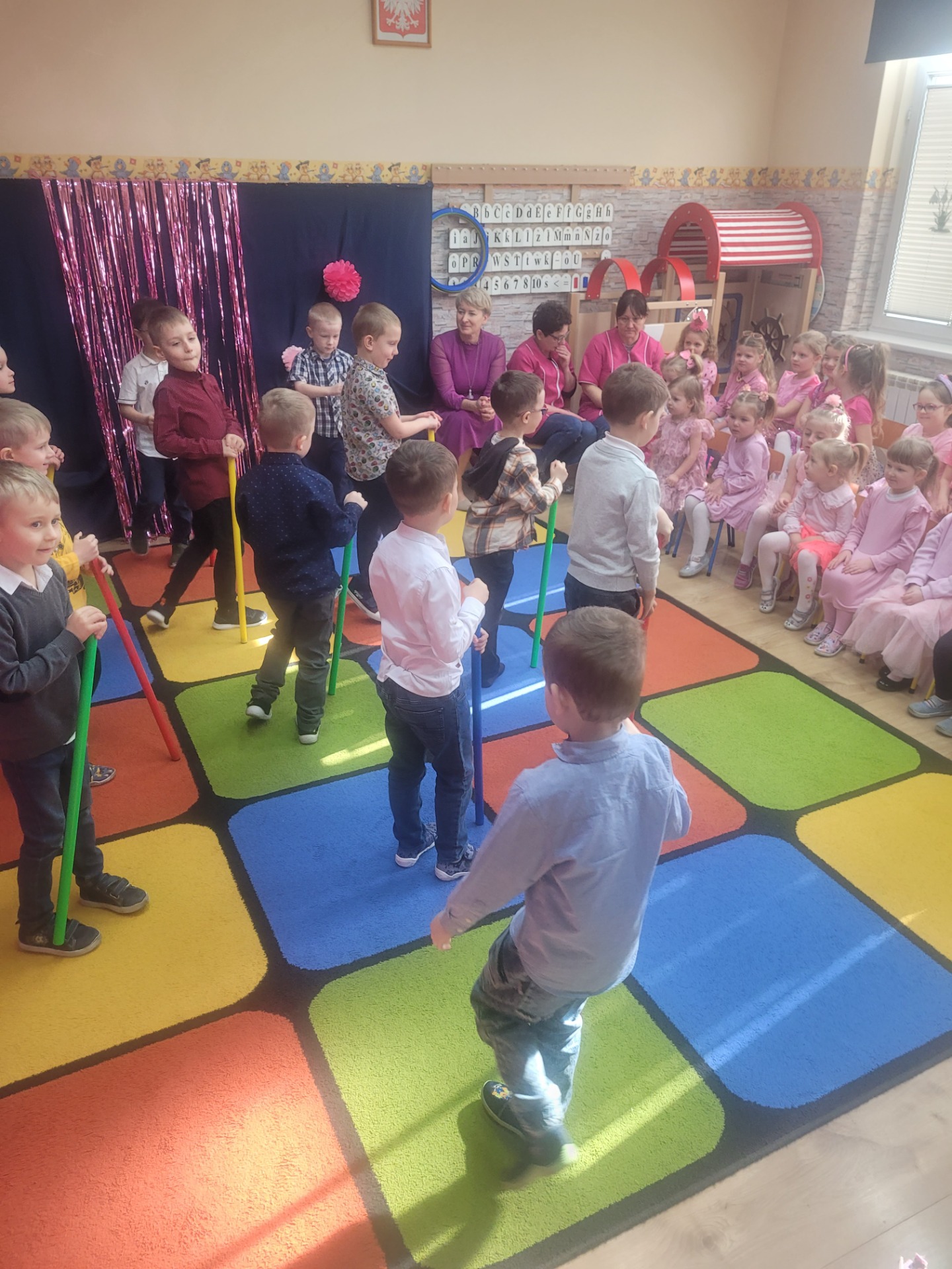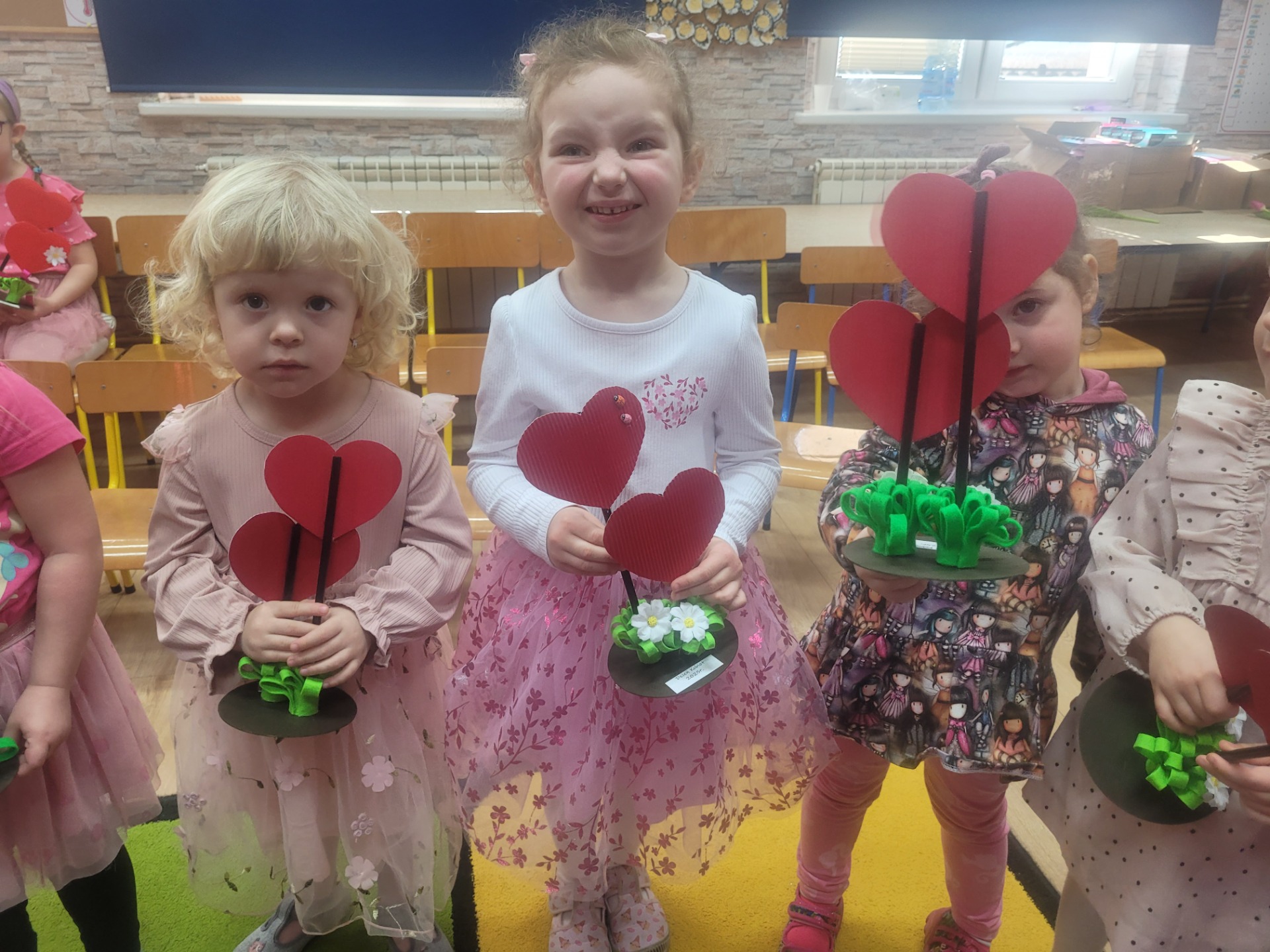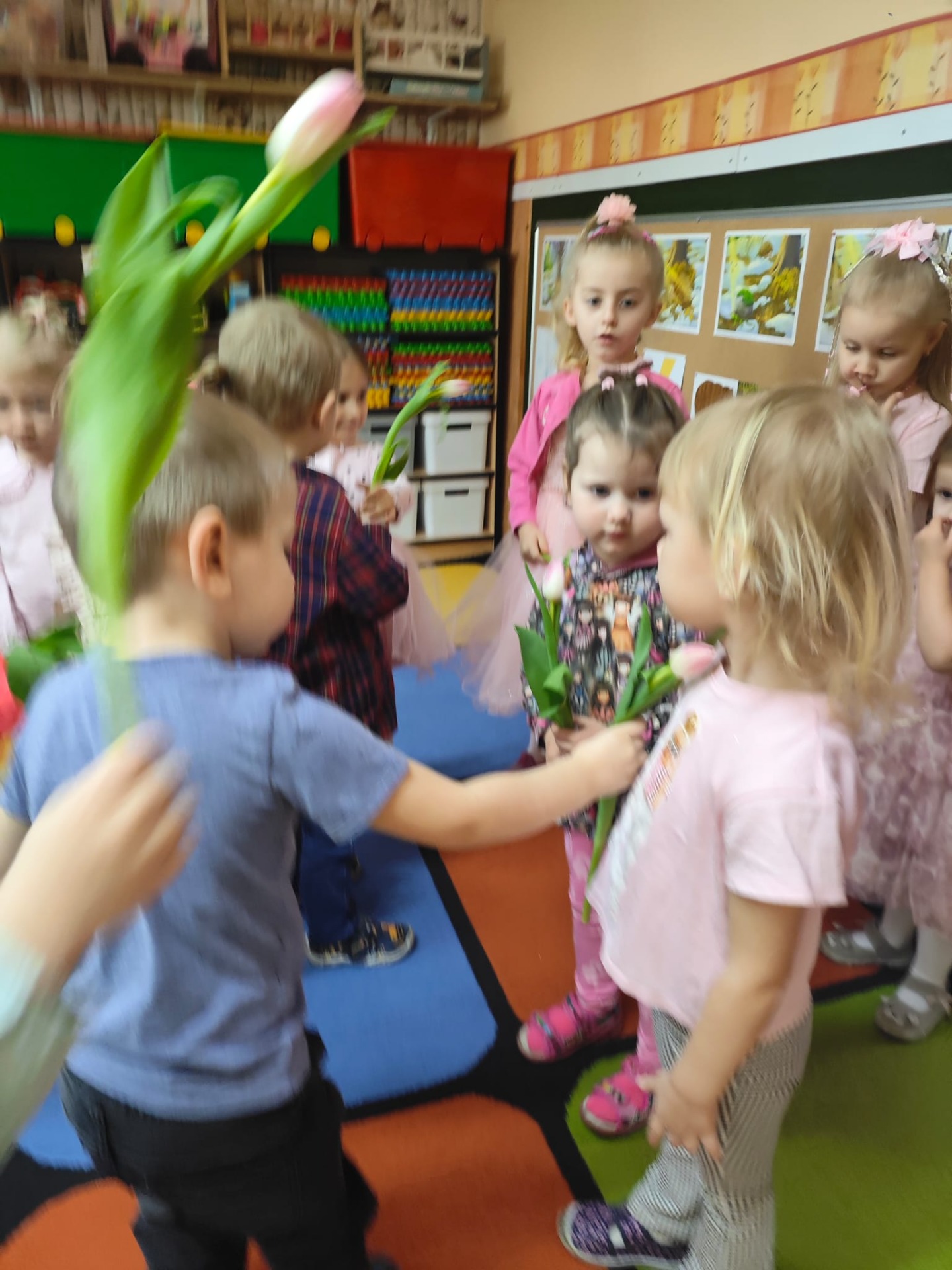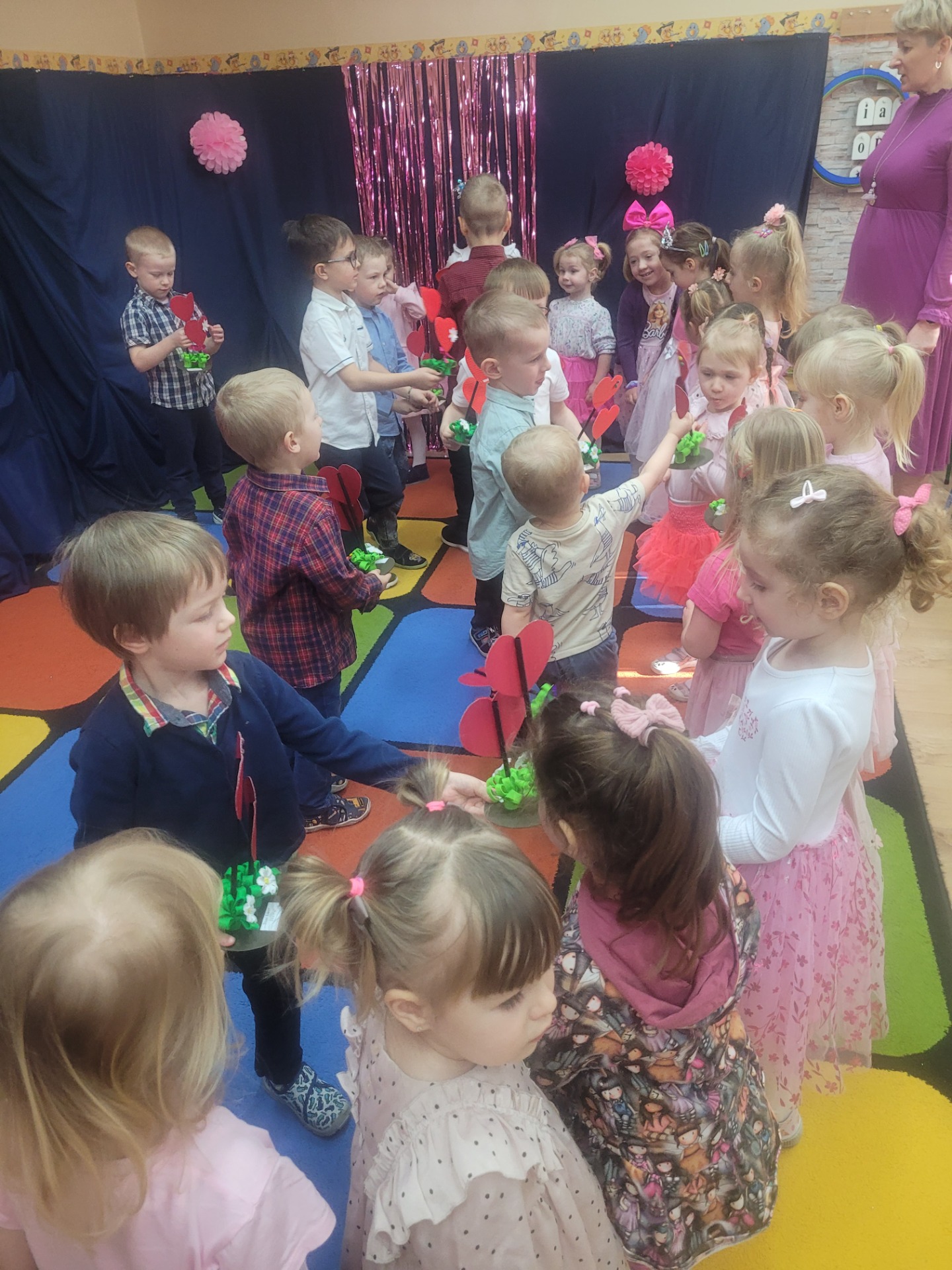 Dziewczynki przeniosły się do świata pełnego różu, uśmiechów i pozytywnej energii, a chłopcy stanęli na wysokości zadania i zadbali o to, by każda mała i duża dama czuła się wyjątkowo. Były serdeczne życzenia, uśmiechy oraz piękne upominki, które chłopcy wręczyli wszystkim dziewczynkom oraz paniom. To był dzień pełen radości, zabawy i wspólnego świętowania!