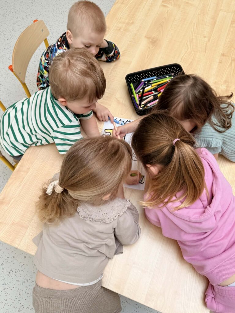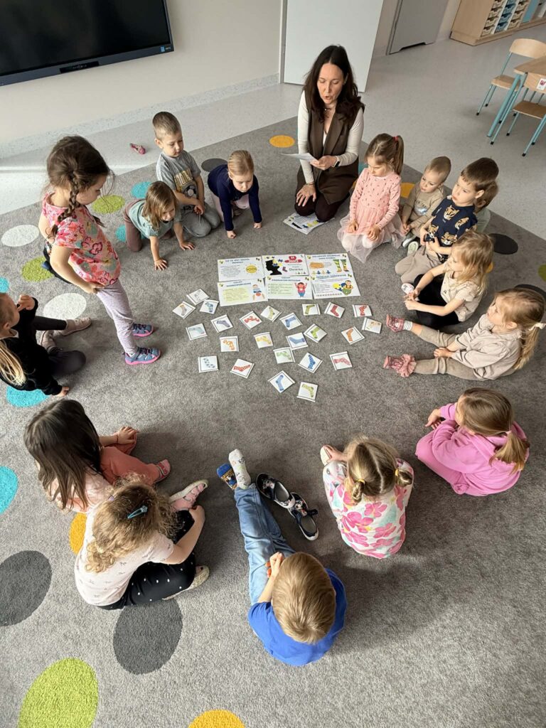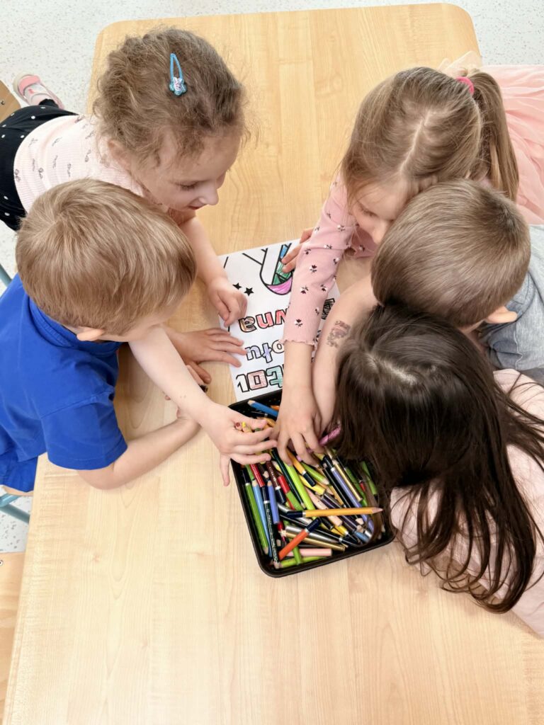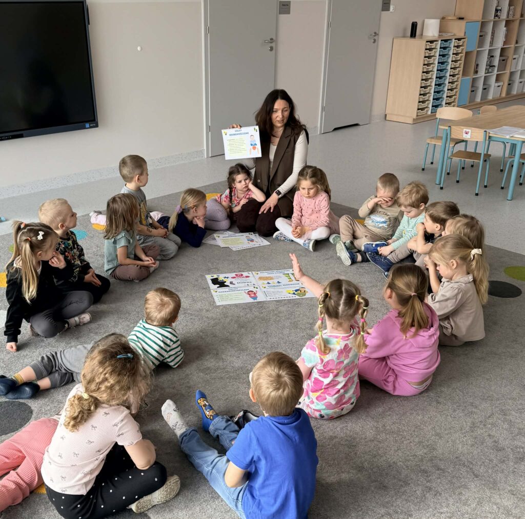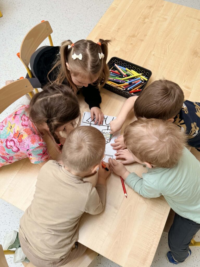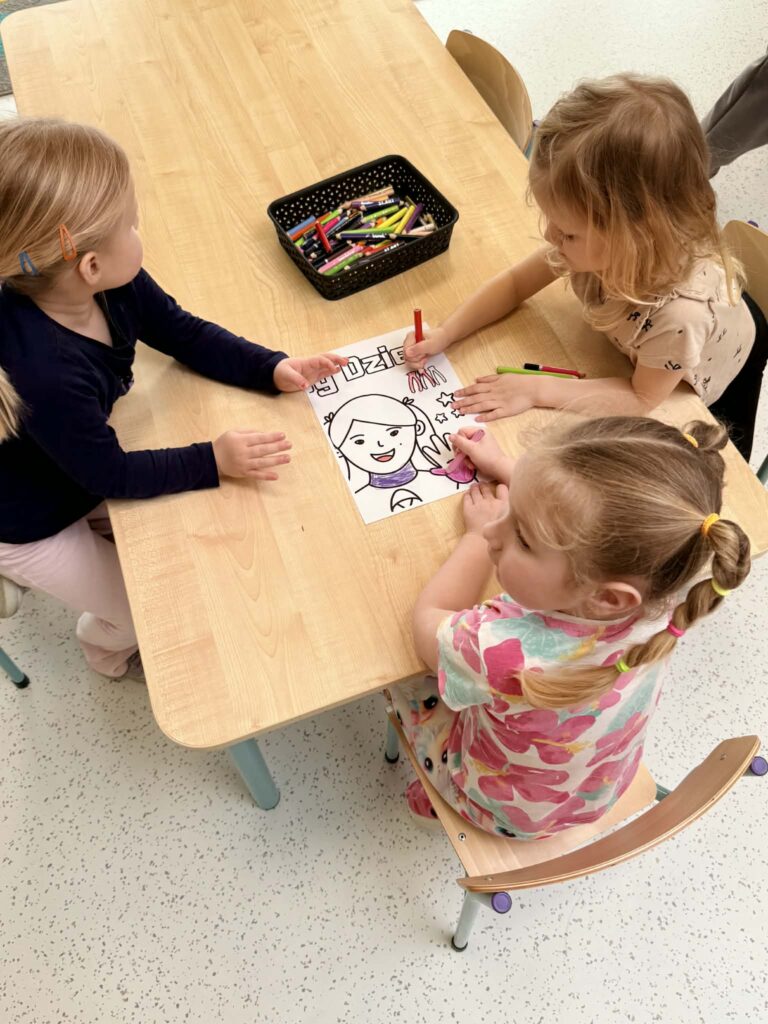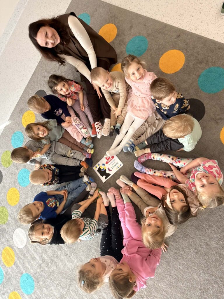Pracując w grupach dzieci kolorowały kolorowankę XXL ucząc się współpracy i dzielenia zadaniami. Nie zabrakło również zabaw rozwijających myślenie – dzieci wyszukiwały skarpetki według podanych wskazówek oraz obejrzały bajkę o dzieciach z zespołem Downa. Celem zajęć było uwrażliwienie dzieci na różnorodność i potrzebę akceptacji innych osób, budowanie szacunku i empatii oraz kształtowanie pozytywnego stosunku do odmienności.