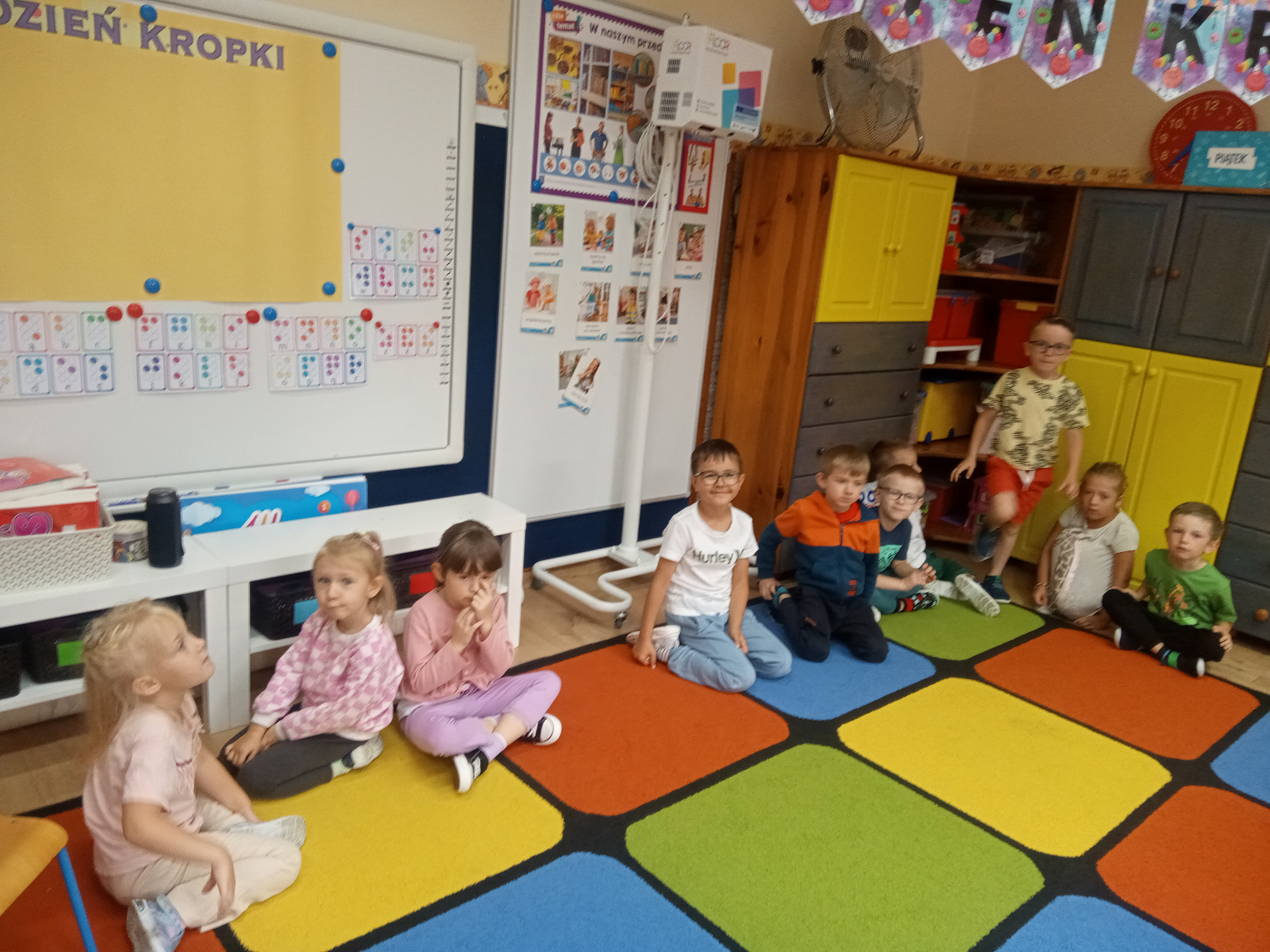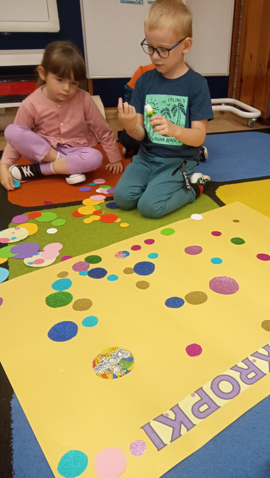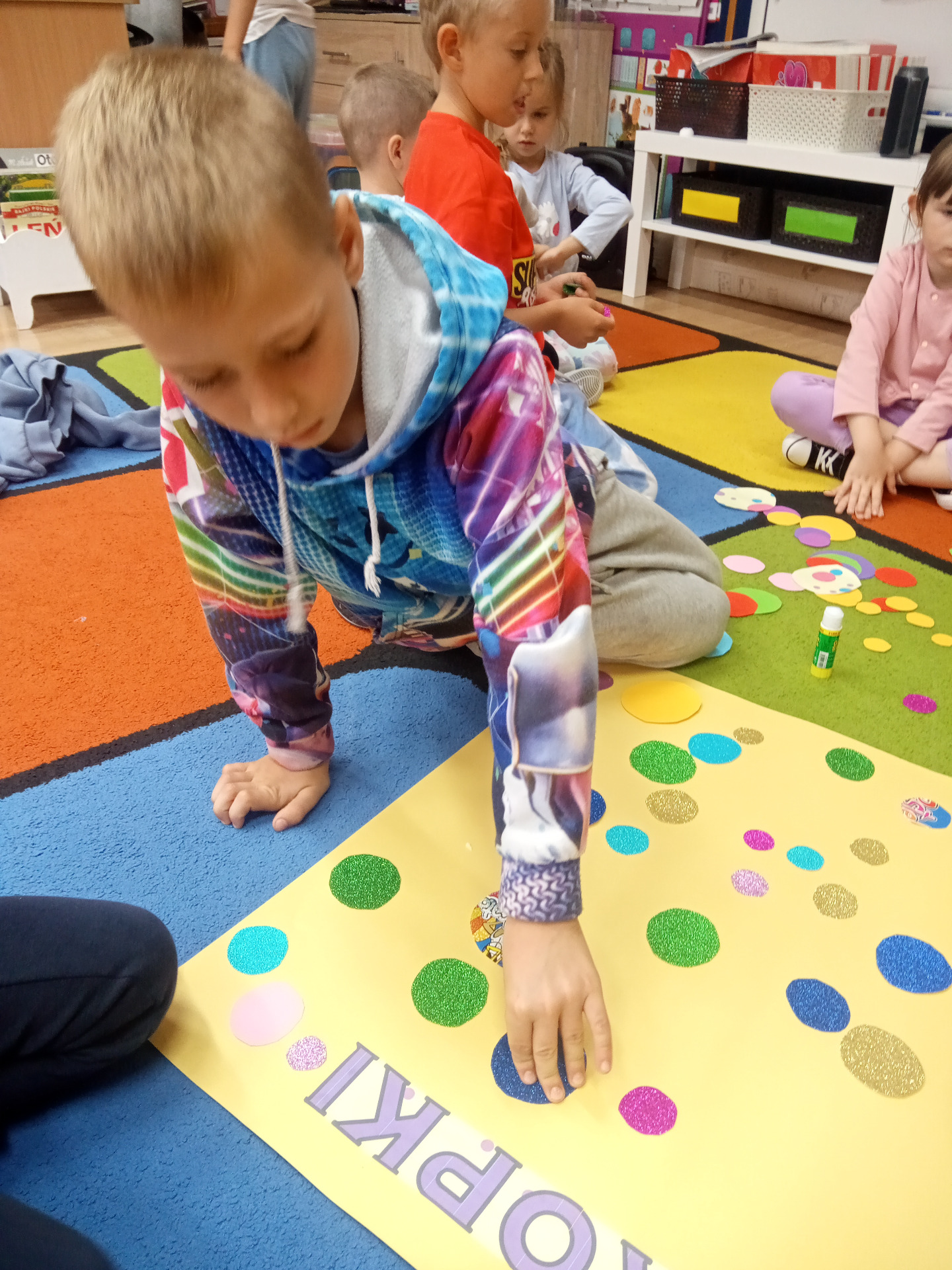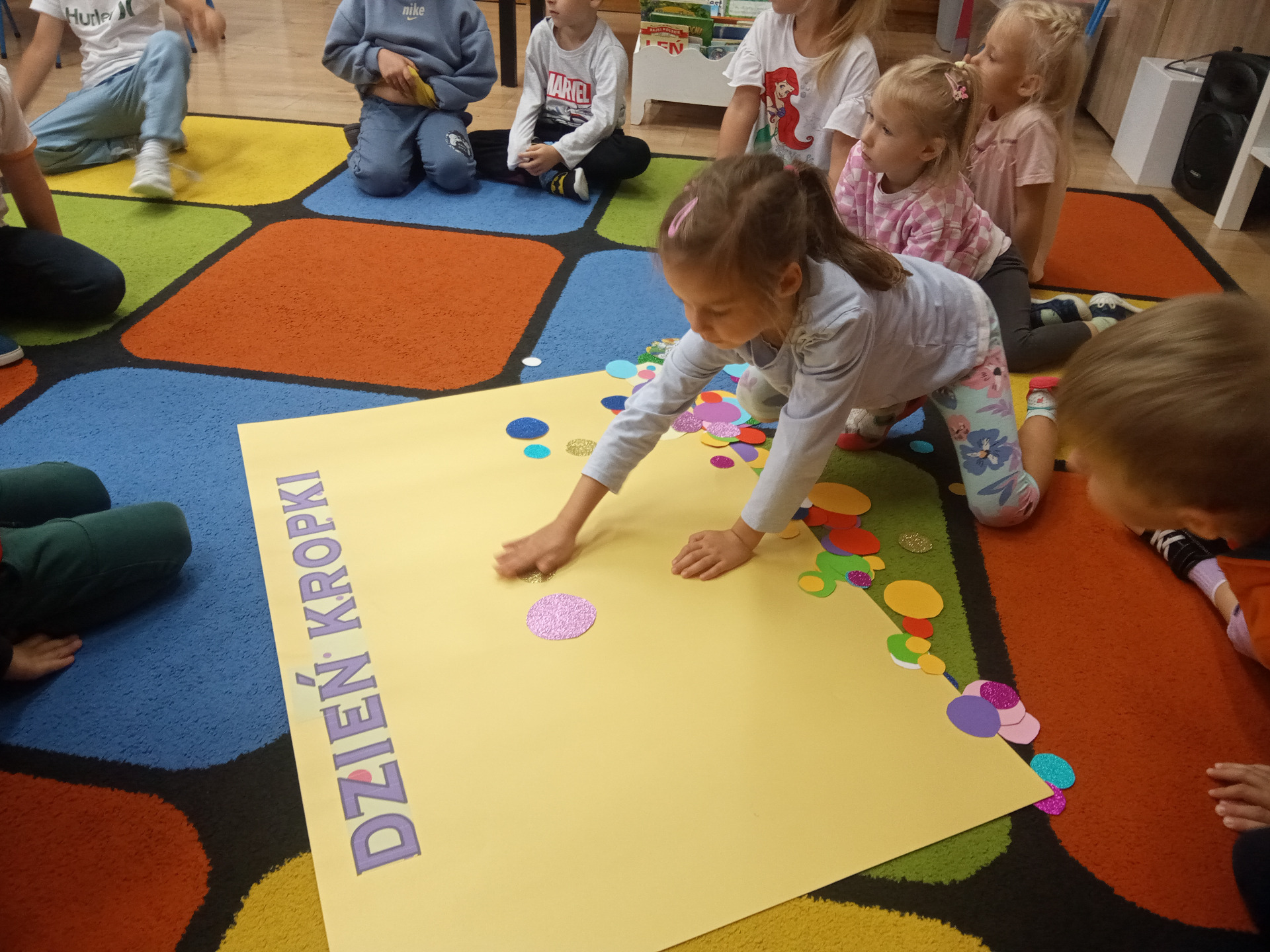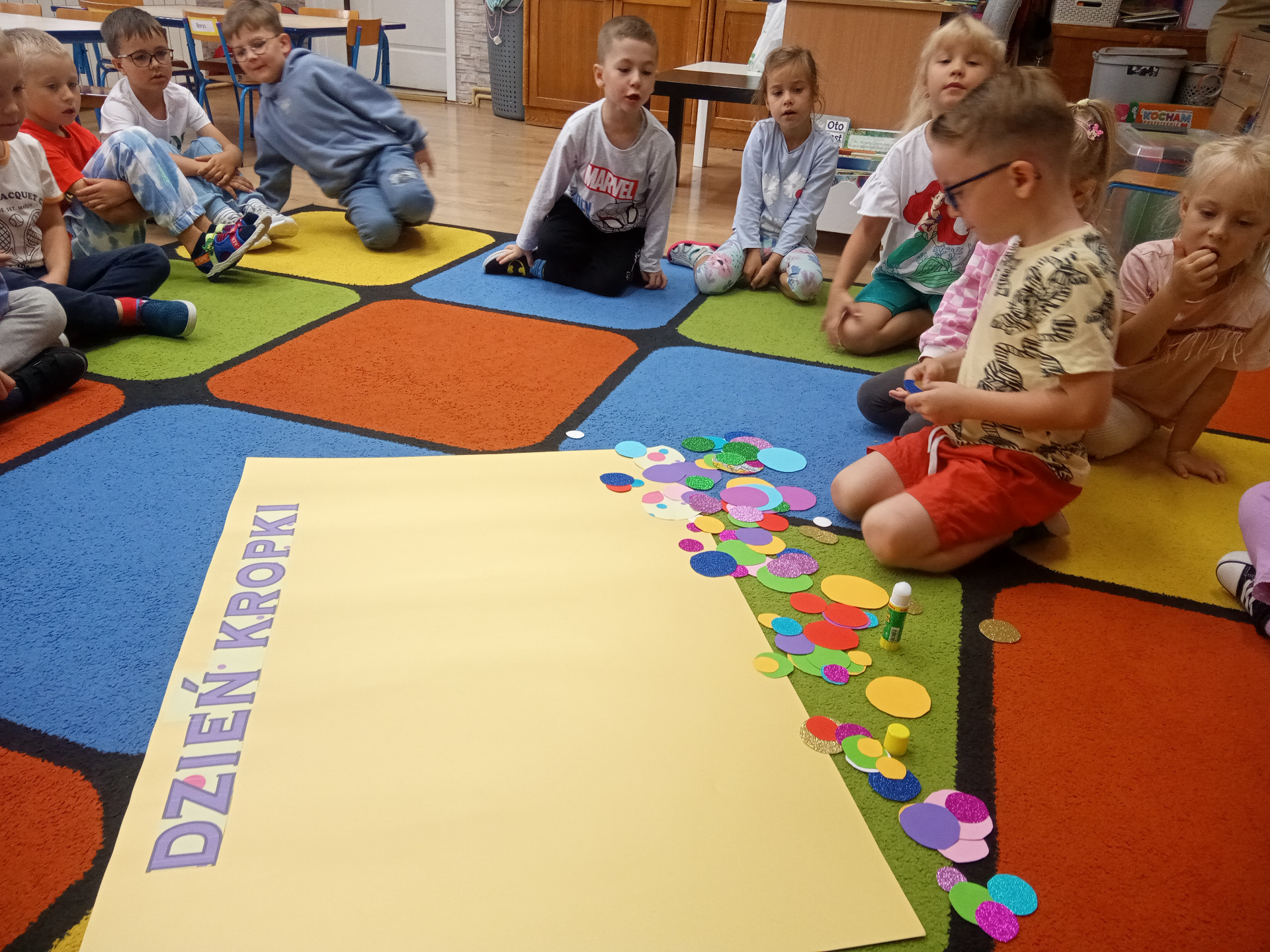 Głównym celem dzisiejszego dnia było wprowadzenie dzieci w tematykę pewności siebie oraz zachęcenie ich do wyrażania swoich pomysłów i talentów w sposób twórczy. Każde dziecko miało za zadanie stworzyć „kropkowe” dzieło sztuki. Dzieci uczestniczyły także w grach i zabawach integracyjnych.