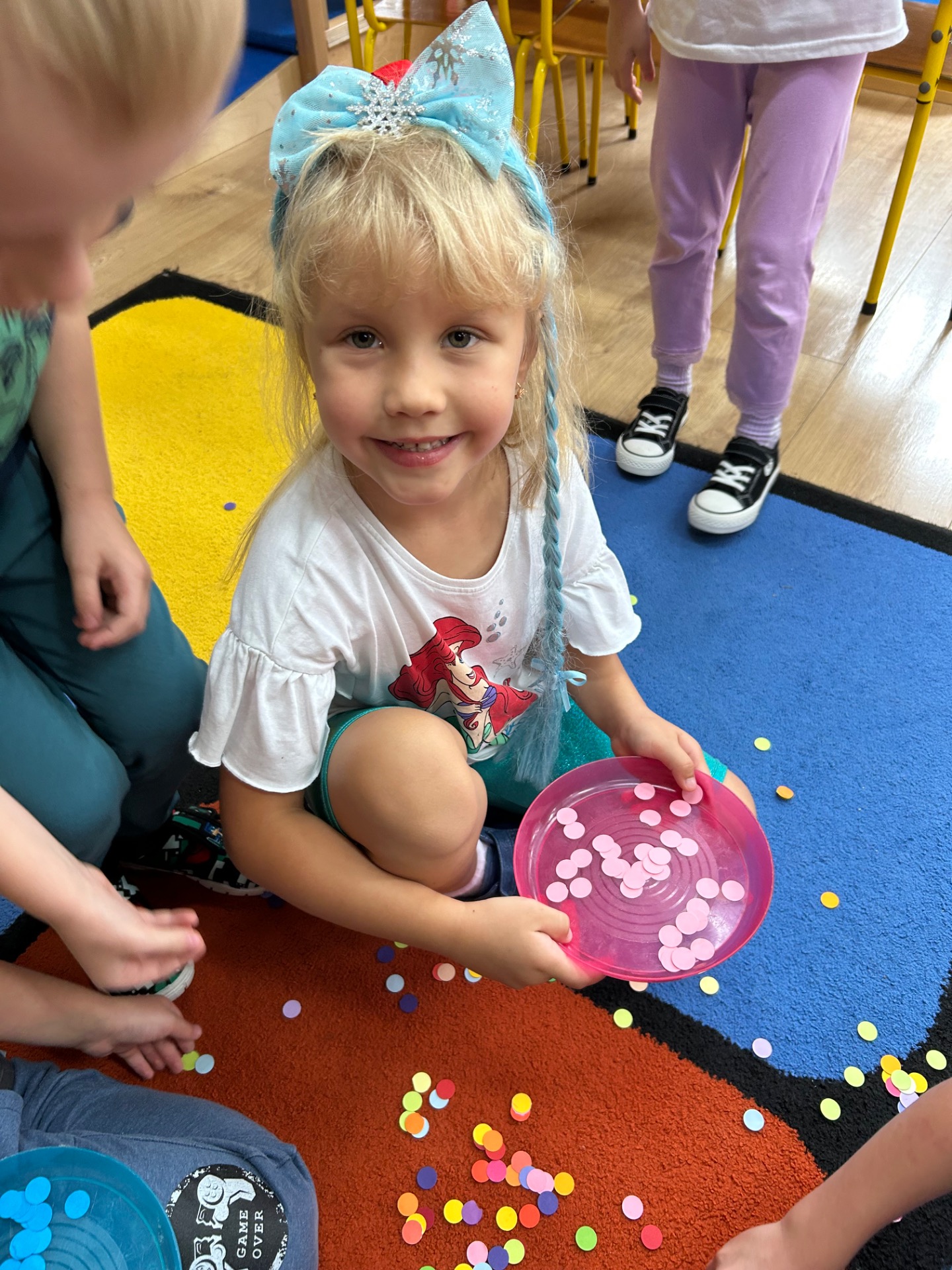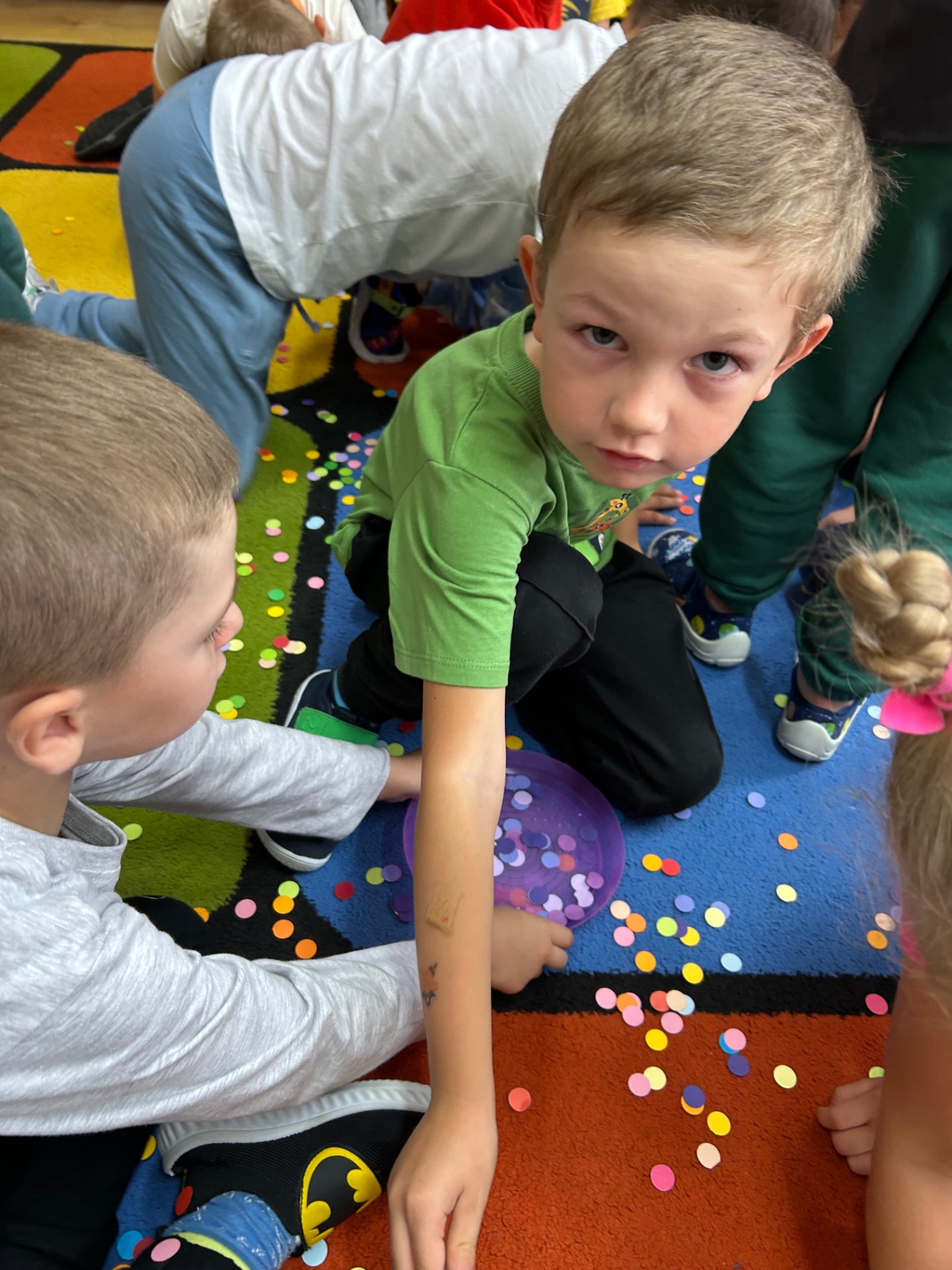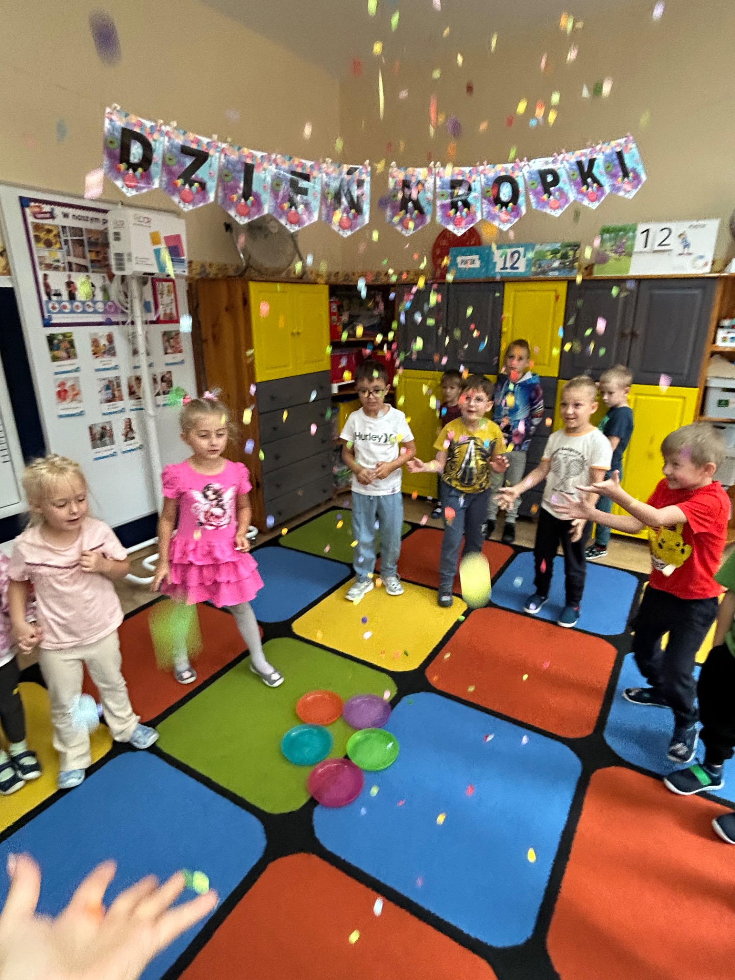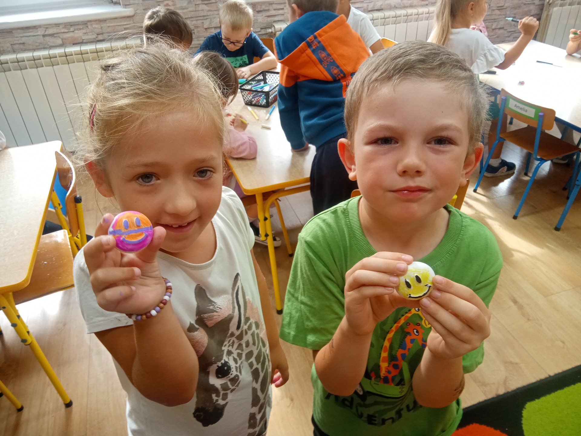Głównym celem dzisiejszego dnia było wprowadzenie dzieci w tematykę pewności siebie oraz zachęcenie ich do wyrażania swoich pomysłów i talentów w sposób twórczy. Każde dziecko miało za zadanie stworzyć „kropkowe” dzieło sztuki. Dzieci uczestniczyły także w grach i zabawach integracyjnych.