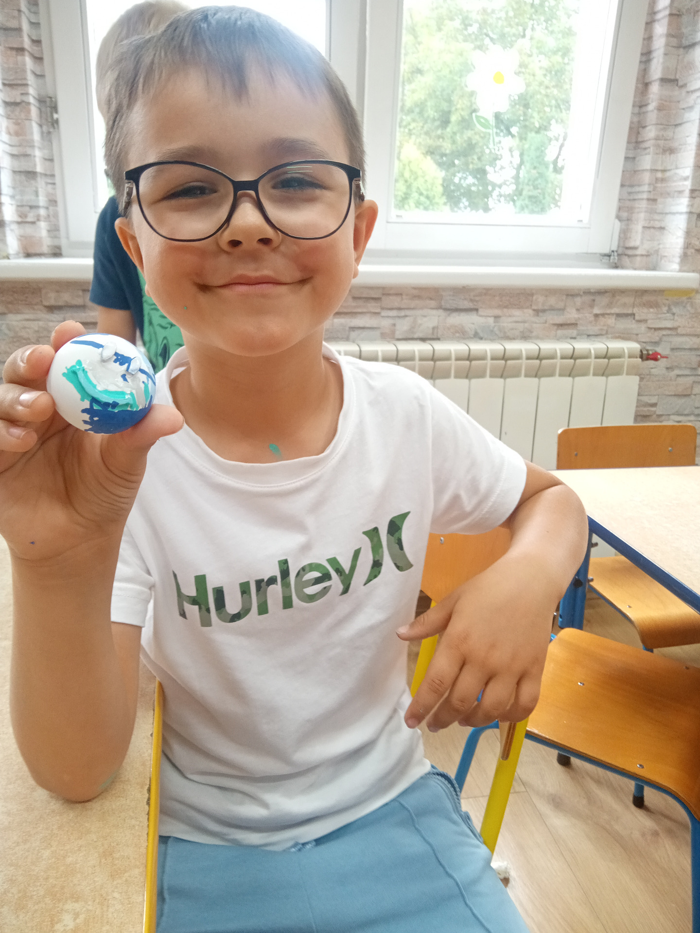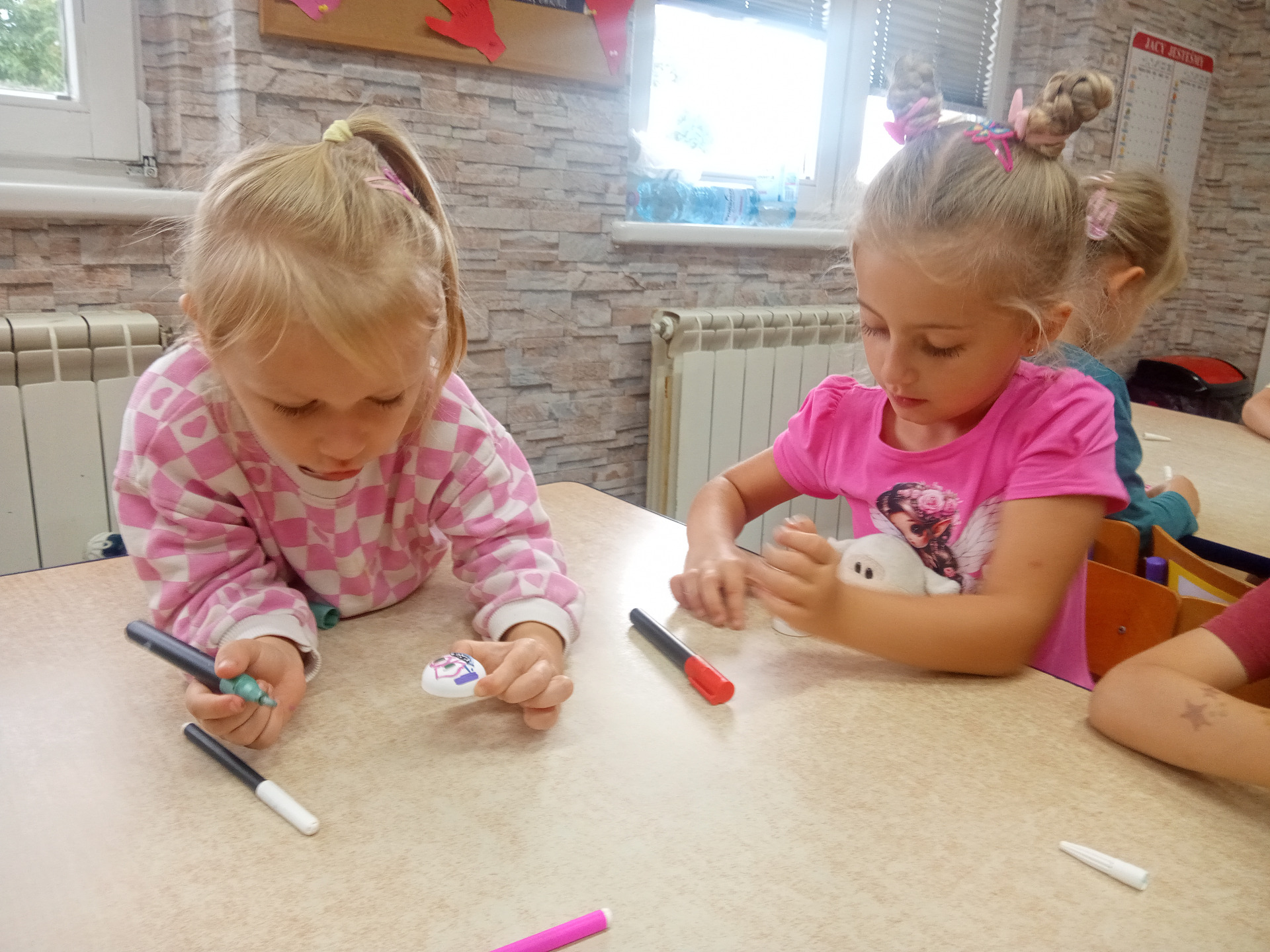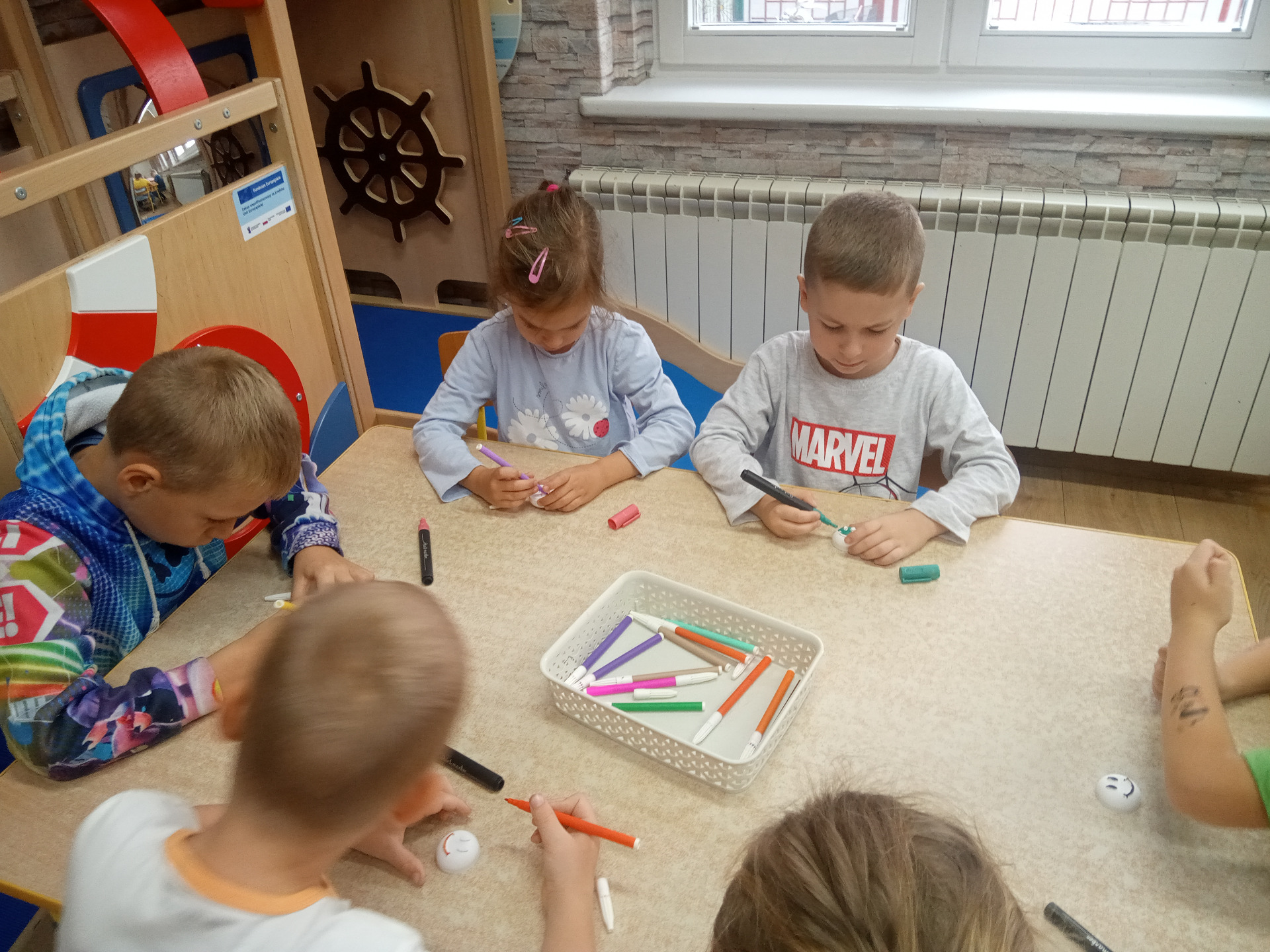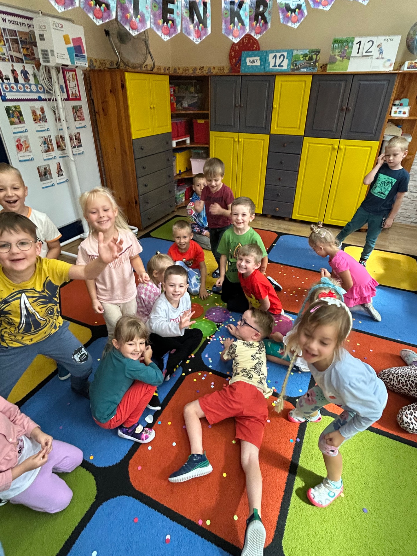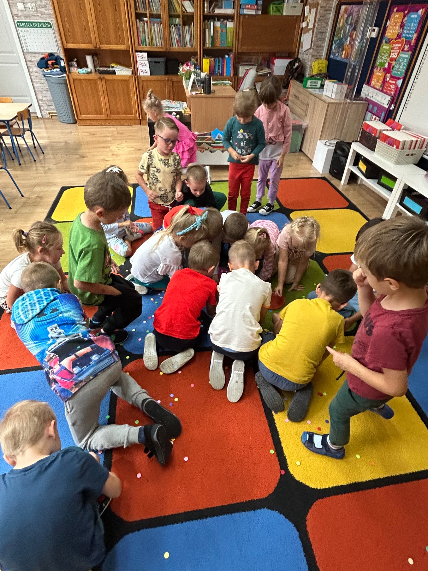 Głównym celem dzisiejszego dnia było wprowadzenie dzieci w tematykę pewności siebie oraz zachęcenie ich do wyrażania swoich pomysłów i talentów w sposób twórczy. Każde dziecko miało za zadanie stworzyć „kropkowe” dzieło sztuki. Dzieci uczestniczyły także w grach i zabawach integracyjnych.