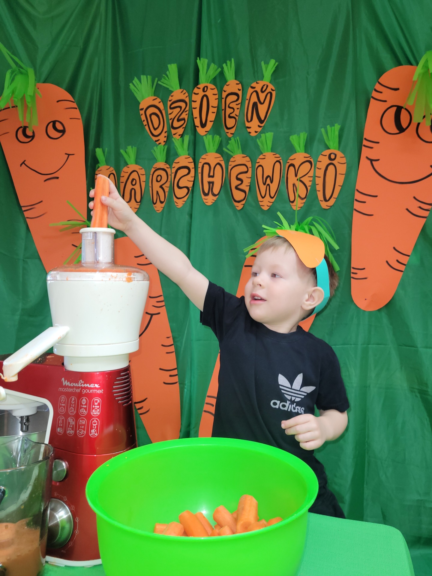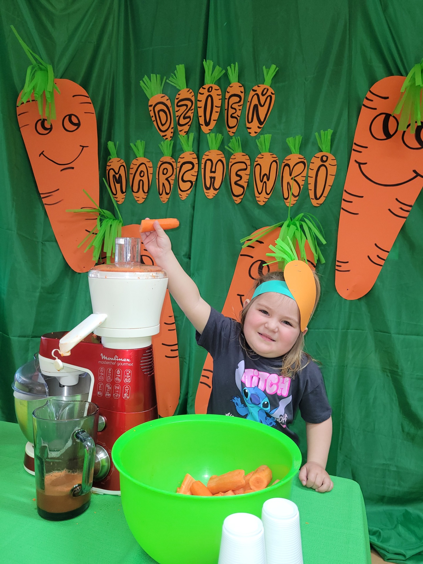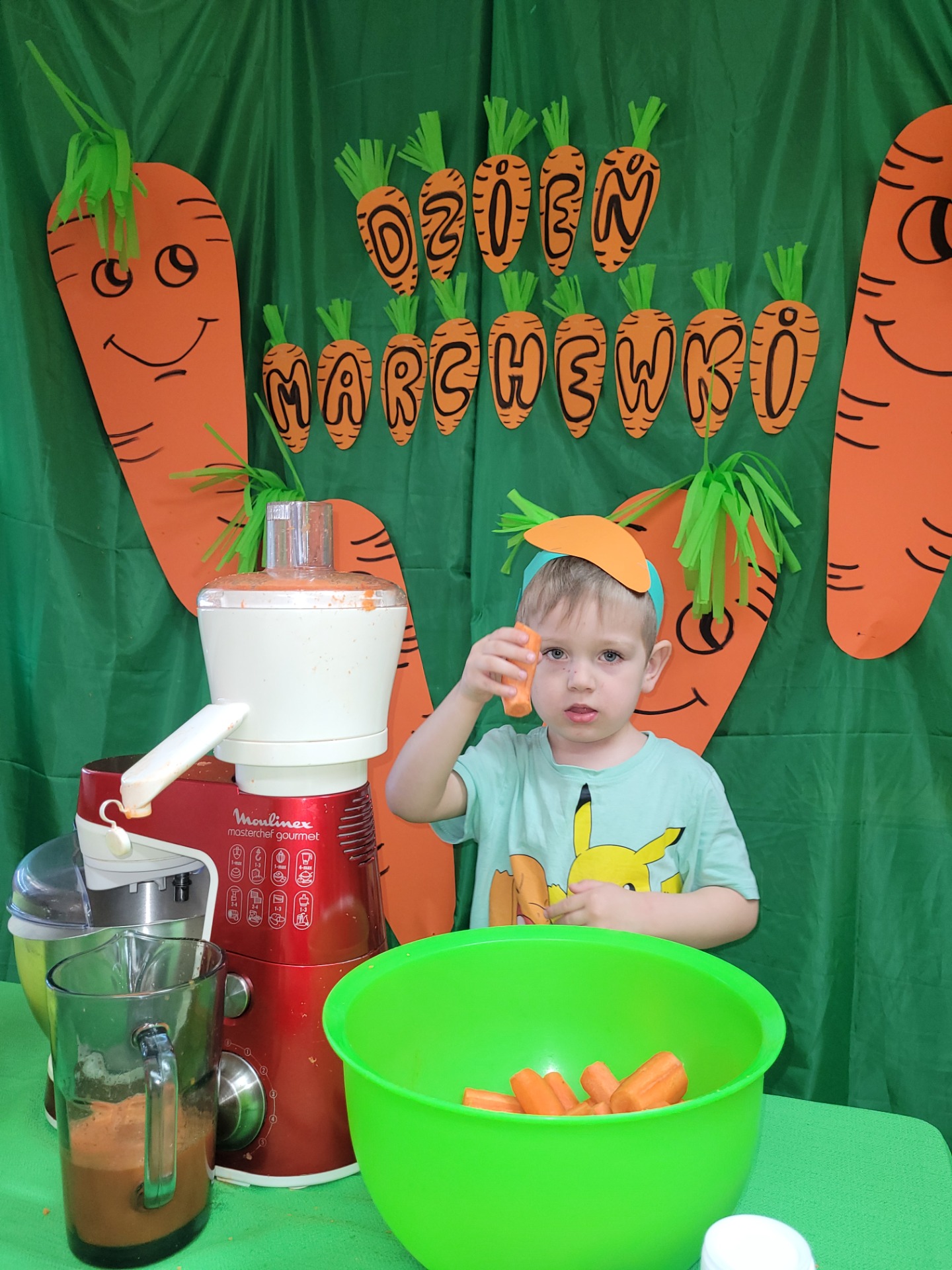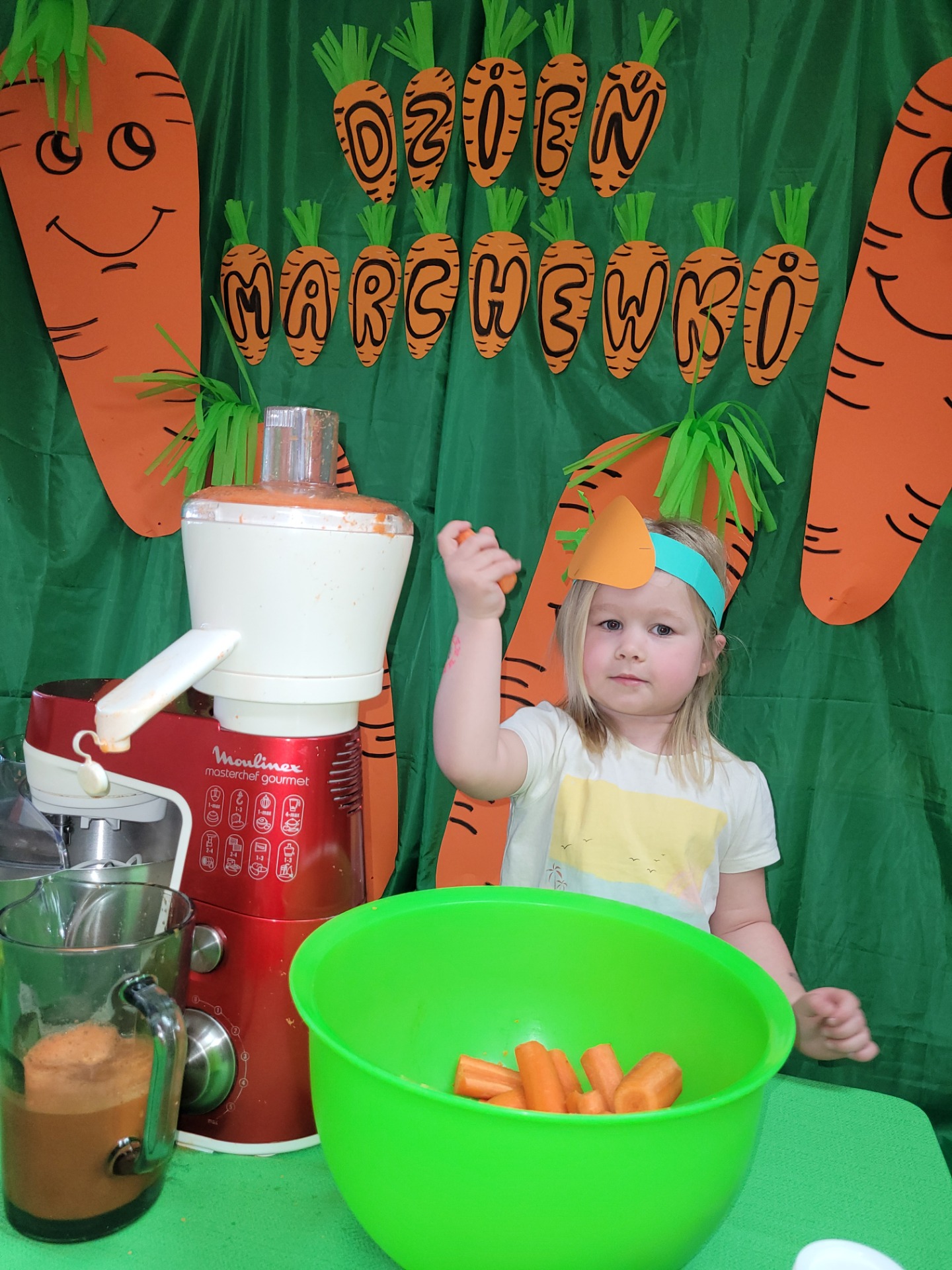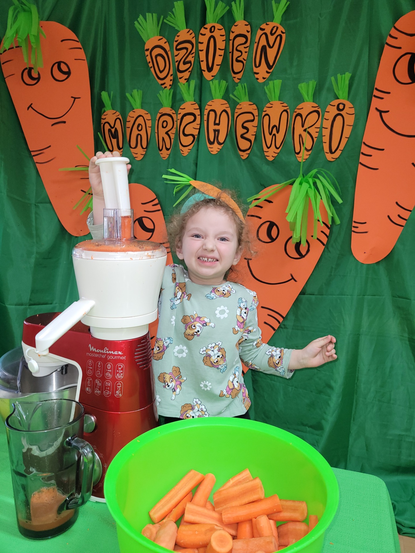 W piątek 4 kwietnia obchodziliśmy w przedszkolu ” Dzień Marchewki „. Wszystkie działania były związane z marchewką – rozmowy na temat marchewki, zabawy ruchowe, praca plastyczna i wspólna produkcja soku marchwiowego. Było dużo radości, śmiechu, zdrowia i witamin.