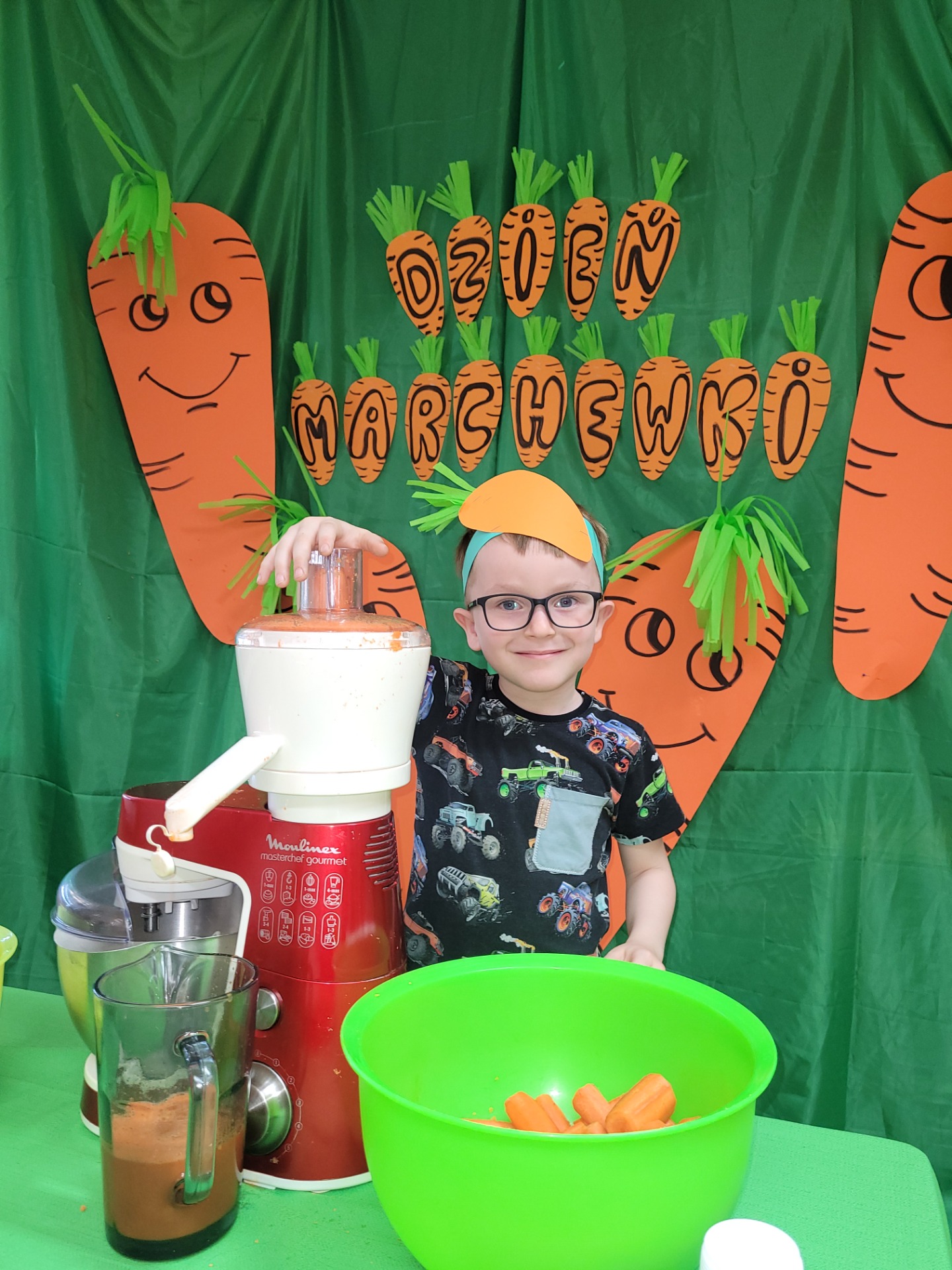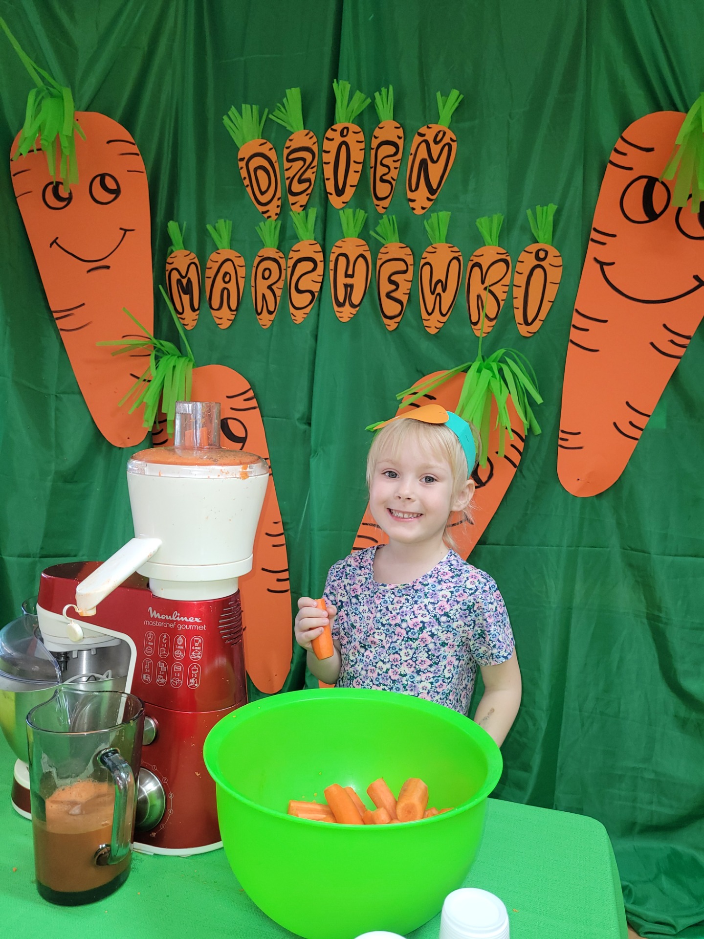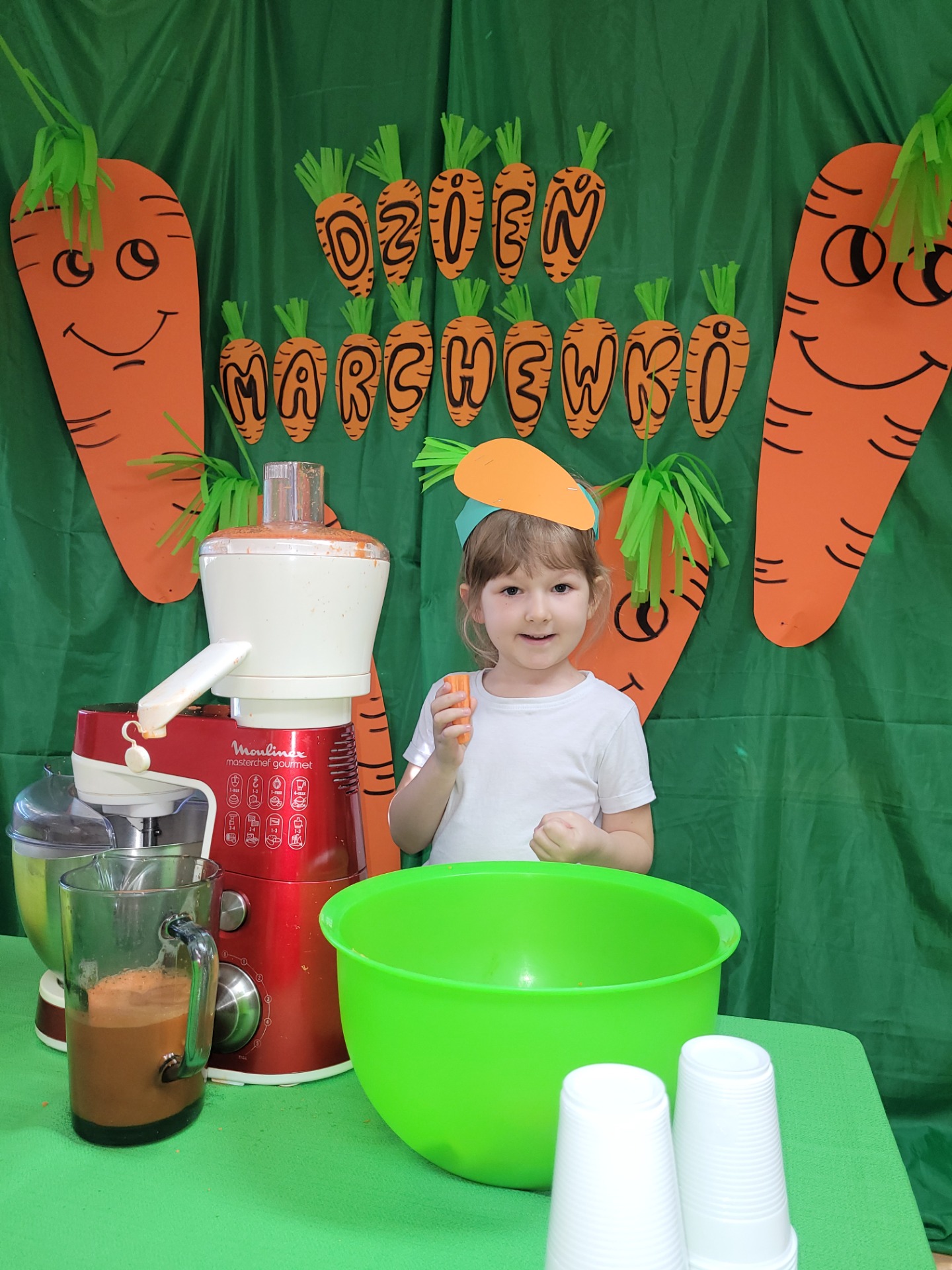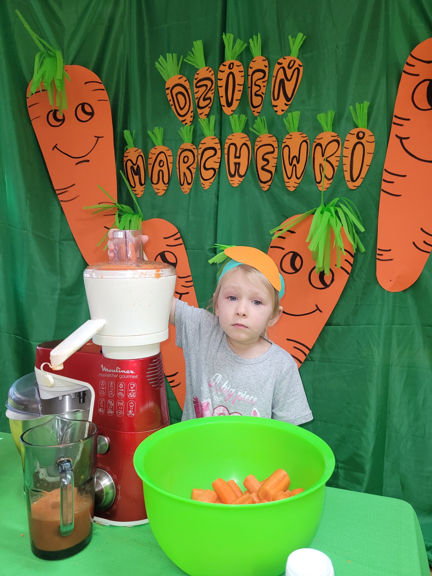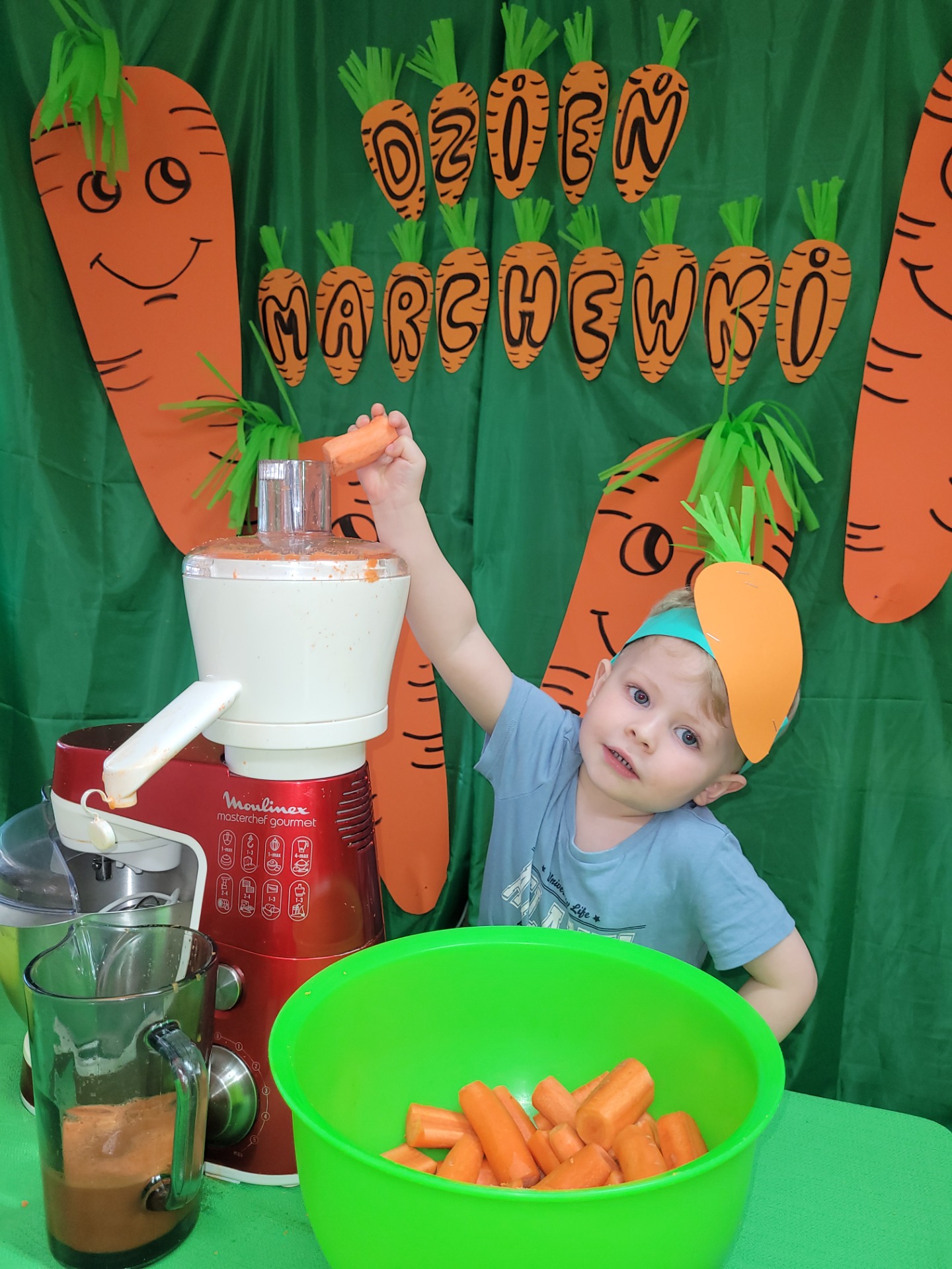 W piątek 4 kwietnia obchodziliśmy w przedszkolu ” Dzień Marchewki „. Wszystkie działania były związane z marchewką – rozmowy na temat marchewki, zabawy ruchowe, praca plastyczna i wspólna produkcja soku marchwiowego. Było dużo radości, śmiechu, zdrowia i witamin.