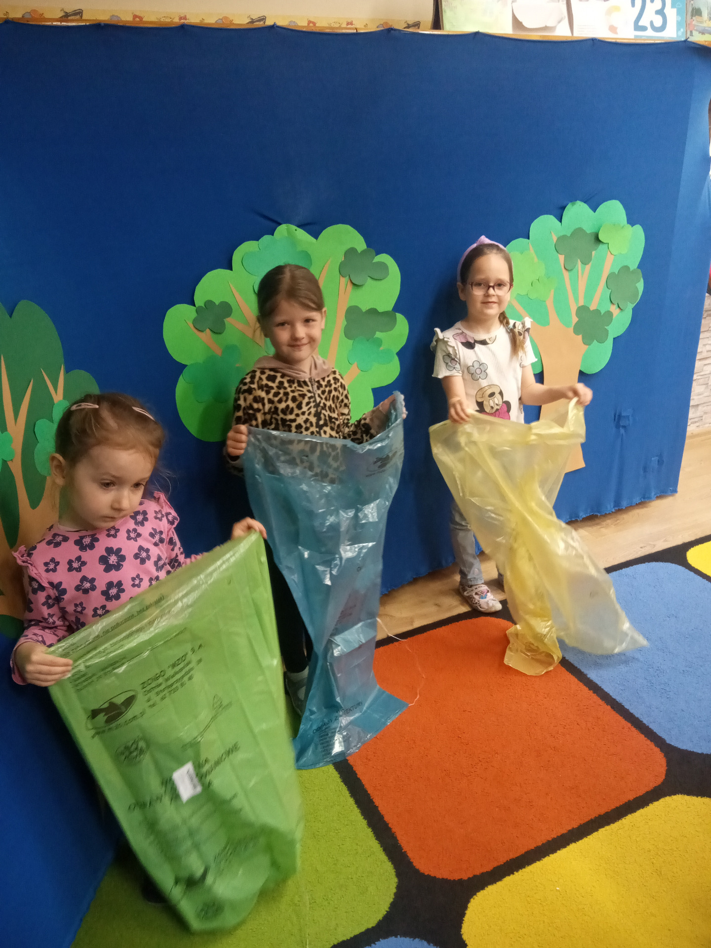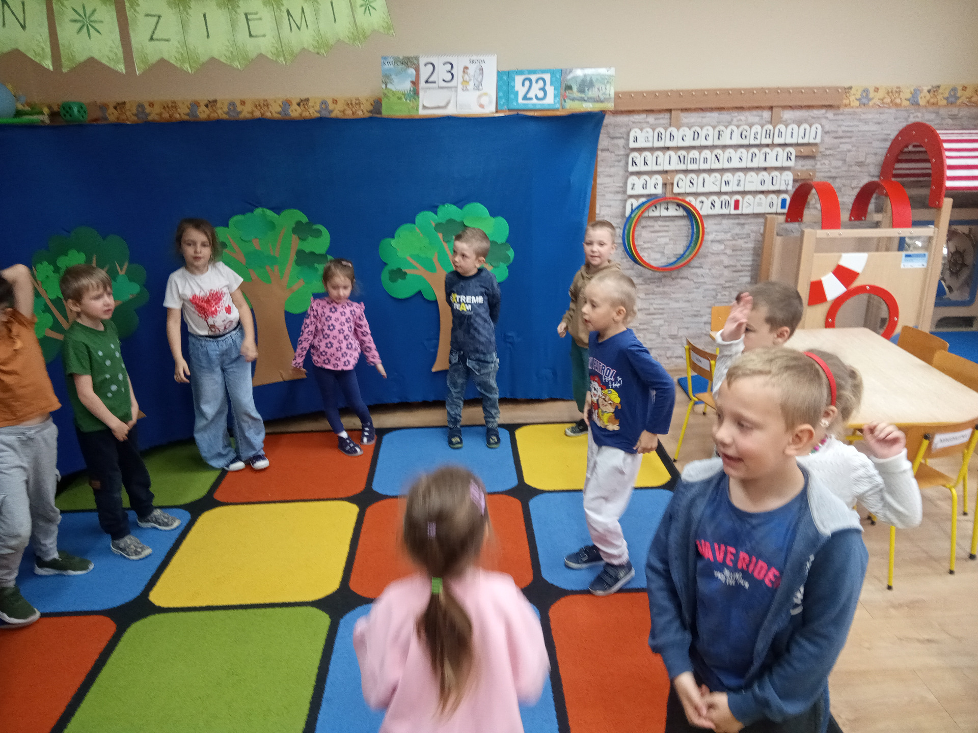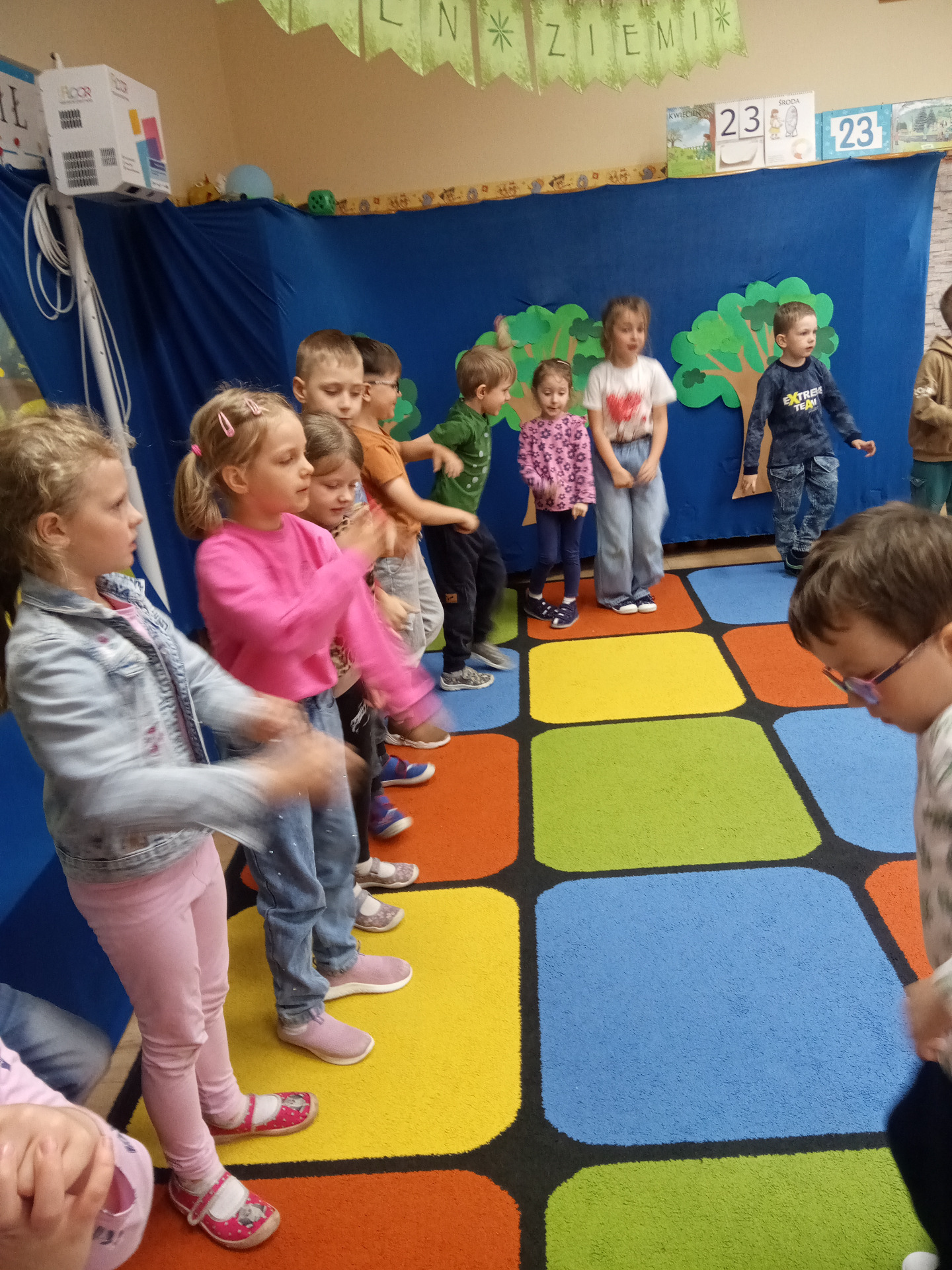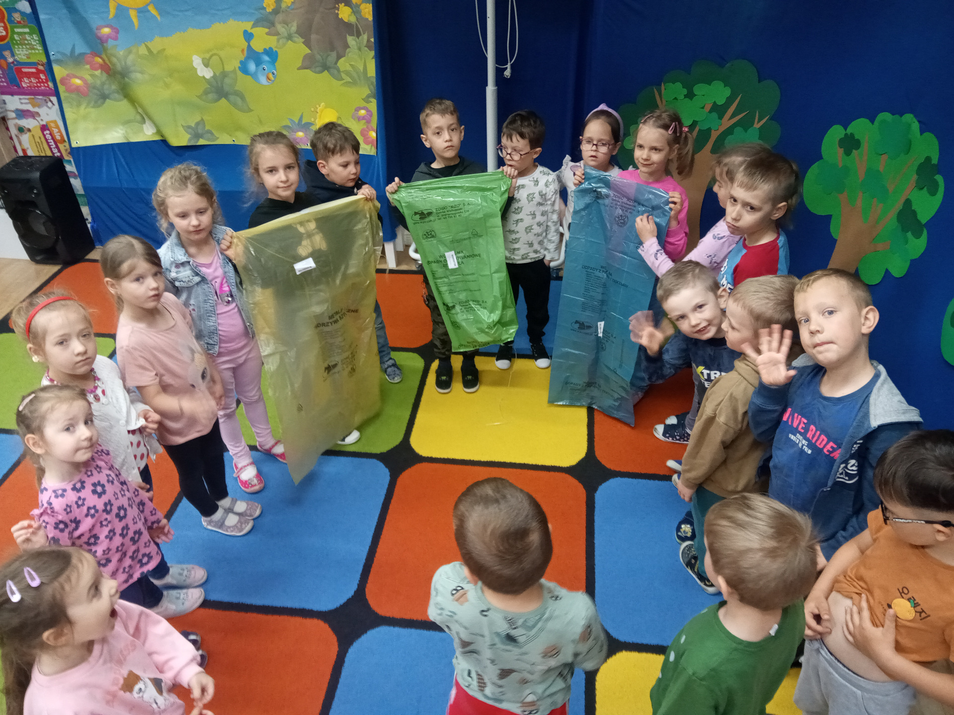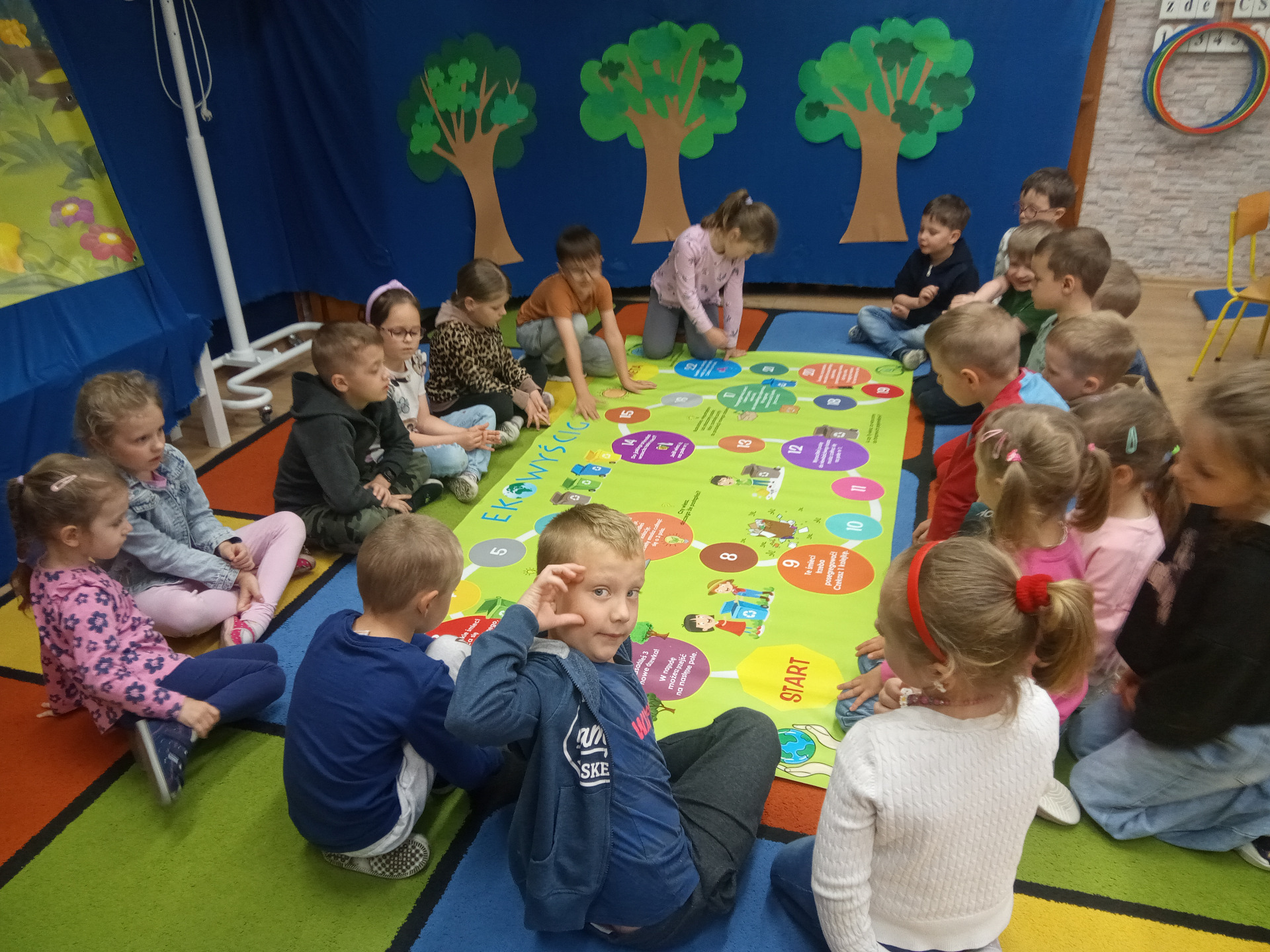 W miniony piątek grupa „Motylków” świętowała Dzień Ziemi. Dzieci wzięły udział w ciekawej pogadance na temat naszej planety – dowiedziały sie , jak dbać o Ziemię, jakie nawyki są dobre ( np. gaszenie światła, oszczedzanie wody, zbieranie śmieci), a jakie szkodzą środowisku (np. wyrzucanie smieci na ulicę, czy w parkach, marnowanie jedzenia). Przedszkolaki poznały również słowo ” recykling”, segregowały śmieci do odpowiednich pojemników. Kolejnym punktem dnia była gra ekologiczna, która utrwalała wiedzę o ochronie środowiska w formie zabawy. „Motylki” śpiewały także piosenki o Ziemi i przyrodzie, okazując troskę i miłość do naszej planety. Na zakończenie dzieci wykonałay prace plastyczne przedstawiającą Ziemię. Prace zostay wykonane dwoma technikami – malowanie balonem oraz farbami w i druga technika – wyklejanie planety bibułą karbowaną. Każda praca wykonana przez dzieci jest wyjątkowa i pokazuje, jak wiele serca dzieci wkładają w troskę o nasz wspólny dom. Przypominamy, że każda , nawet najmniejsza, ekodziałalność ma znaczenie.