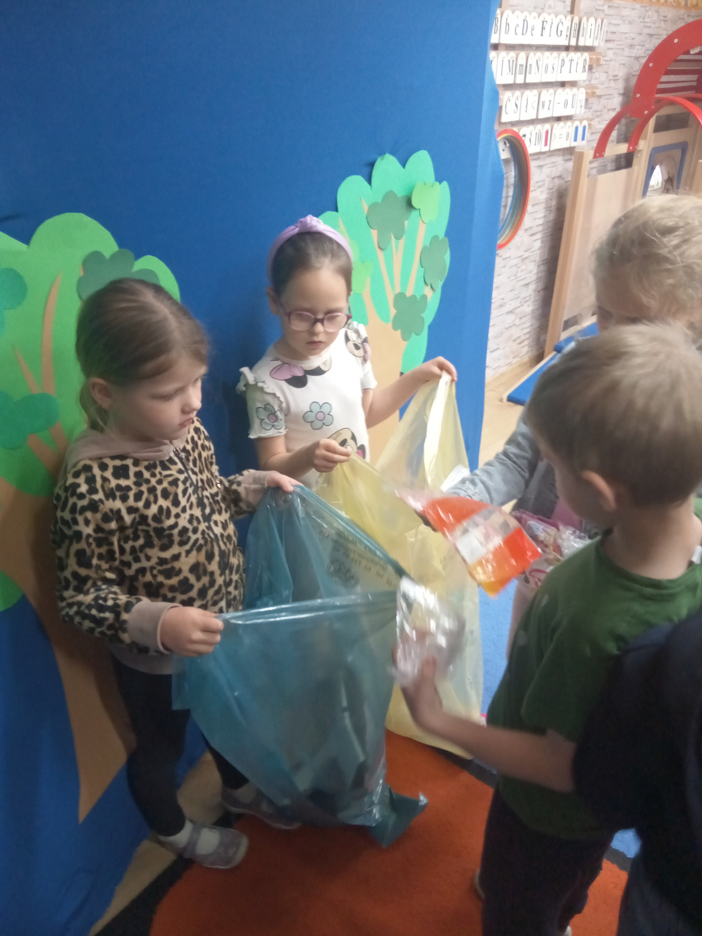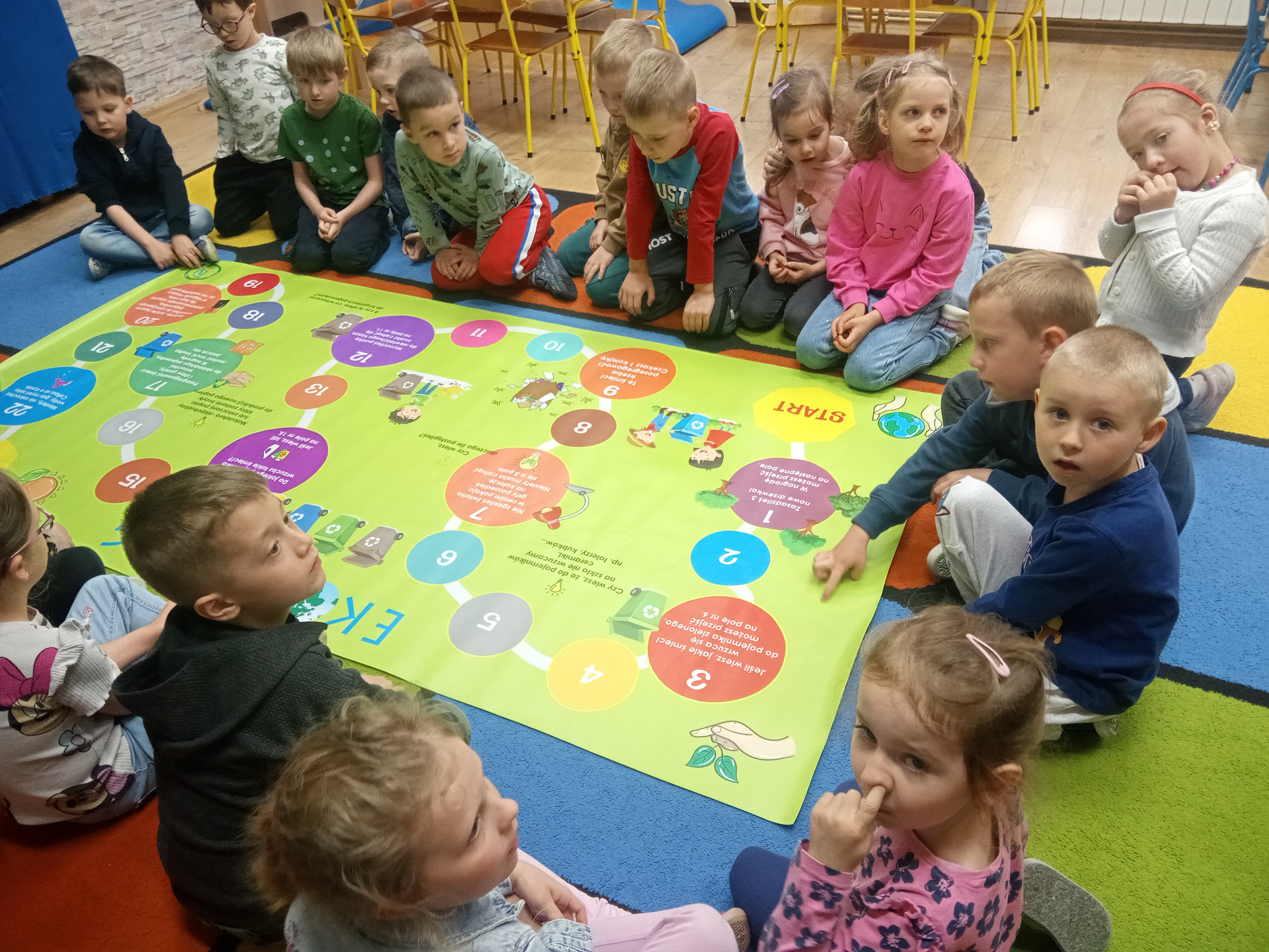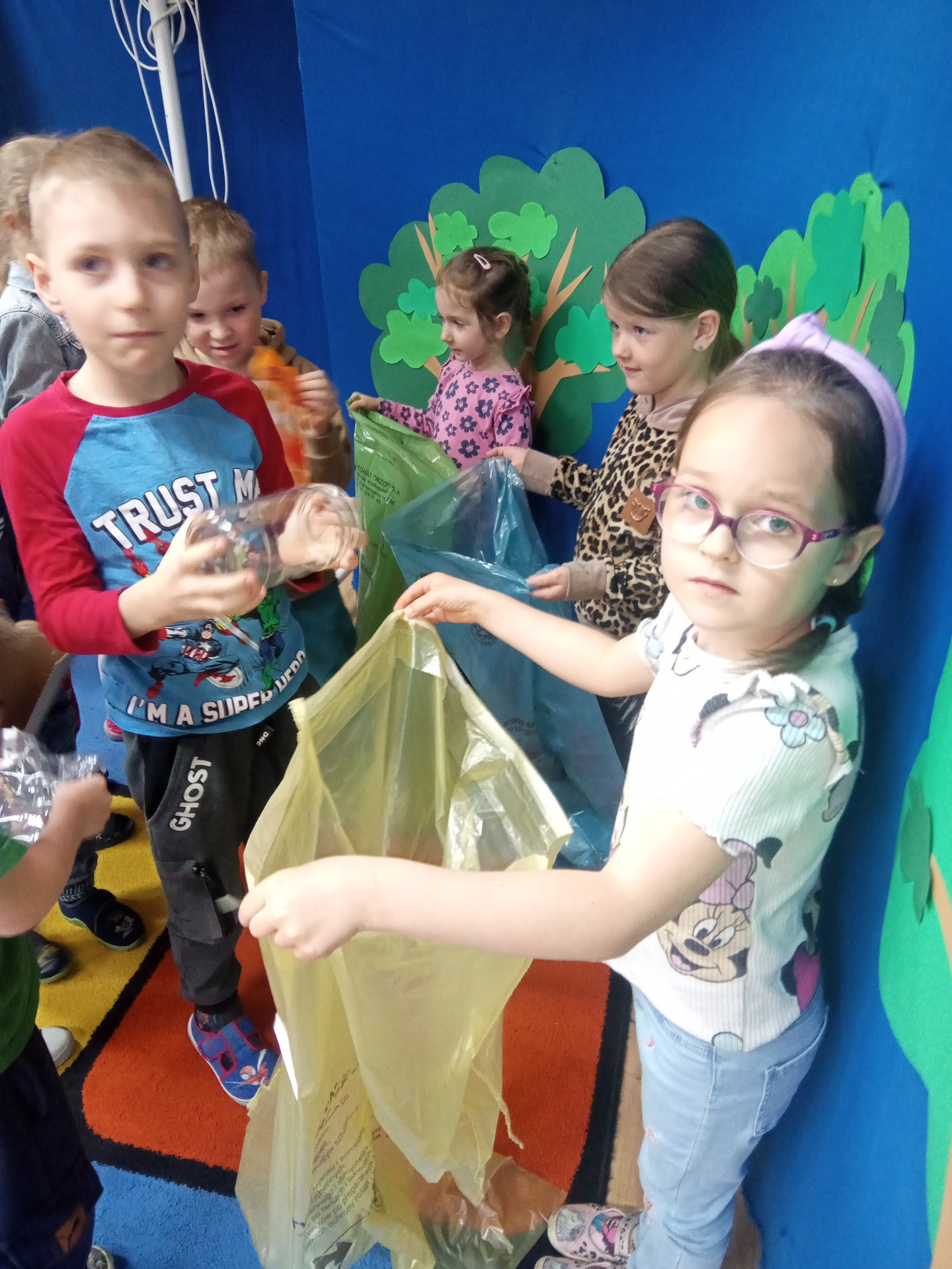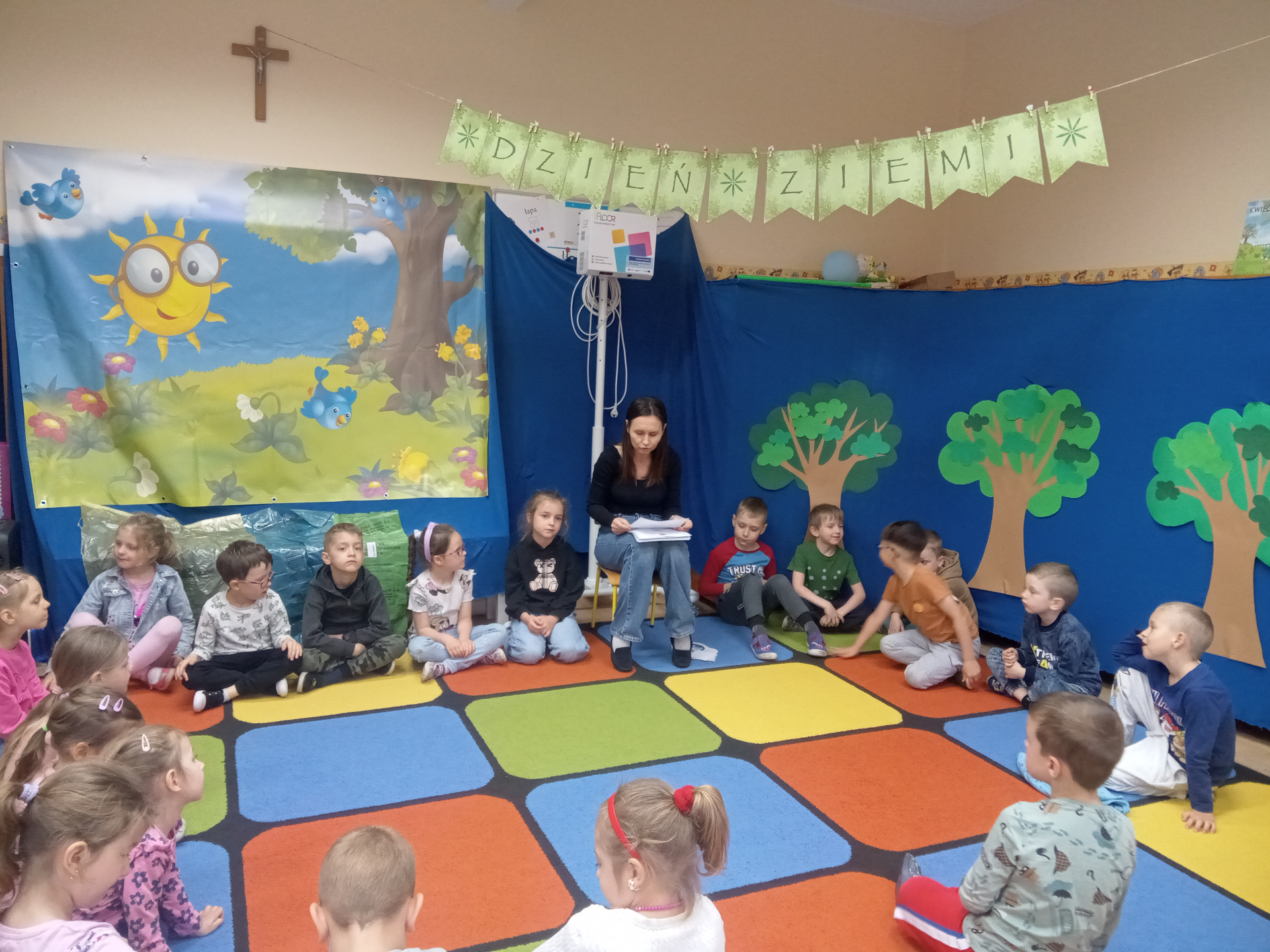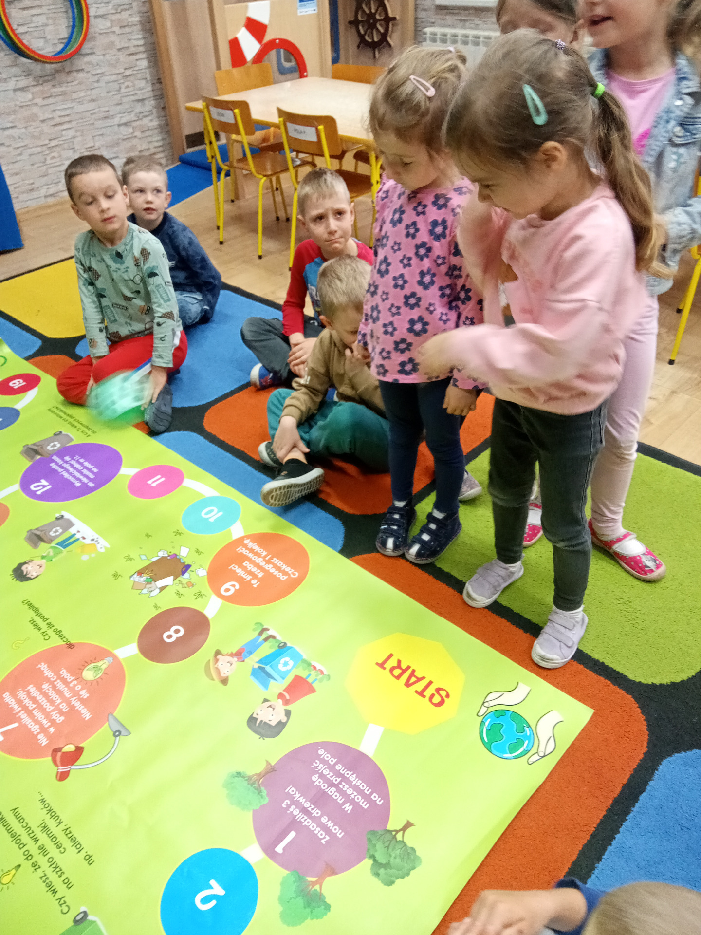 W miniony piątek grupa „Motylków” świętowała Dzień Ziemi. Dzieci wzięły udział w ciekawej pogadance na temat naszej planety – dowiedziały sie , jak dbać o Ziemię, jakie nawyki są dobre ( np. gaszenie światła, oszczedzanie wody, zbieranie śmieci), a jakie szkodzą środowisku (np. wyrzucanie smieci na ulicę, czy w parkach, marnowanie jedzenia). Przedszkolaki poznały również słowo ” recykling”, segregowały śmieci do odpowiednich pojemników. Kolejnym punktem dnia była gra ekologiczna, która utrwalała wiedzę o ochronie środowiska w formie zabawy. „Motylki” śpiewały także piosenki o Ziemi i przyrodzie, okazując troskę i miłość do naszej planety. Na zakończenie dzieci wykonałay prace plastyczne przedstawiającą Ziemię. Prace zostay wykonane dwoma technikami – malowanie balonem oraz farbami w i druga technika – wyklejanie planety bibułą karbowaną. Każda praca wykonana przez dzieci jest wyjątkowa i pokazuje, jak wiele serca dzieci wkładają w troskę o nasz wspólny dom. Przypominamy, że każda , nawet najmniejsza, ekodziałalność ma znaczenie.