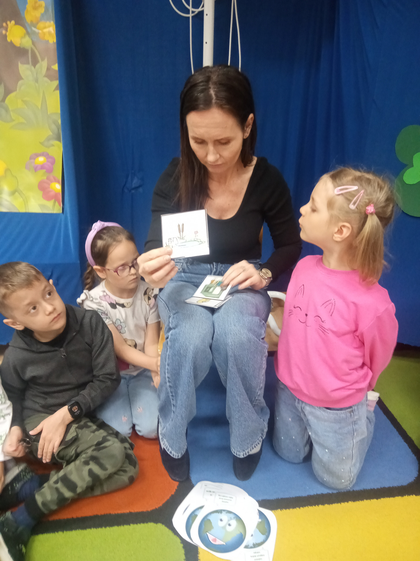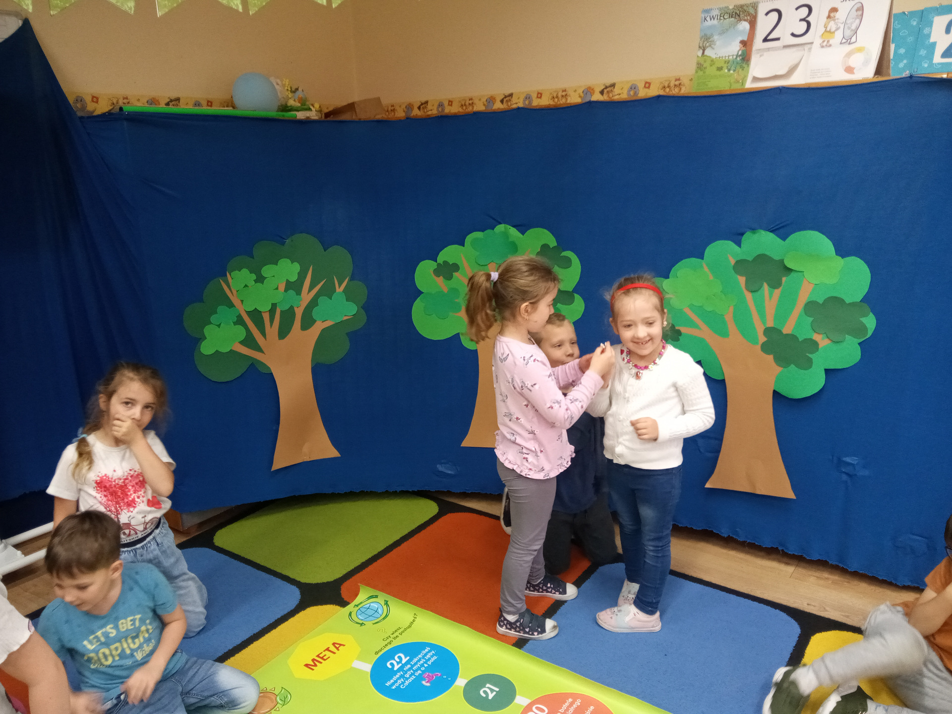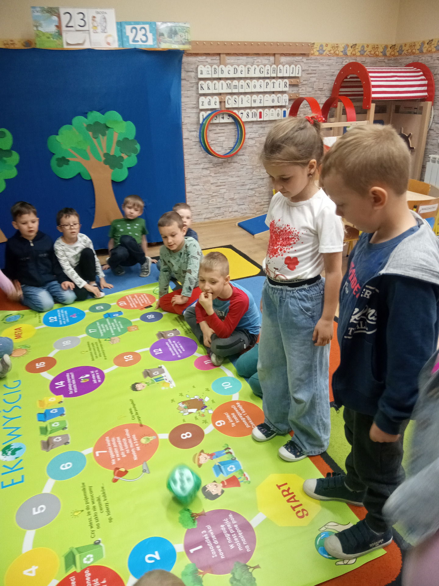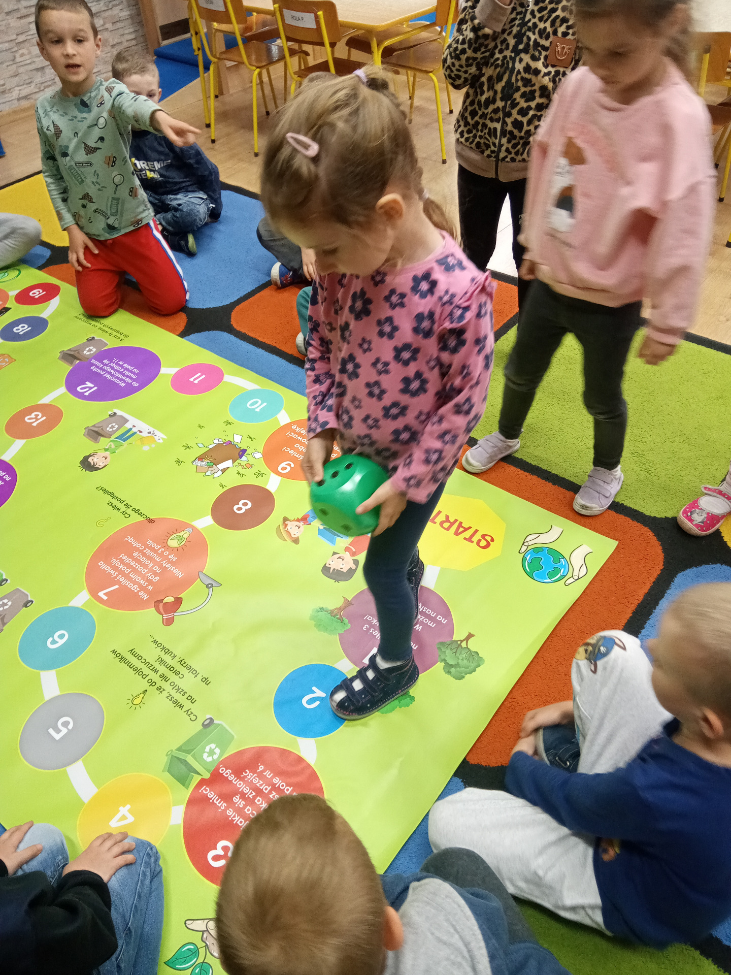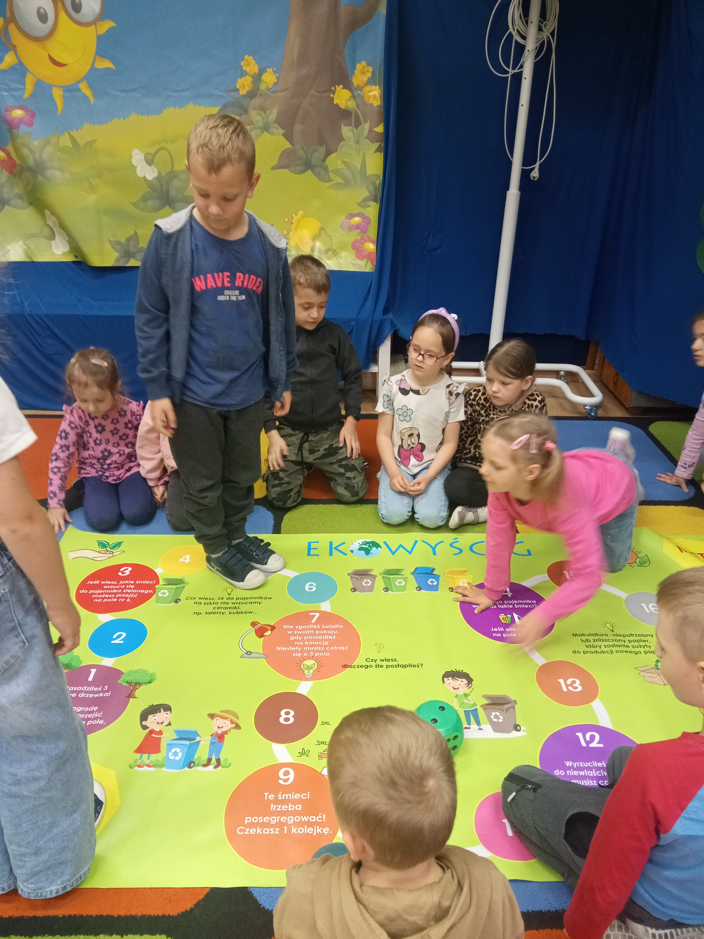 W miniony piątek grupa „Motylków” świętowała Dzień Ziemi. Dzieci wzięły udział w ciekawej pogadance na temat naszej planety – dowiedziały sie , jak dbać o Ziemię, jakie nawyki są dobre ( np. gaszenie światła, oszczedzanie wody, zbieranie śmieci), a jakie szkodzą środowisku (np. wyrzucanie smieci na ulicę, czy w parkach, marnowanie jedzenia). Przedszkolaki poznały również słowo ” recykling”, segregowały śmieci do odpowiednich pojemników. Kolejnym punktem dnia była gra ekologiczna, która utrwalała wiedzę o ochronie środowiska w formie zabawy. „Motylki” śpiewały także piosenki o Ziemi i przyrodzie, okazując troskę i miłość do naszej planety. Na zakończenie dzieci wykonałay prace plastyczne przedstawiającą Ziemię. Prace zostay wykonane dwoma technikami – malowanie balonem oraz farbami w i druga technika – wyklejanie planety bibułą karbowaną. Każda praca wykonana przez dzieci jest wyjątkowa i pokazuje, jak wiele serca dzieci wkładają w troskę o nasz wspólny dom. Przypominamy, że każda , nawet najmniejsza, ekodziałalność ma znaczenie.