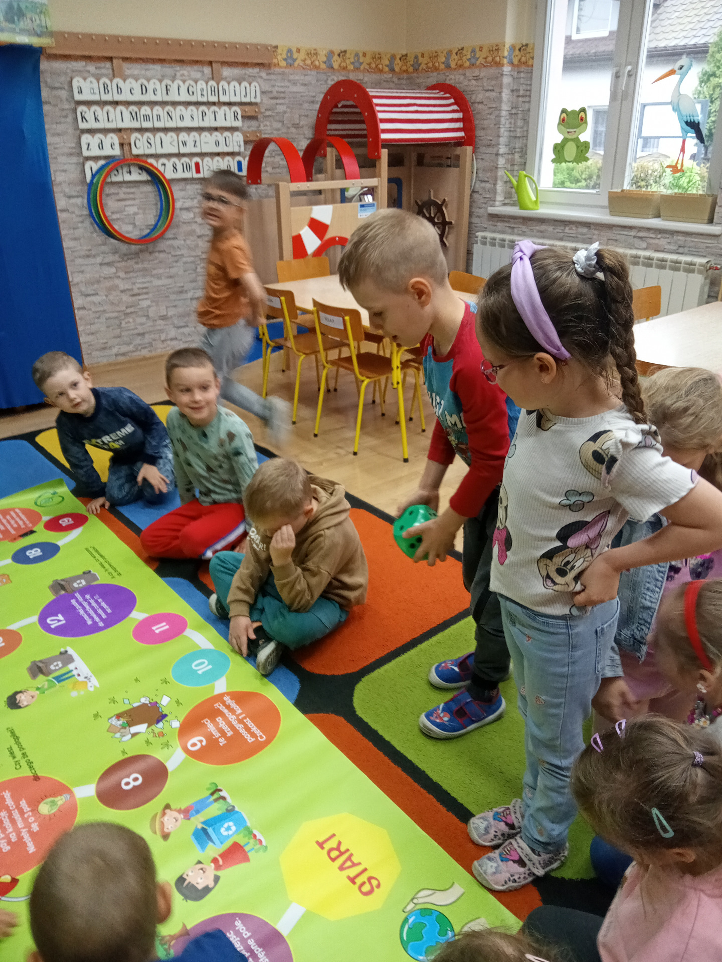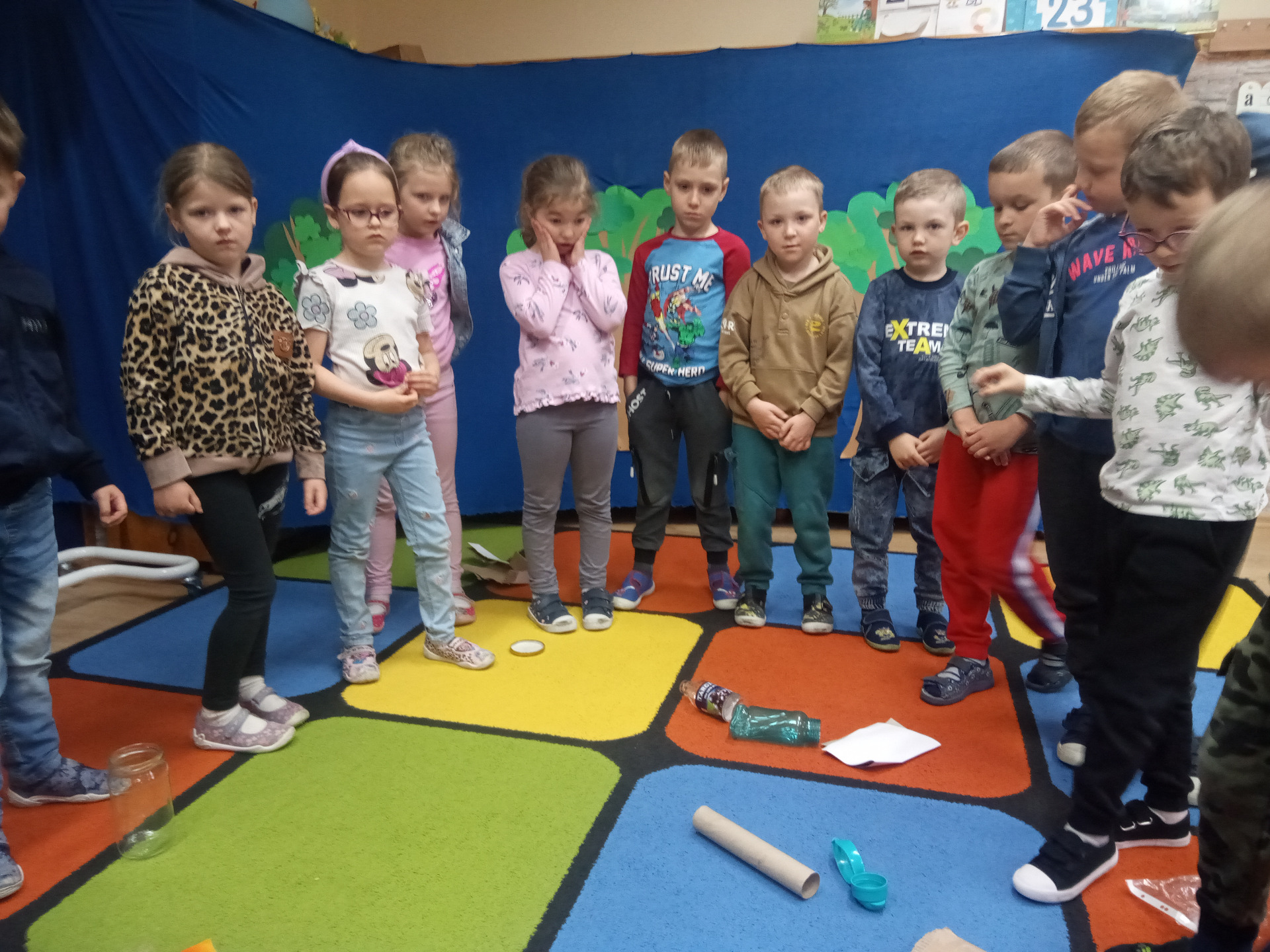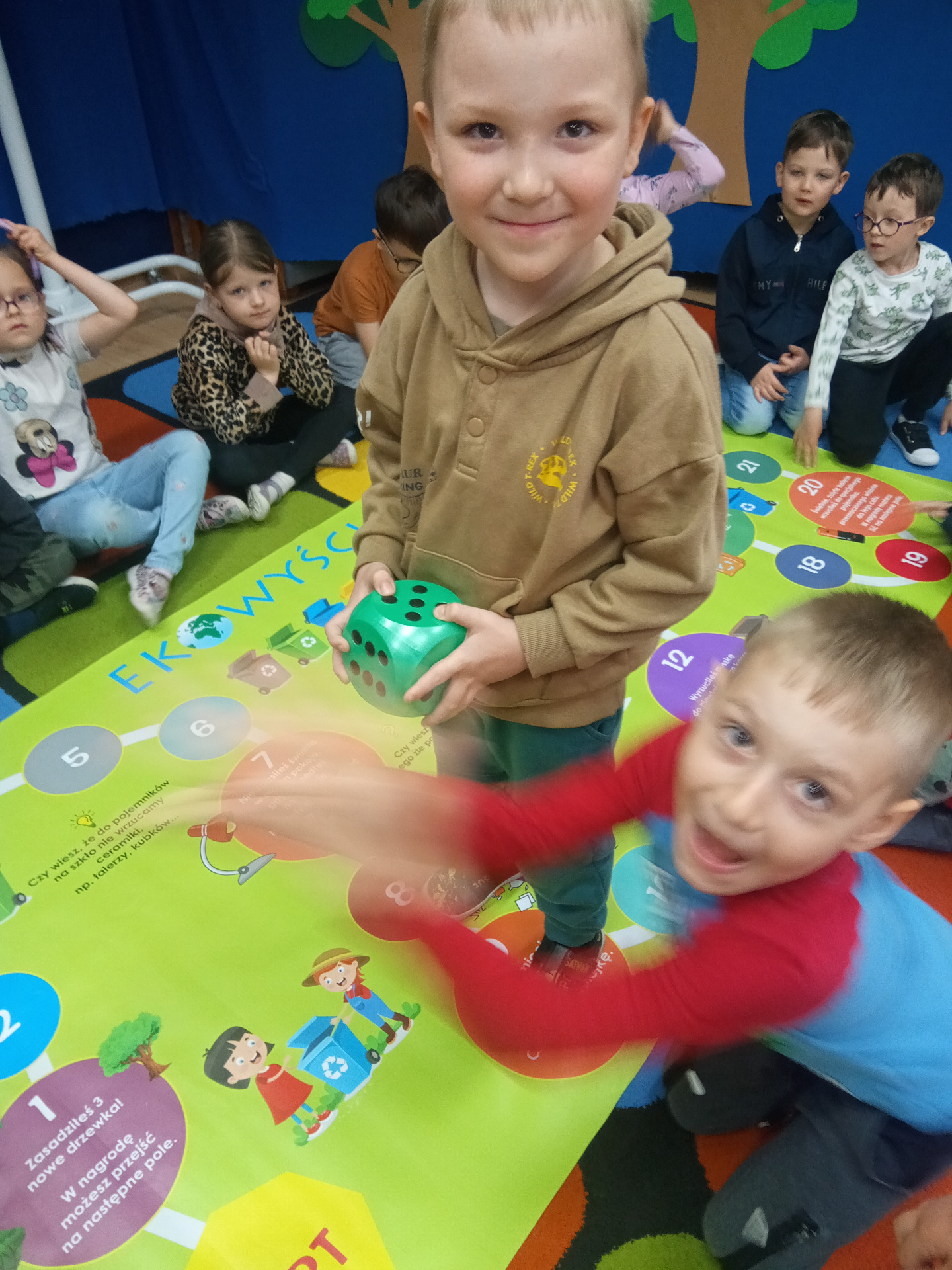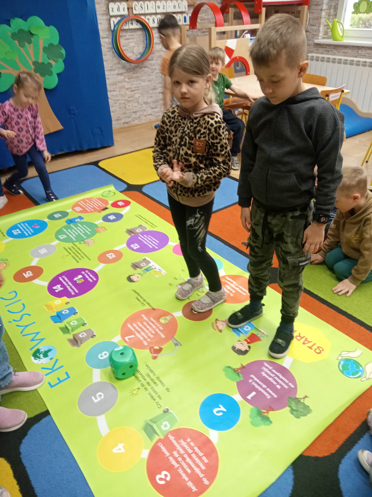 W miniony piątek grupa „Motylków” świętowała Dzień Ziemi. Dzieci wzięły udział w ciekawej pogadance na temat naszej planety – dowiedziały sie , jak dbać o Ziemię, jakie nawyki są dobre ( np. gaszenie światła, oszczedzanie wody, zbieranie śmieci), a jakie szkodzą środowisku (np. wyrzucanie smieci na ulicę, czy w parkach, marnowanie jedzenia). Przedszkolaki poznały również słowo ” recykling”, segregowały śmieci do odpowiednich pojemników. Kolejnym punktem dnia była gra ekologiczna, która utrwalała wiedzę o ochronie środowiska w formie zabawy. „Motylki” śpiewały także piosenki o Ziemi i przyrodzie, okazując troskę i miłość do naszej planety. Na zakończenie dzieci wykonałay prace plastyczne przedstawiającą Ziemię. Prace zostay wykonane dwoma technikami – malowanie balonem oraz farbami w i druga technika – wyklejanie planety bibułą karbowaną. Każda praca wykonana przez dzieci jest wyjątkowa i pokazuje, jak wiele serca dzieci wkładają w troskę o nasz wspólny dom. Przypominamy, że każda , nawet najmniejsza, ekodziałalność ma znaczenie.