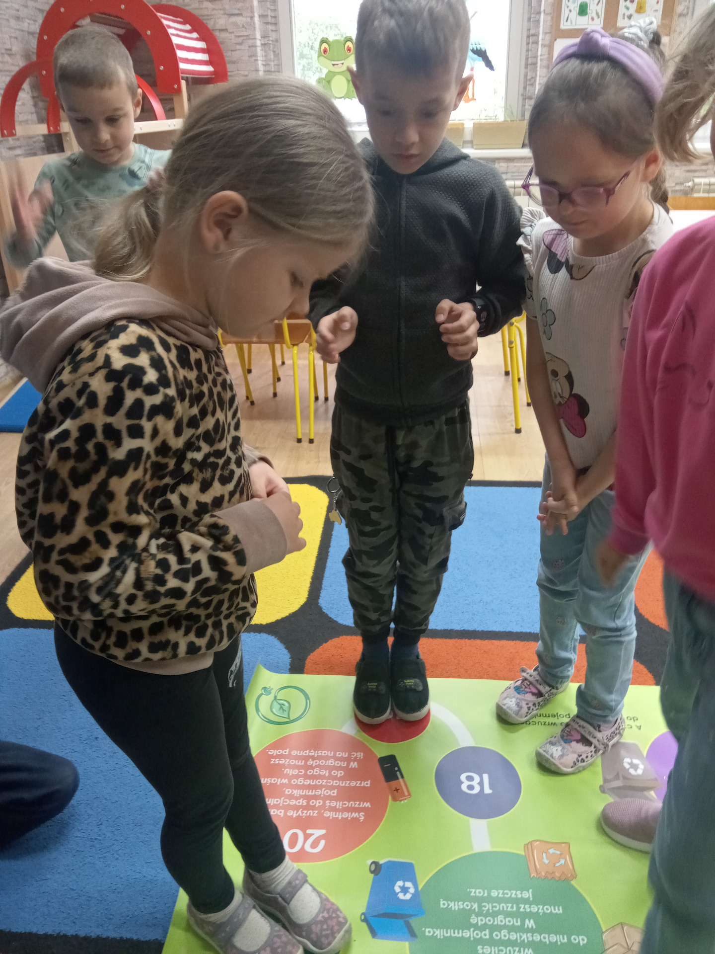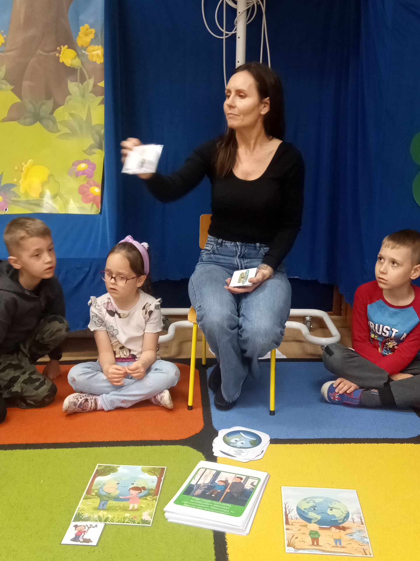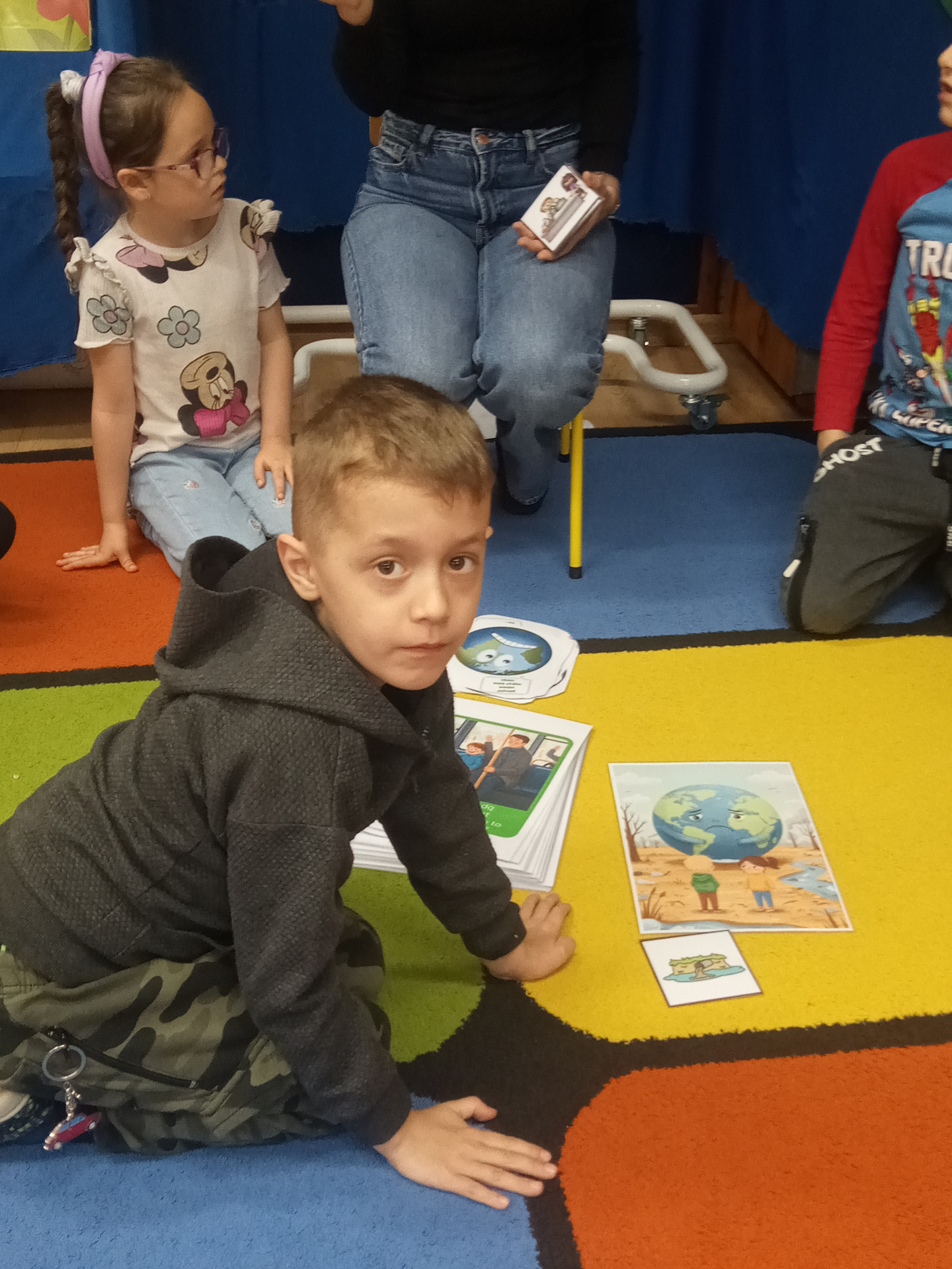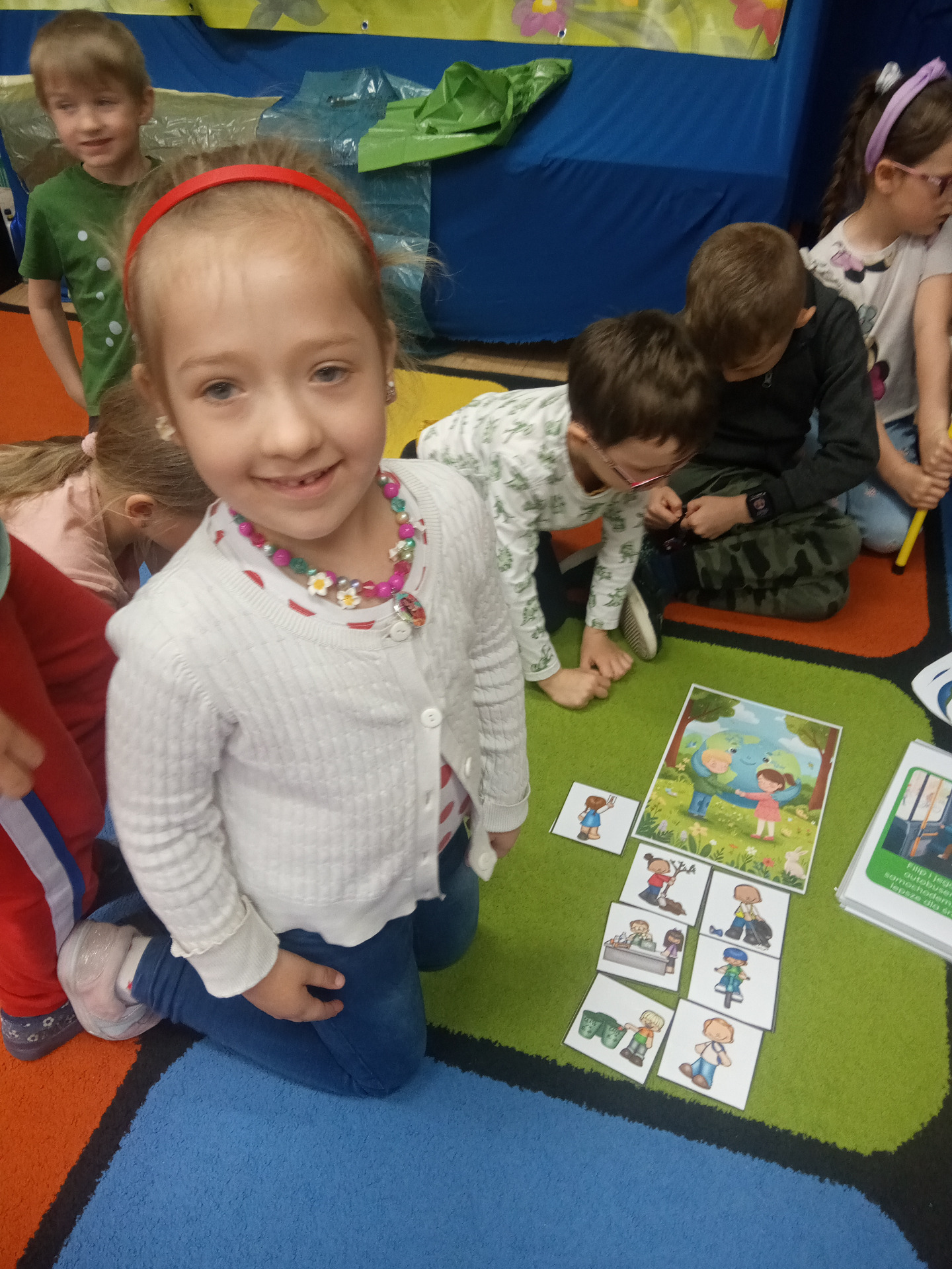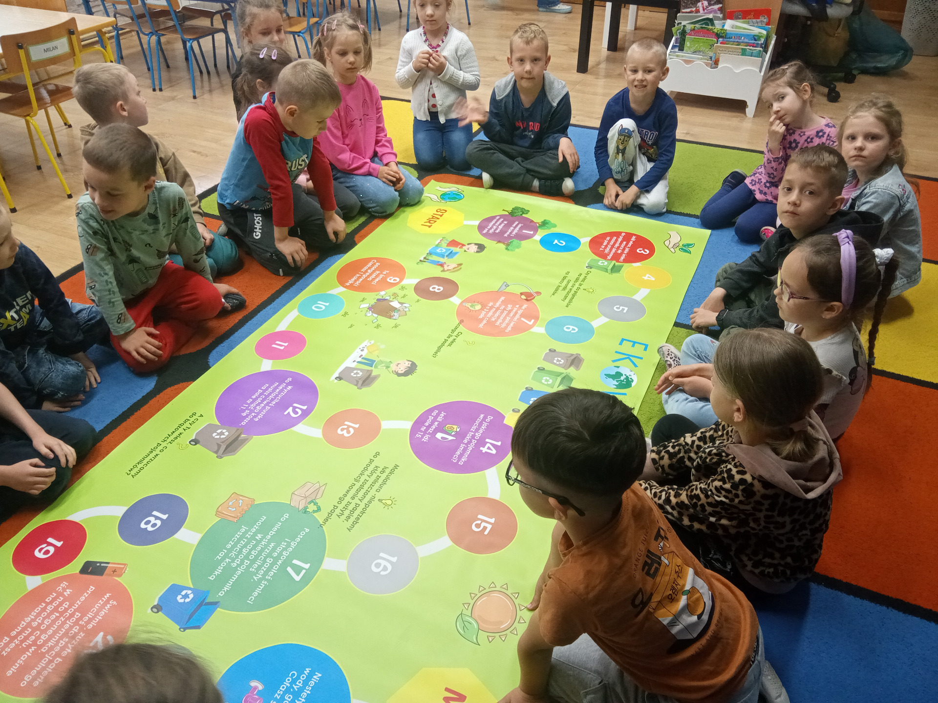W miniony piątek grupa „Motylków” świętowała Dzień Ziemi. Dzieci wzięły udział w ciekawej pogadance na temat naszej planety – dowiedziały sie , jak dbać o Ziemię, jakie nawyki są dobre ( np. gaszenie światła, oszczedzanie wody, zbieranie śmieci), a jakie szkodzą środowisku (np. wyrzucanie smieci na ulicę, czy w parkach, marnowanie jedzenia). Przedszkolaki poznały również słowo ” recykling”, segregowały śmieci do odpowiednich pojemników. Kolejnym punktem dnia była gra ekologiczna, która utrwalała wiedzę o ochronie środowiska w formie zabawy. „Motylki” śpiewały także piosenki o Ziemi i przyrodzie, okazując troskę i miłość do naszej planety. Na zakończenie dzieci wykonałay prace plastyczne przedstawiającą Ziemię. Prace zostay wykonane dwoma technikami – malowanie balonem oraz farbami w i druga technika – wyklejanie planety bibułą karbowaną. Każda praca wykonana przez dzieci jest wyjątkowa i pokazuje, jak wiele serca dzieci wkładają w troskę o nasz wspólny dom. Przypominamy, że każda , nawet najmniejsza, ekodziałalność ma znaczenie.