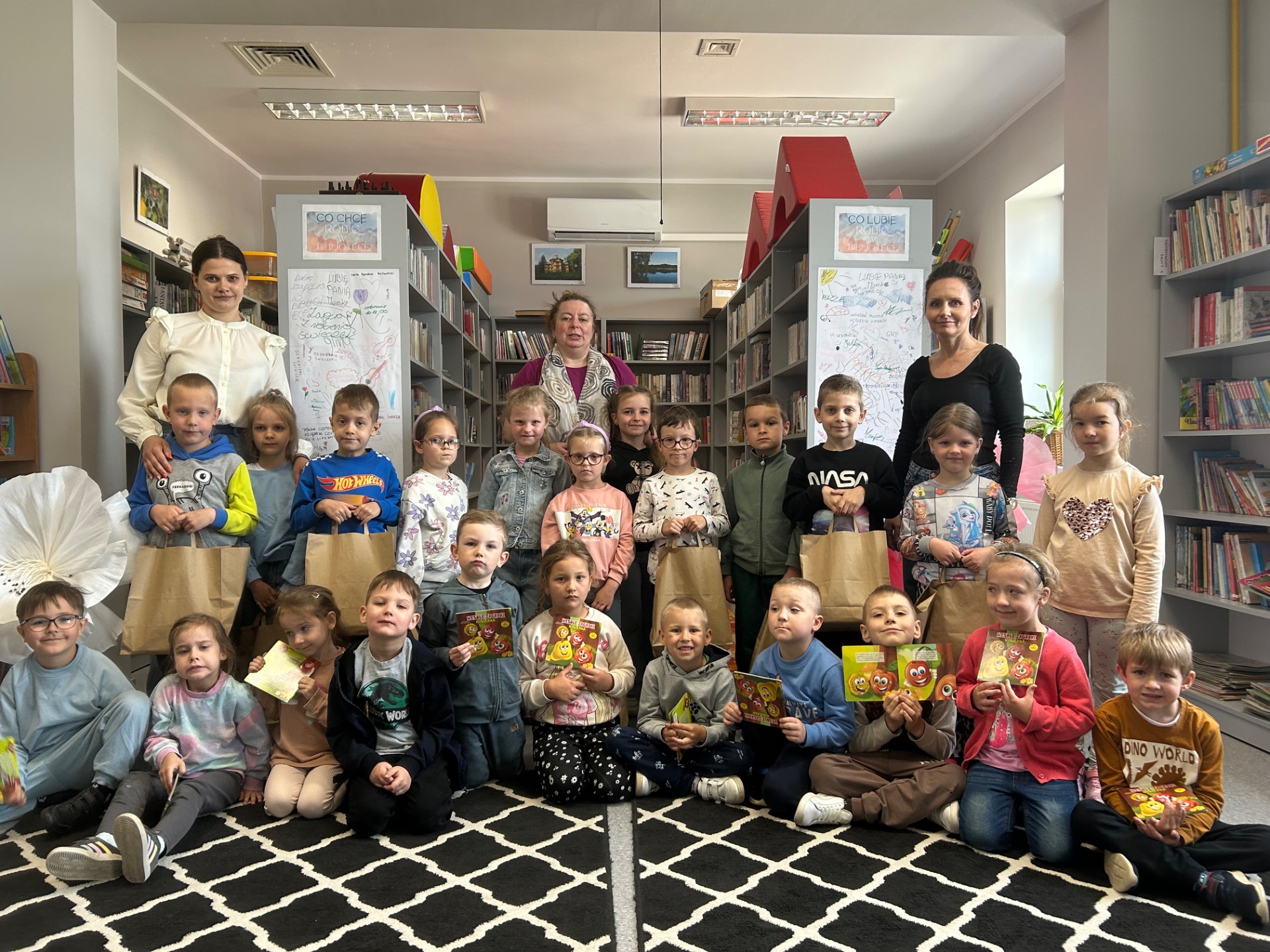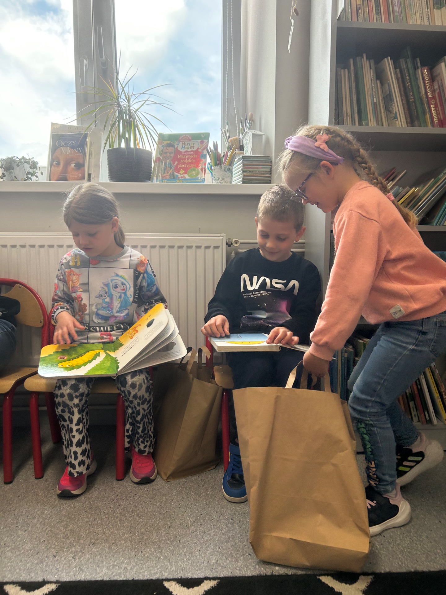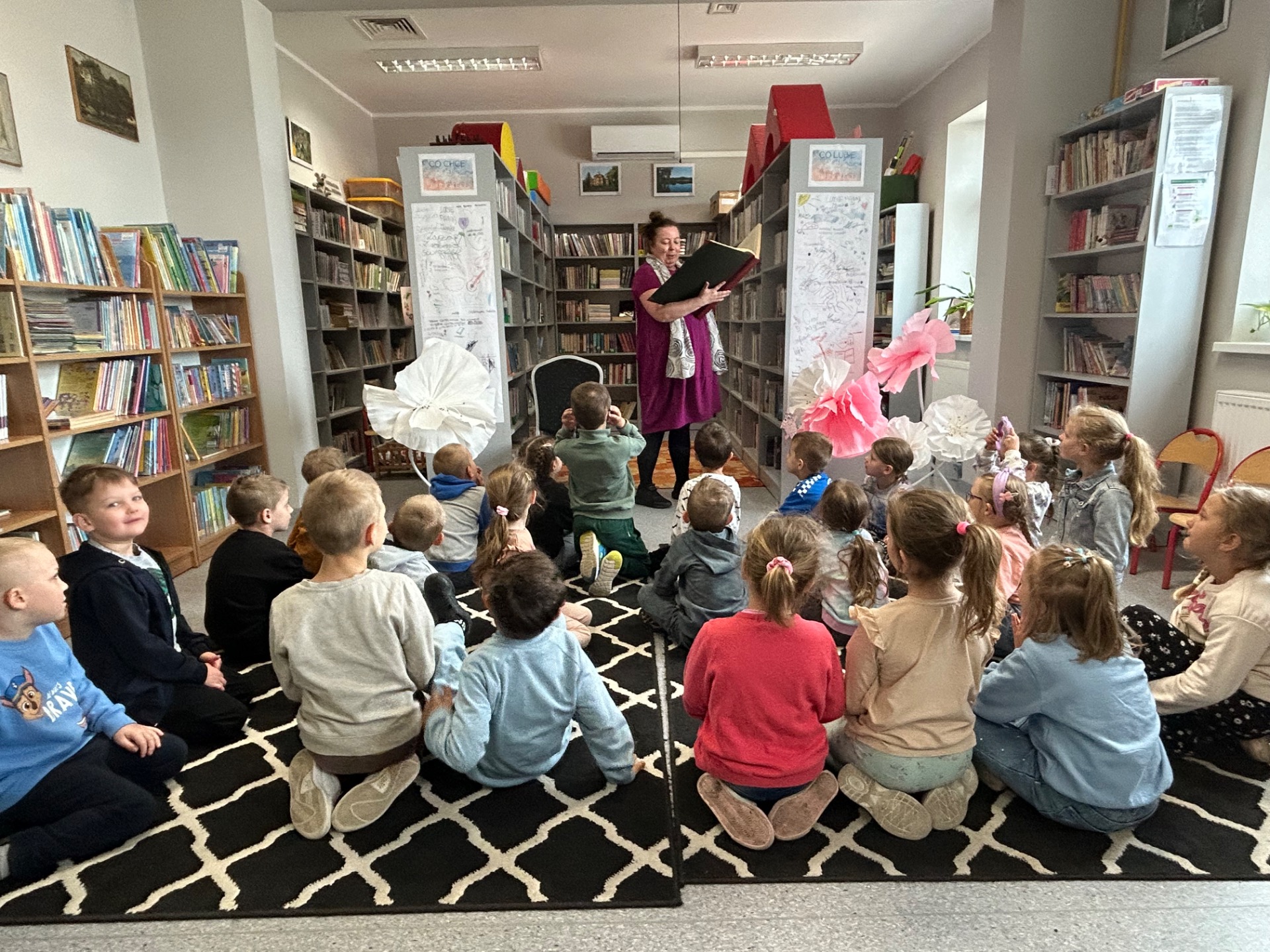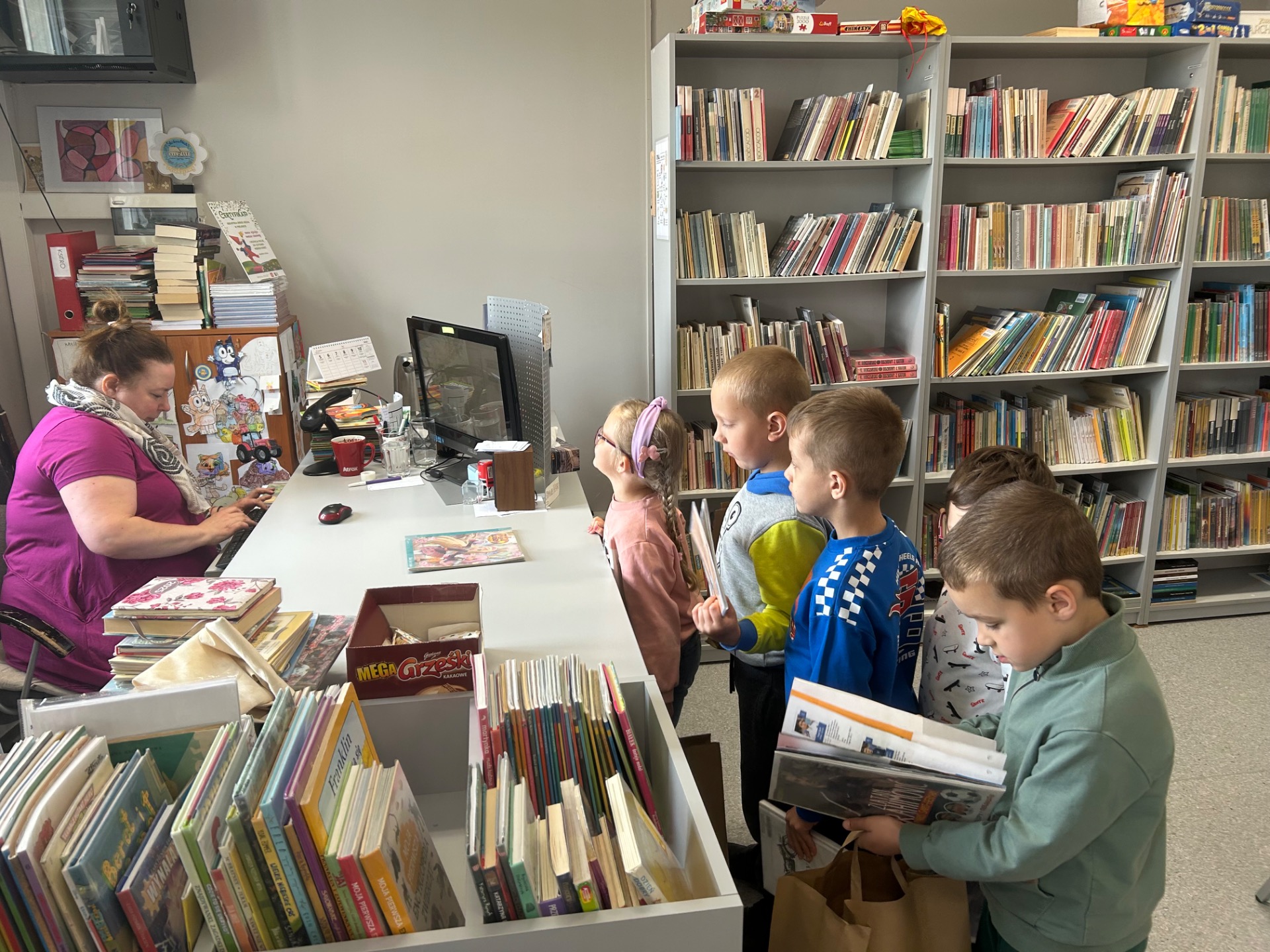 Dnia 06.05.2025 r. grupa “Motylki” odwiedziła pobliską bibliotekę. Była to wyjątkowa wizyta, podczas której dzieci, które niedługo pójdą do szkoły zostały uroczyście pasowane na czytelników. Dzieci z zainteresowaniem wysłuchały opowieści o bibliotece oraz dowiedziały się, jak należy dbać o książki. Po pasowaniu „starsze motylki” mogły już bez przeszkód wypożyczyć wybrane przez siebie książki.