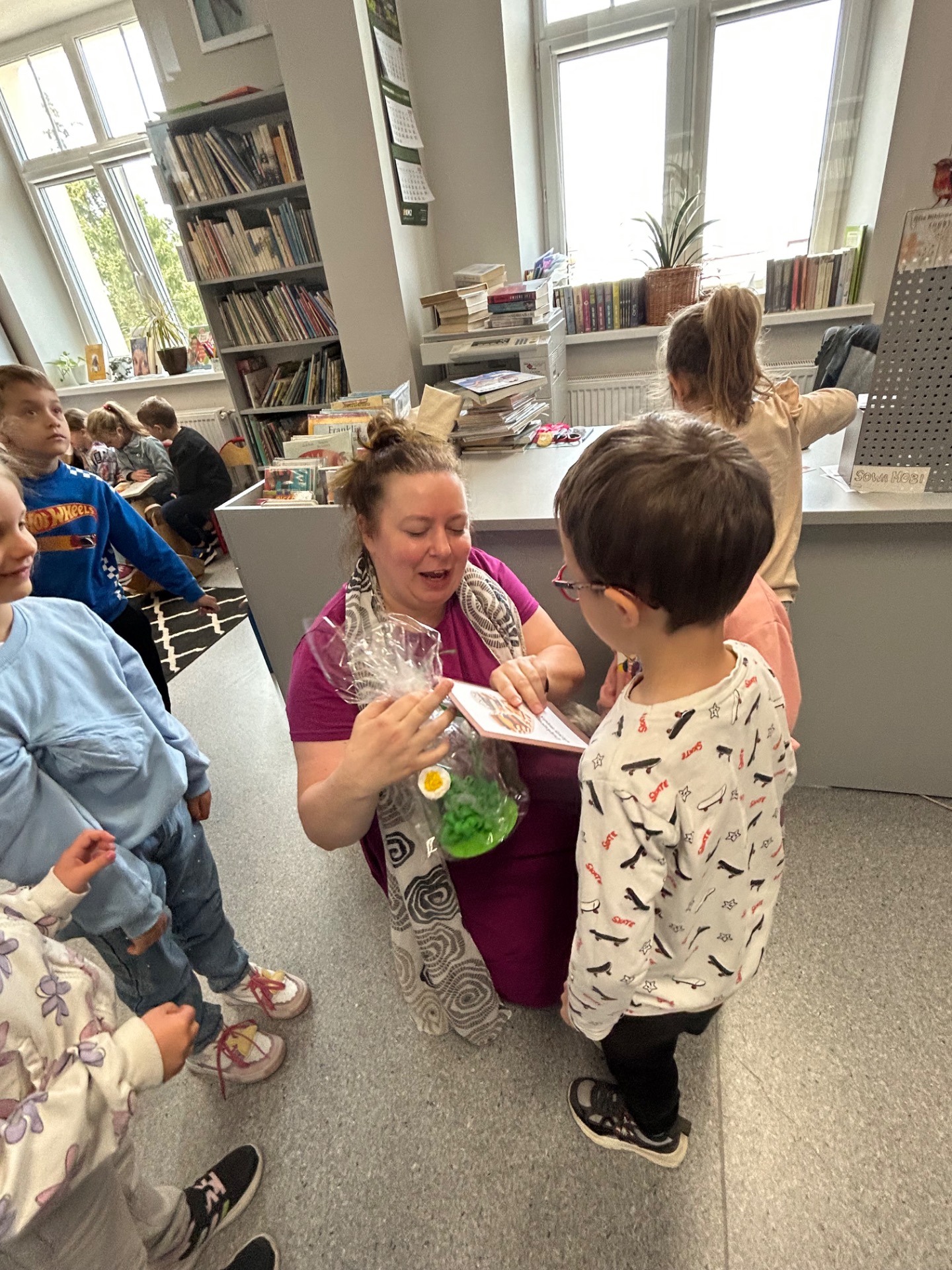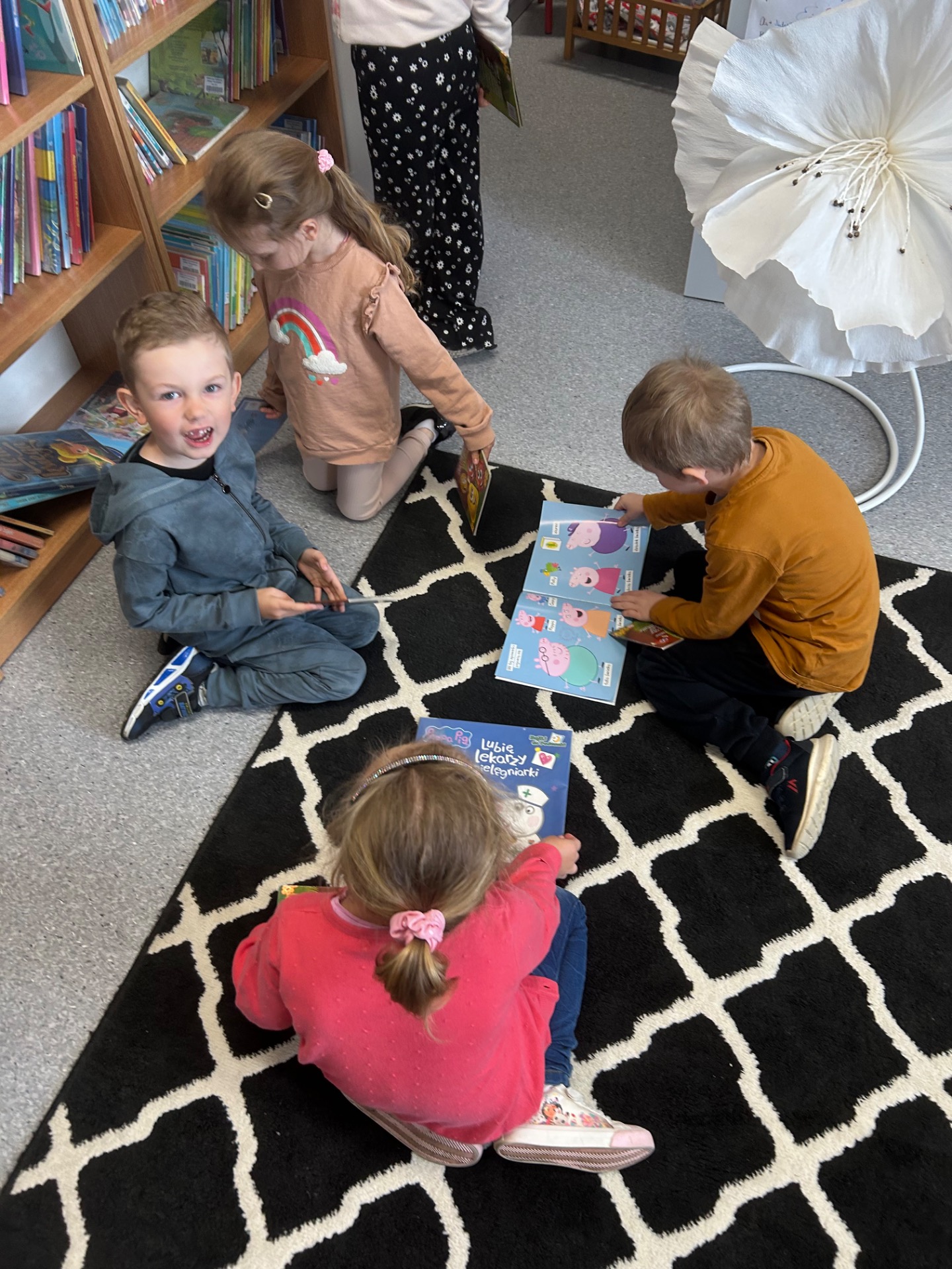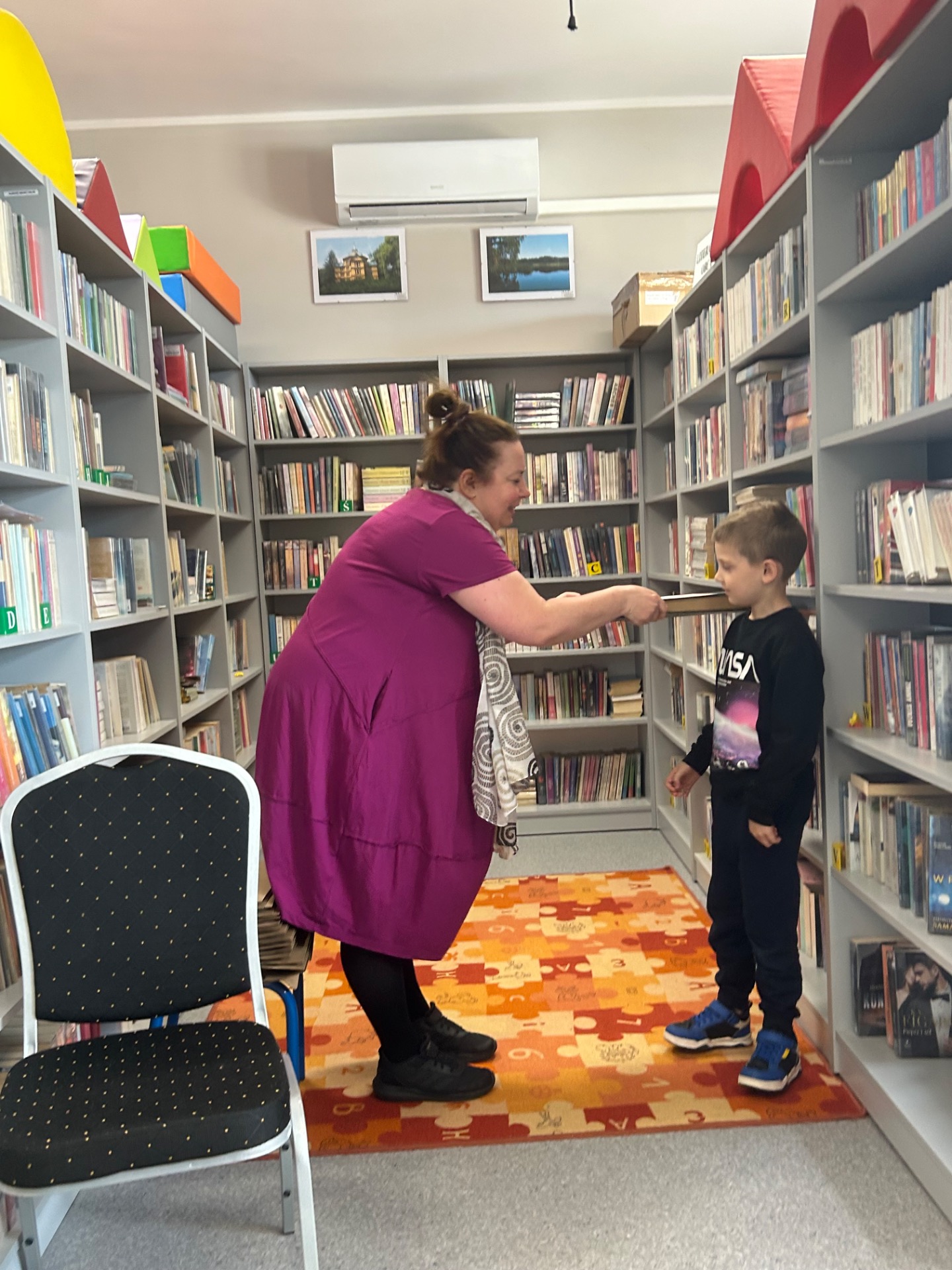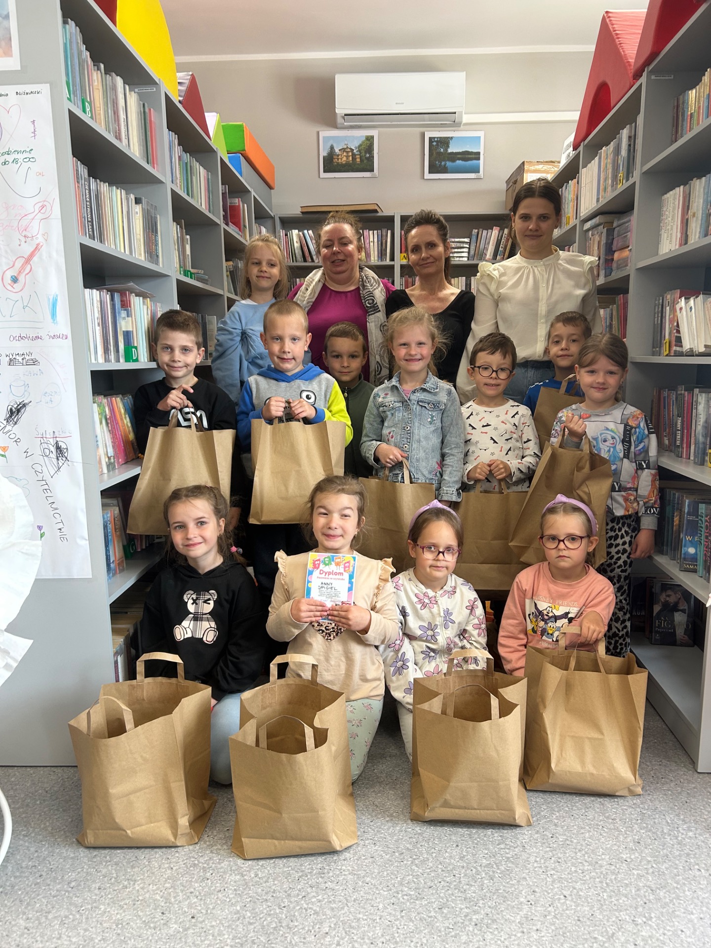 Dnia 06.05.2025 r. grupa “Motylki” odwiedziła pobliską bibliotekę. Była to wyjątkowa wizyta, podczas której dzieci, które niedługo pójdą do szkoły zostały uroczyście pasowane na czytelników. Dzieci z zainteresowaniem wysłuchały opowieści o bibliotece oraz dowiedziały się, jak należy dbać o książki. Po pasowaniu „starsze motylki” mogły już bez przeszkód wypożyczyć wybrane przez siebie książki.