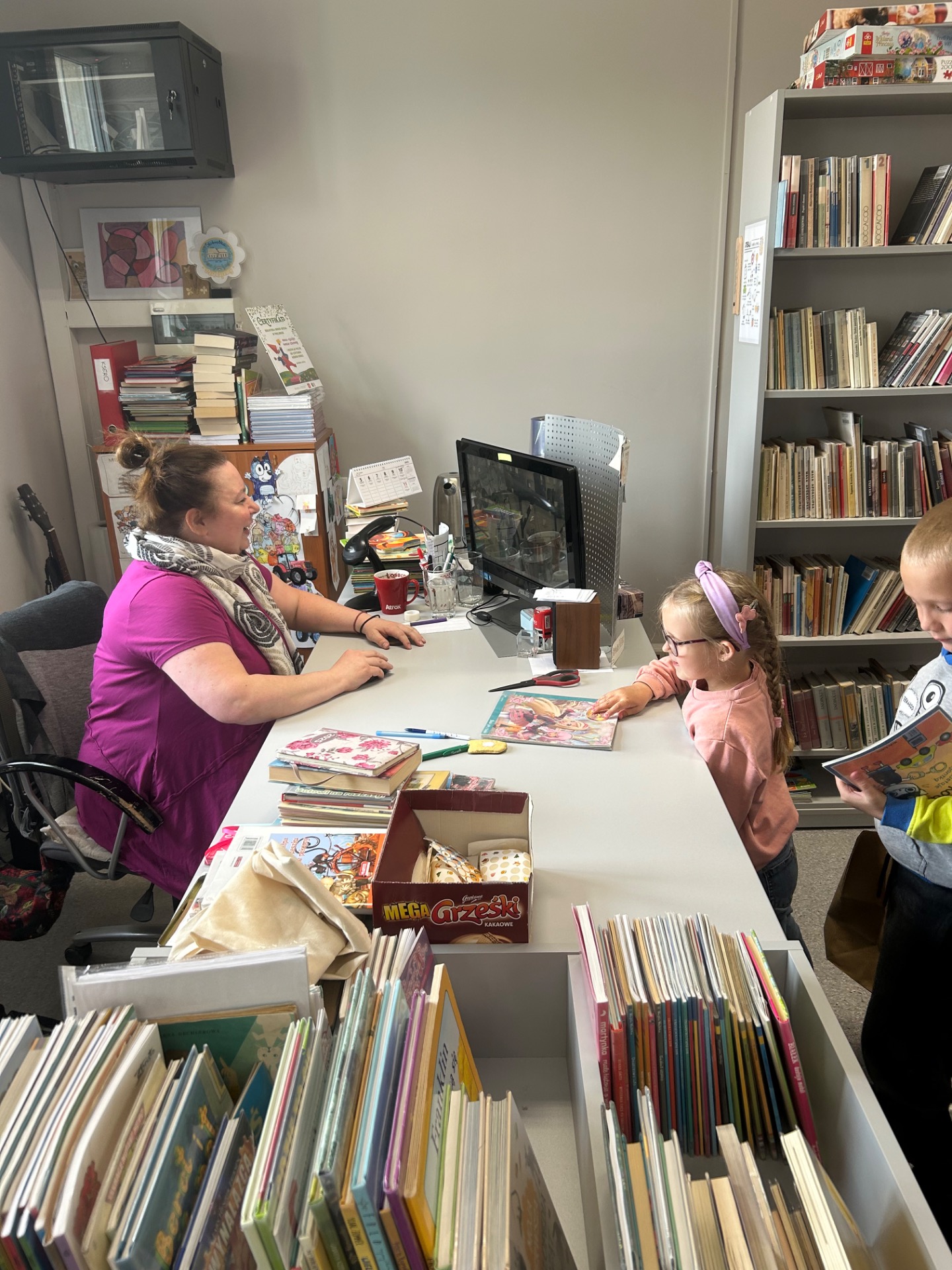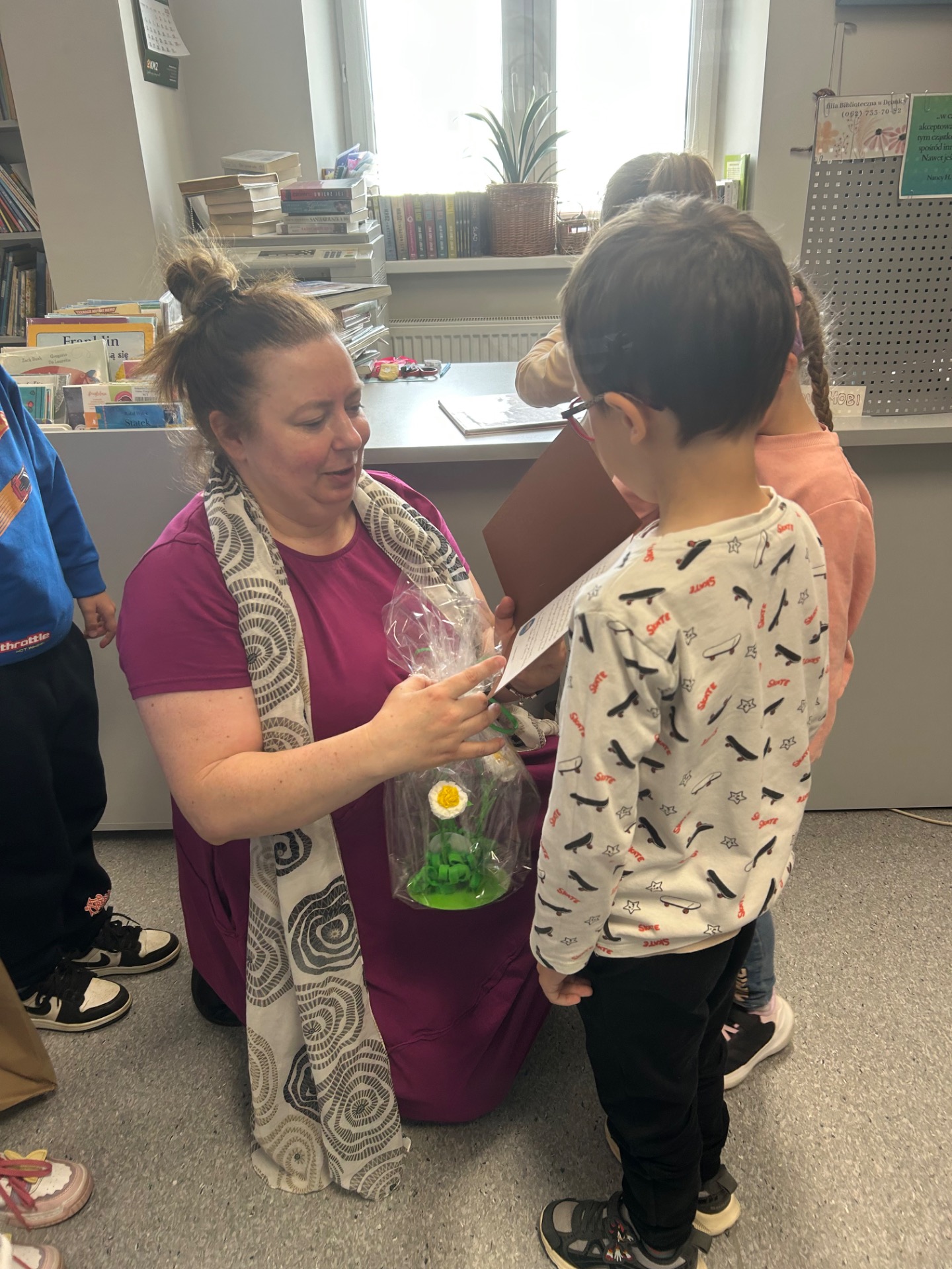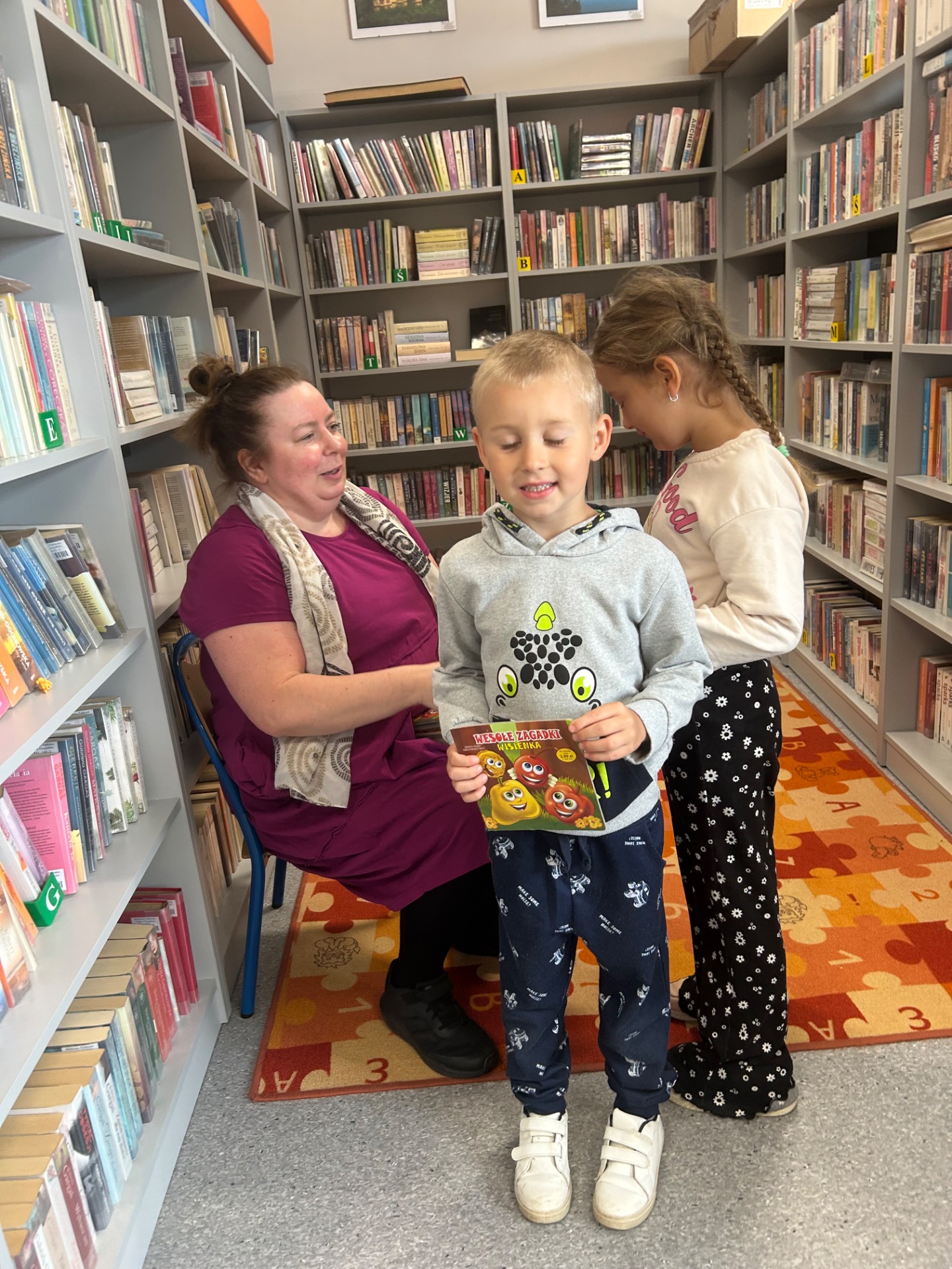 Przy okazji wizyty w bibliotece “Motylki” przekazały także serdeczne życzenia z okazji zbliżającego się Dnia Bibliotekarza, dziękując za codzienną pracę i miłość do książek.