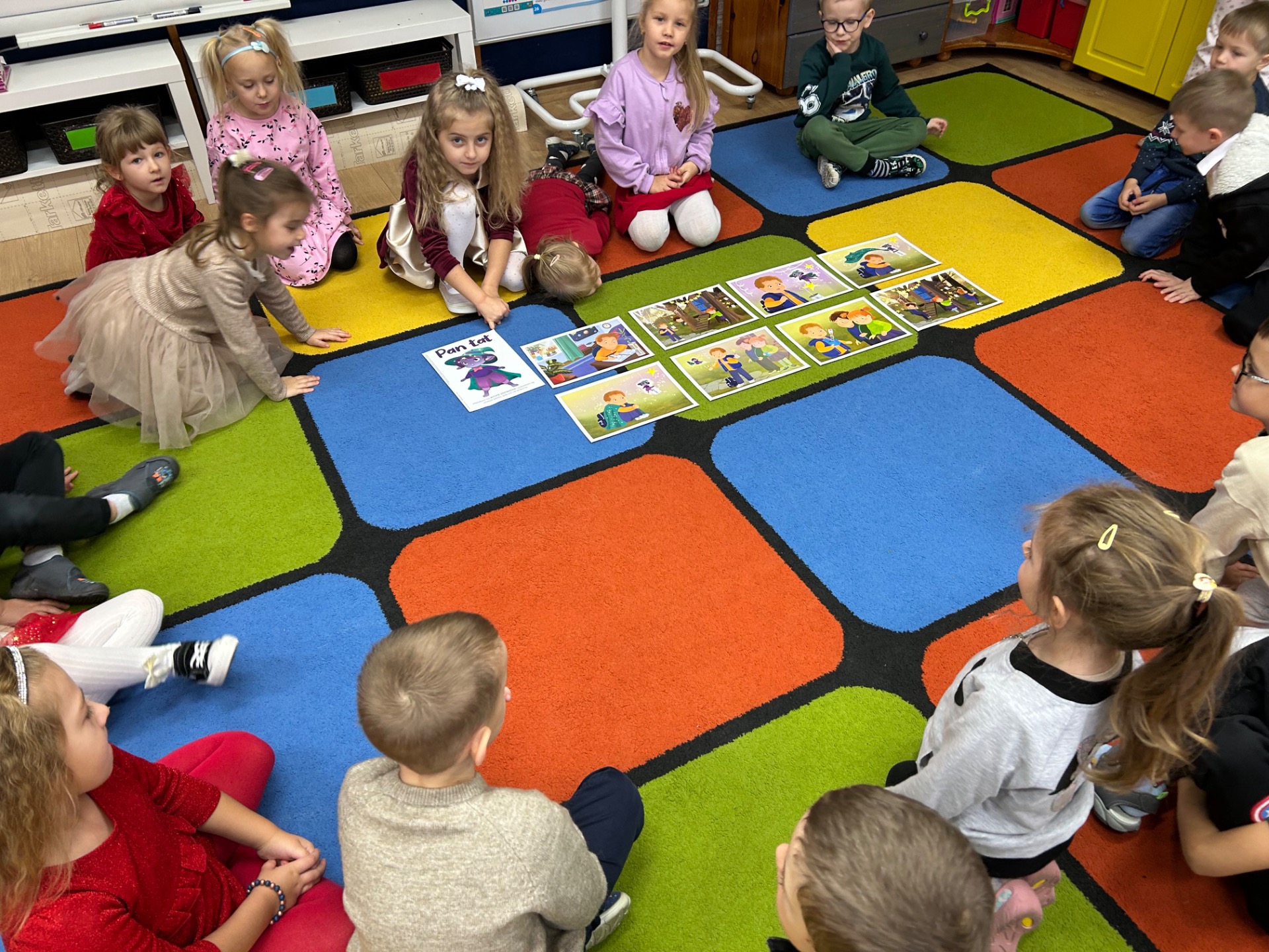 W ramach realizacji projektu „Czuciaki” nasze przedszkolaki miały wyjątkową okazję poznać Pana Łał – bohatera, który symbolizuje zdziwienie i zachwyca dzieci swoim pełnym emocji światem. Podczas zajęć dzieci z zainteresowaniem odkrywały, jak wygląda zdziwienie, co je wywołuje oraz jak można je wyrażać.