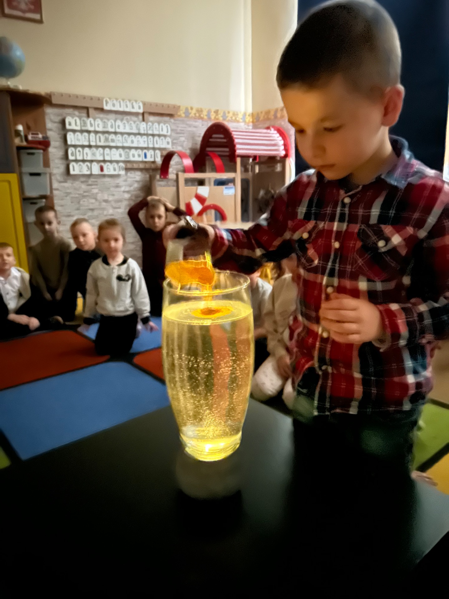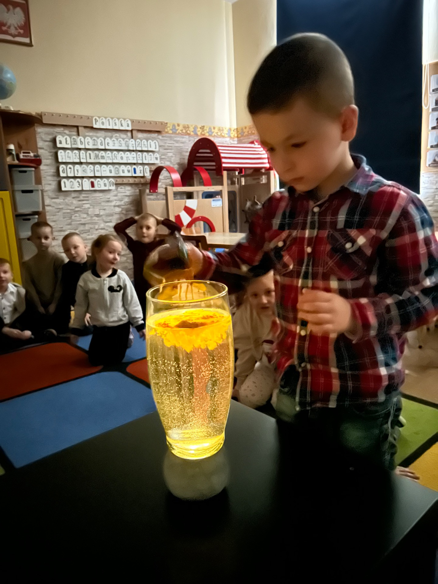 Spotkanie z Panem Łał przyniosło wiele radości i nowych doświadczeń sensorycznych. Przedszkolaki chętnie uczestniczyły w zabawach rozwijających zmysły, emocje i wyobraźnię. Pan Łał na długo pozostanie w pamięci dzieci jako bohater, który uczy, że świat potrafi codziennie zaskakiwać.