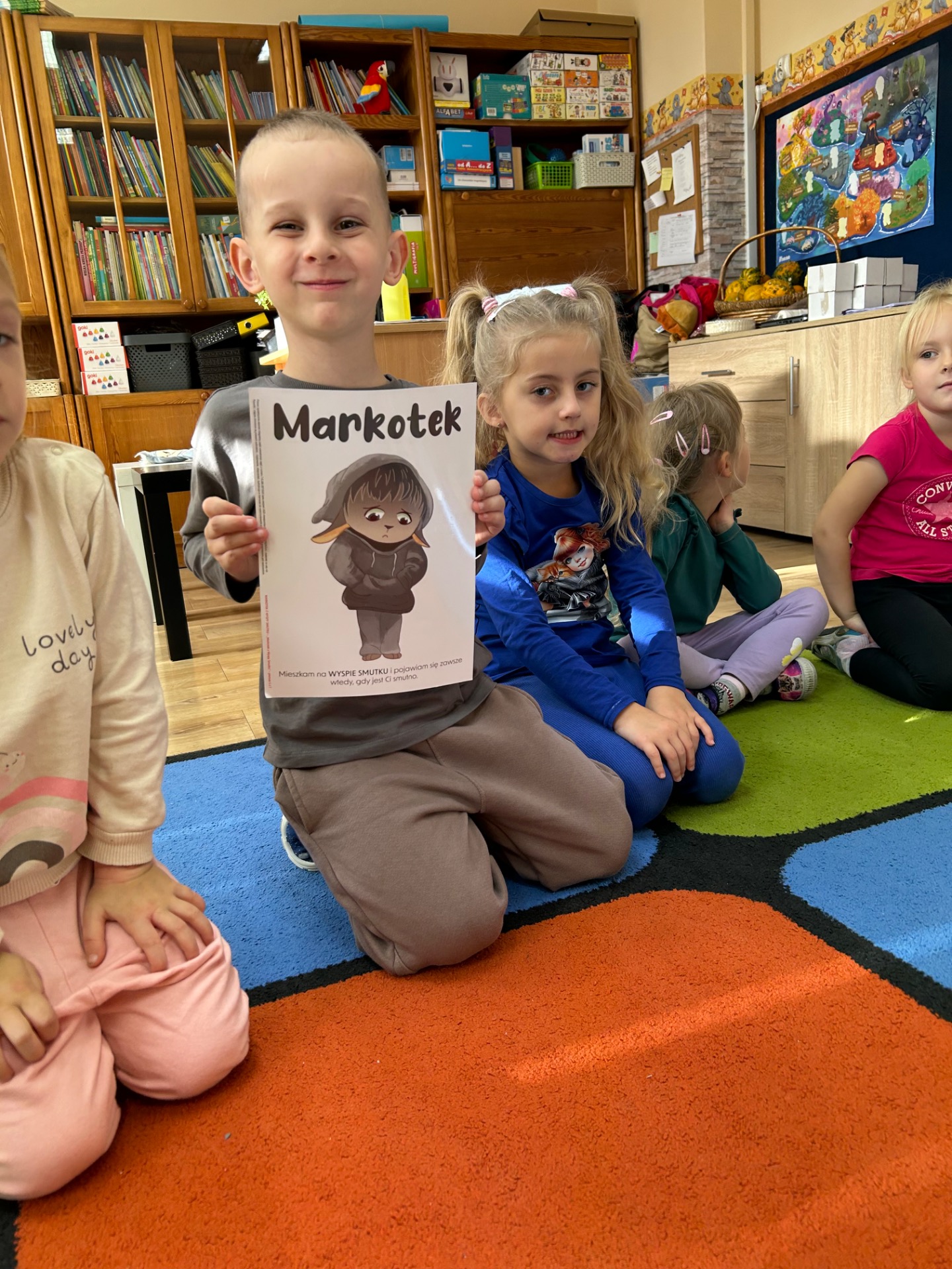 Dziś w naszym przedszkolu poznaliśmy kolejną postać z projektu „Czuciaki”. Tym razem odwiedził nas Markotek z Wyspy Smutku.