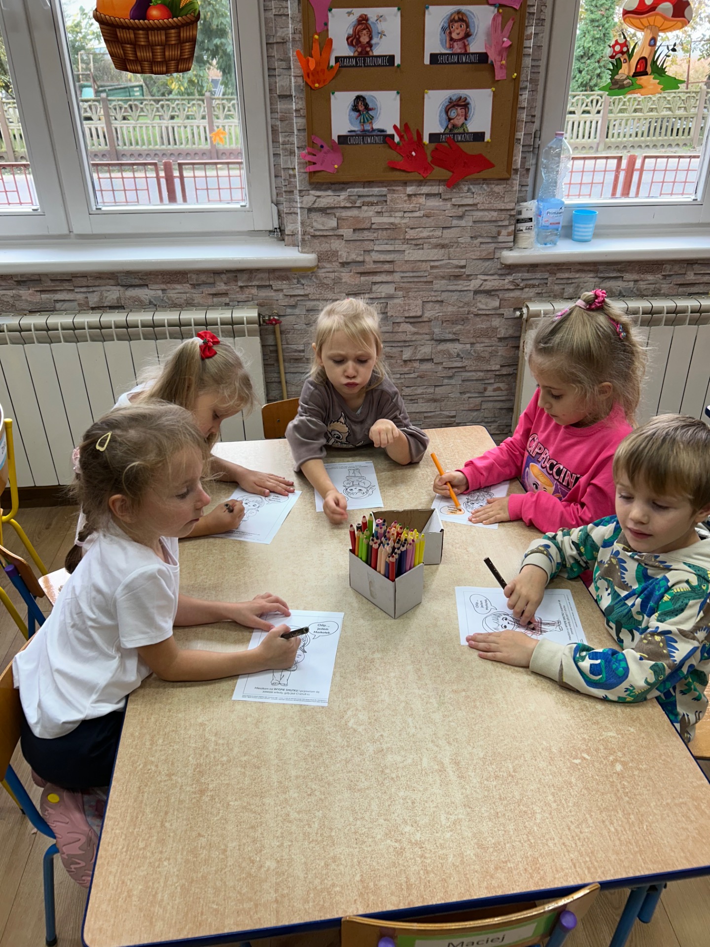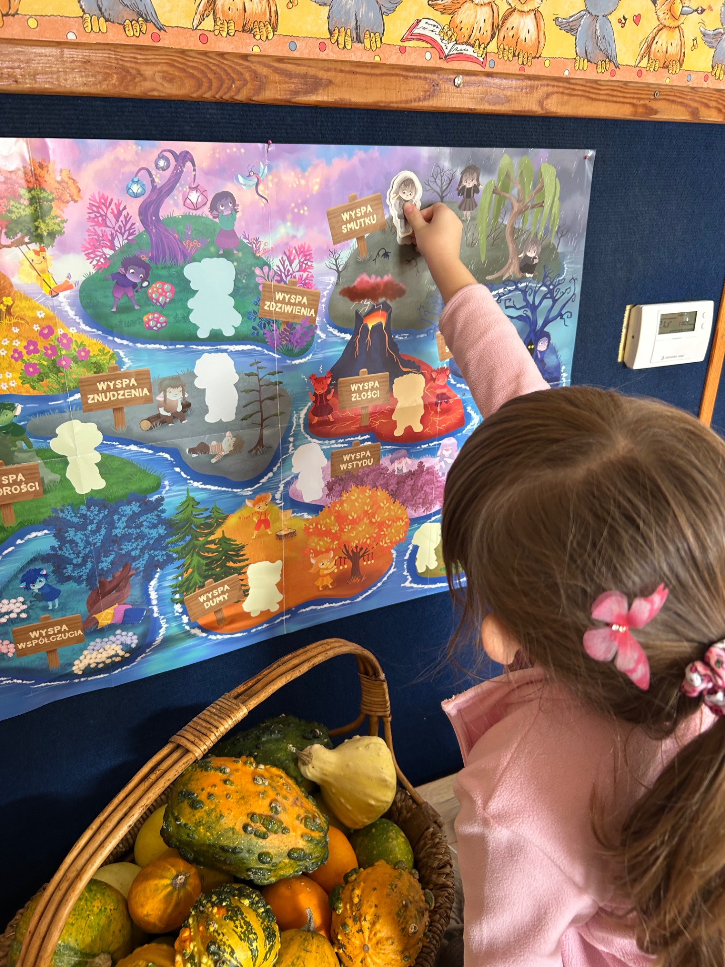 Dowiedzieliśmy się, że smutek to zupełnie naturalne uczucie, które pojawia się u każdego z nas. Rozmawialiśmy o tym, co nas czasem smuci i jak możemy sobie wtedy pomóc – przytuleniem, rozmową, uśmiechem lub wspólną zabawą.