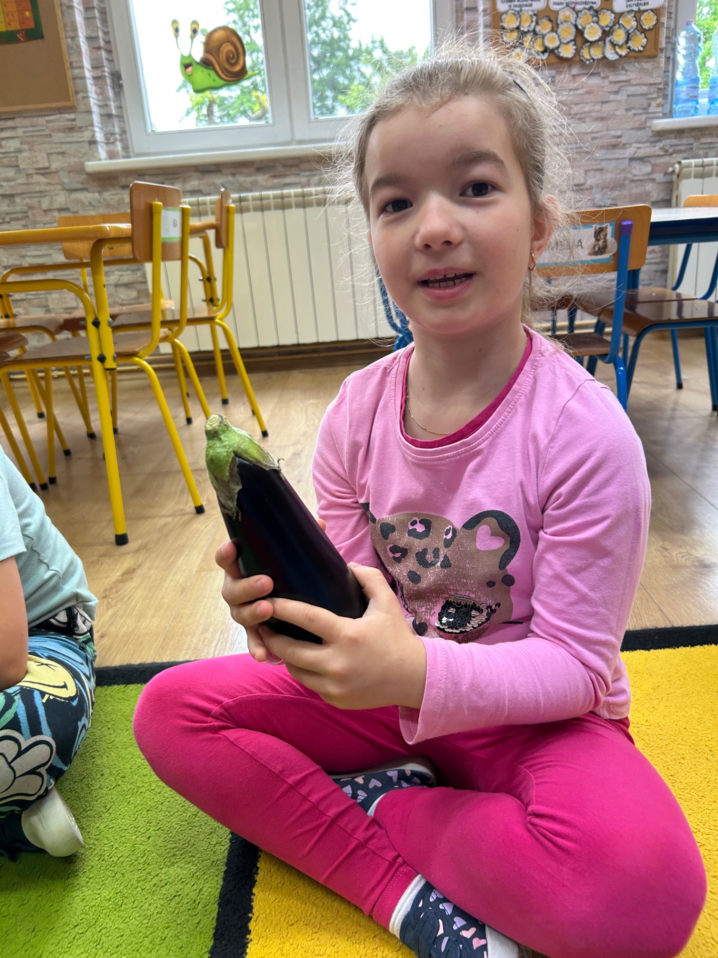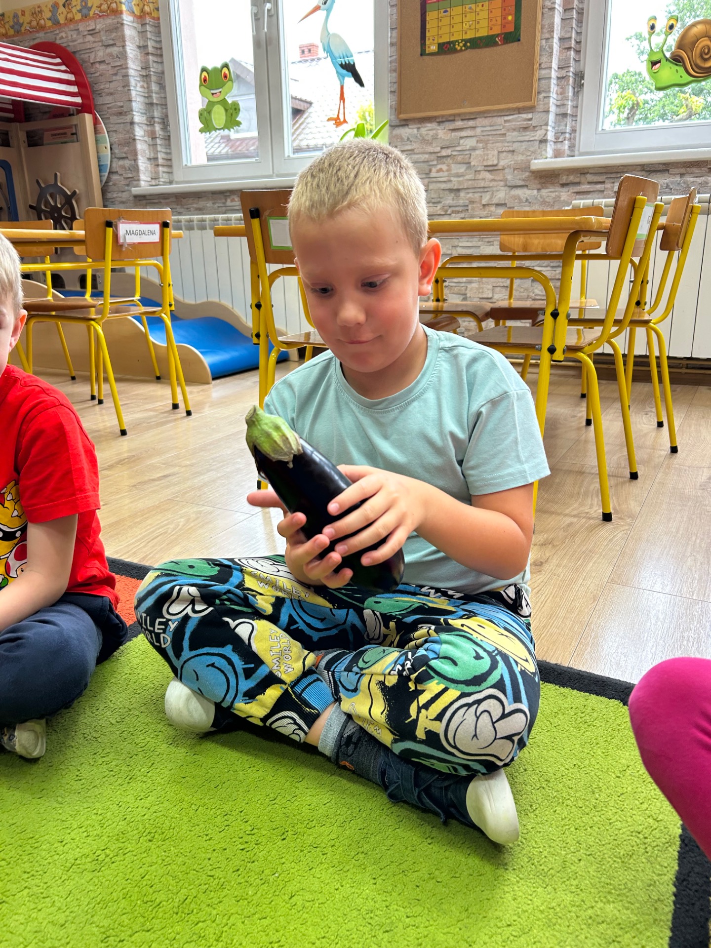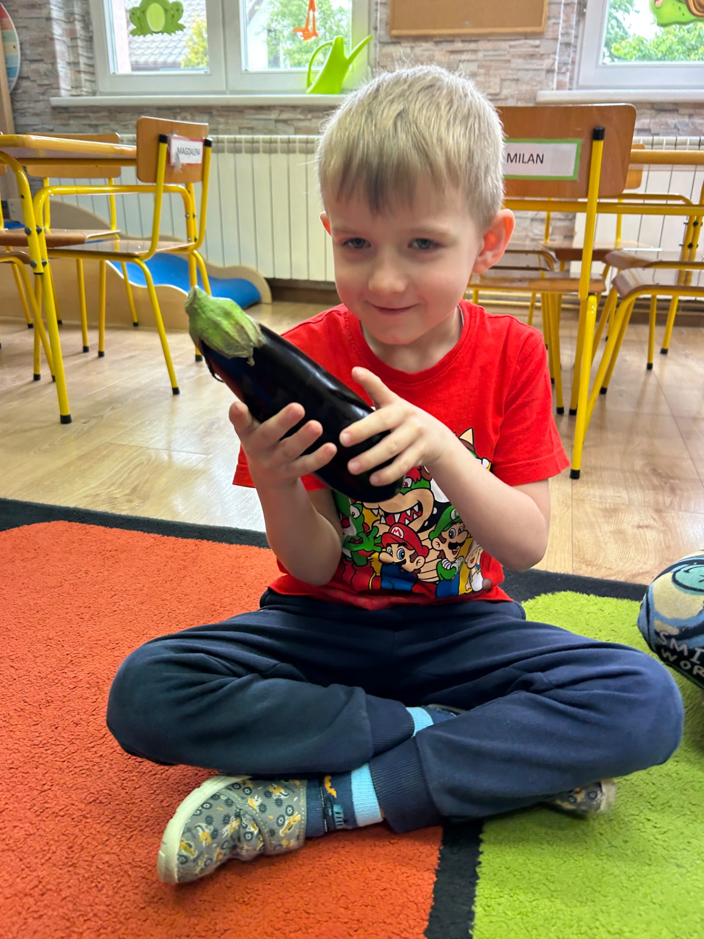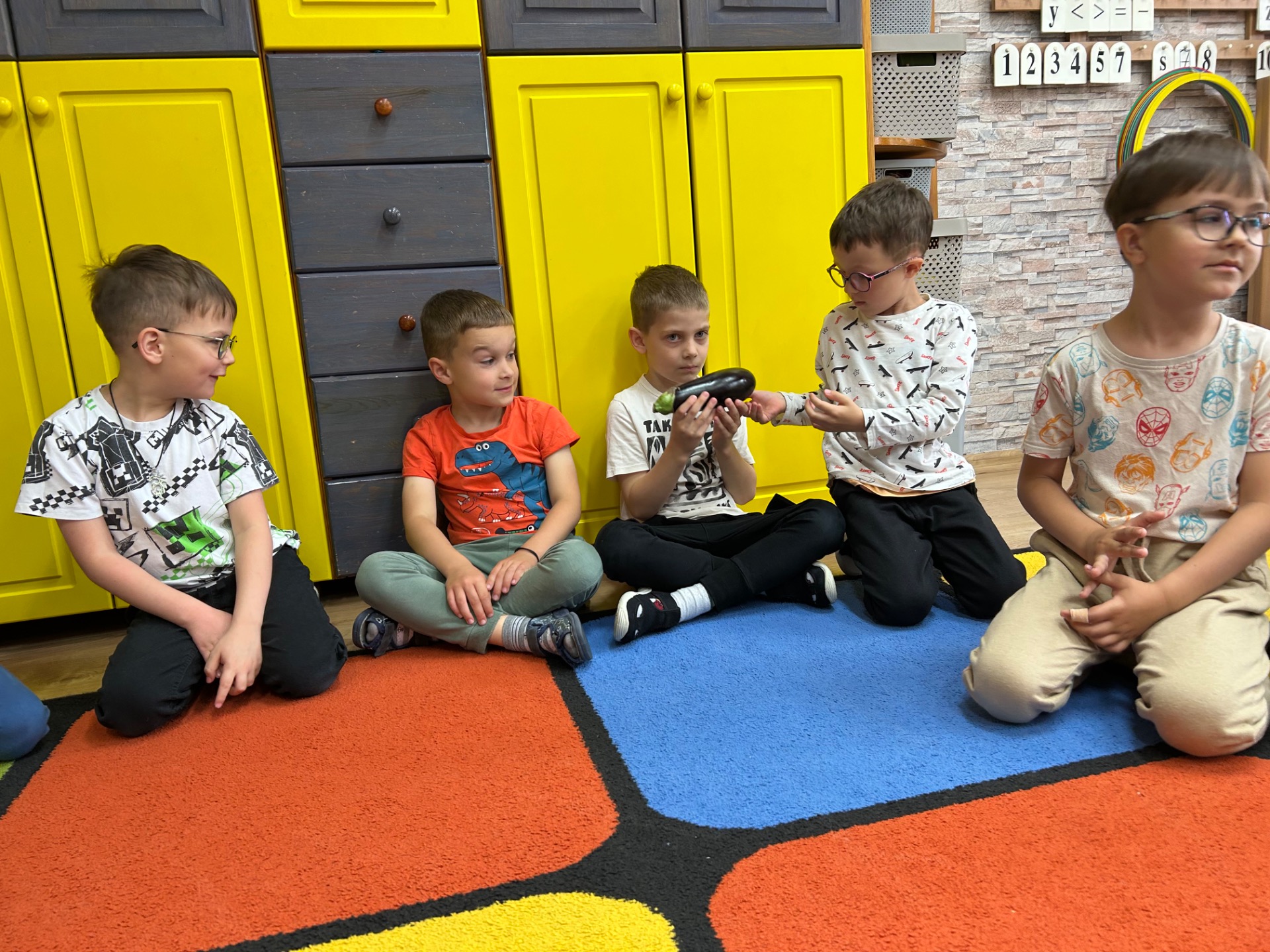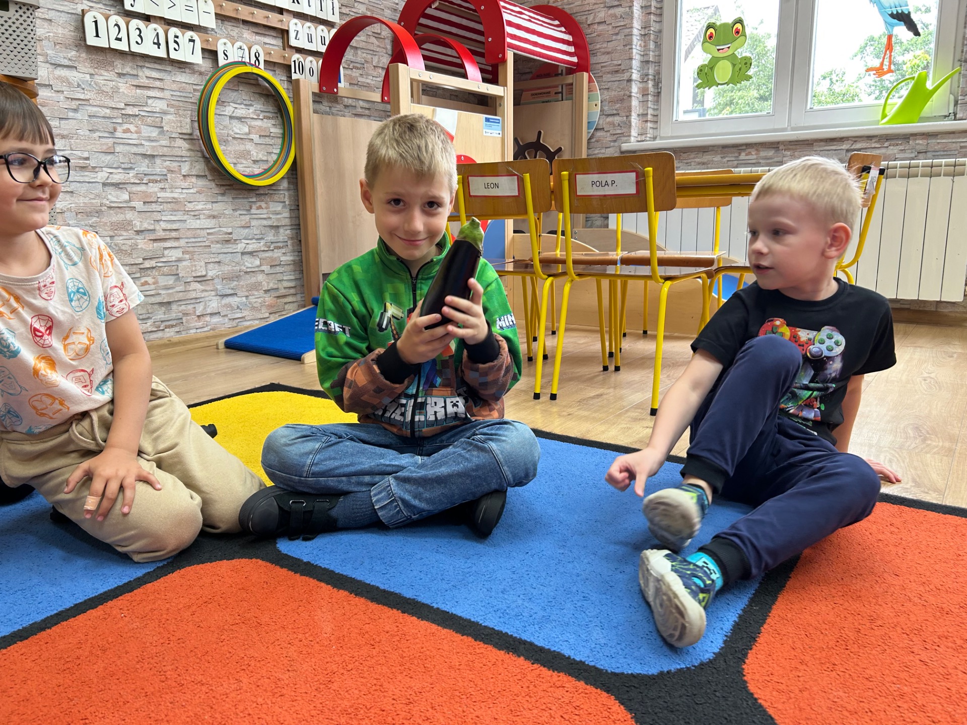 Dzieci z zainteresowaniem poznawały jego wygląd, strukturę i właściwości. Dowiedziały się, skąd pochodzi bakłażan, do czego można go wykorzystać w kuchni, a nawet miały okazję go dotknąć, powąchać i… spróbować!