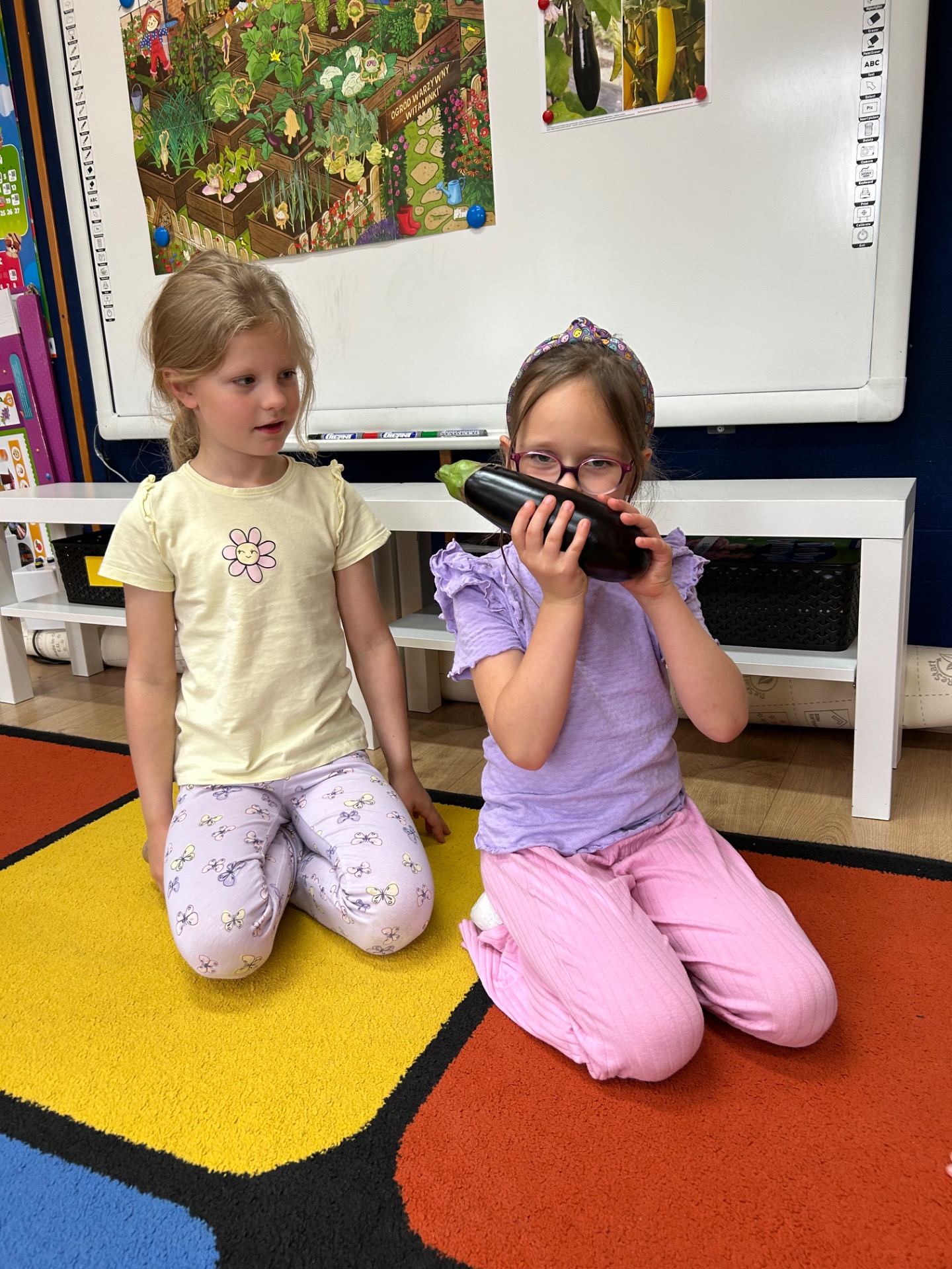 W naszym przedszkolu w tym roku szkolnym realizowaliśmy projekt „Witaminki”. Ostatnim bohaterem naszych zajęć był bakłażan – tajemnicze warzywo o pięknym, fioletowym kolorze!
