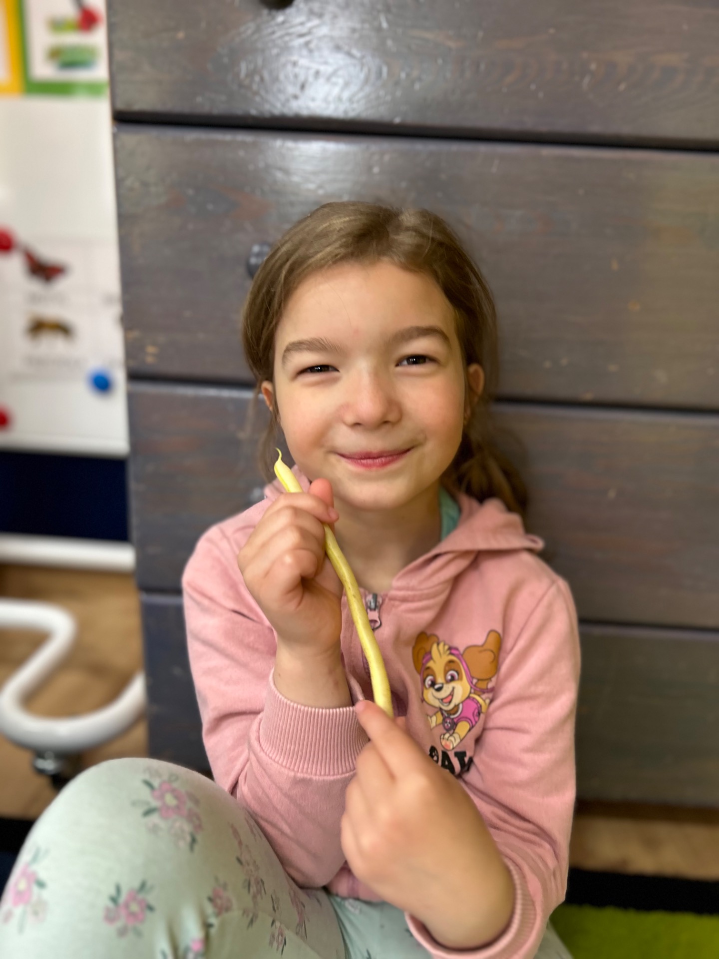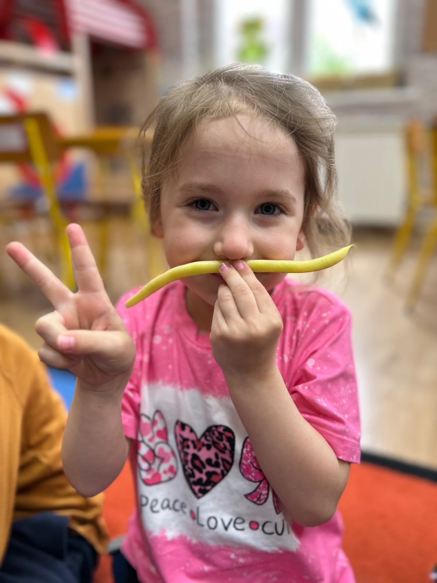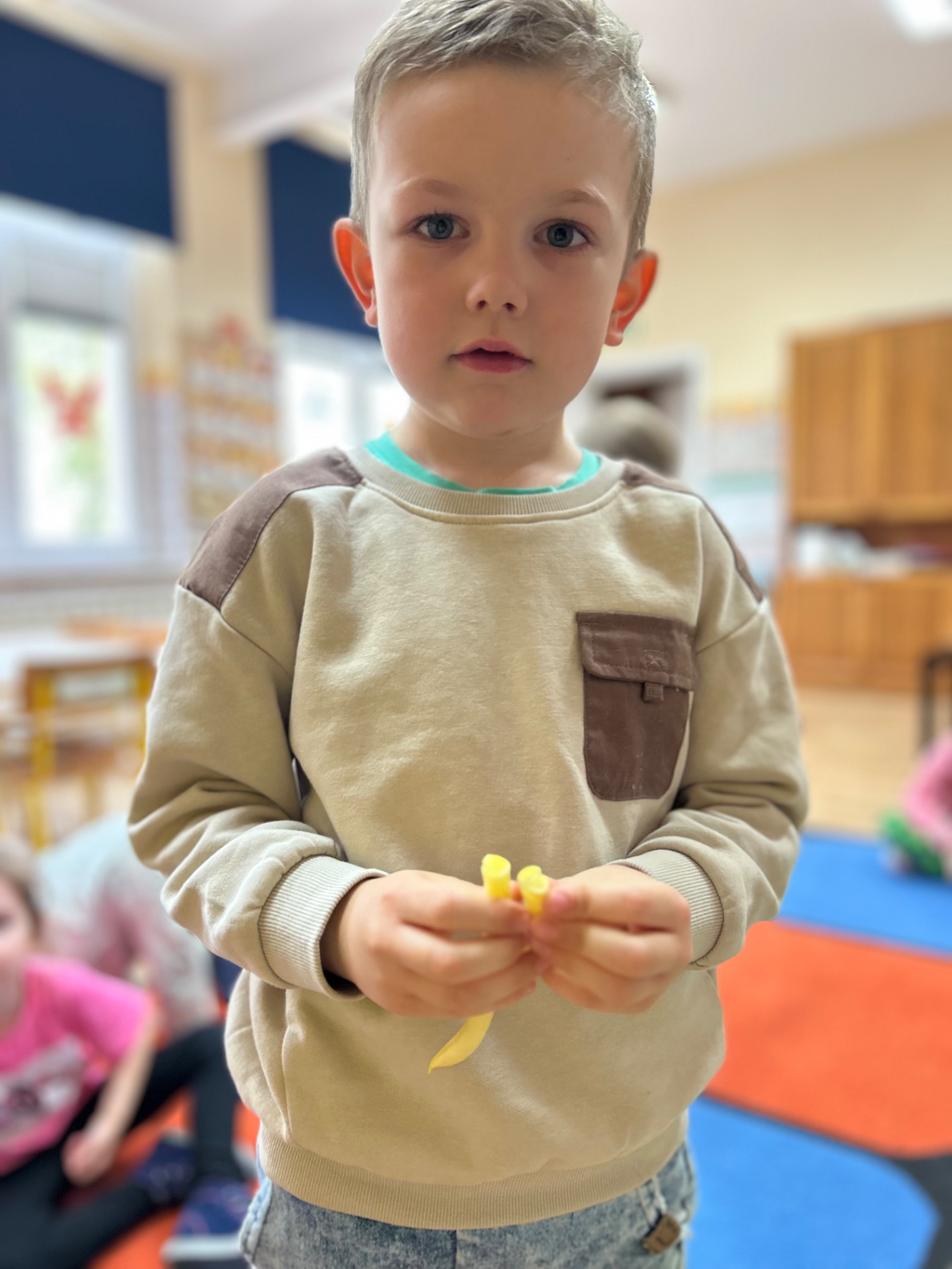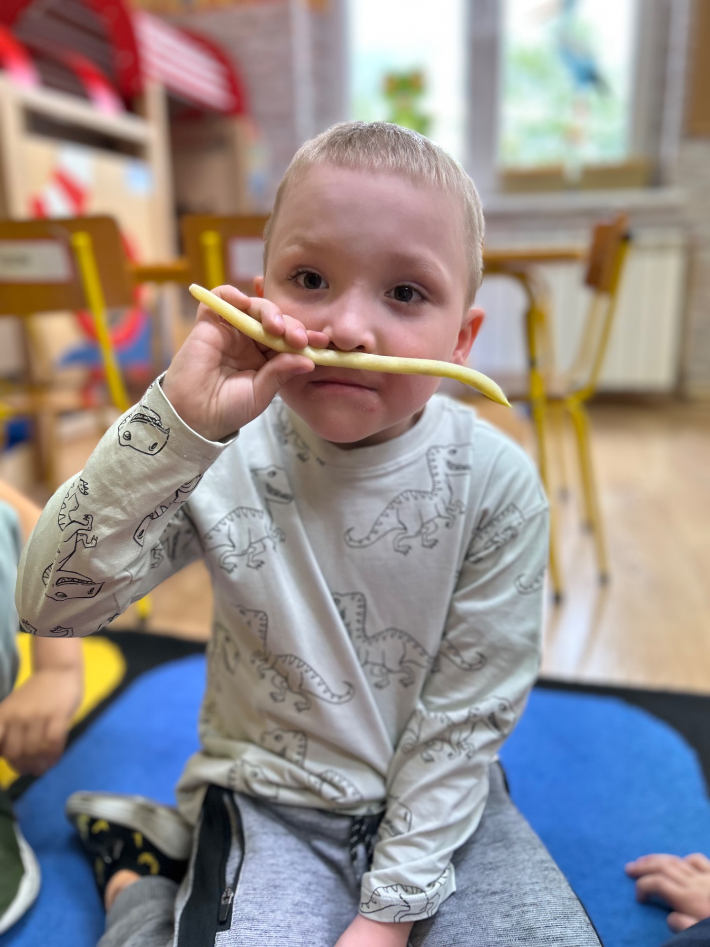 Podczas zajęć mieliśmy okazję poznać fasolkę z każdej strony – dotykaliśmy, oglądaliśmy, wąchaliśmy, a nawet próbowaliśmy jej na różne sposoby. Dzieci z wielką ciekawością sprawdzały, jak fasolka wygląda na surowo i jak zmienia się po ugotowaniu.