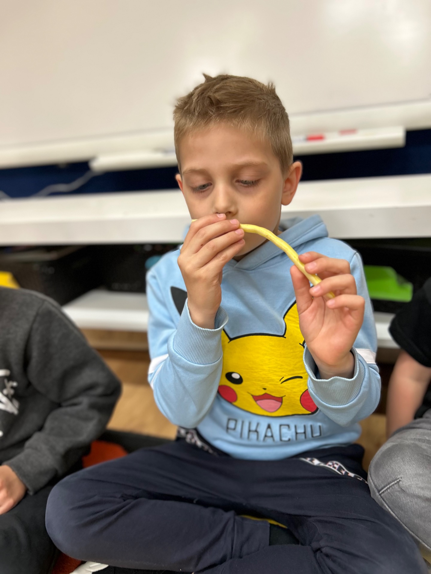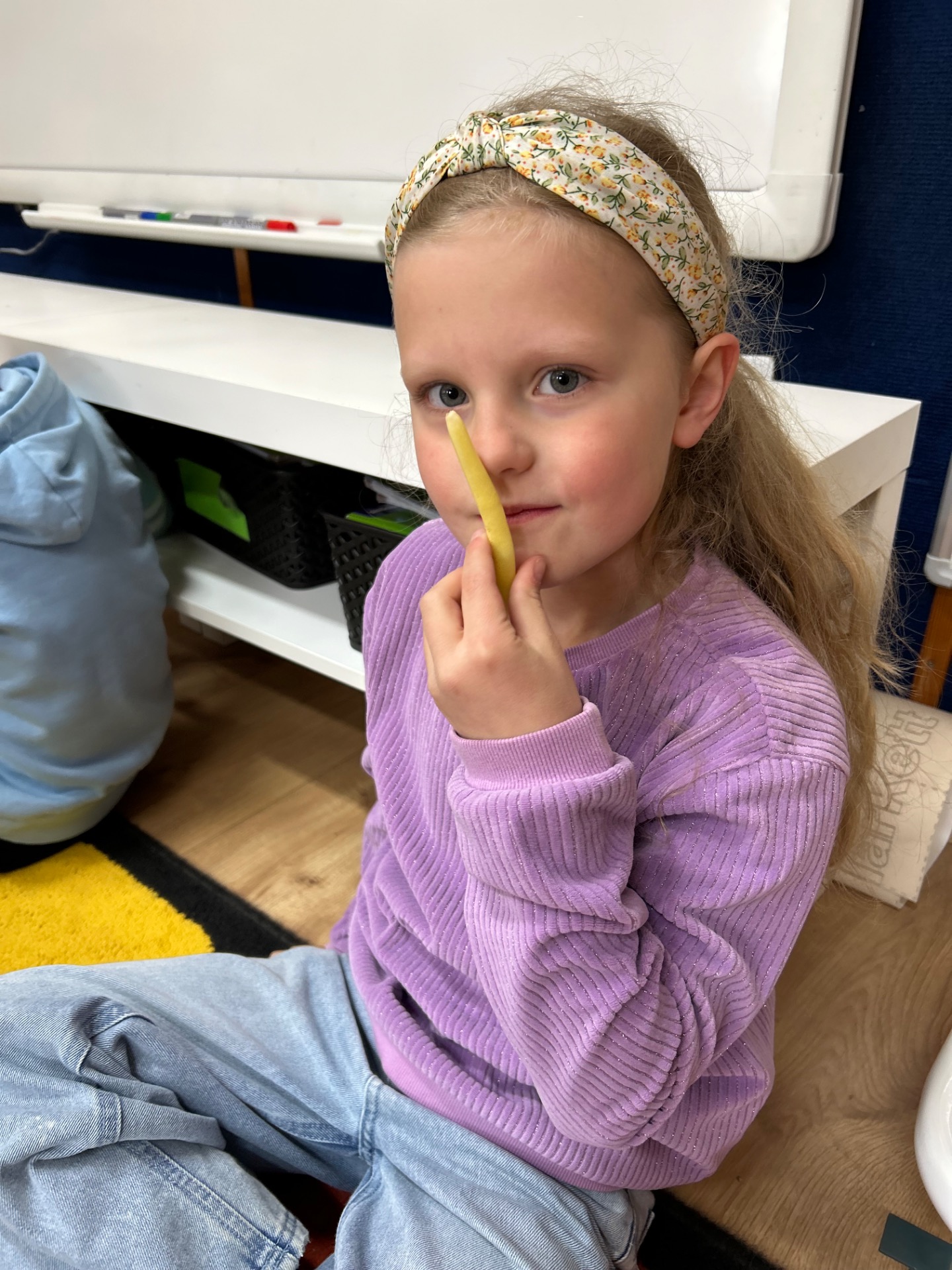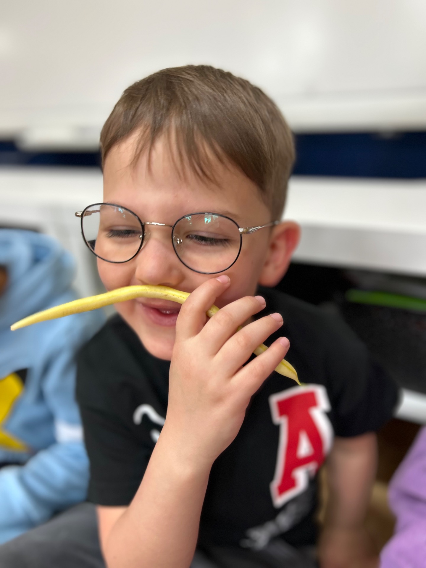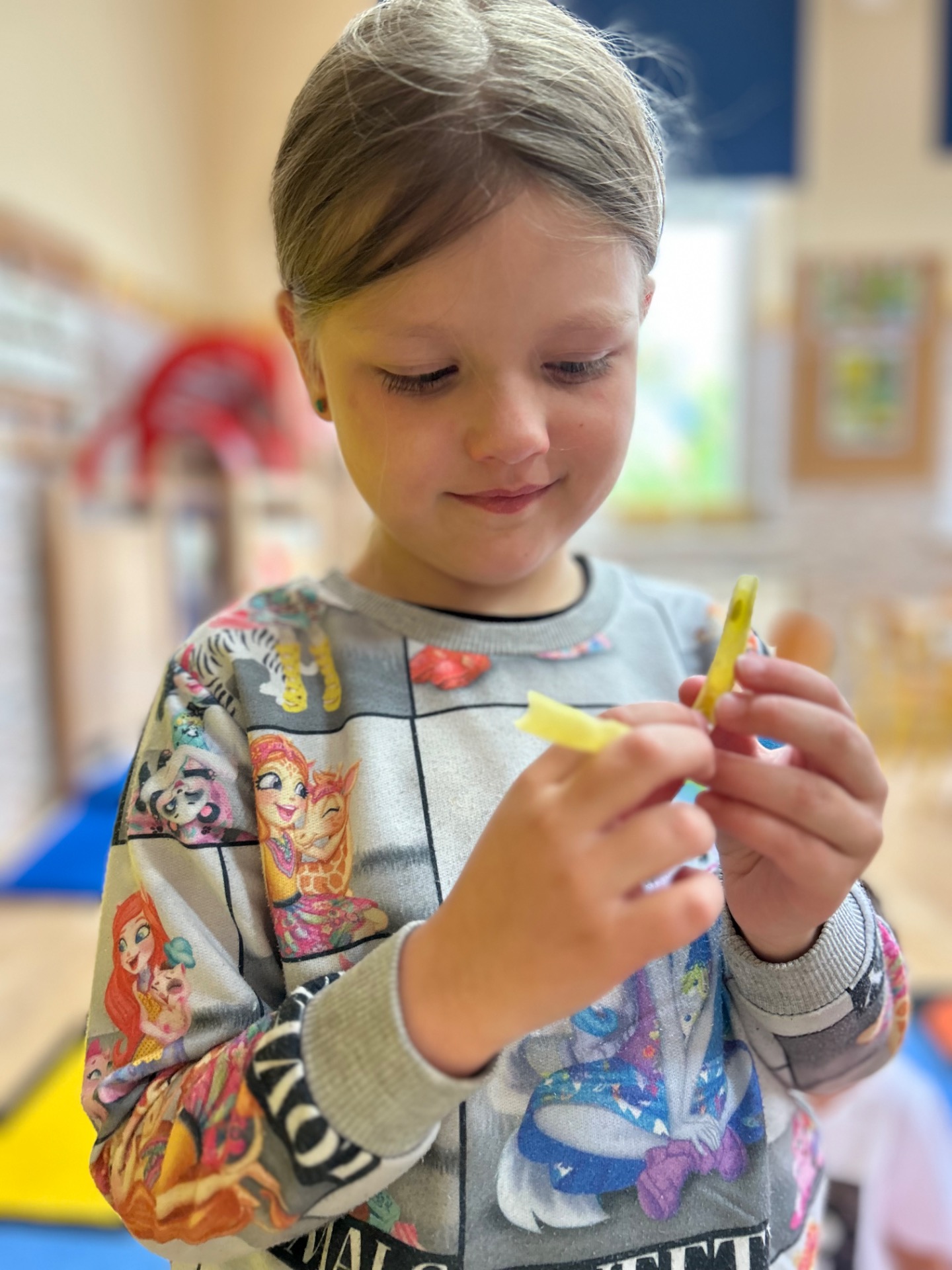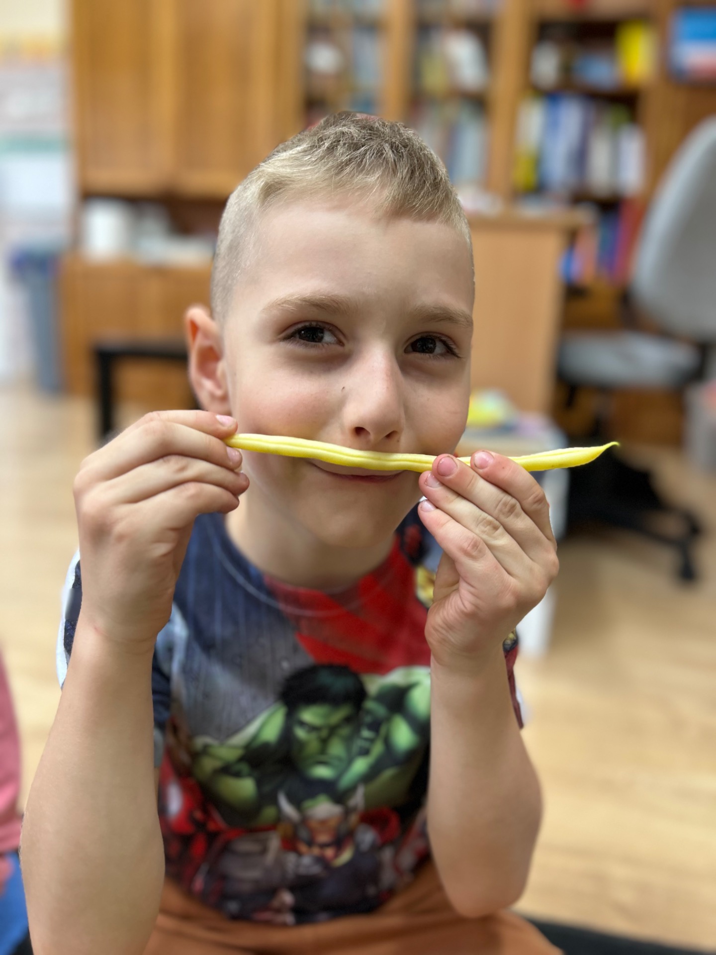 Podczas zajęć mieliśmy okazję poznać fasolkę z każdej strony – dotykaliśmy, oglądaliśmy, wąchaliśmy, a nawet próbowaliśmy jej na różne sposoby. Dzieci z wielką ciekawością sprawdzały, jak fasolka wygląda na surowo i jak zmienia się po ugotowaniu.