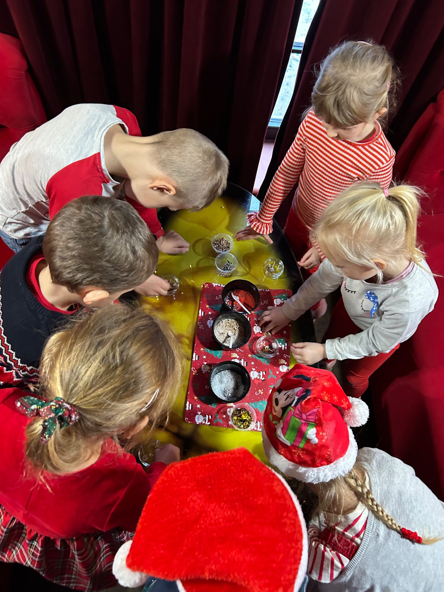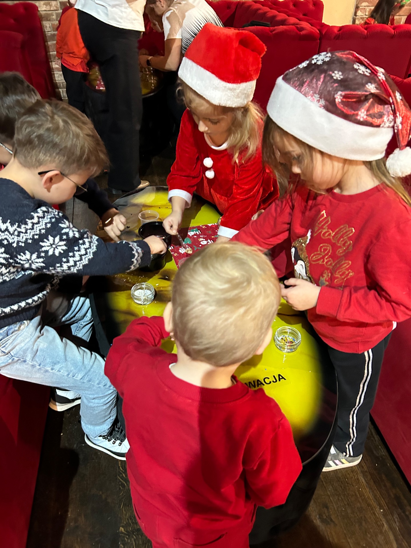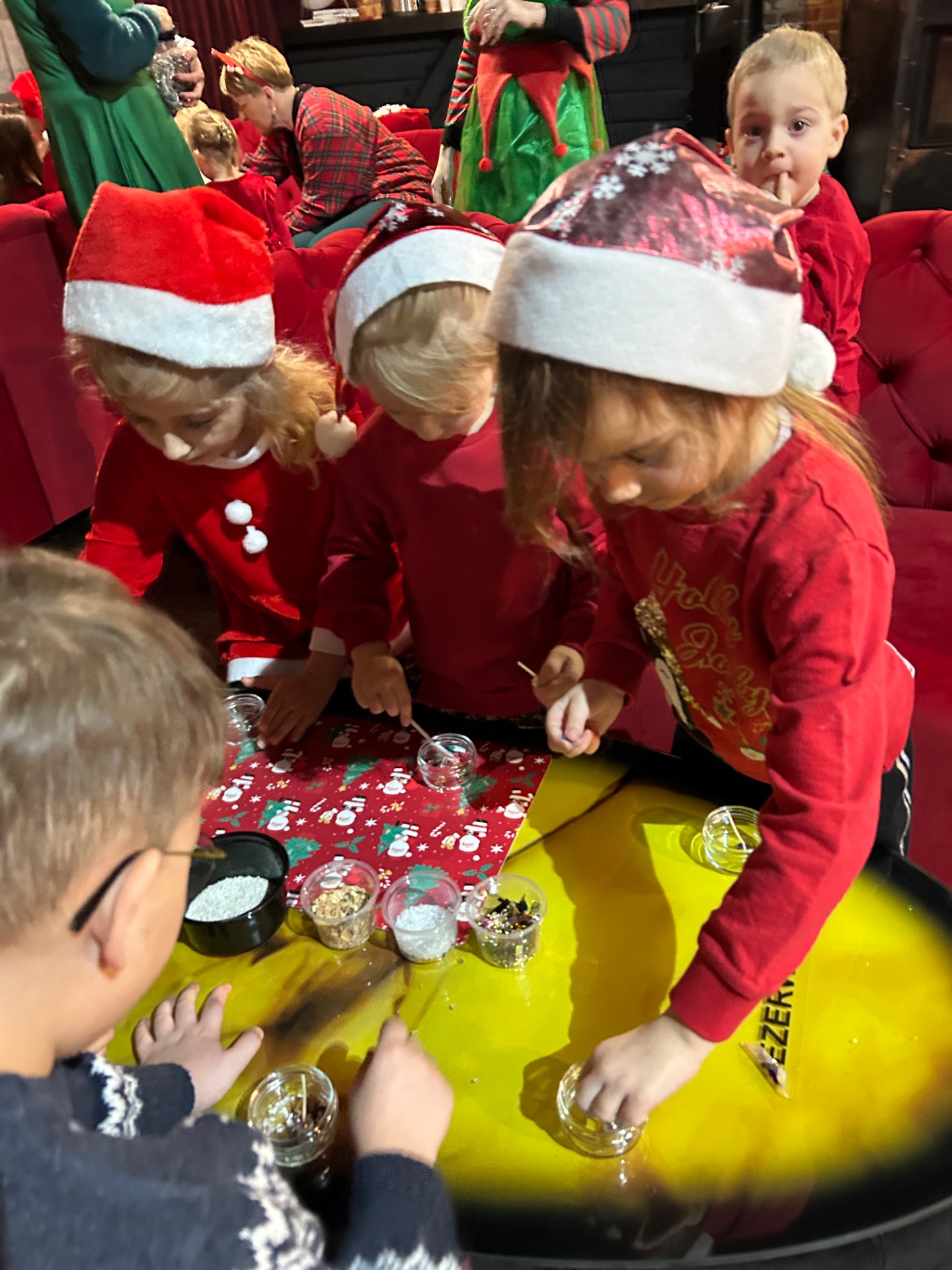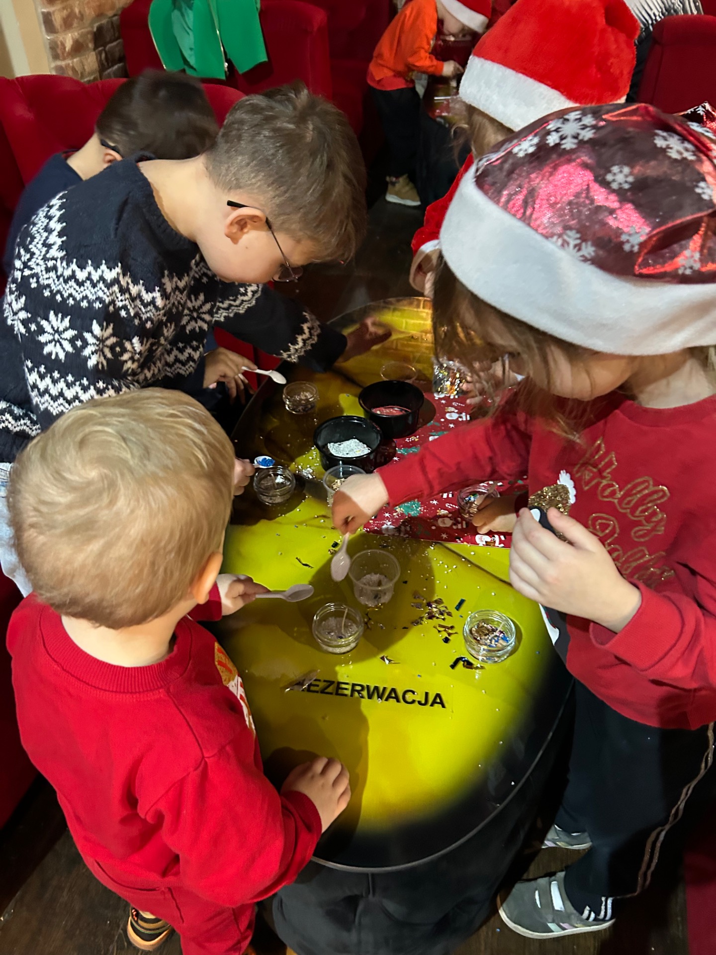 Podczas wizyty: oglądaliśmy przedstawienie przygotowane specjalnie dla najmłodszych, wspólnie śpiewaliśmy kolędy, zajadaliśmy się słodkim poczęstunkiem, braliśmy udział w warsztatach świątecznych oraz – co najważniejsze – spotkaliśmy się ze Świętym Mikołajem!