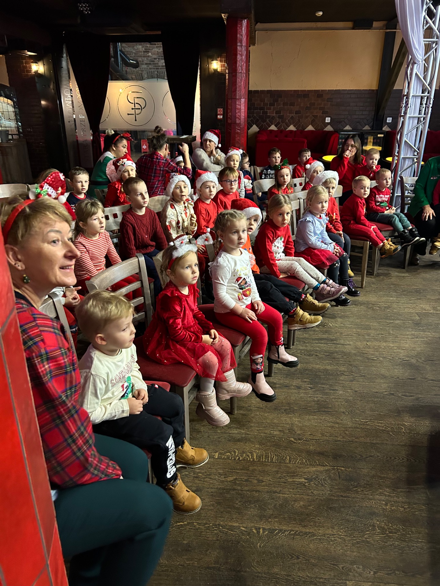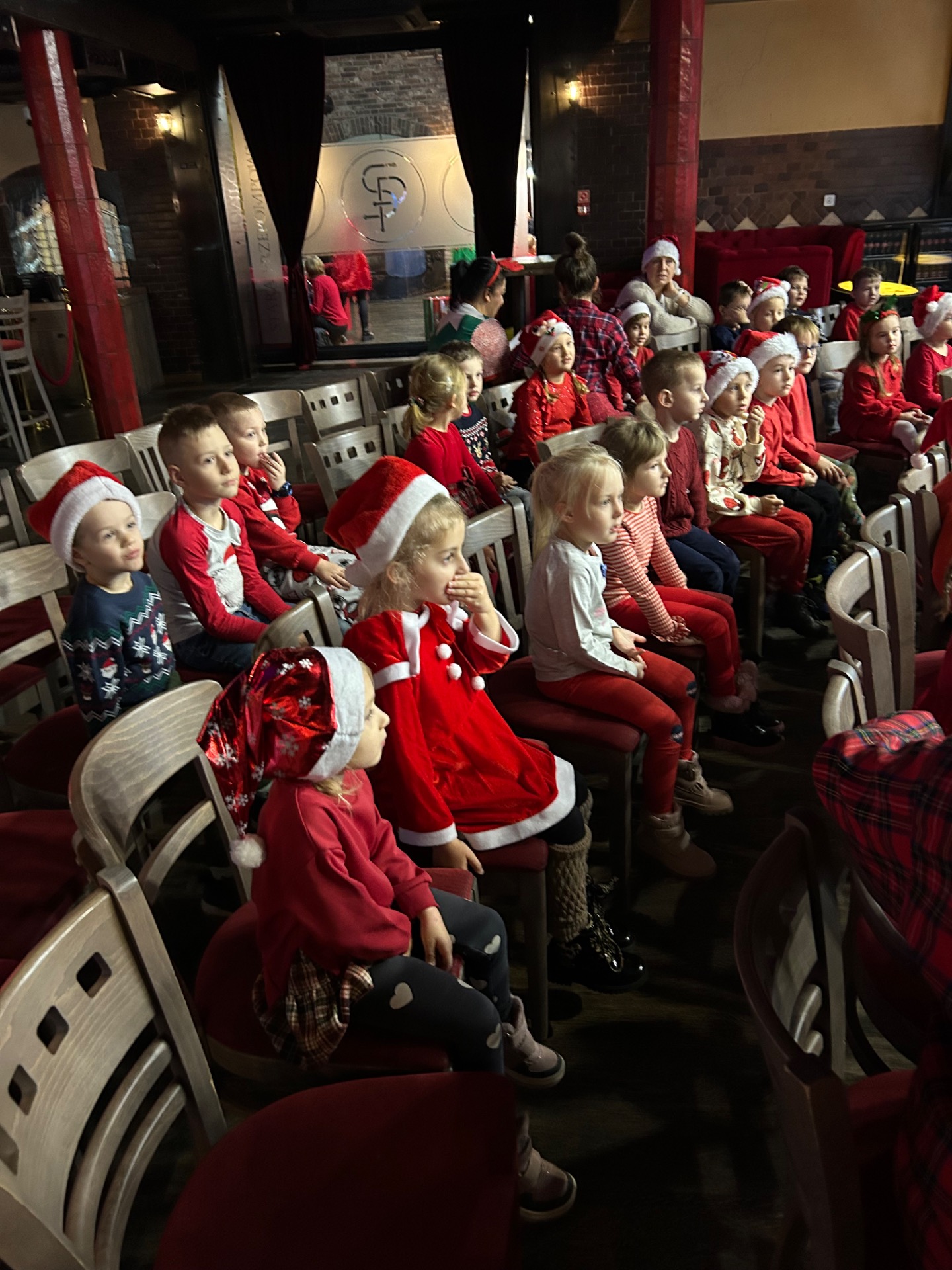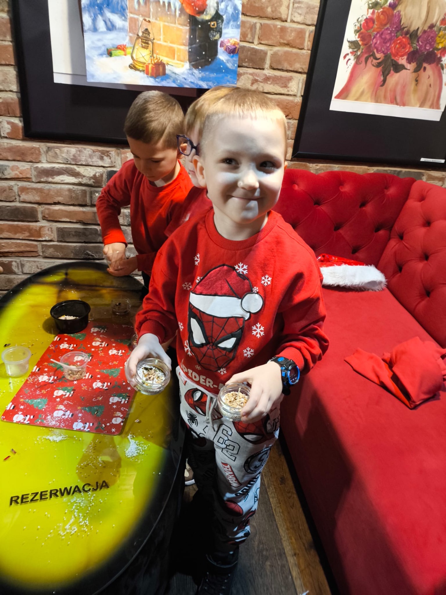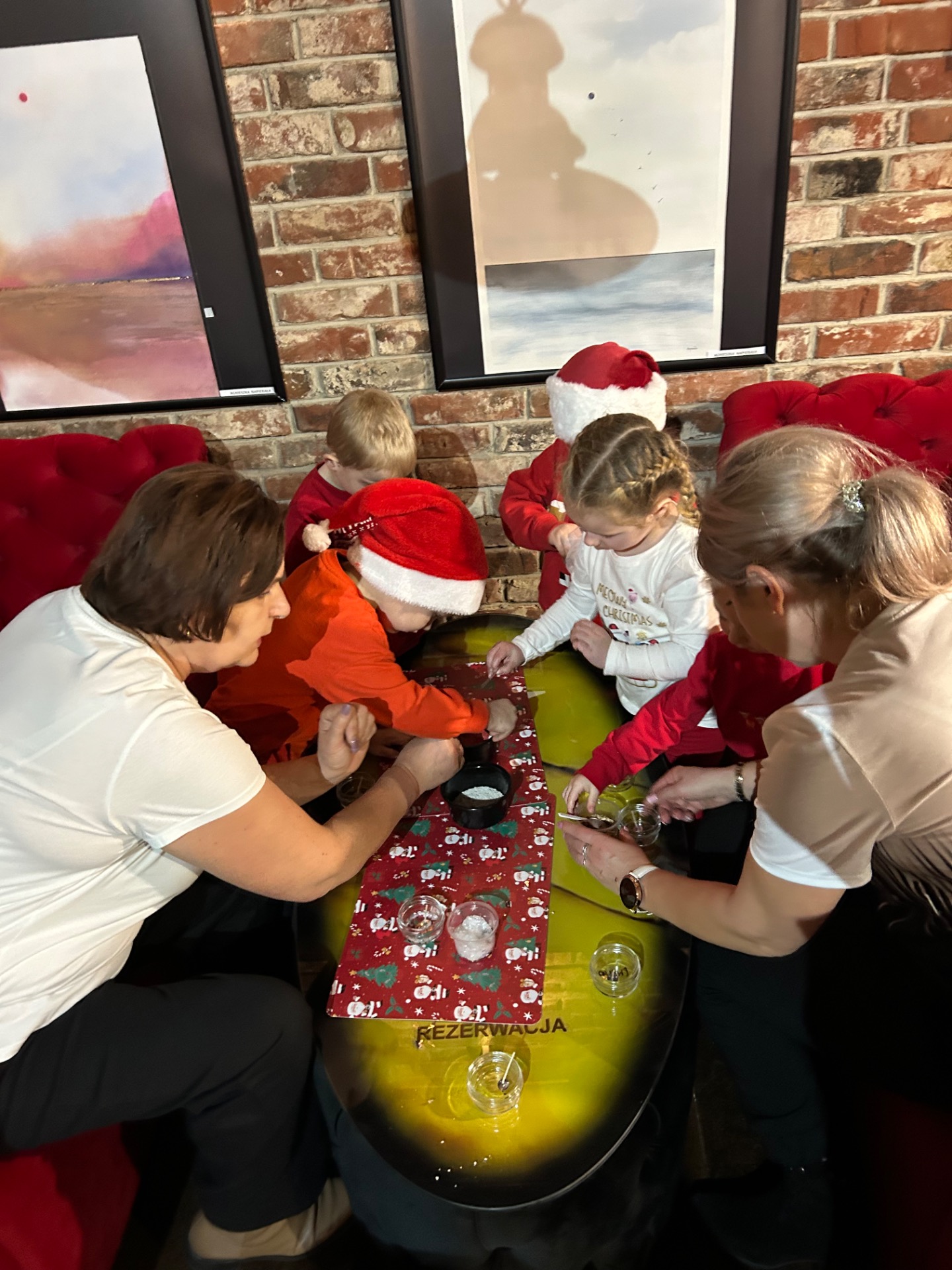Podczas wizyty: oglądaliśmy przedstawienie przygotowane specjalnie dla najmłodszych, wspólnie śpiewaliśmy kolędy, zajadaliśmy się słodkim poczęstunkiem, braliśmy udział w warsztatach świątecznych oraz – co najważniejsze – spotkaliśmy się ze Świętym Mikołajem!