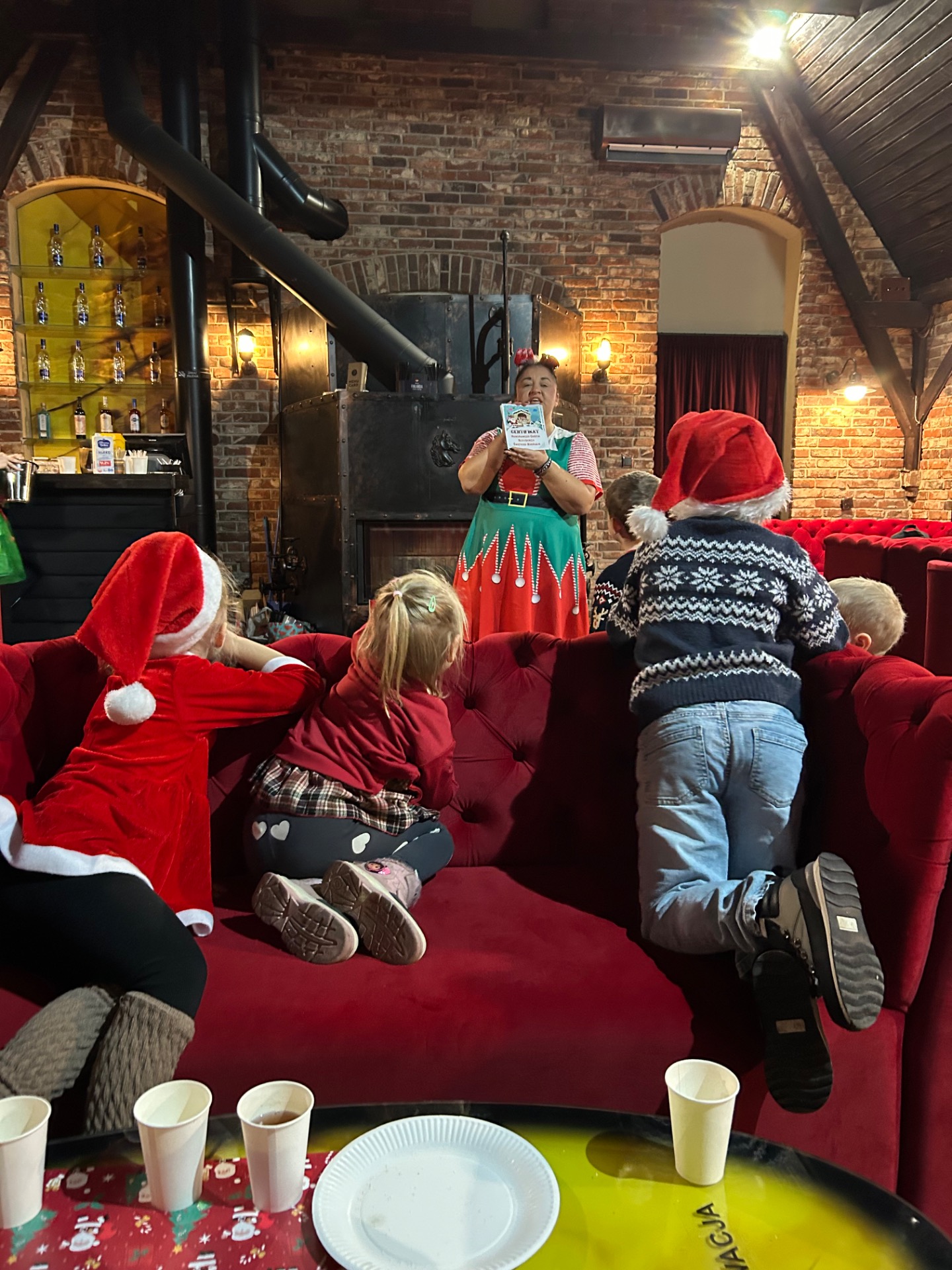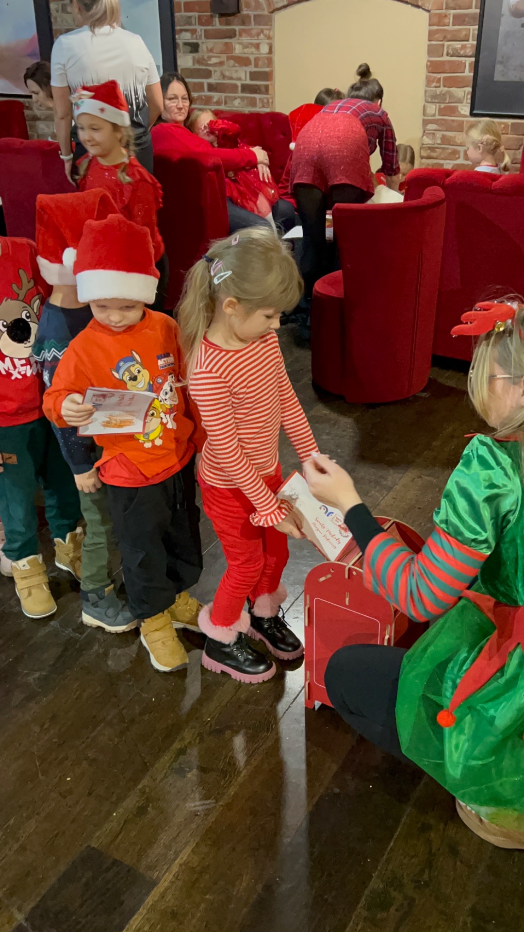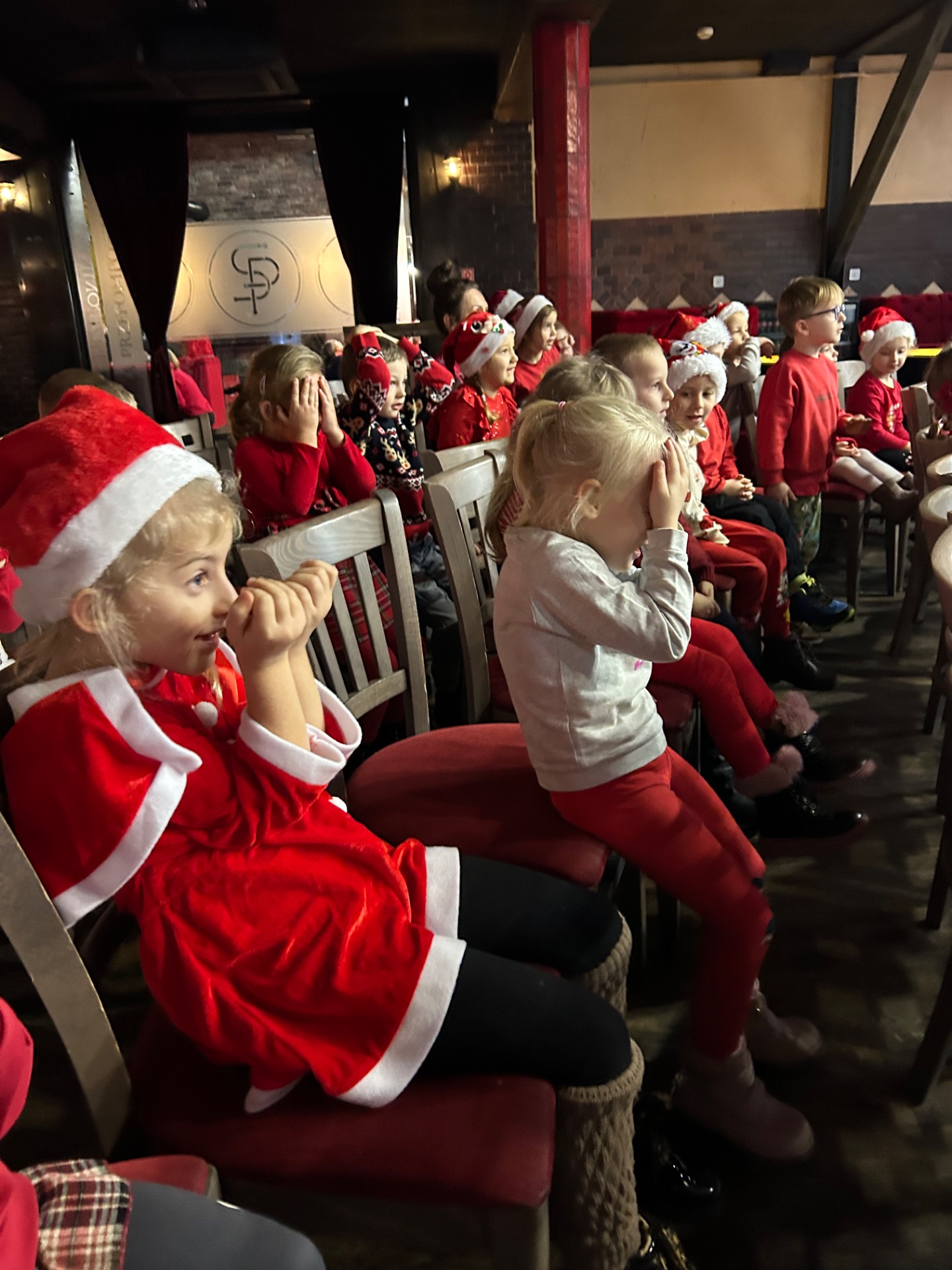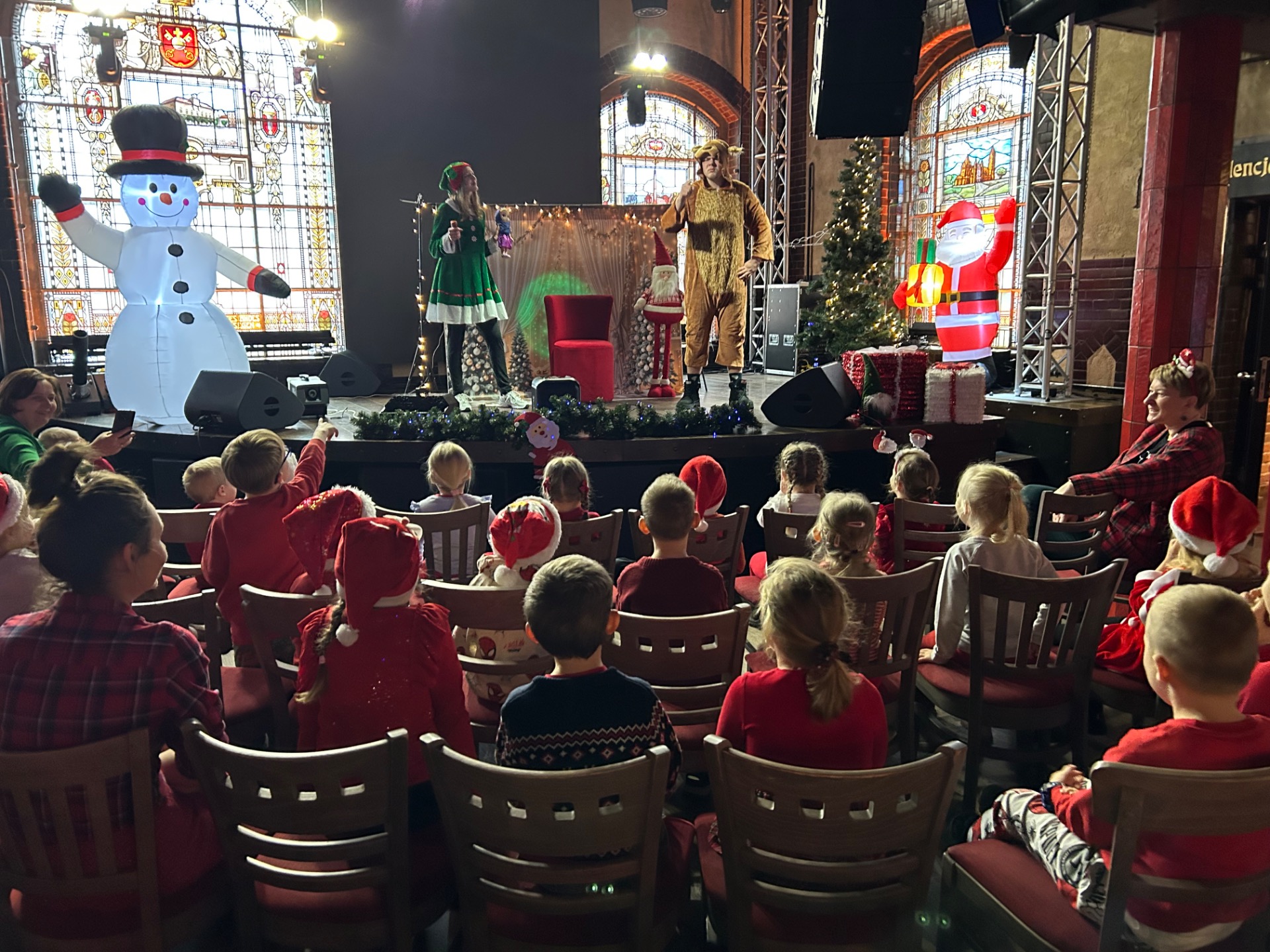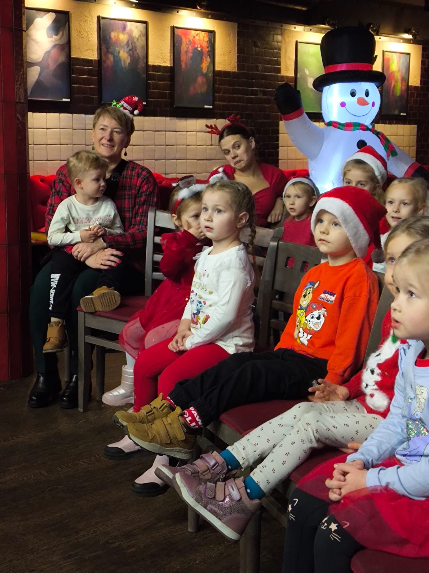 Podczas wizyty: oglądaliśmy przedstawienie przygotowane specjalnie dla najmłodszych, wspólnie śpiewaliśmy kolędy, zajadaliśmy się słodkim poczęstunkiem, braliśmy udział w warsztatach świątecznych oraz – co najważniejsze – spotkaliśmy się ze Świętym Mikołajem!