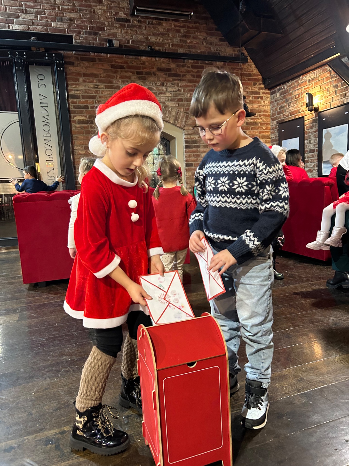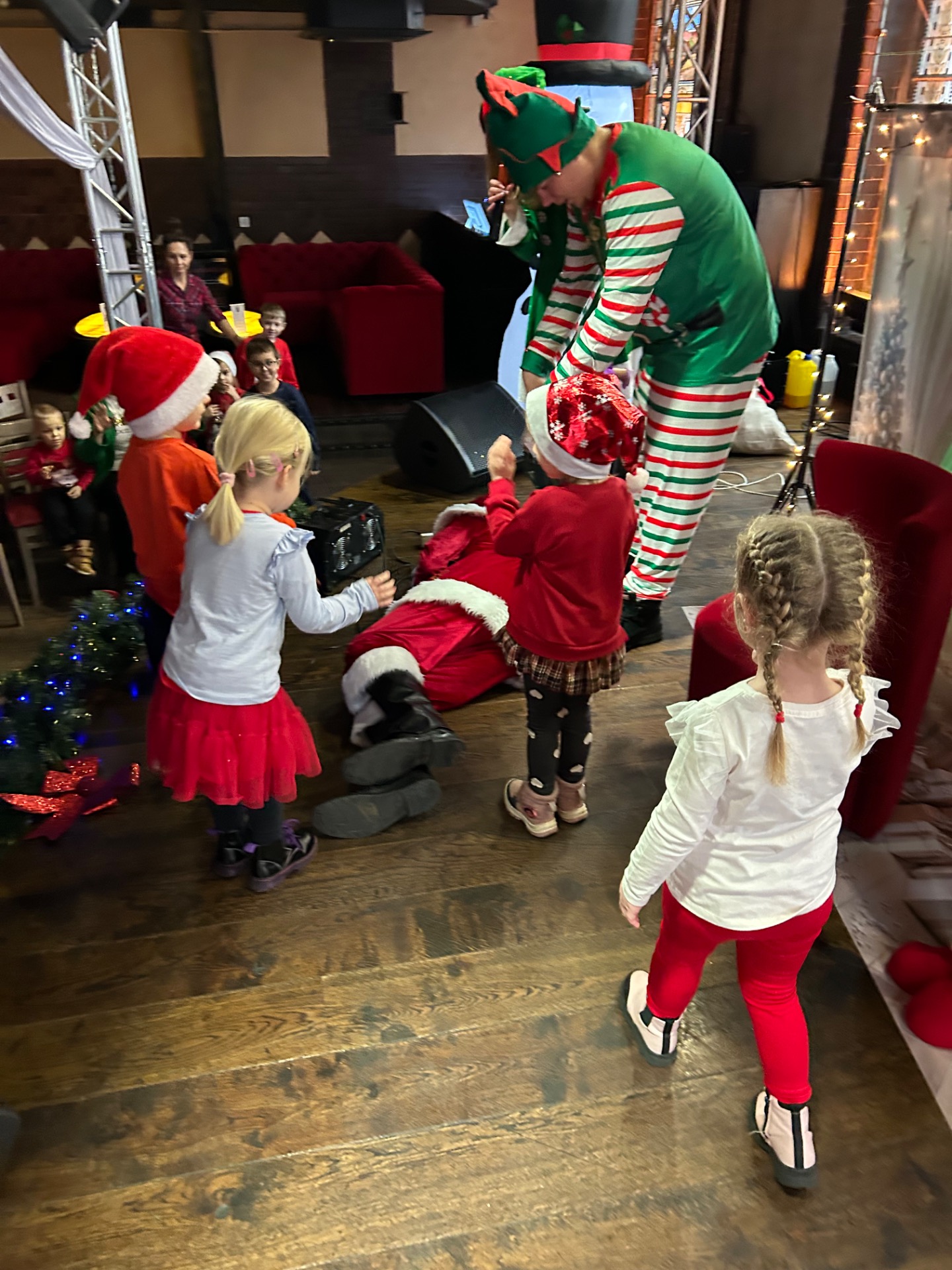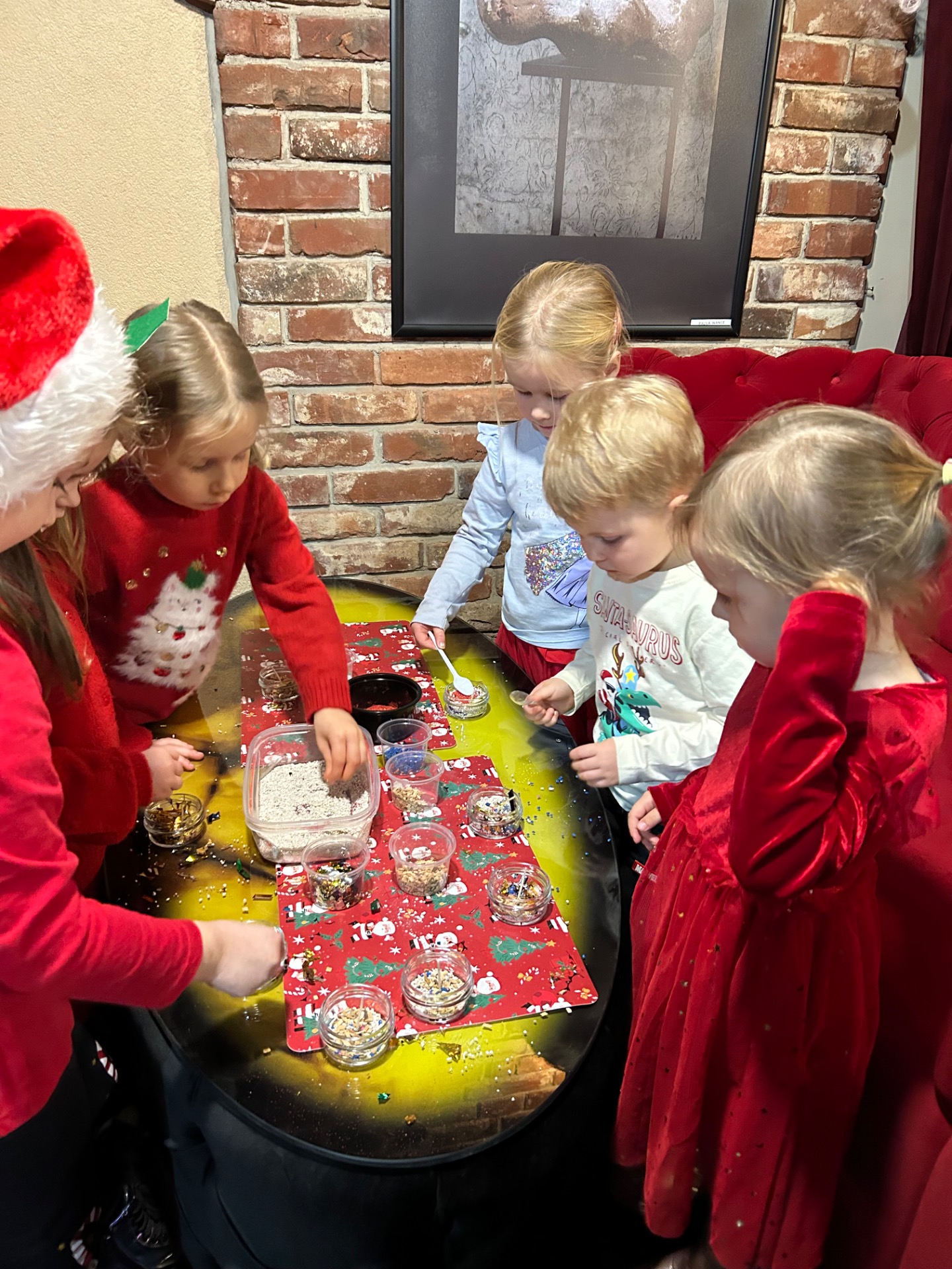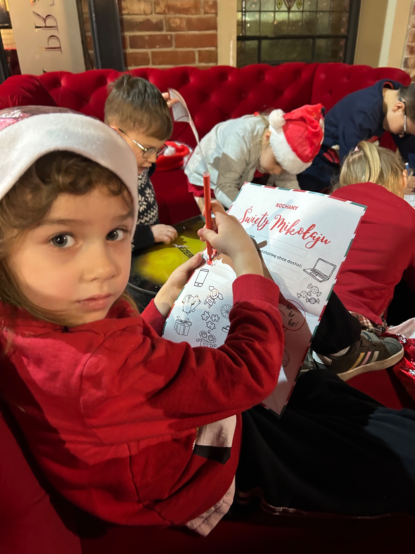 Podczas wizyty: oglądaliśmy przedstawienie przygotowane specjalnie dla najmłodszych, wspólnie śpiewaliśmy kolędy, zajadaliśmy się słodkim poczęstunkiem, braliśmy udział w warsztatach świątecznych oraz – co najważniejsze – spotkaliśmy się ze Świętym Mikołajem!