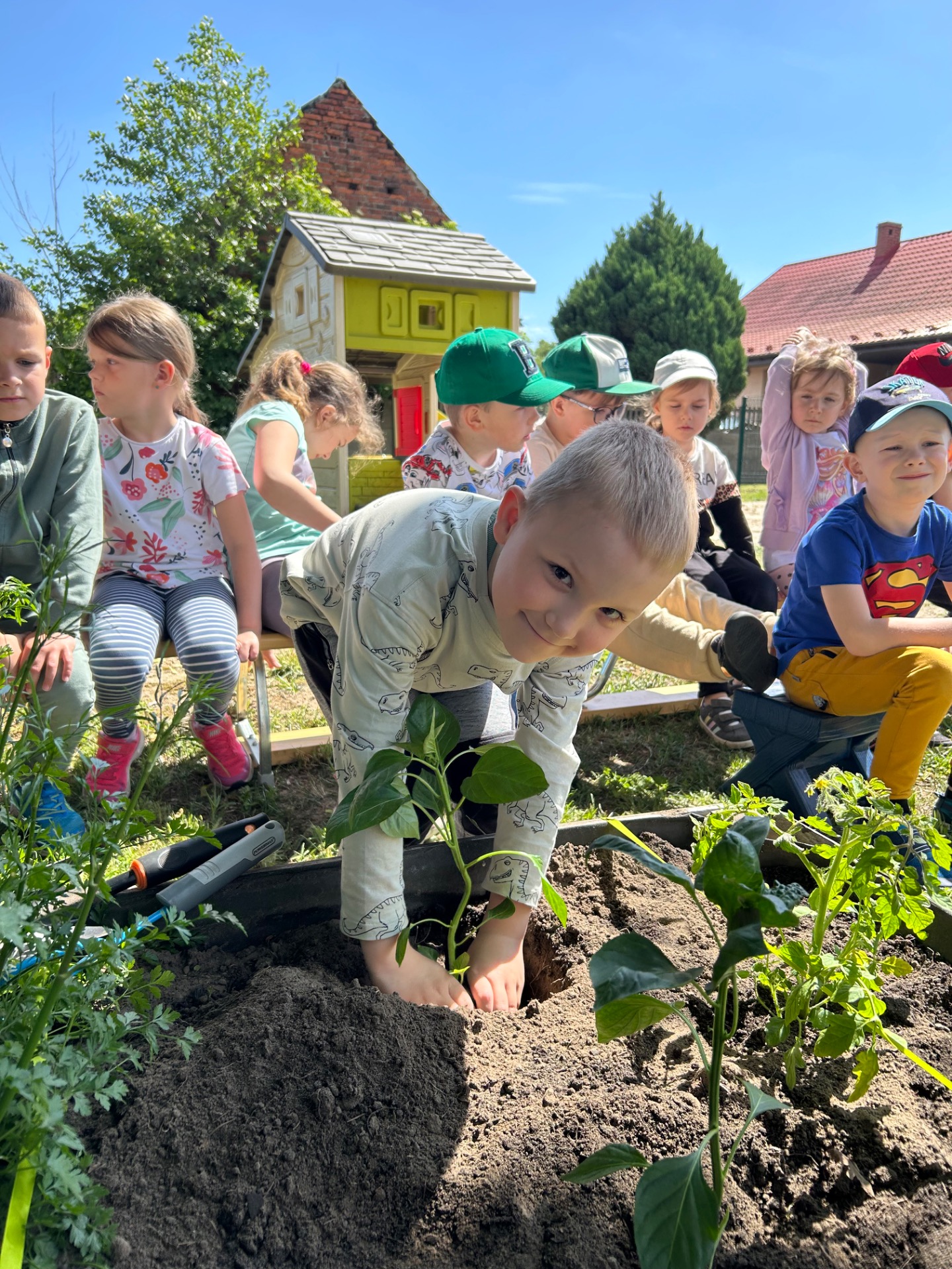 Wiosna zagościła u nas na dobre, a razem z nią – prace w naszym przedszkolnym ogródku! Dzieci z wielkim zaangażowaniem i radością wzięły udział w sadzeniu oraz sianiu roślin. Mali ogrodnicy mieli okazję poznać różne gatunki warzyw i ziół, dowiedzieć się, czego potrzebują rośliny do wzrostu i jak o nie dbać.
