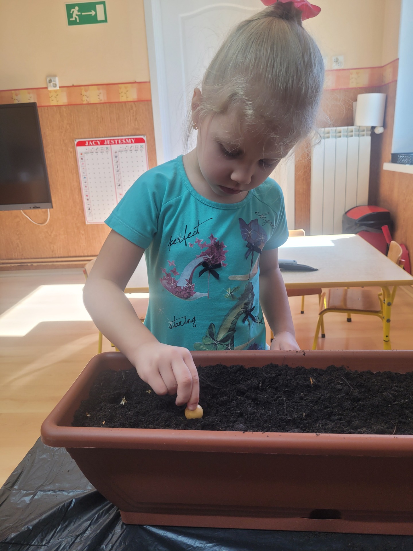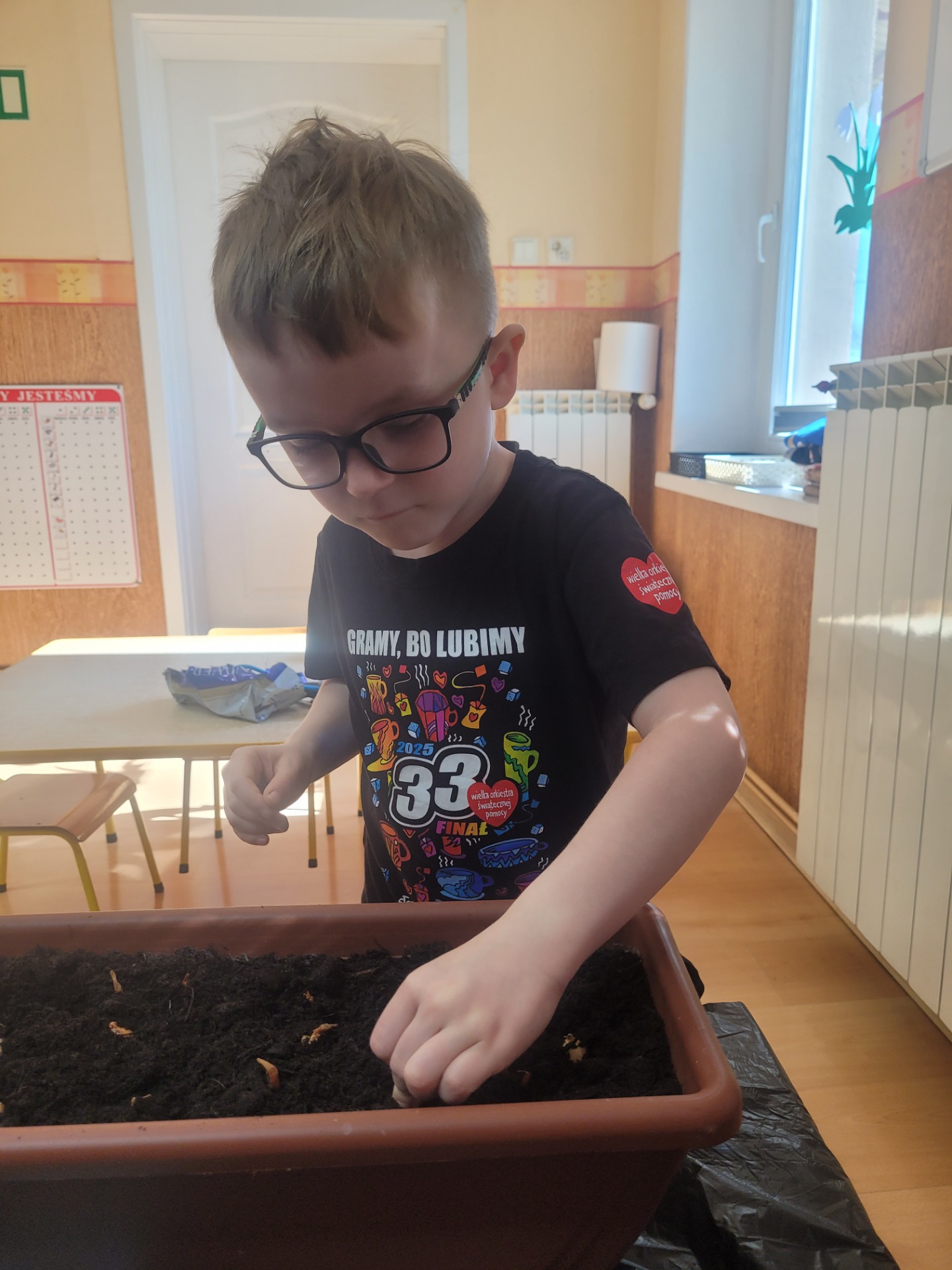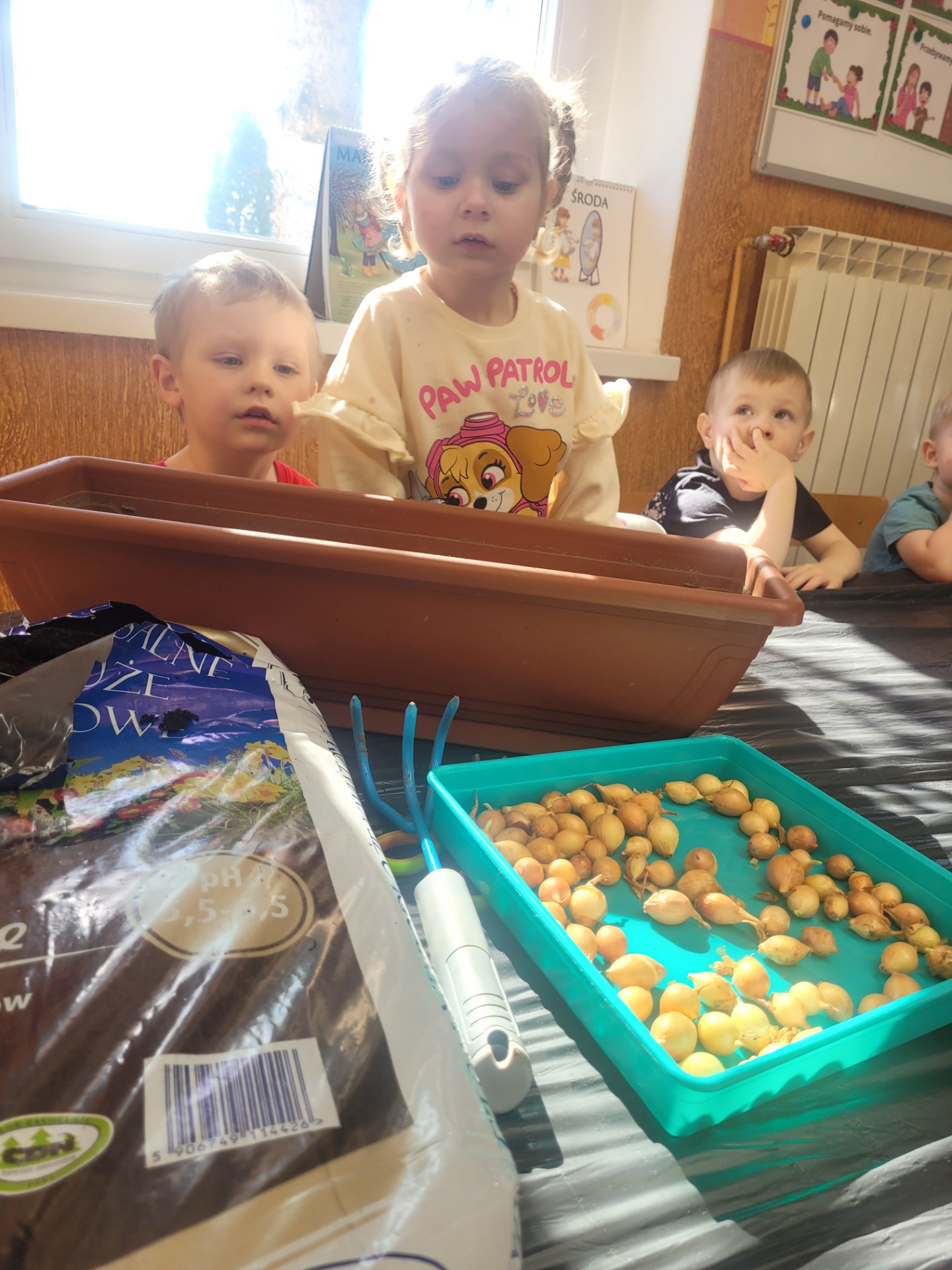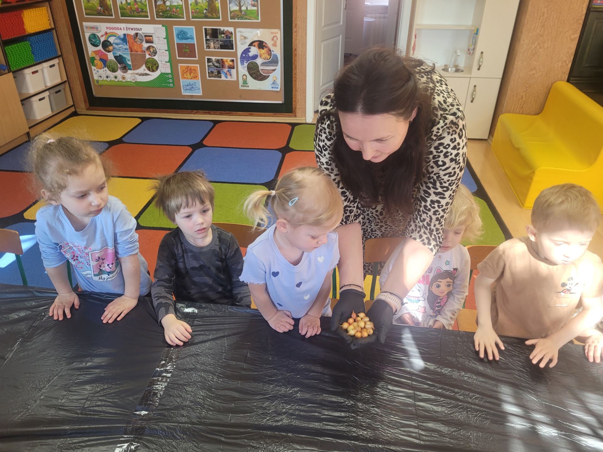 W czwartek dzieci z grupy Biedronki wspólnie przystąpiły do wyjątkowego zadania- sadzenia cebulek z których wyrośnie pyszny, zielony szczypiorek.