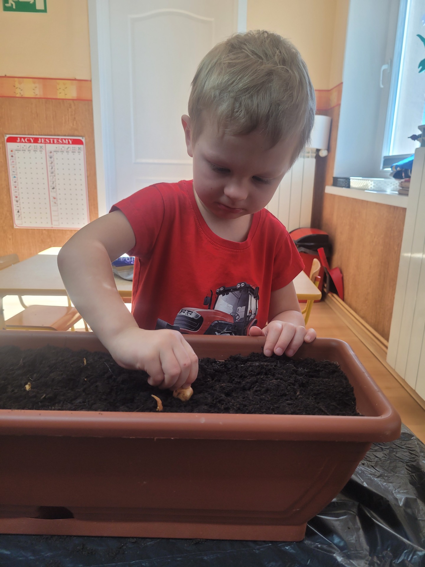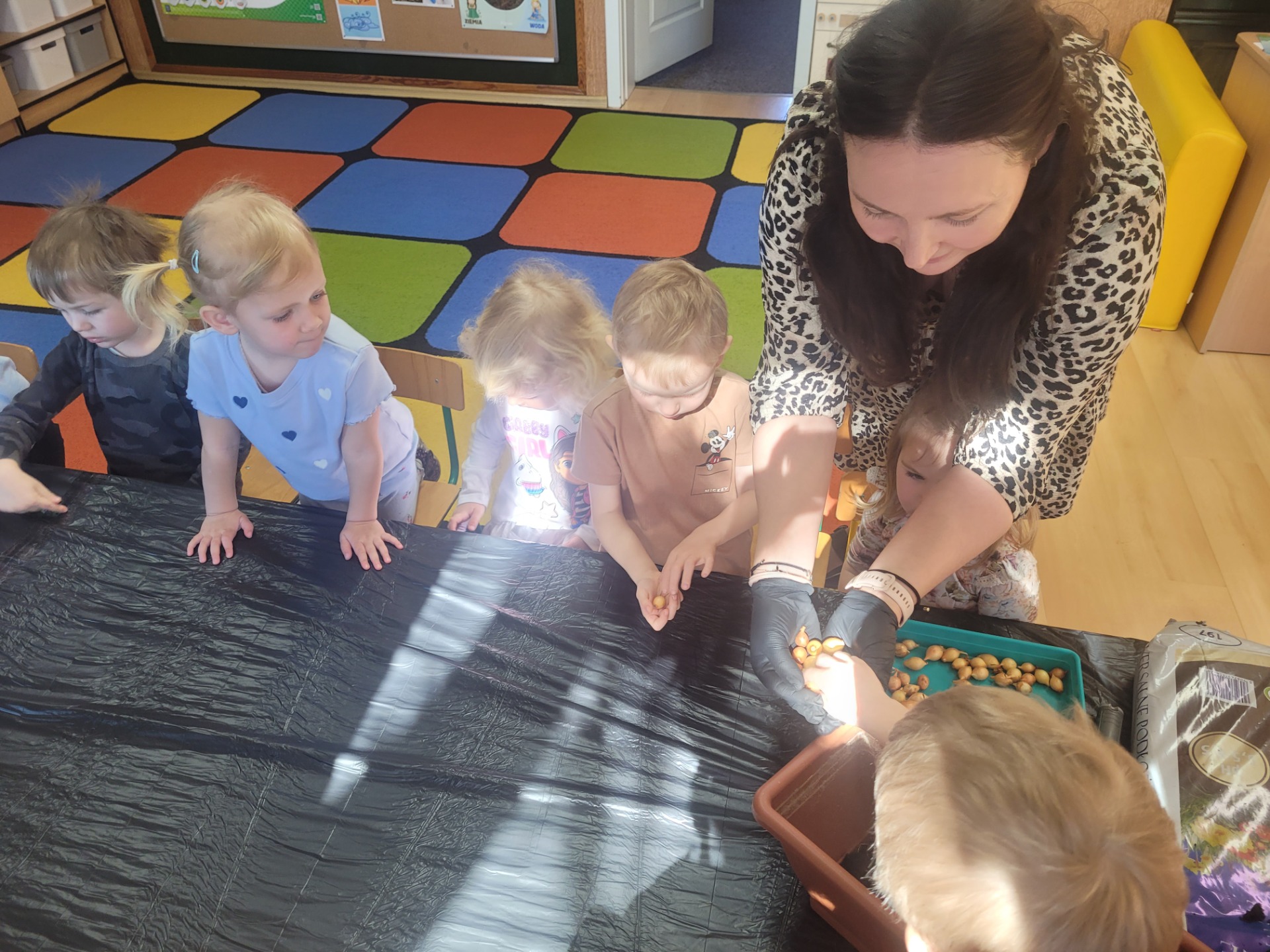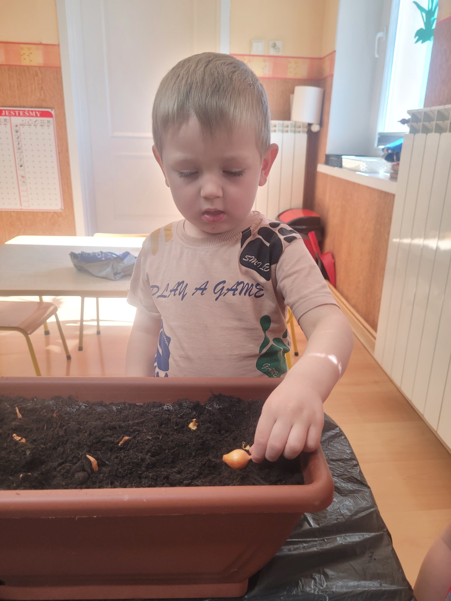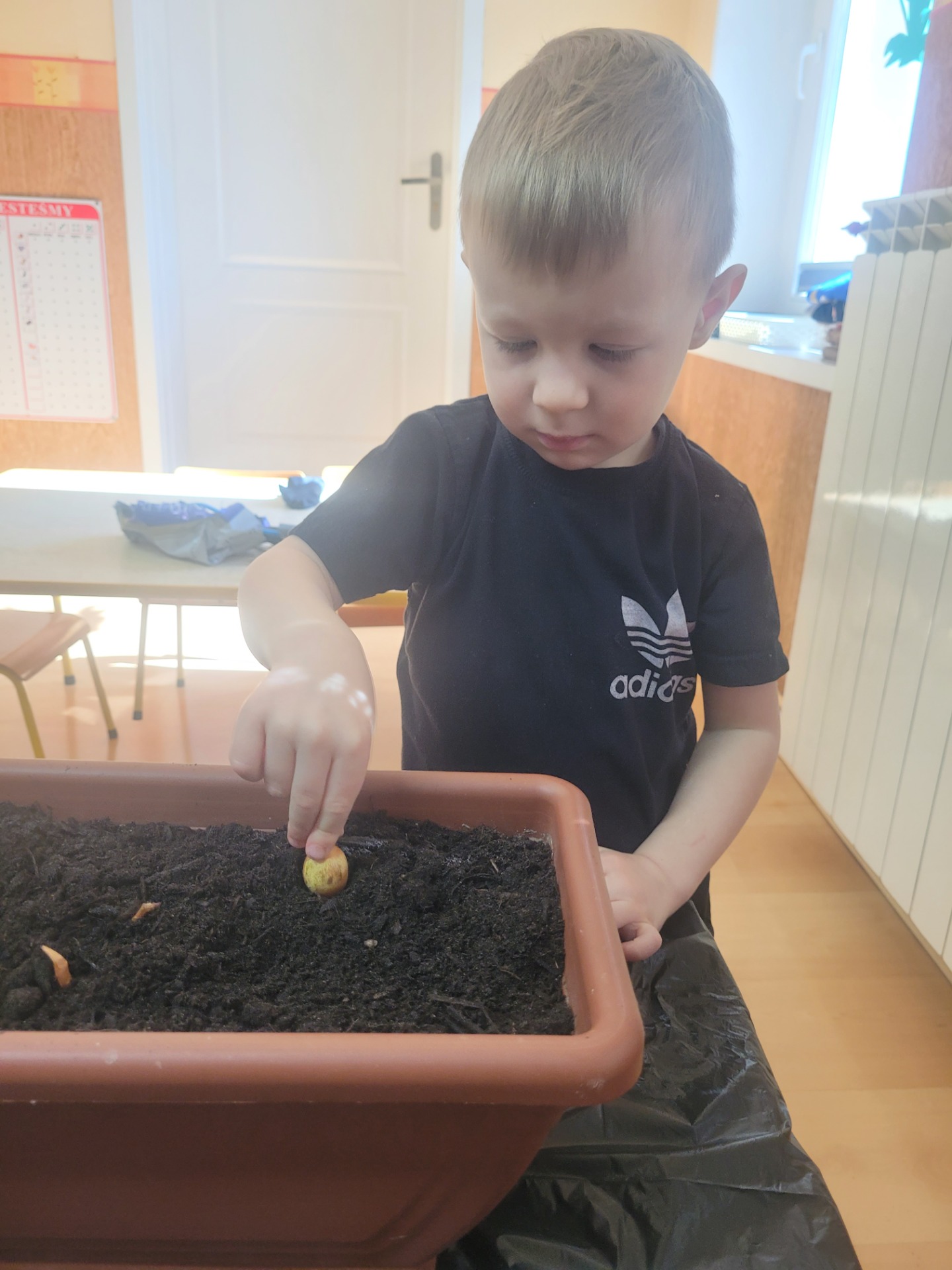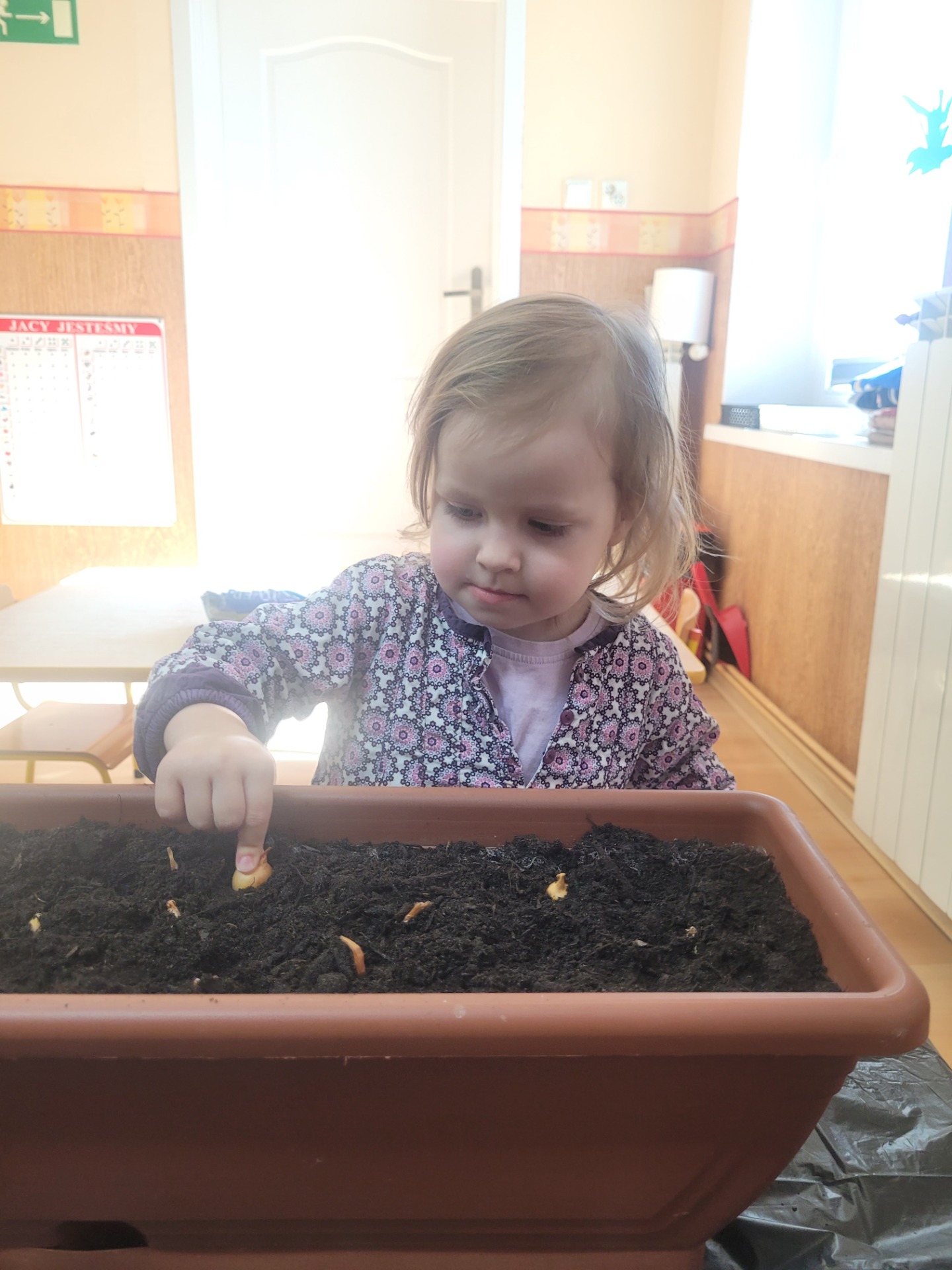 W czwartek dzieci z grupy Biedronki wspólnie przystąpiły do wyjątkowego zadania- sadzenia cebulek z których wyrośnie pyszny, zielony szczypiorek.