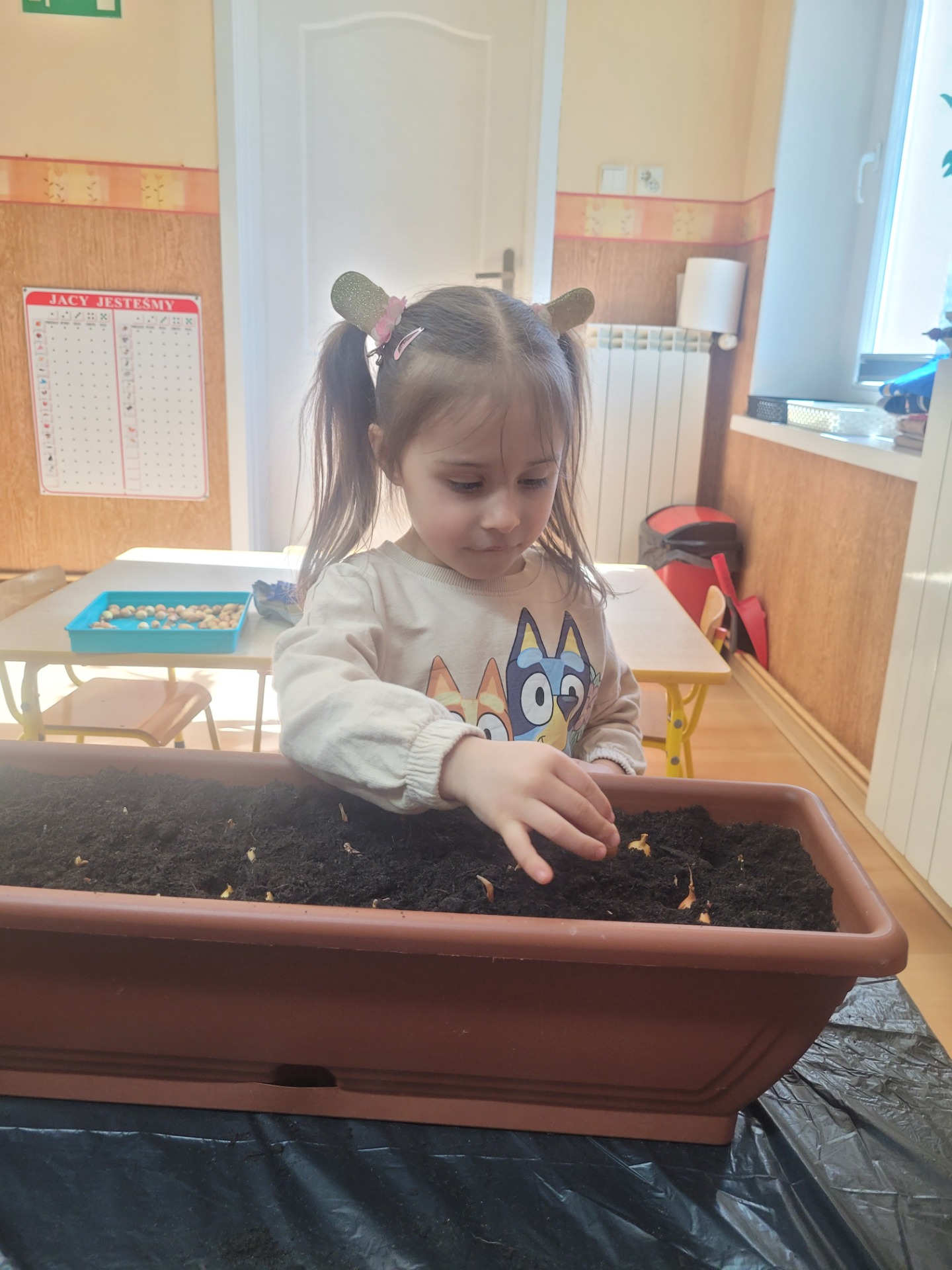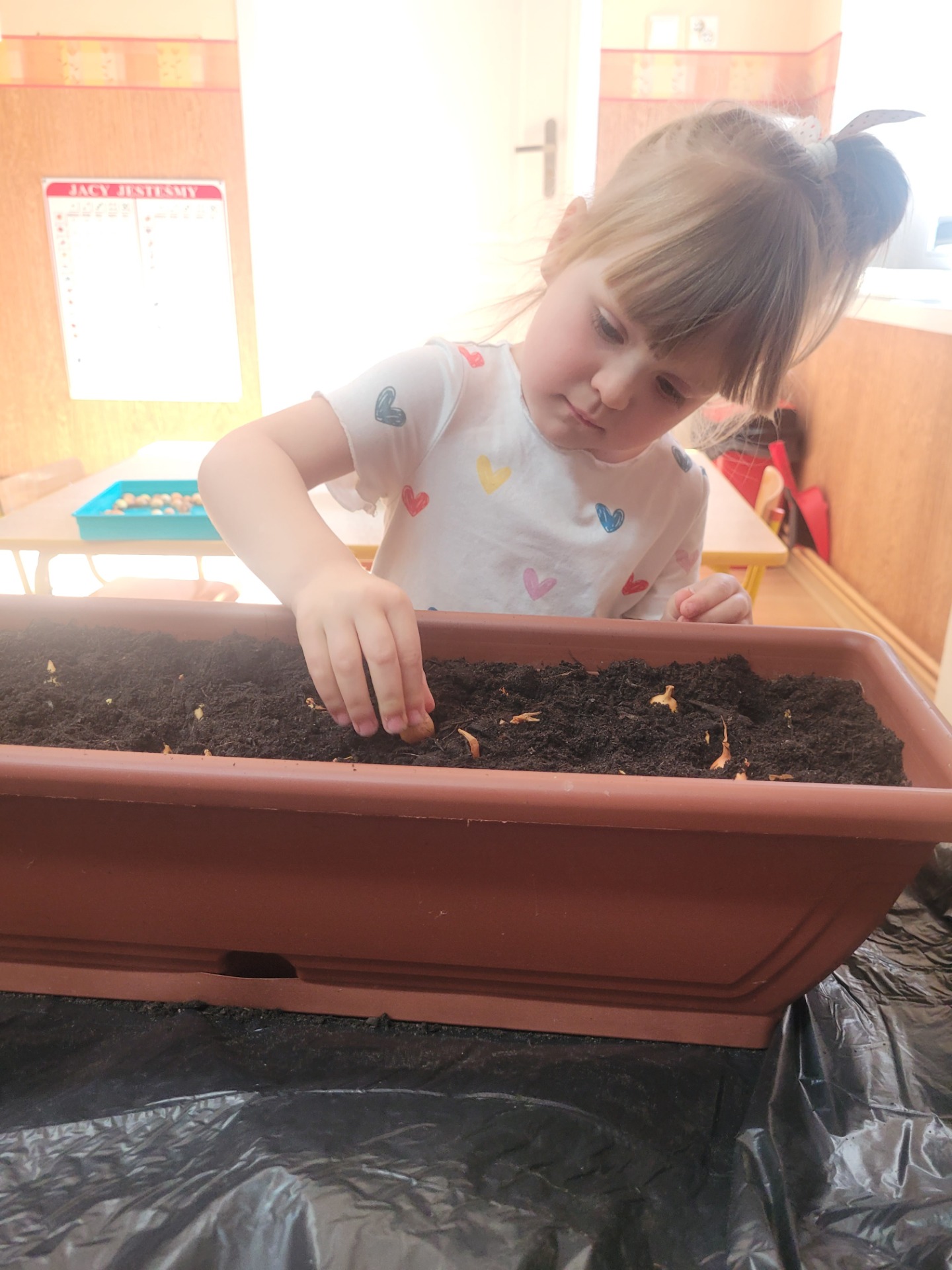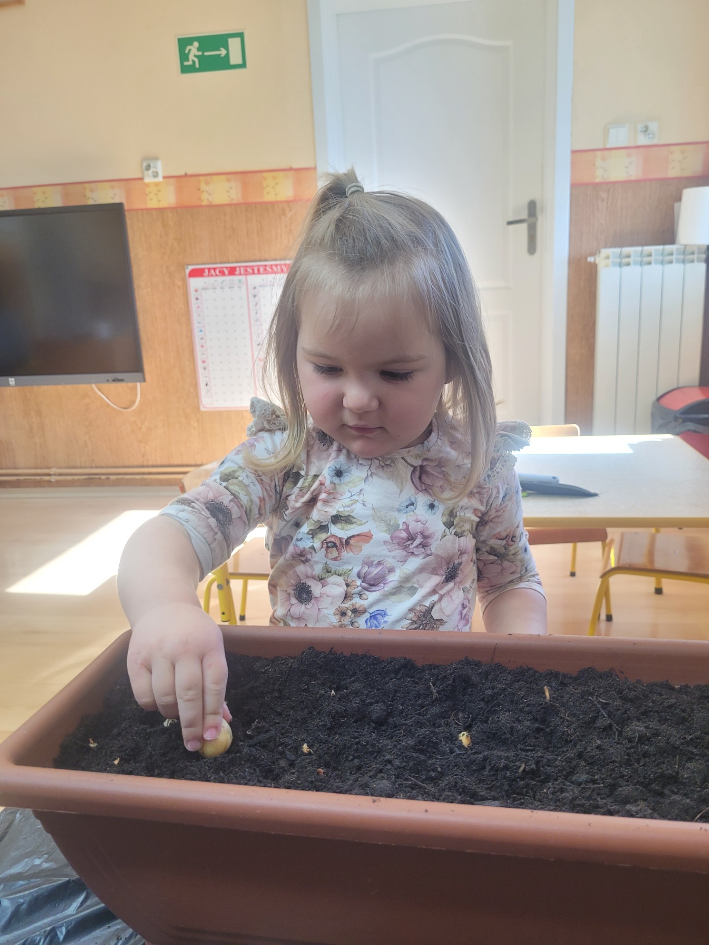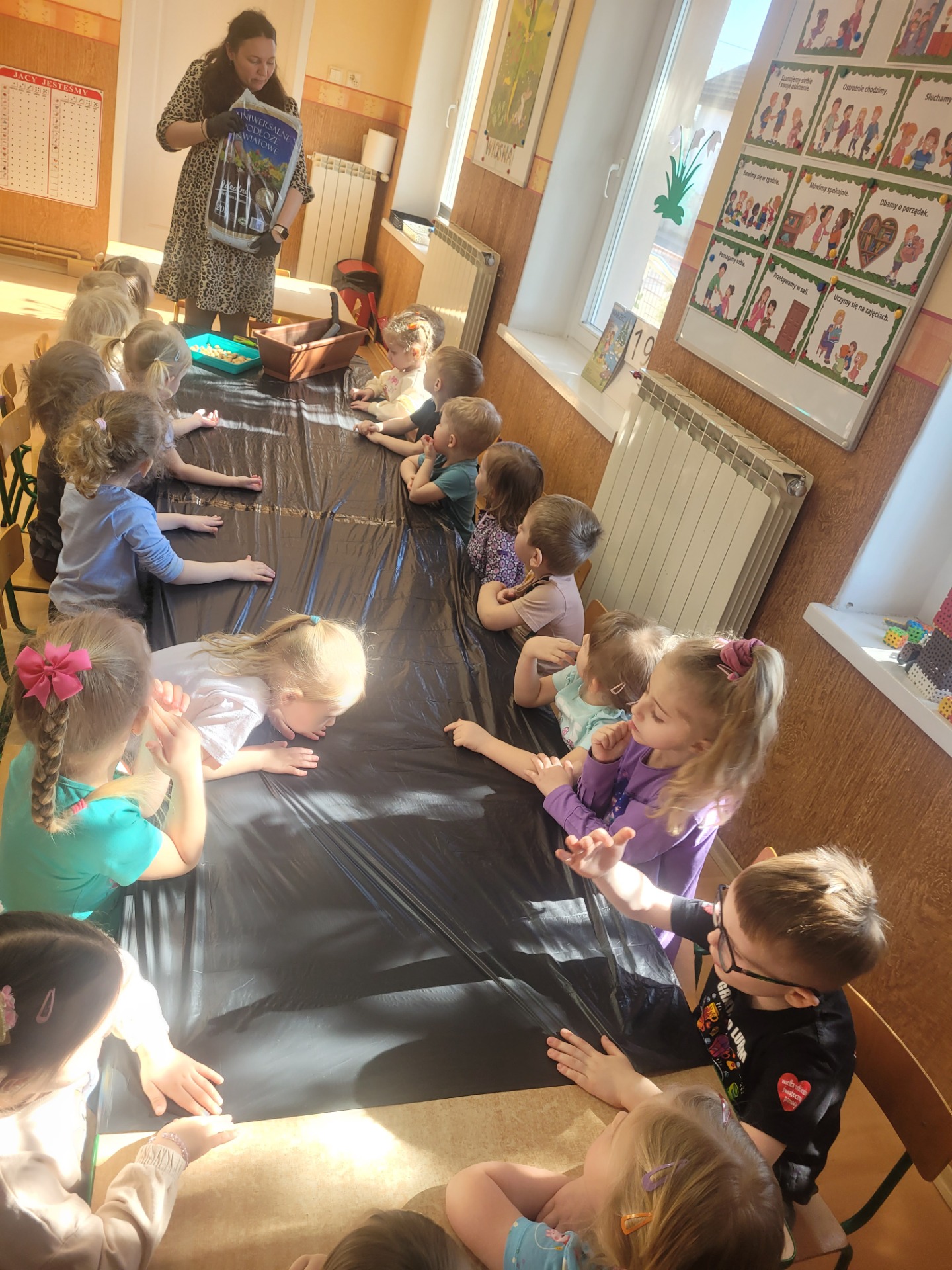 W czwartek dzieci z grupy Biedronki wspólnie przystąpiły do wyjątkowego zadania- sadzenia cebulek z których wyrośnie pyszny, zielony szczypiorek.