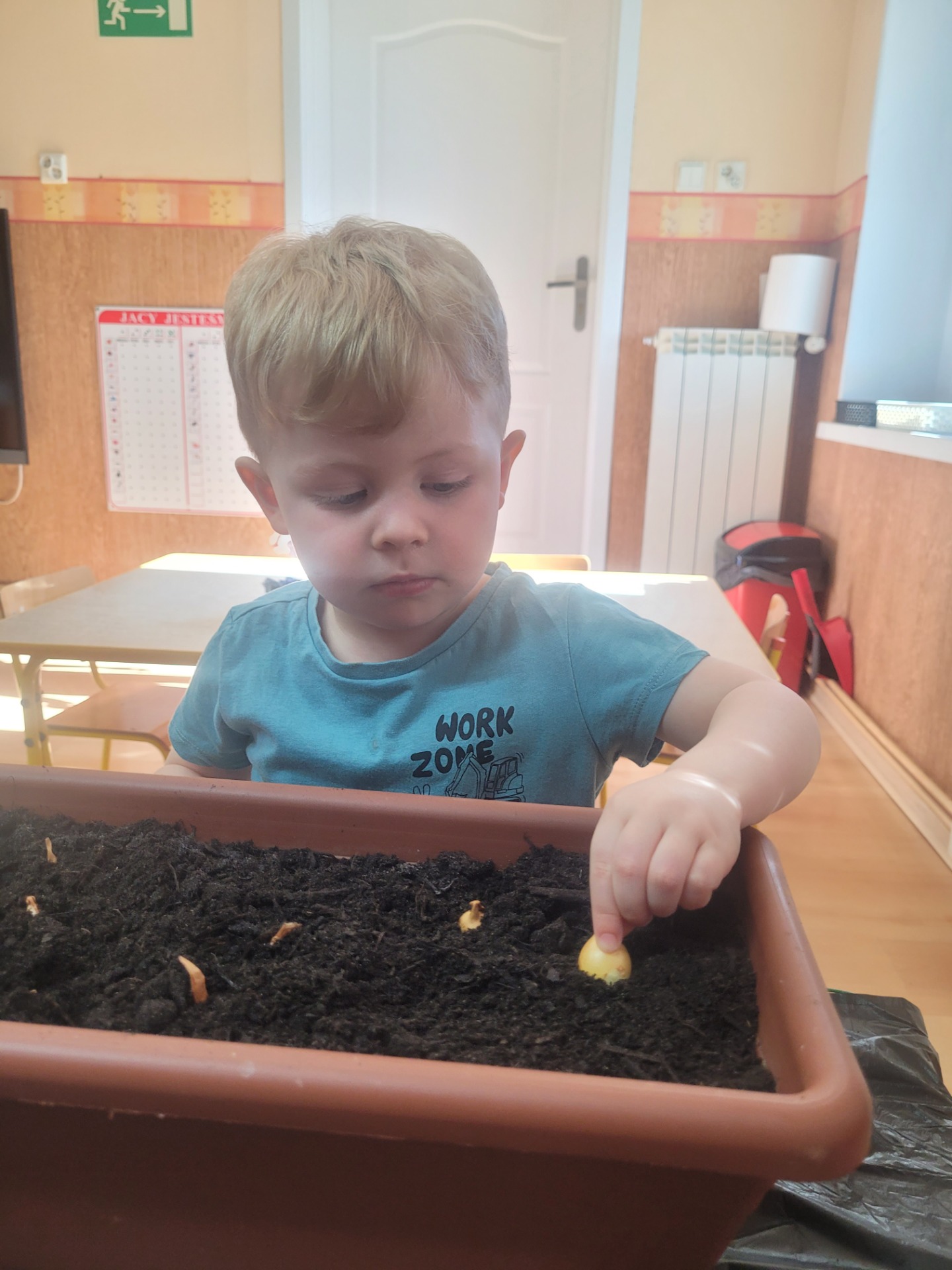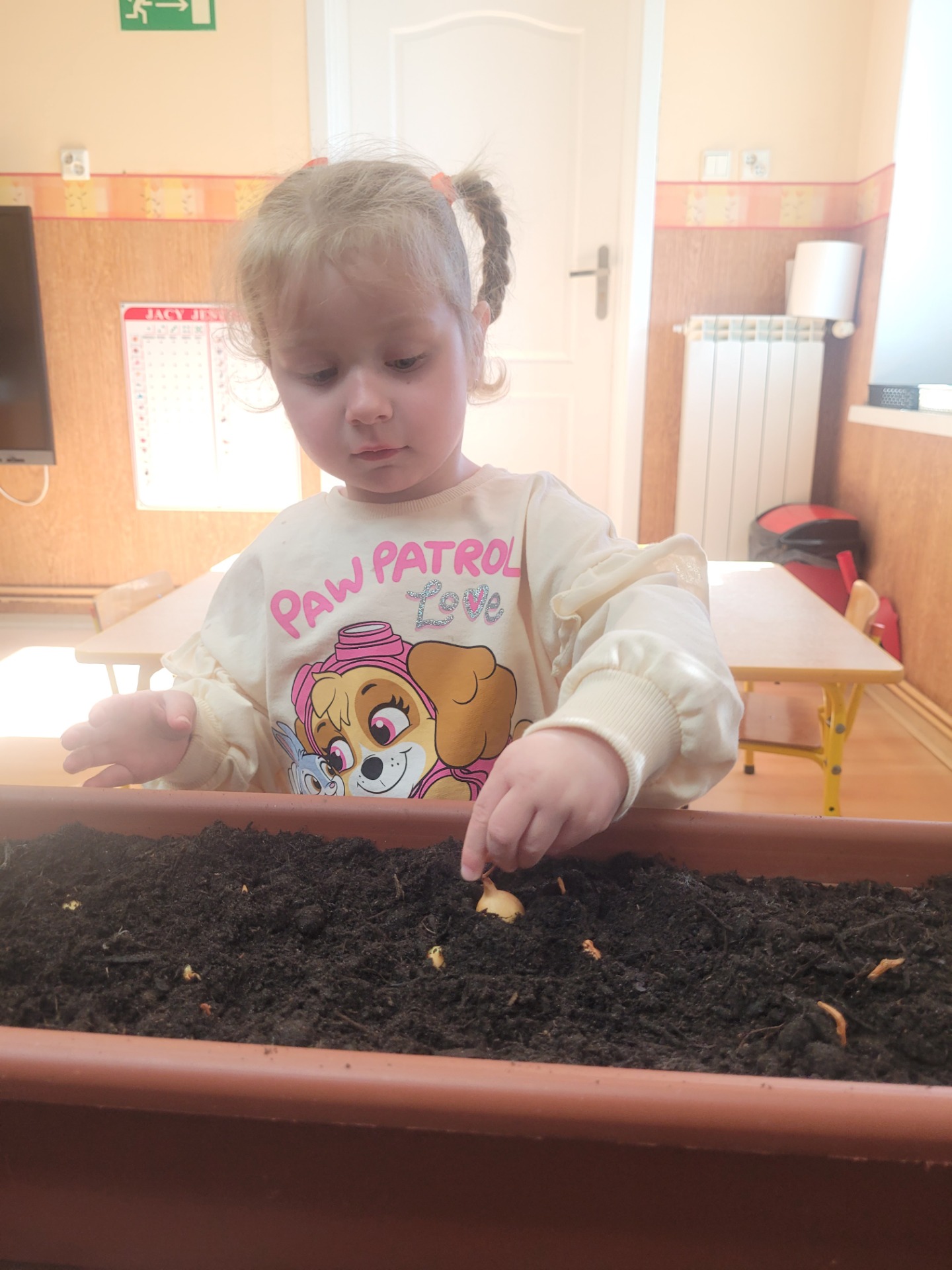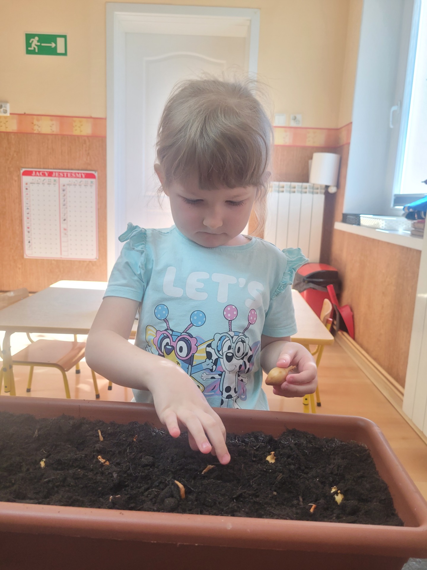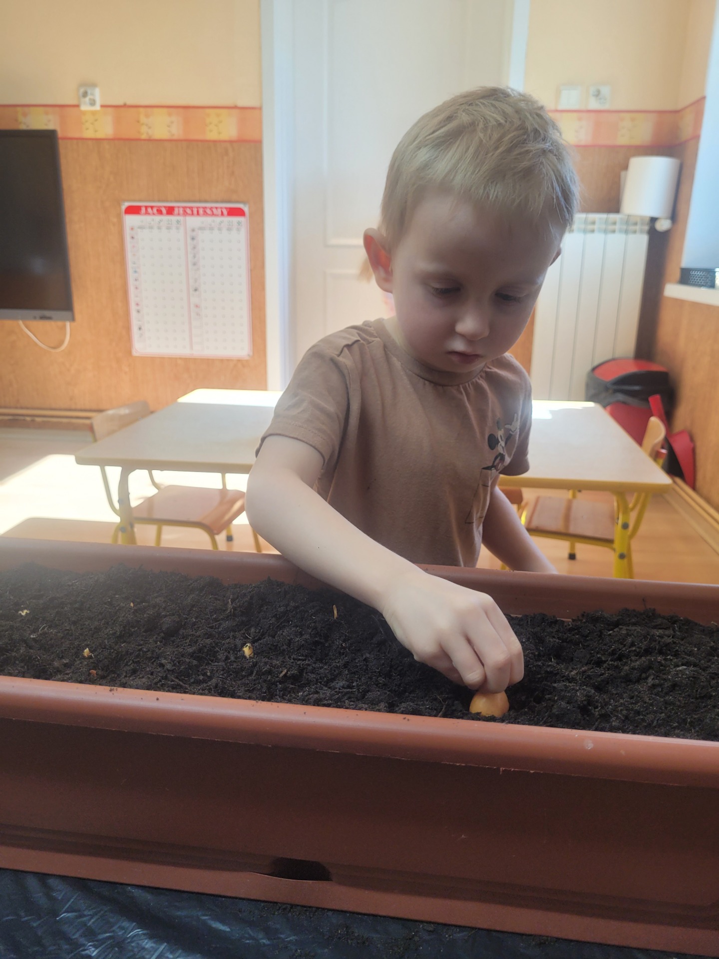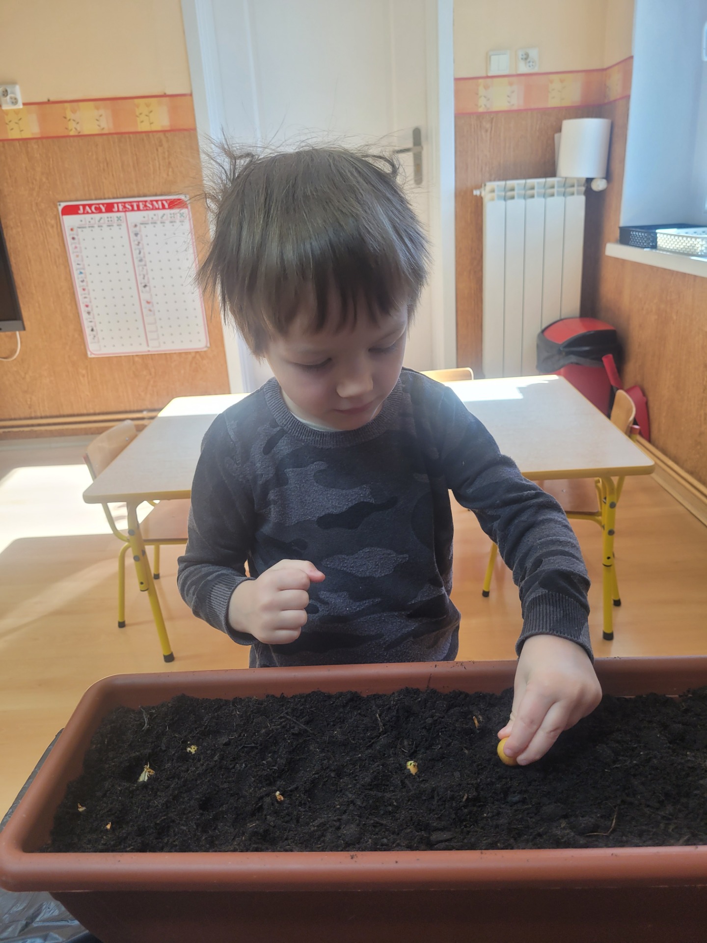W czwartek dzieci z grupy Biedronki wspólnie przystąpiły do wyjątkowego zadania- sadzenia cebulek z których wyrośnie pyszny, zielony szczypiorek.