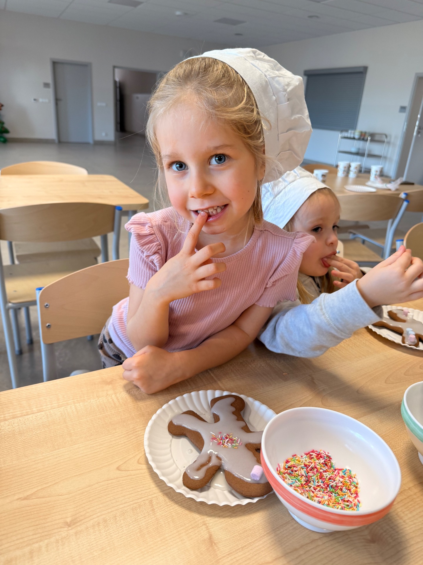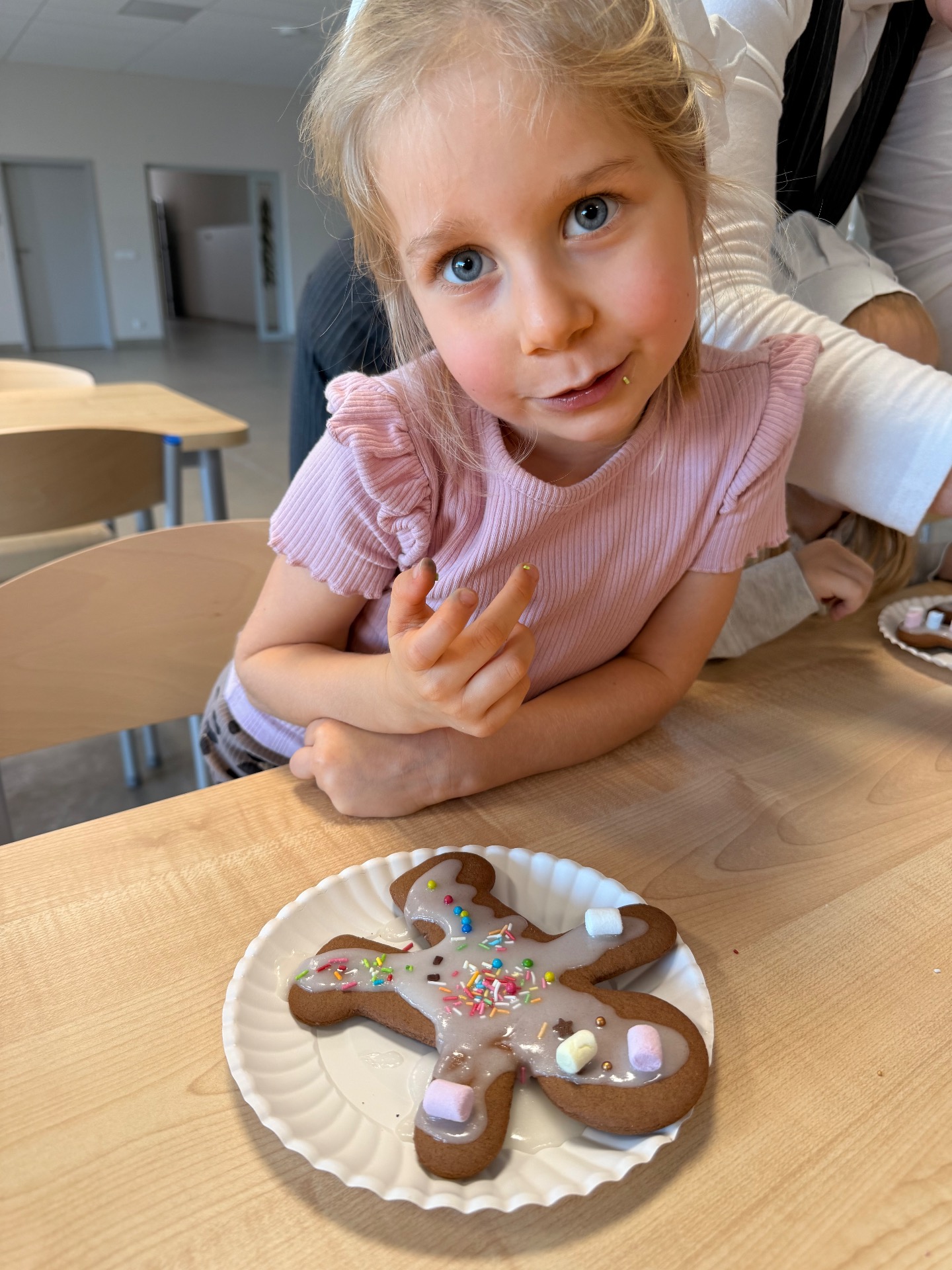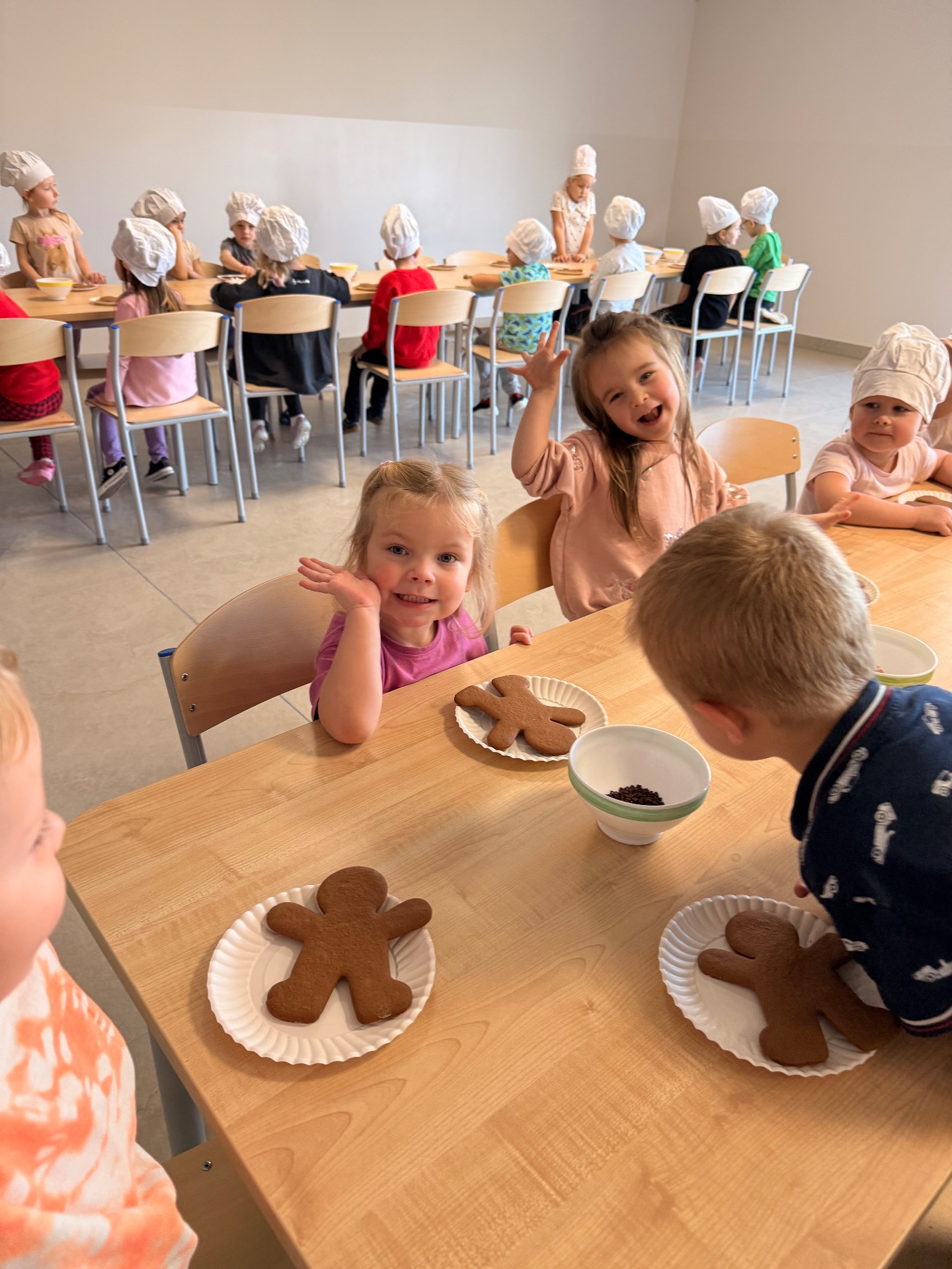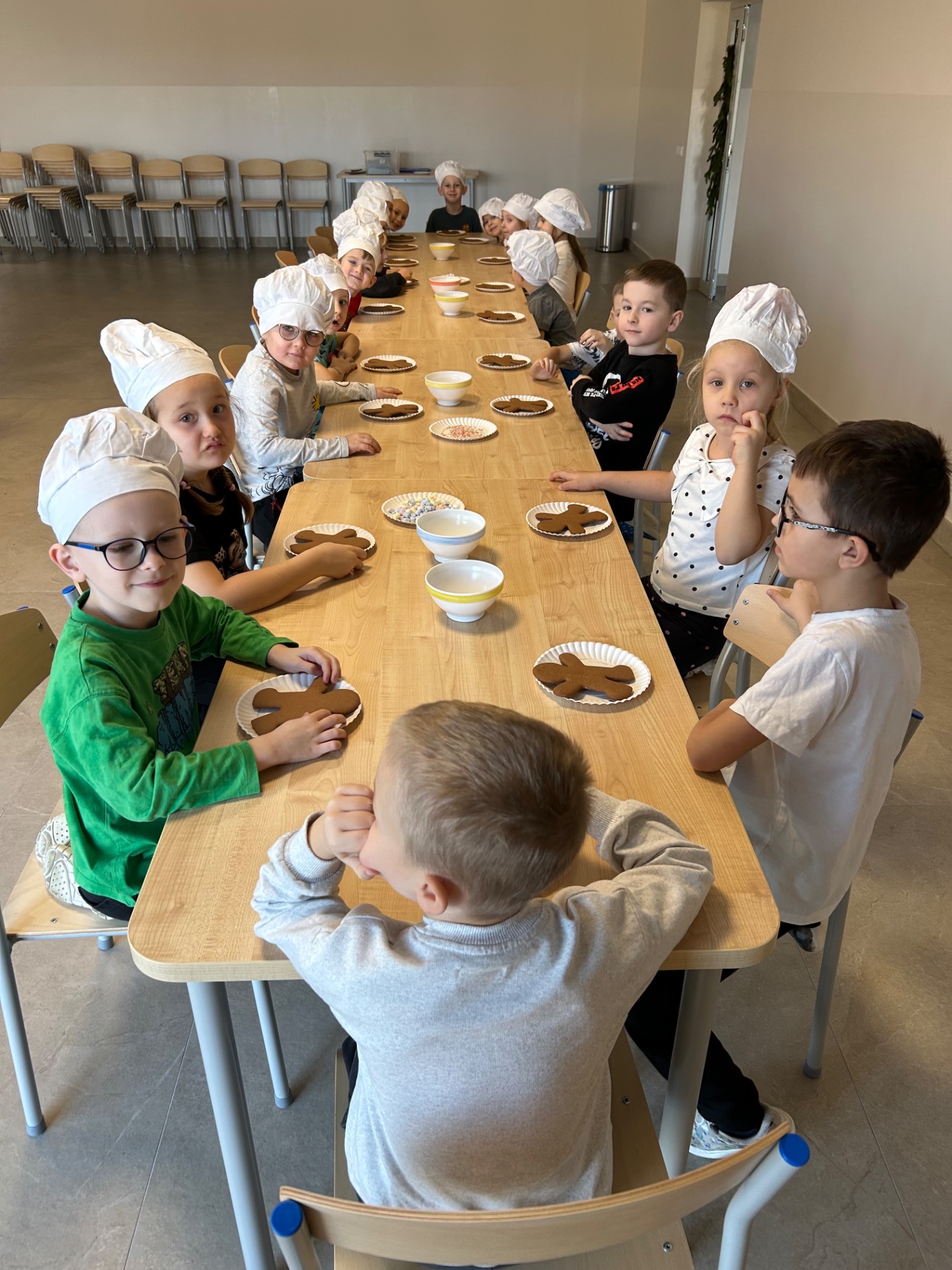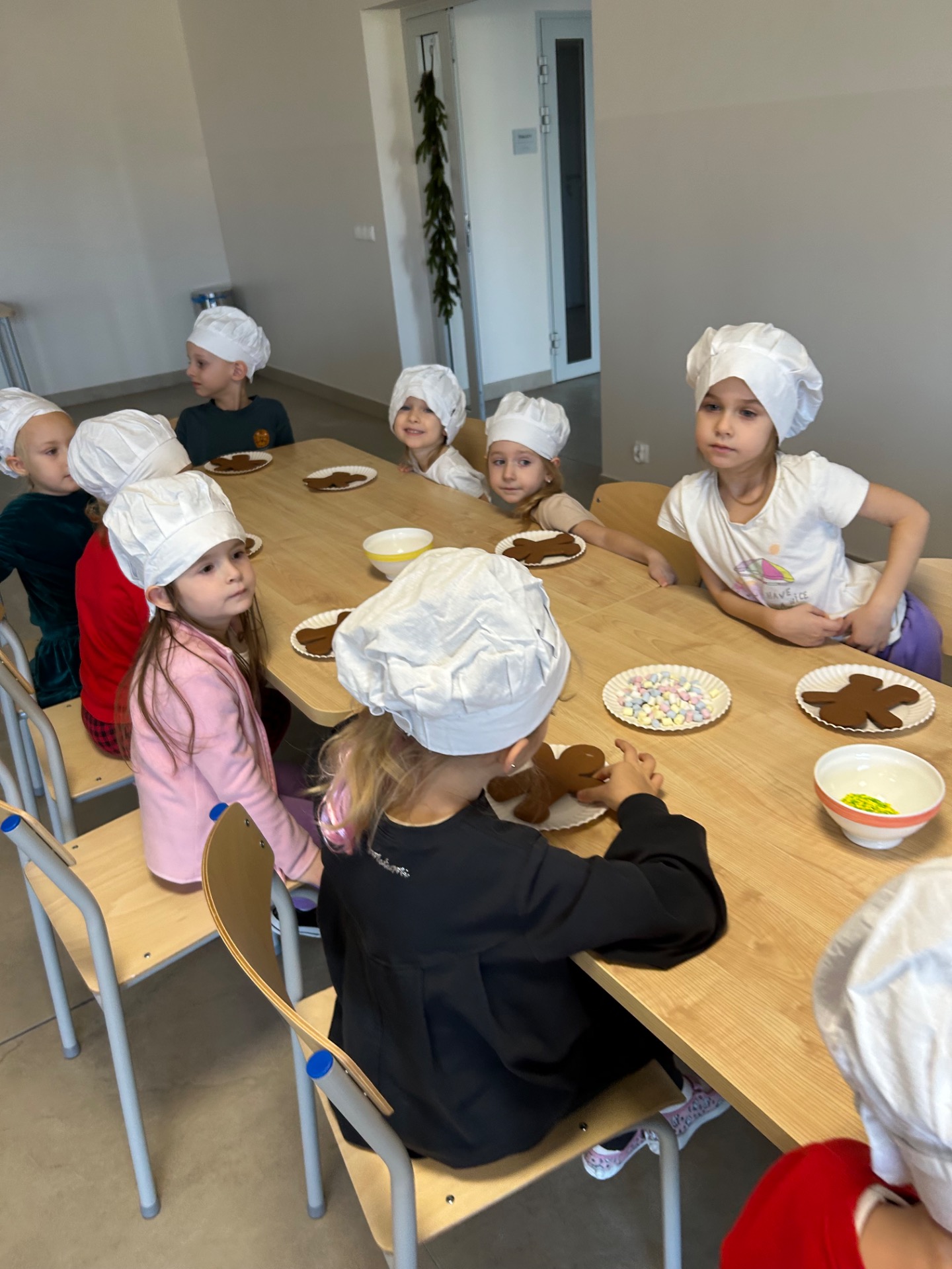 W minionych dniach w naszym przedszkolu zrobiło się wyjątkowo słodko i kolorowo. Przedszkolaki z obu grup wspólnie wzięły udział w dekorowaniu pierników. Tym razem nie były to jednak małe ciasteczka, lecz jeden duży piernikowy ludzik, który szybko stał się bohaterem naszego spotkania.