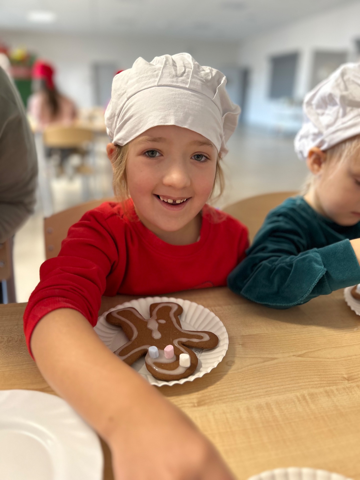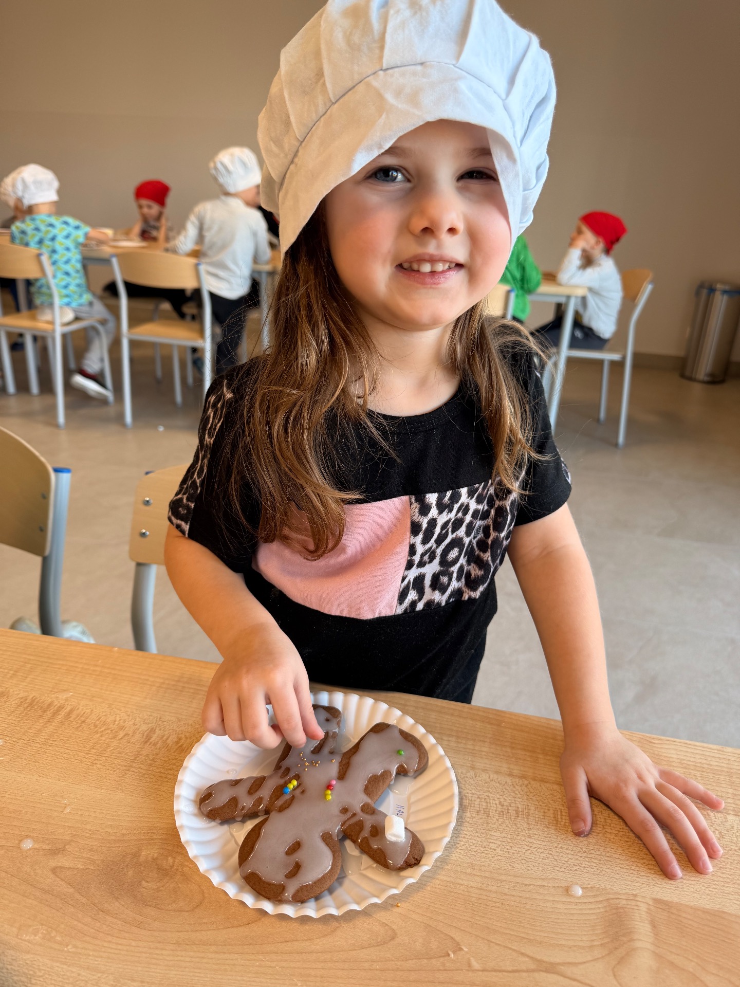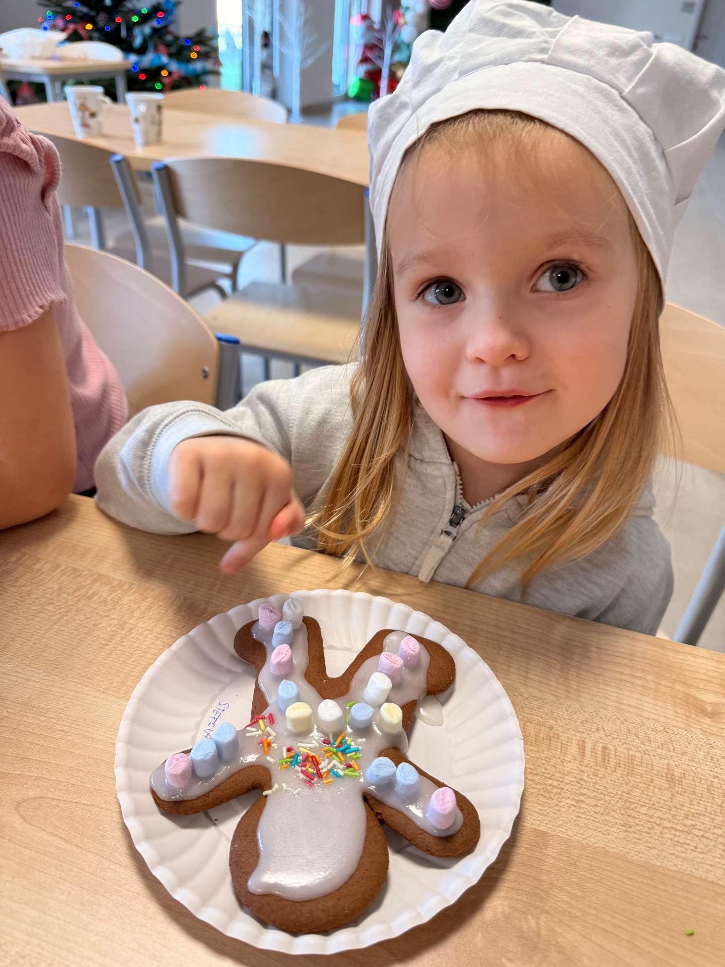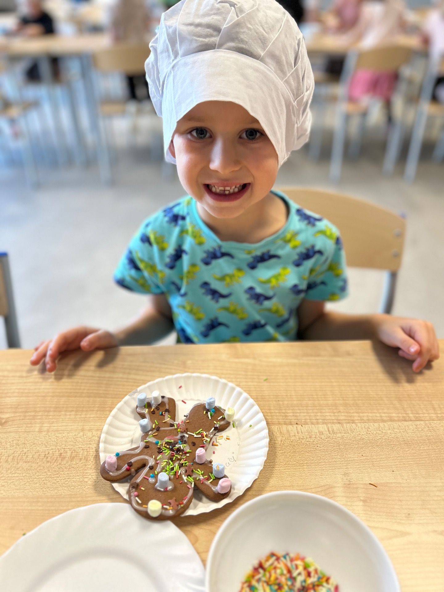 Dzieci z ogromnym zaangażowaniem ozdabiały ludzika lukrem i kolorowymi posypkami, ćwicząc przy tym sprawność manualną, kreatywność oraz współpracę. Radości i śmiechu było co niemiara, a wspólna praca przyniosła piękny – i bardzo apetyczny – efekt.