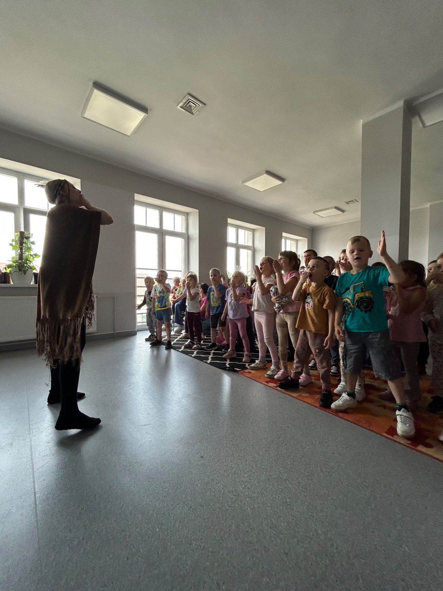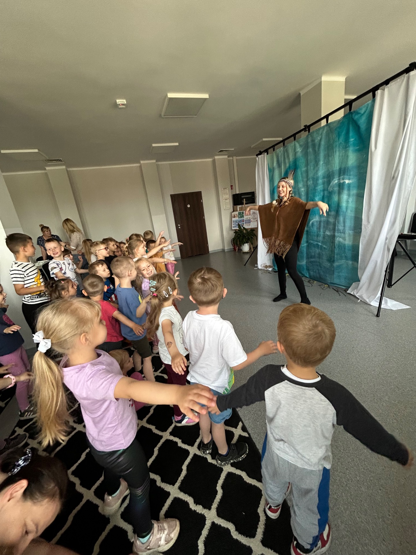 Przedstawienie angażowało najmłodszych widzów do wspólnej zabawy. Dzieci mogły aktywnie uczestniczyć w spektaklu, poruszać się, naśladować ptasie ruchy i stać się częścią opowieści. Taka forma interakcji sprawiła, że maluchy były w pełni zaangażowane i z ogromnym entuzjazmem śledziły losy bohaterów.