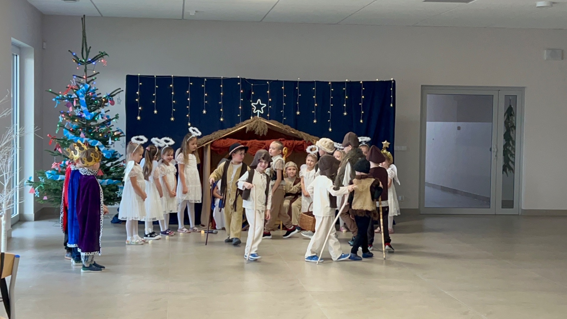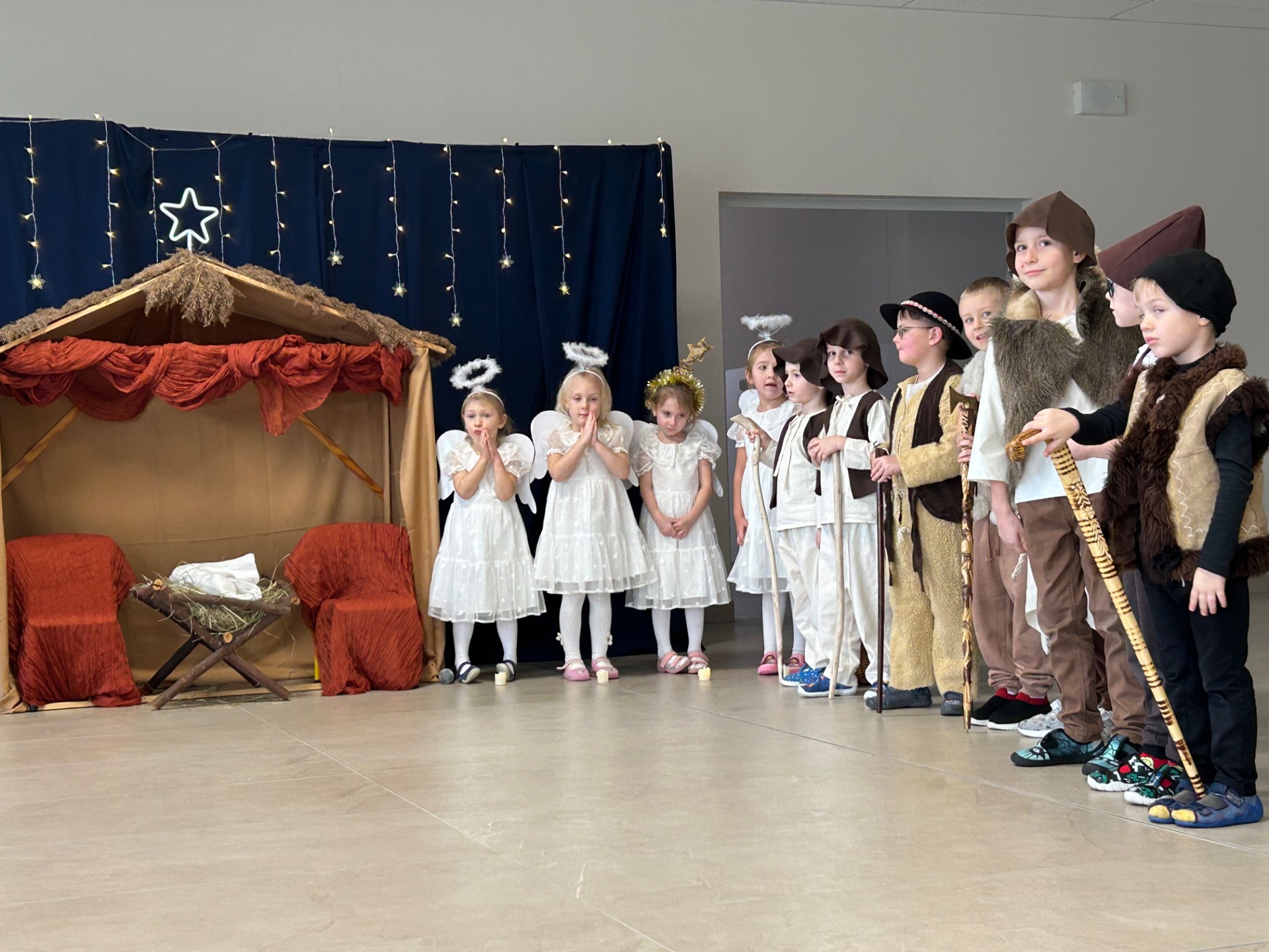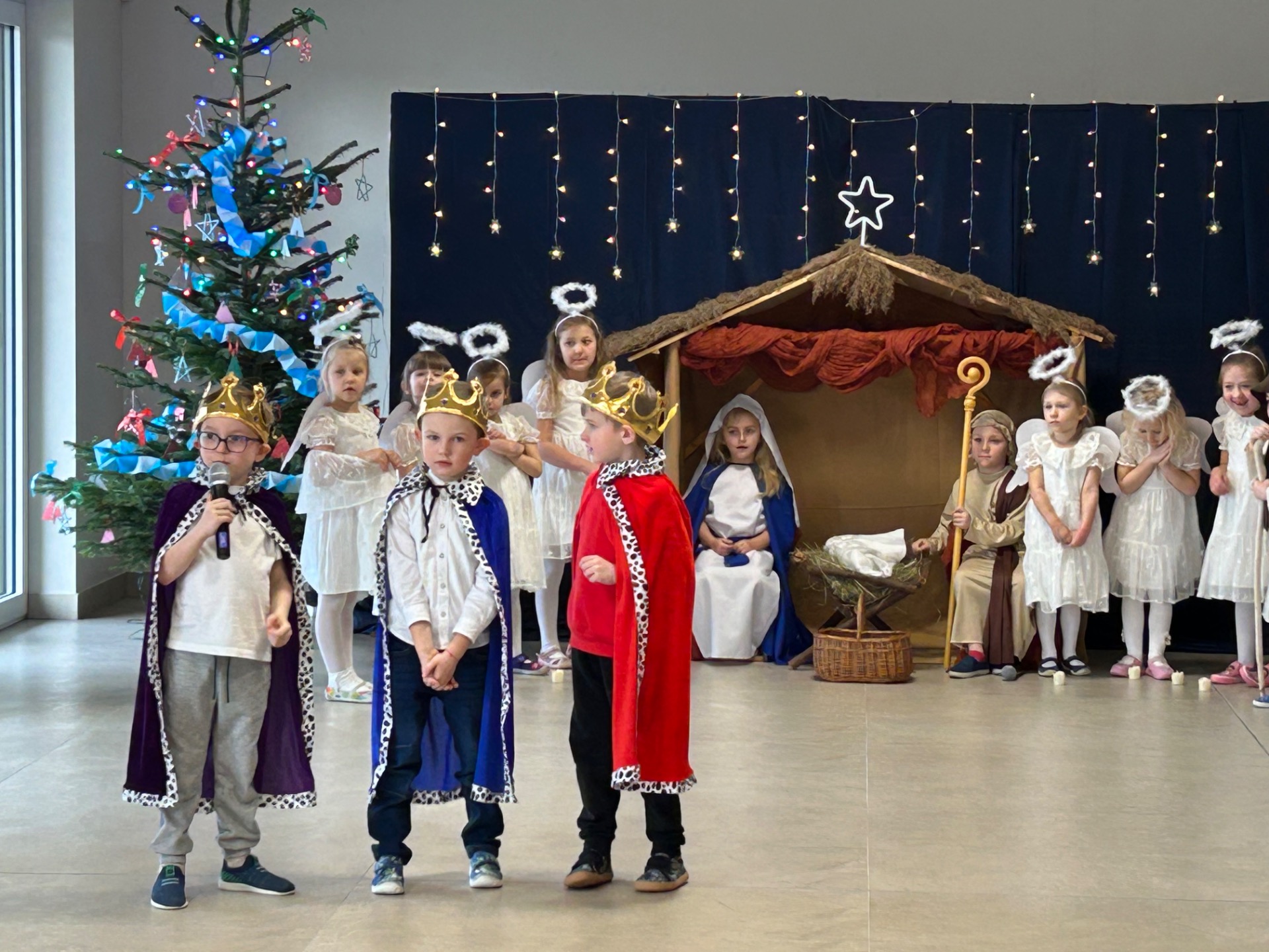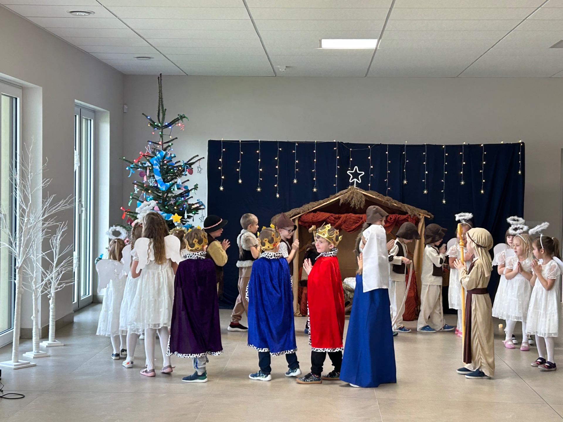 16 grudnia w naszym przedszkolu odbyły się wyjątkowe jasełka bożonarodzeniowe w wykonaniu grupy „Motylki”, przygotowane specjalnie dla Rodziców. Dzieci z wielkim zaangażowaniem zaprezentowały swoje umiejętności, wprowadzając wszystkich w świąteczny nastrój pełen radości, wzruszeń i uśmiechu.
