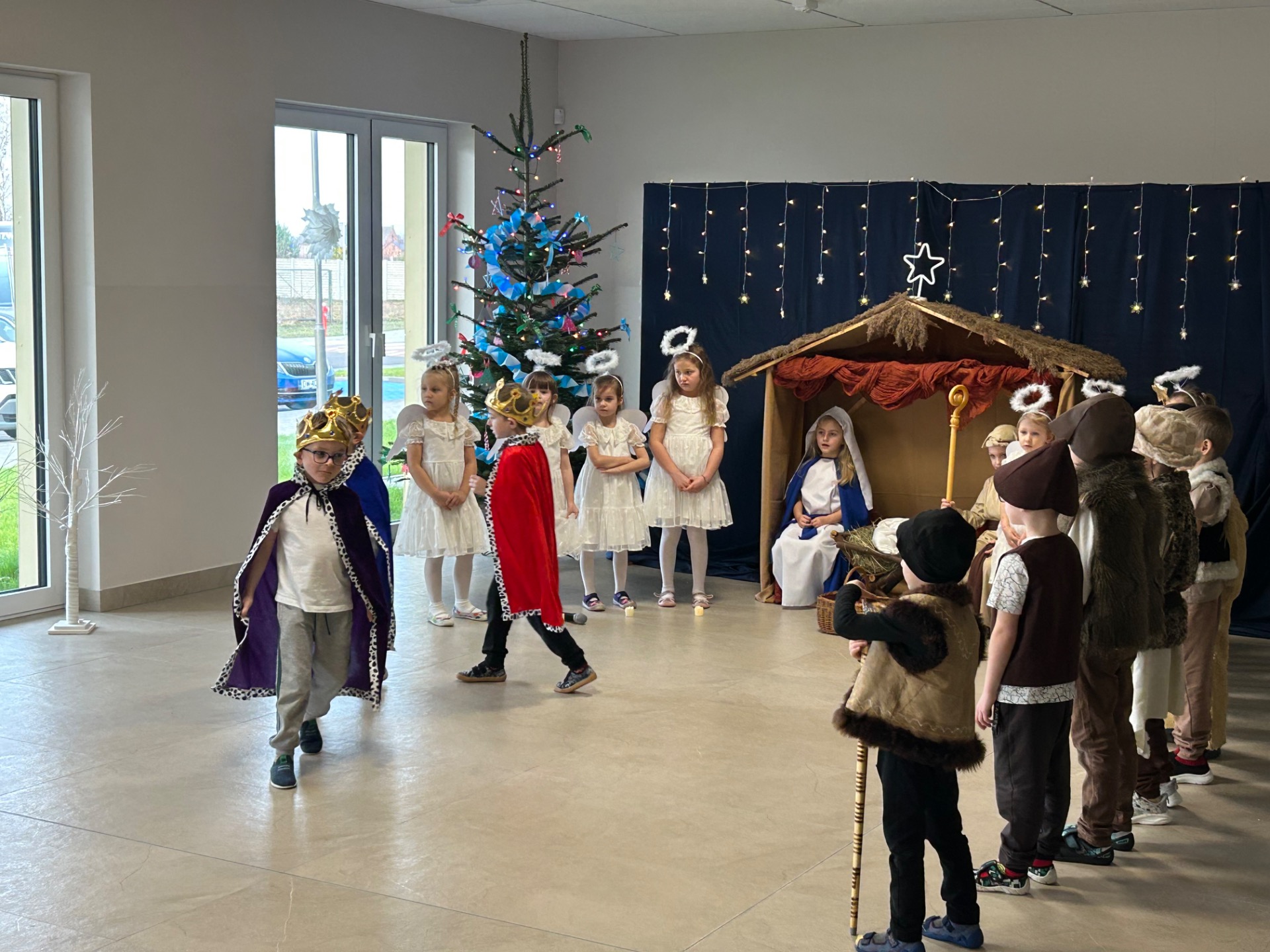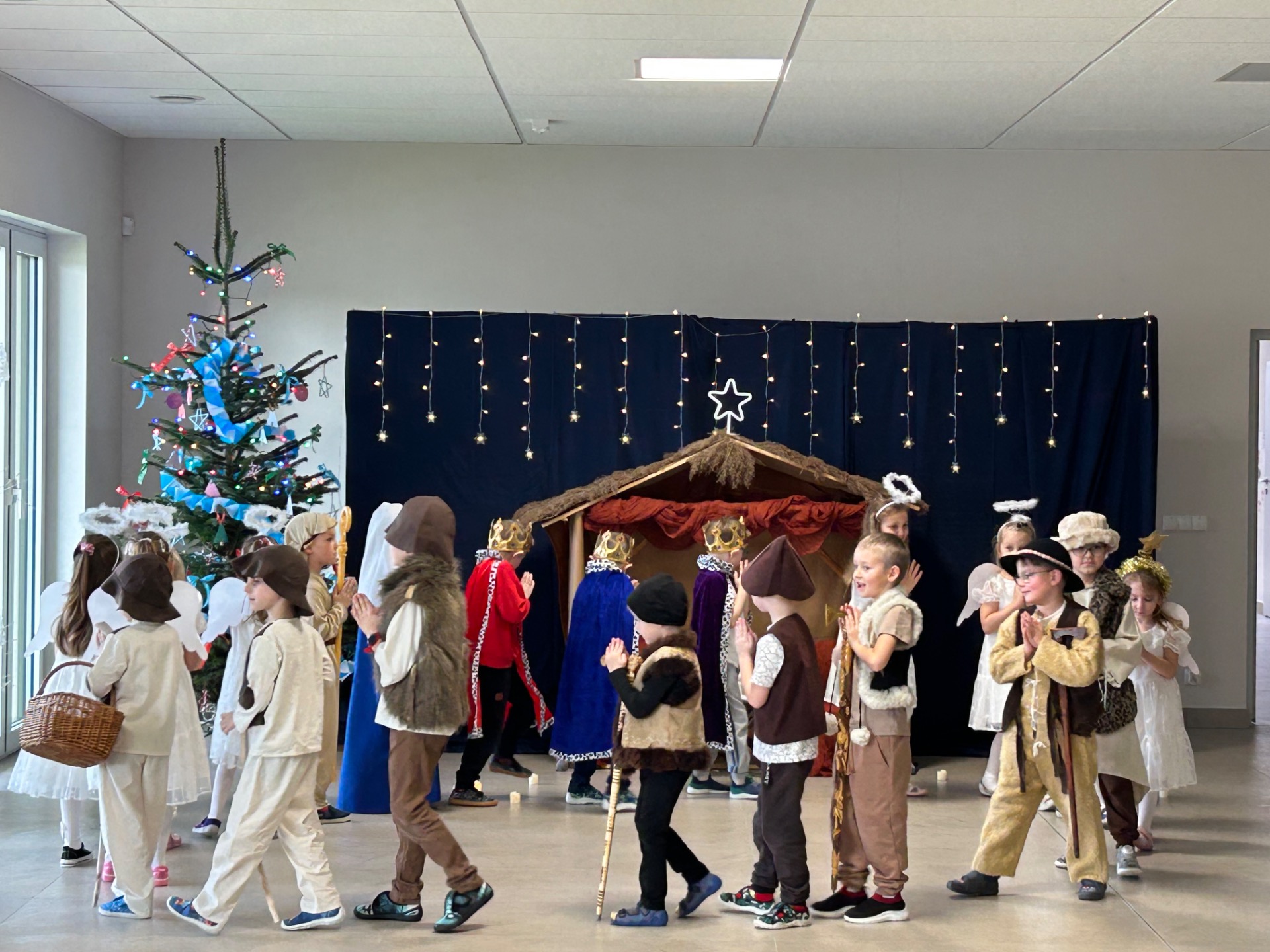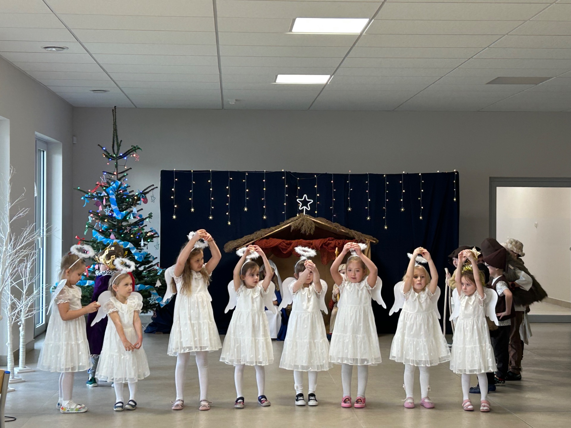 16 grudnia w naszym przedszkolu odbyły się wyjątkowe jasełka bożonarodzeniowe w wykonaniu grupy „Motylki”, przygotowane specjalnie dla Rodziców. Dzieci z wielkim zaangażowaniem zaprezentowały swoje umiejętności, wprowadzając wszystkich w świąteczny nastrój pełen radości, wzruszeń i uśmiechu.
