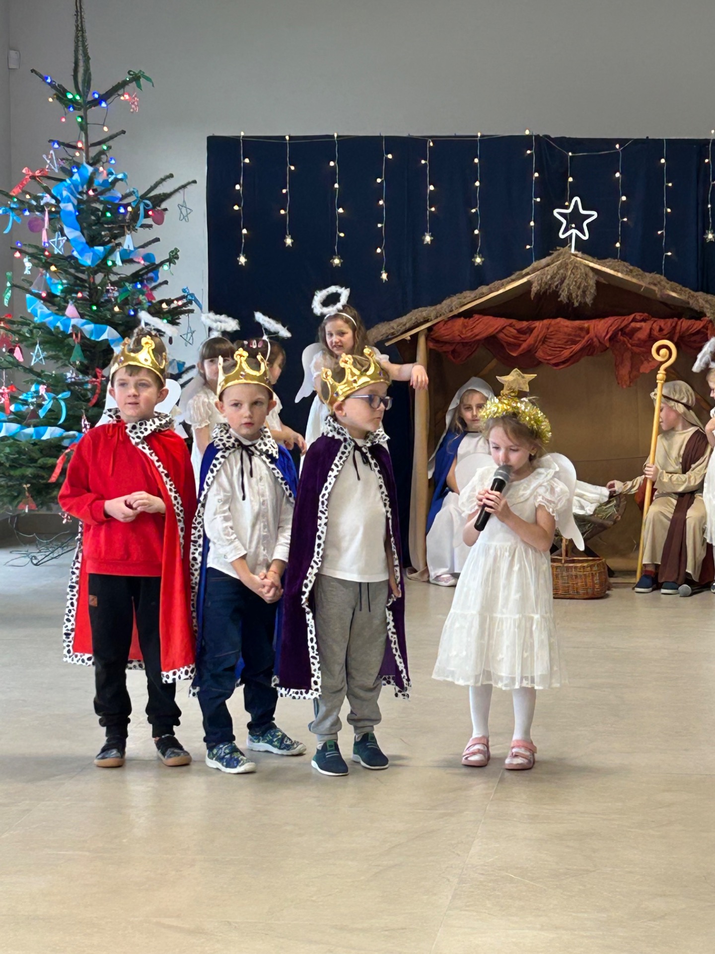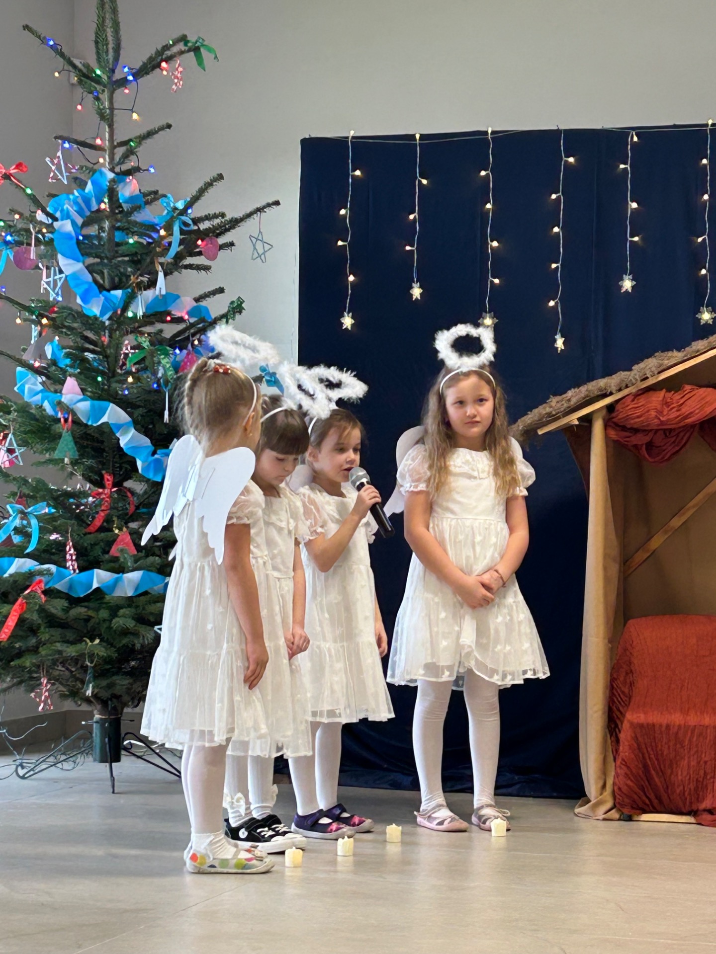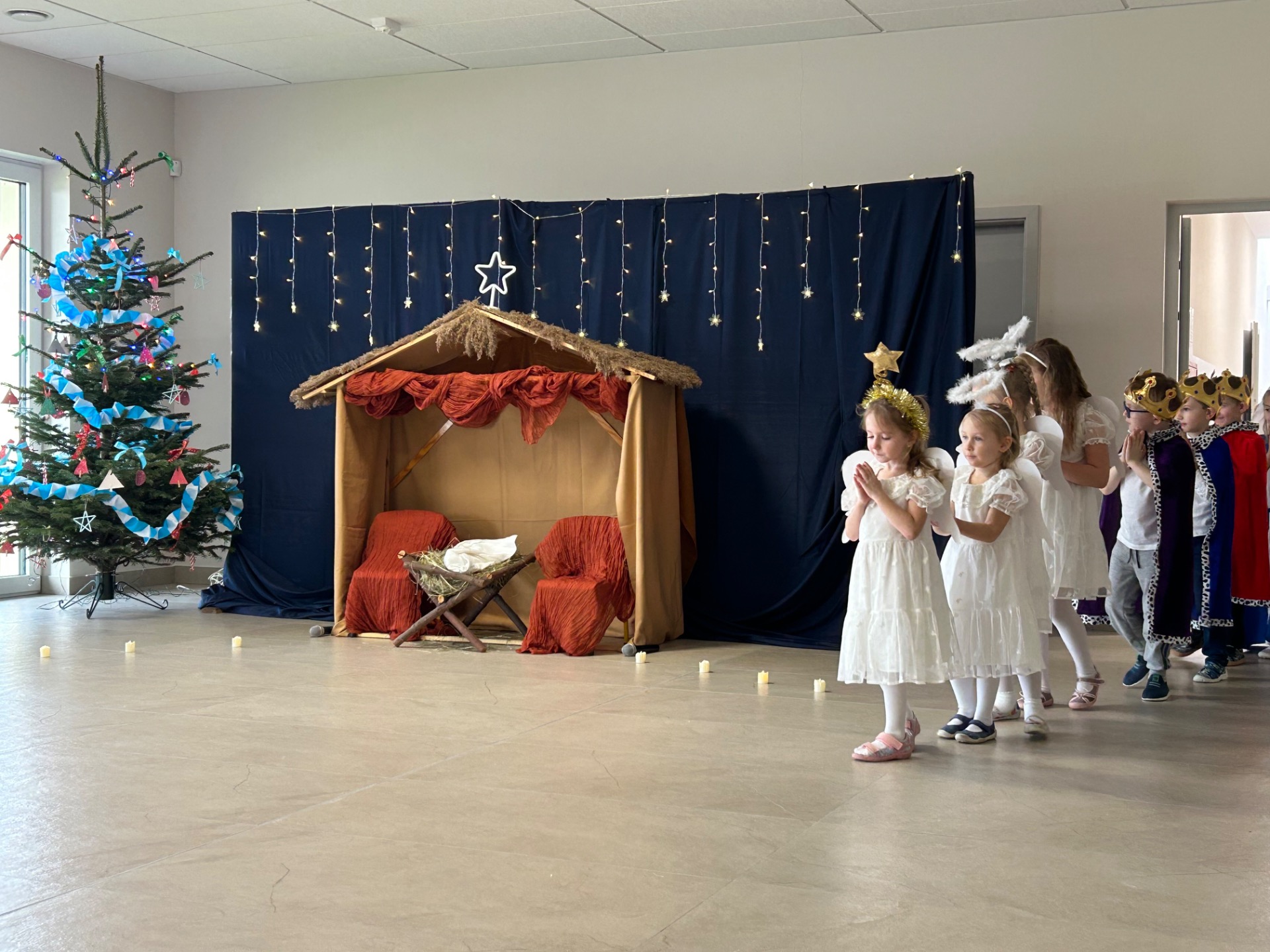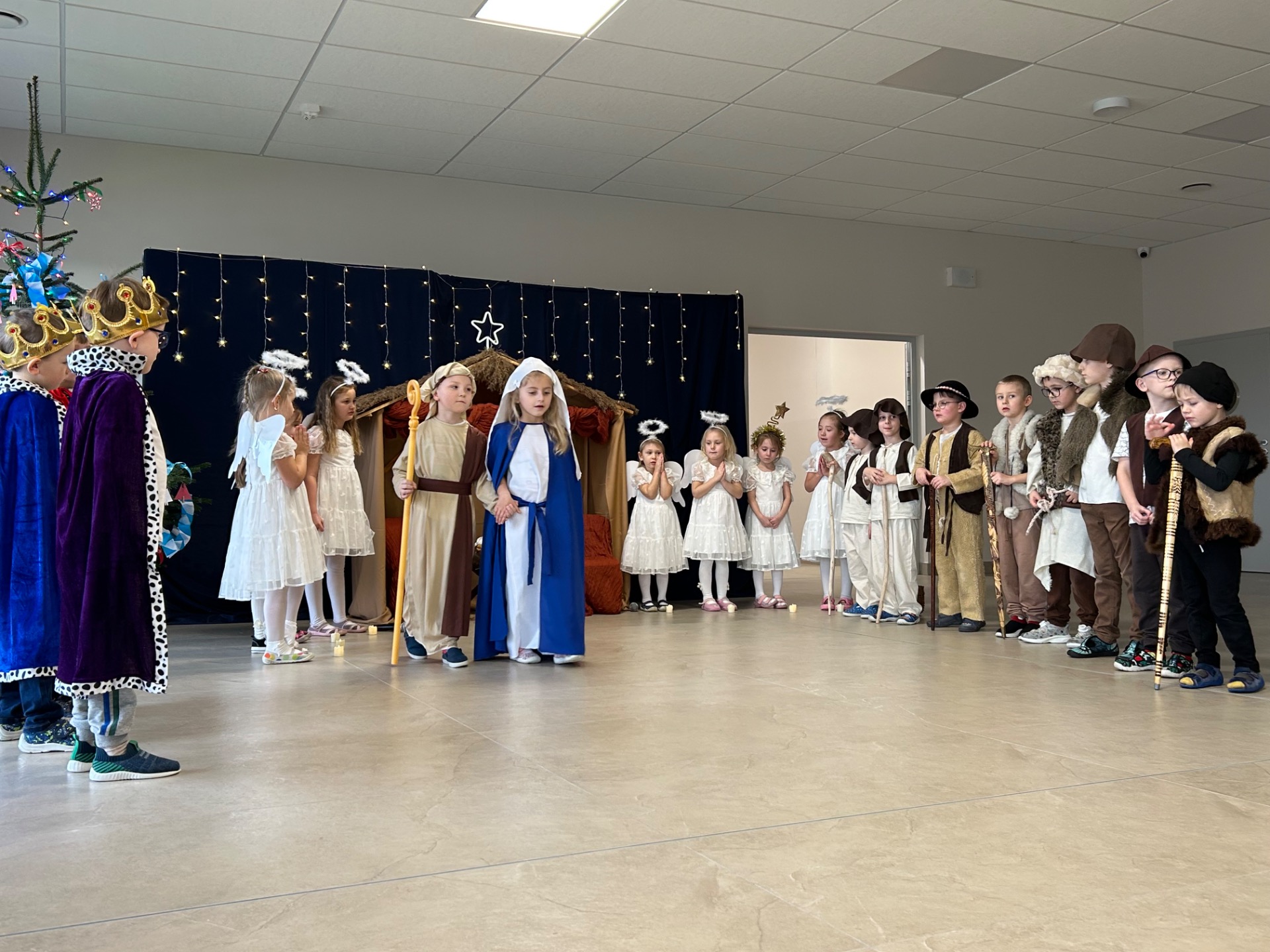 16 grudnia w naszym przedszkolu odbyły się wyjątkowe jasełka bożonarodzeniowe w wykonaniu grupy „Motylki”, przygotowane specjalnie dla Rodziców. Dzieci z wielkim zaangażowaniem zaprezentowały swoje umiejętności, wprowadzając wszystkich w świąteczny nastrój pełen radości, wzruszeń i uśmiechu.