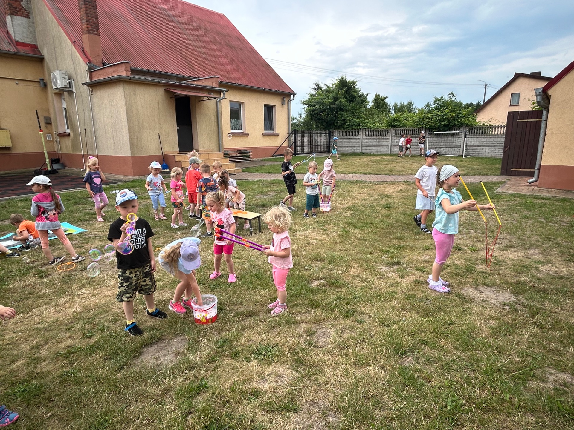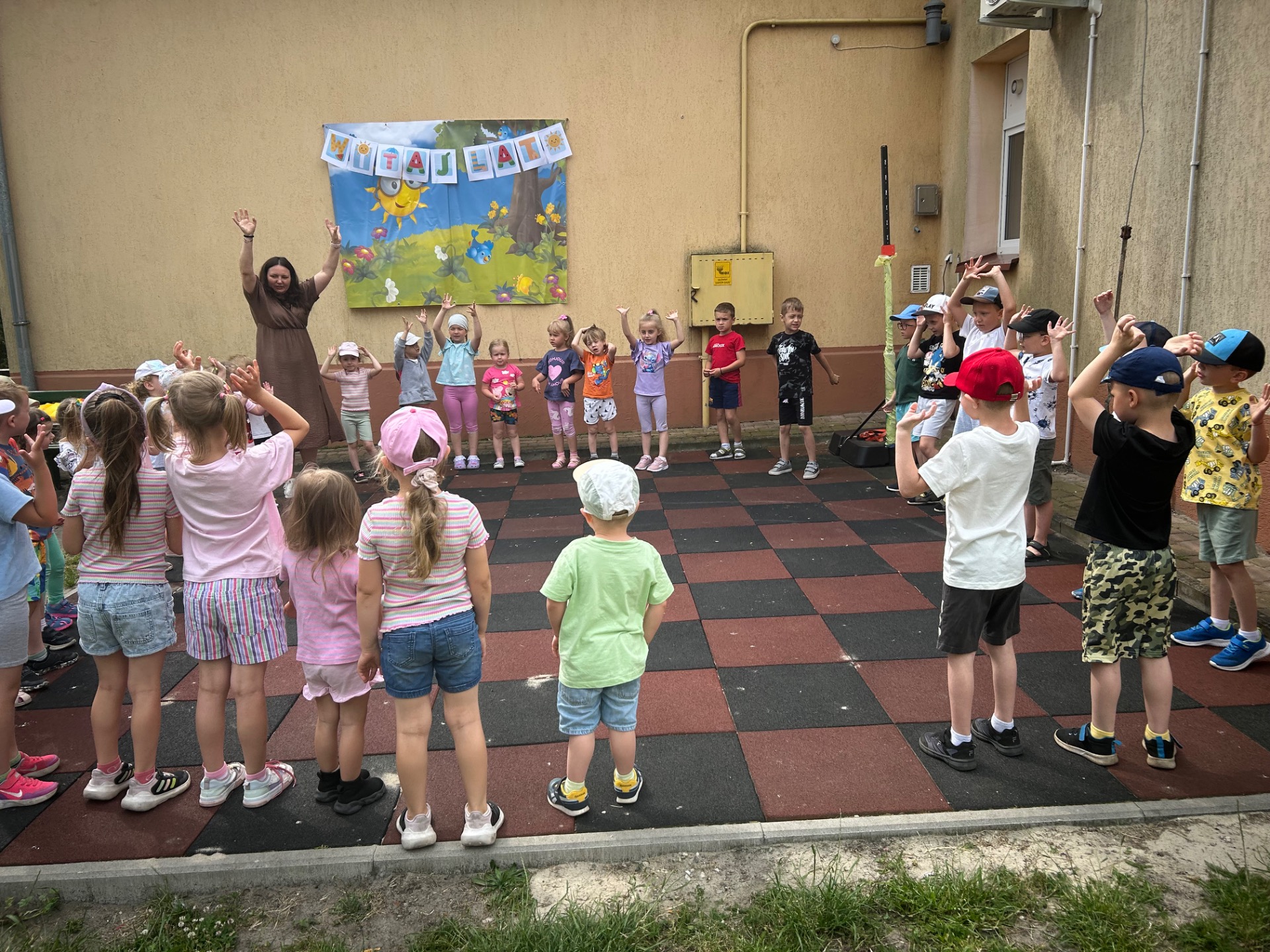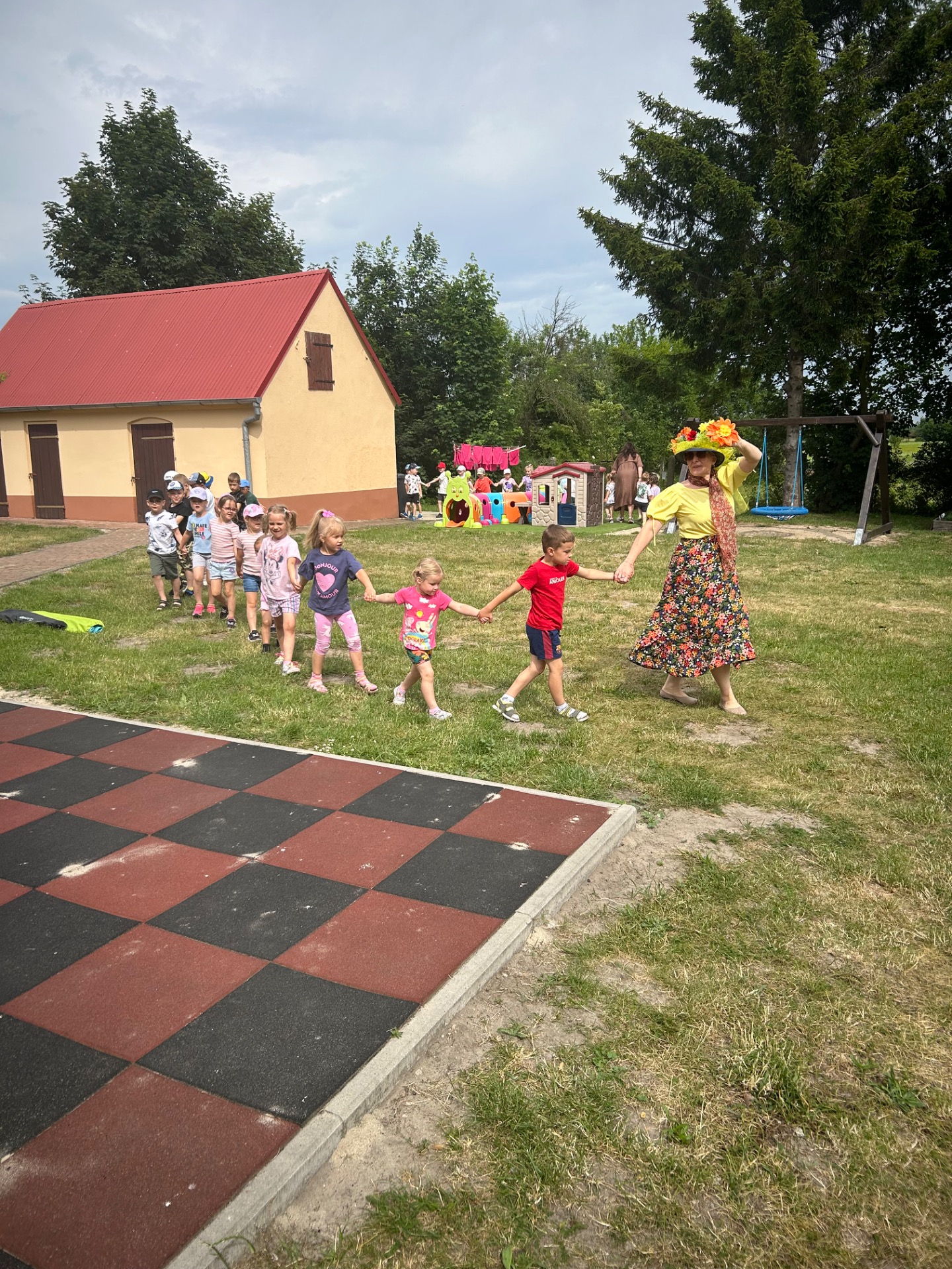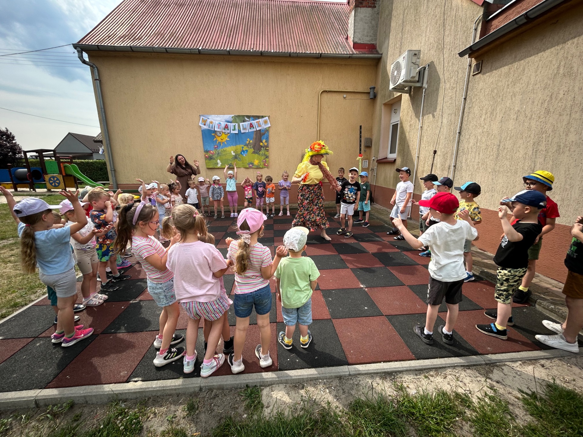 Na placu przedszkolnym czekało mnóstwo atrakcji – były wspólne tańce, gry i zabawy ruchowe, a śmiech i radość unosiły się w powietrzu przez cały dzień.