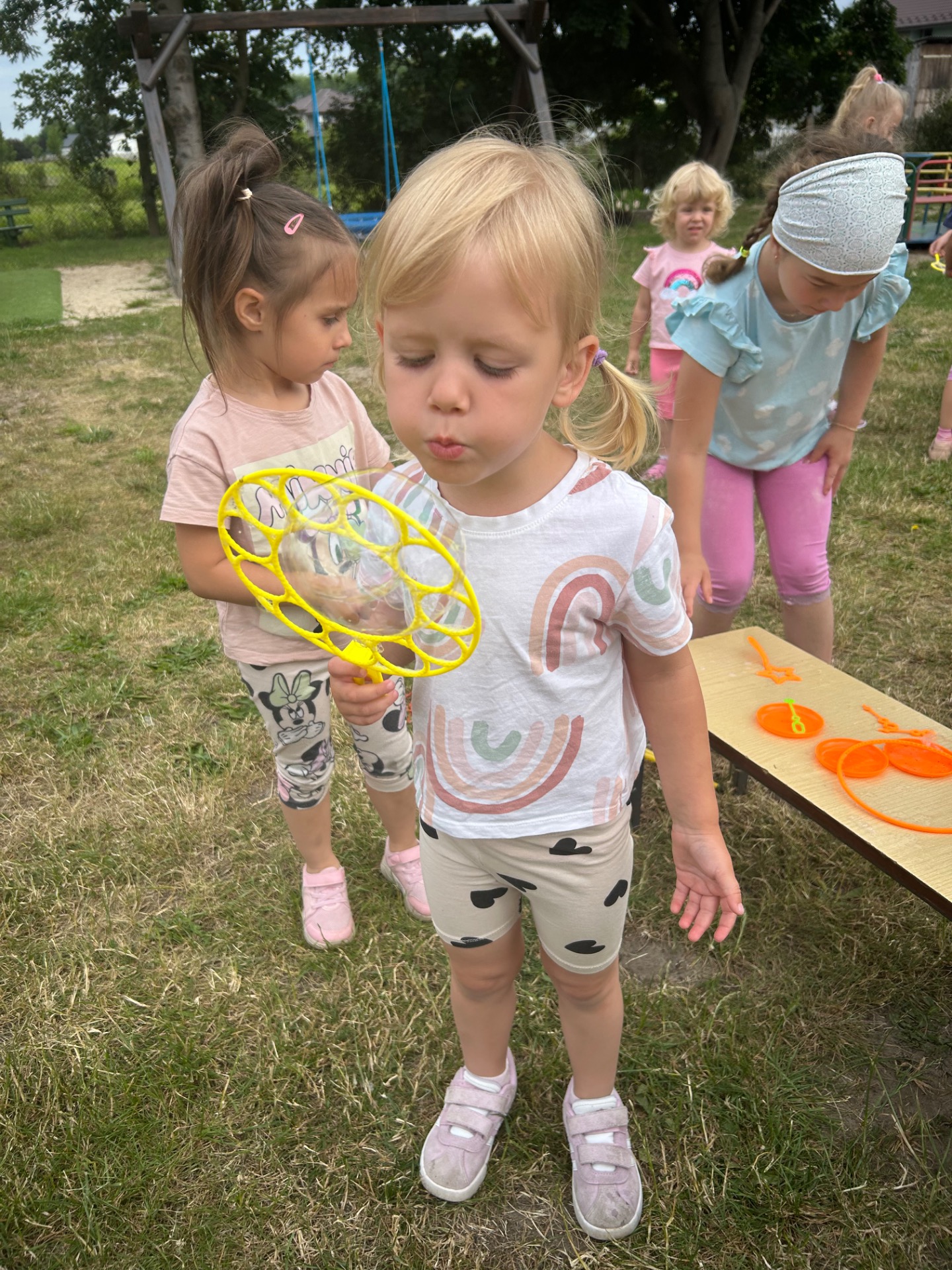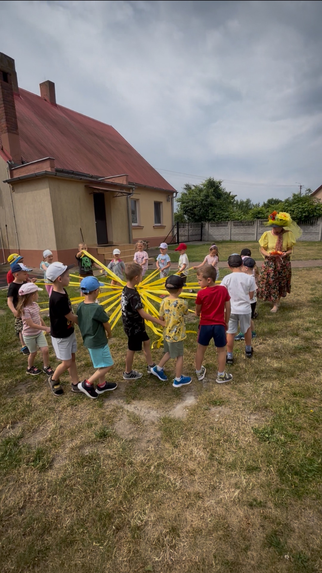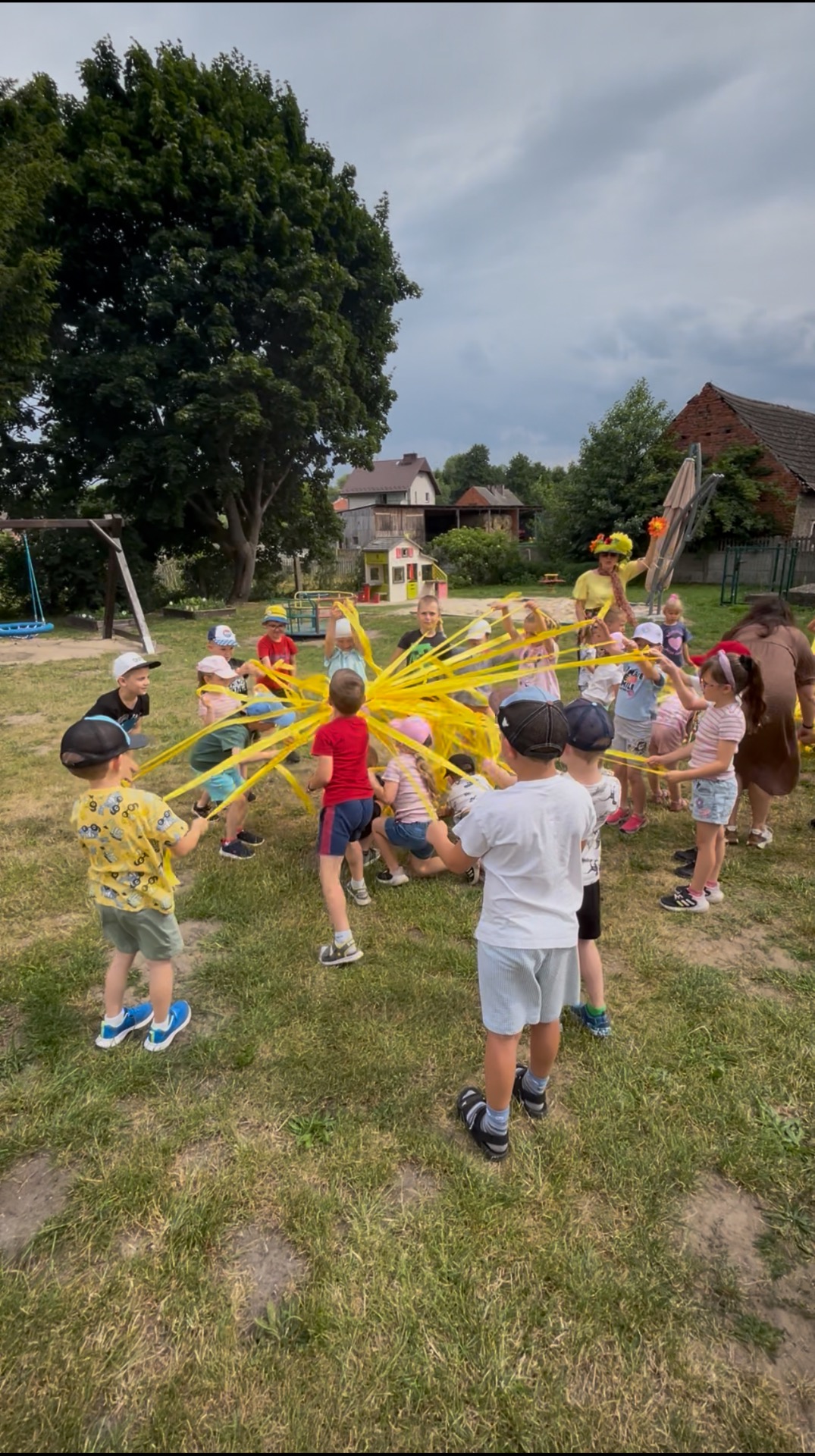 Na placu przedszkolnym czekało mnóstwo atrakcji – były wspólne tańce, gry i zabawy ruchowe, a śmiech i radość unosiły się w powietrzu przez cały dzień.