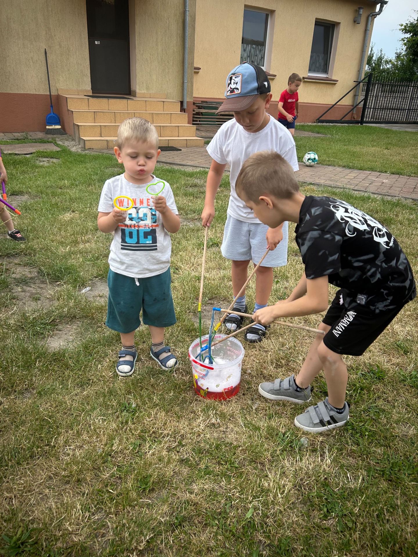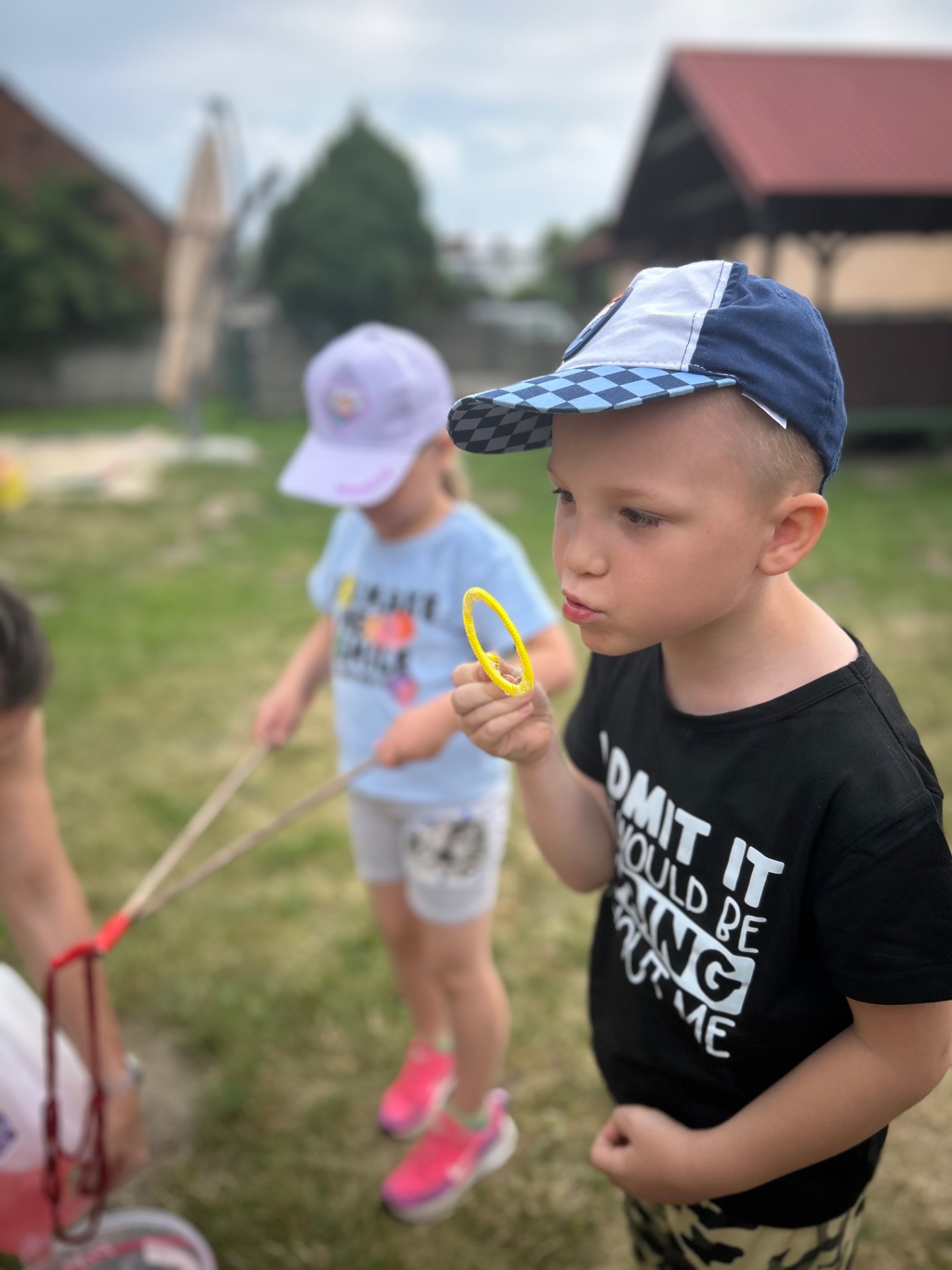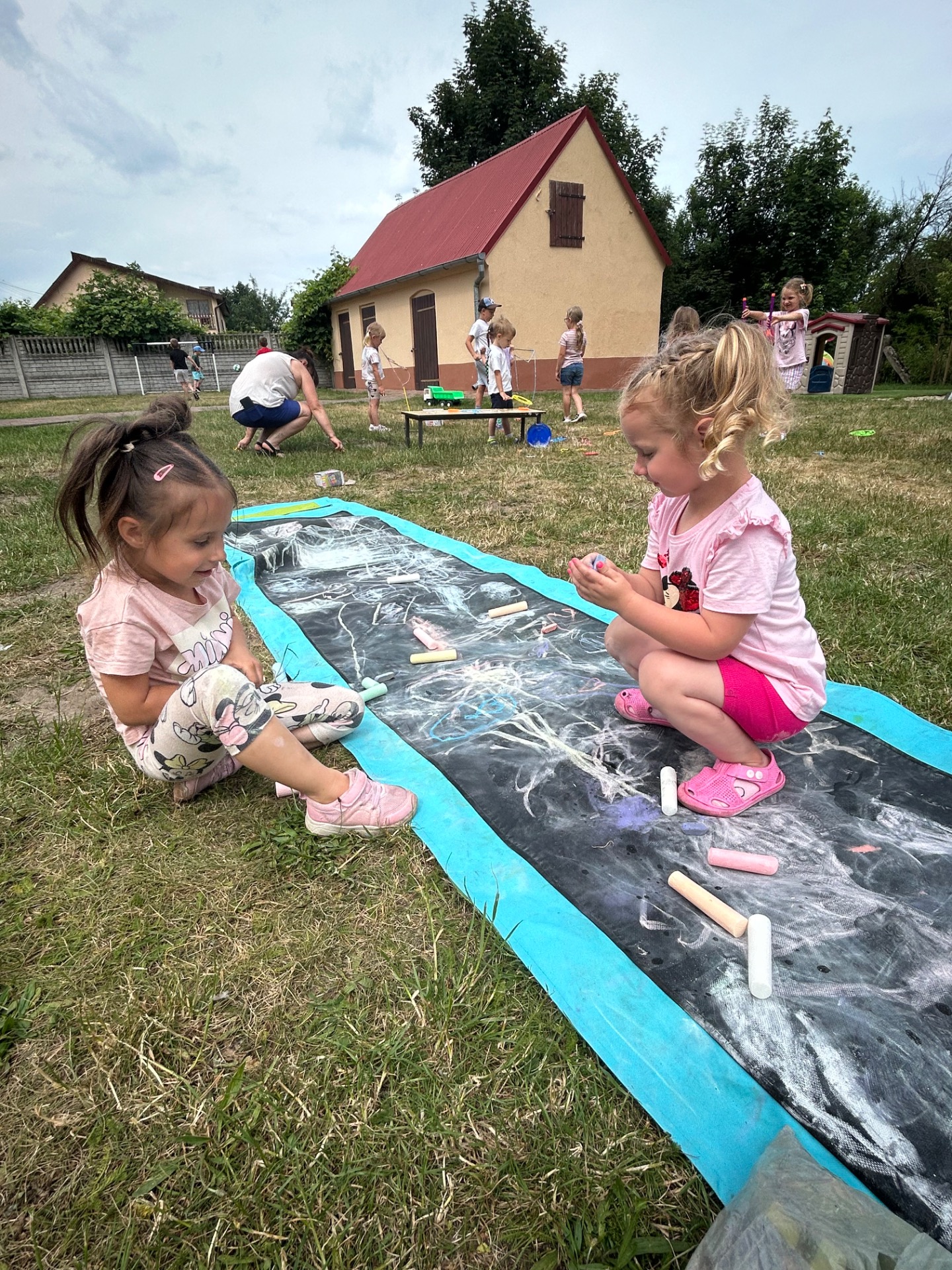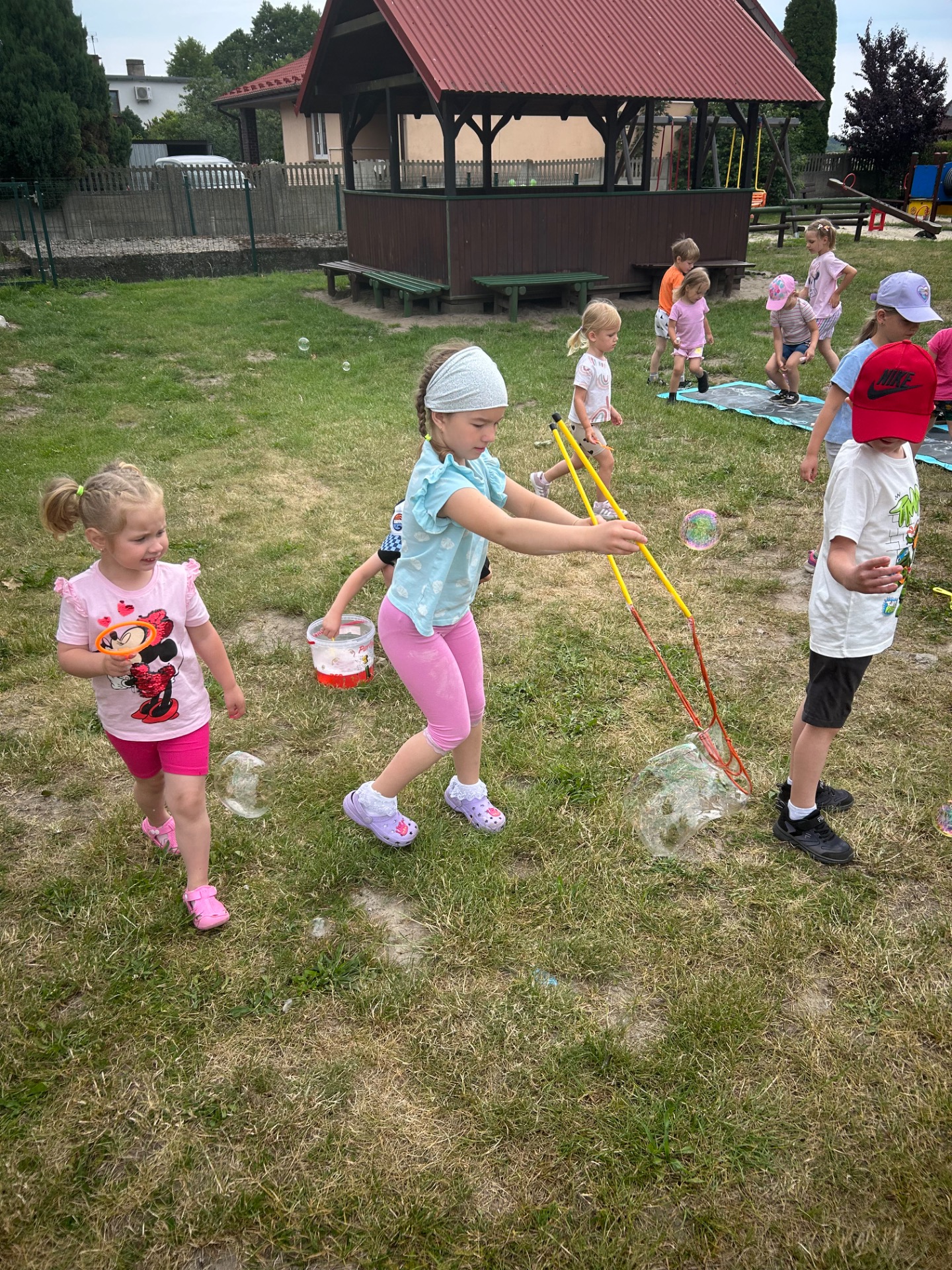 Na placu przedszkolnym czekało mnóstwo atrakcji – były wspólne tańce, gry i zabawy ruchowe, a śmiech i radość unosiły się w powietrzu przez cały dzień.