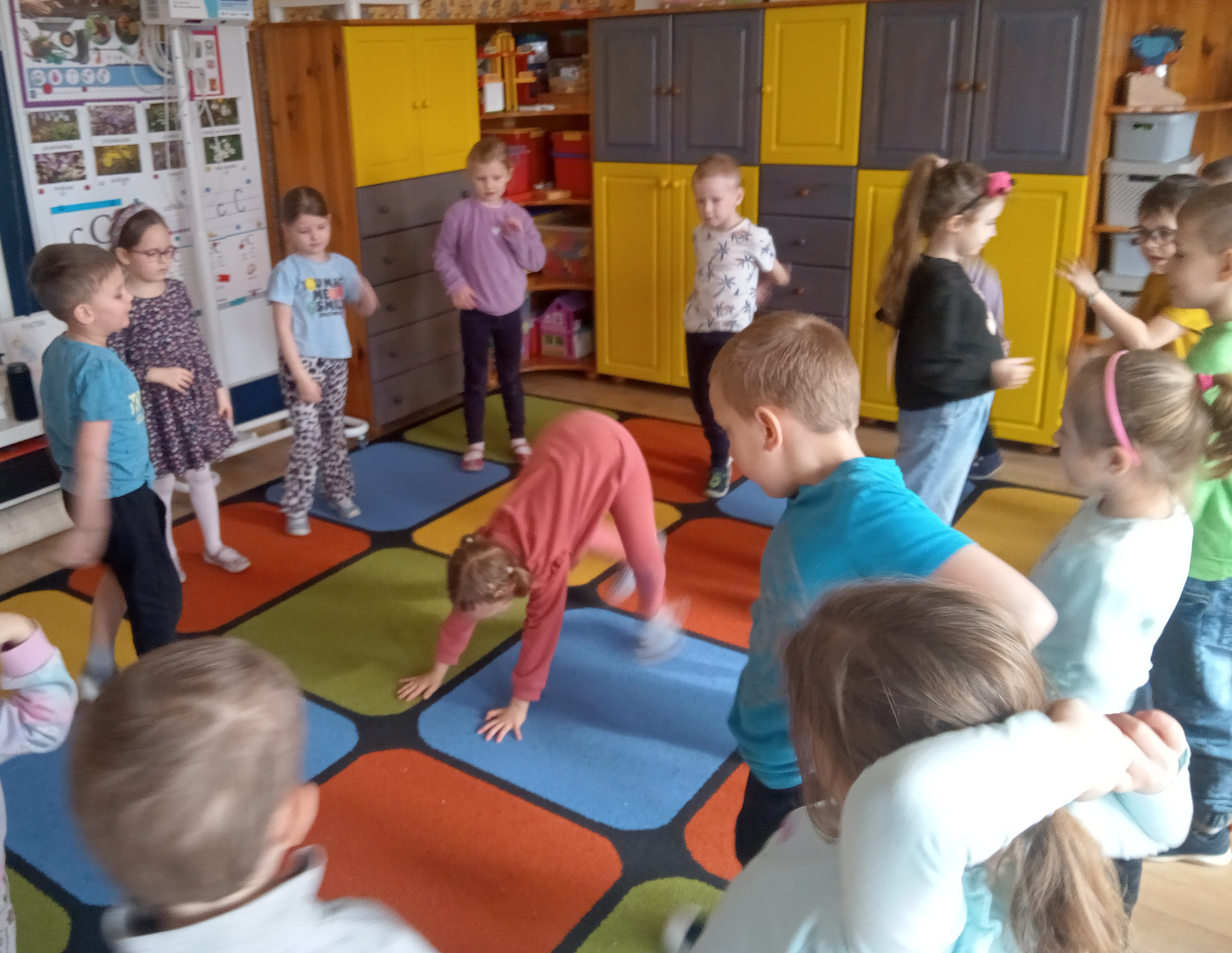 Podczas zajęć dzieci miały okazję „latać” jak skoczkowie, wykonując różne ćwiczenia gimnastyczne.