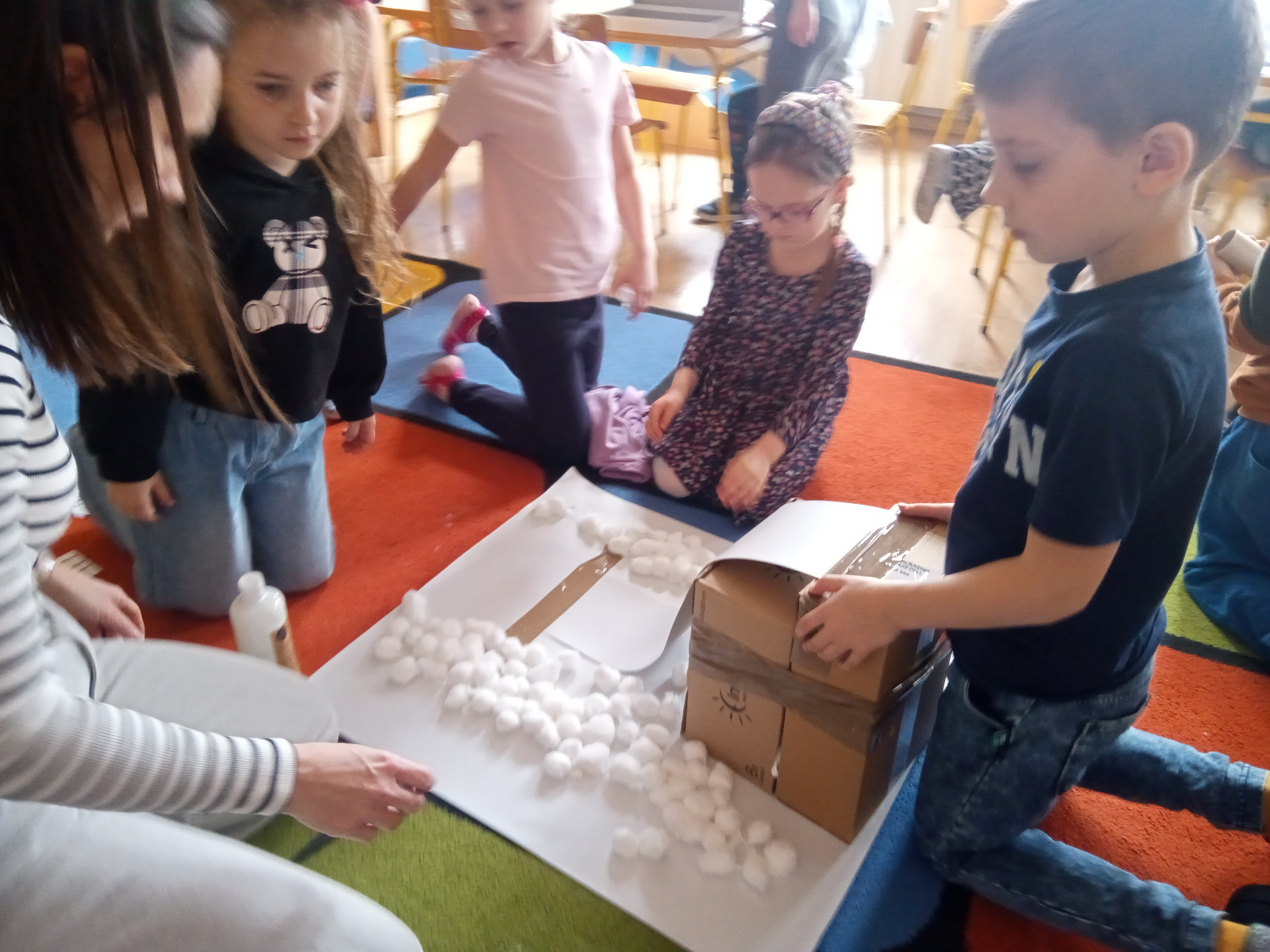 Nauczyły się jak ważne są treningi, przygotowanie fizyczne oraz koncentracja aby osiągnąć sukces. Wspólnie wykonały skocznie narciarską, która posłużyła do amatorskich zawodów, w których „skoczkami” były plastikowe nakrętki. Przy okazji dzieci nauczyły się w jaki sposób mogą ponownie wykorzystać zbędne już materiały jak karton czy plastikowe nakrętki. Zajęcia wprowadziły w tematykę sportów zimowych i pokazały, że sport ten, choć trudny, może być źródłem radości i satysfakcji.